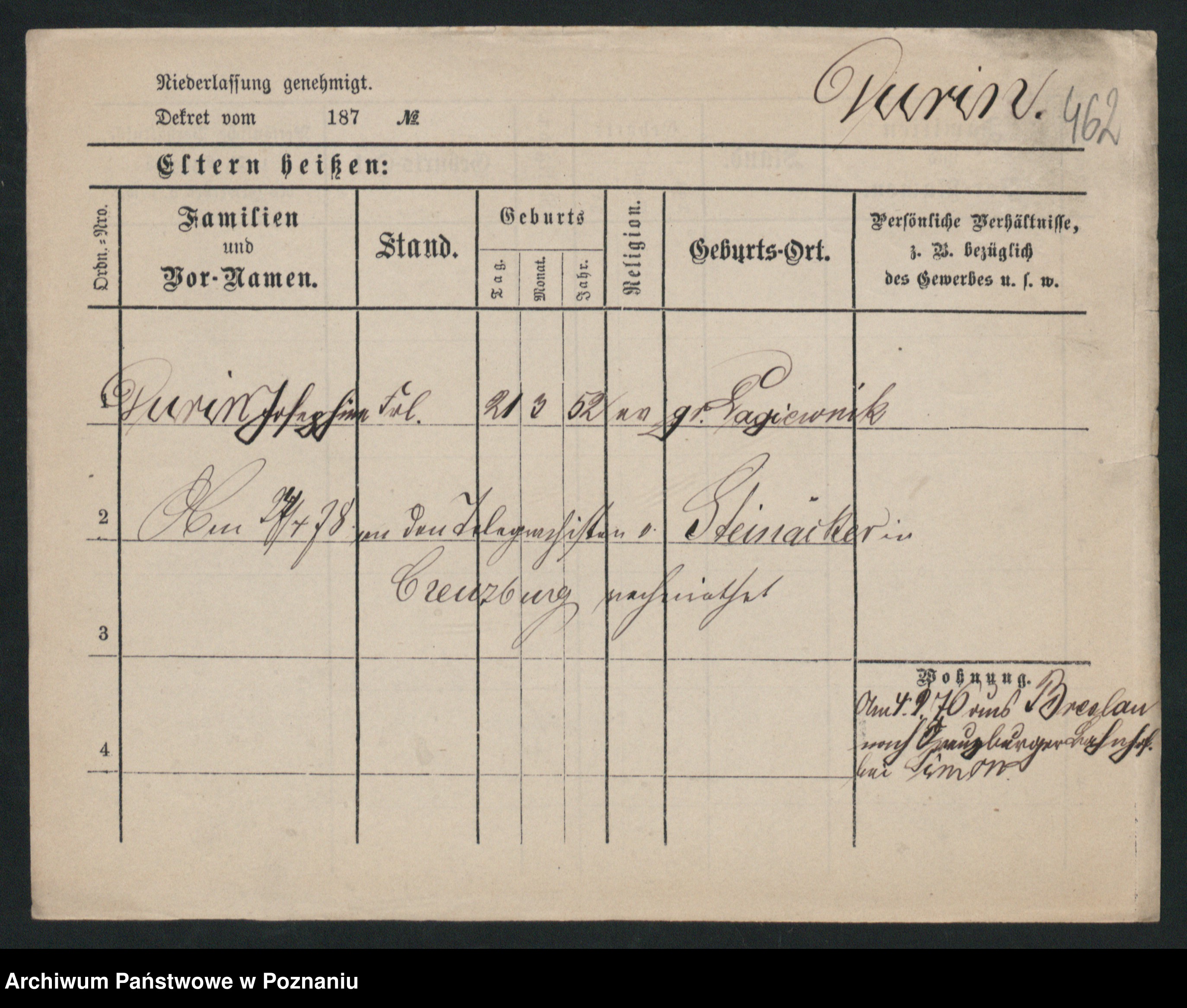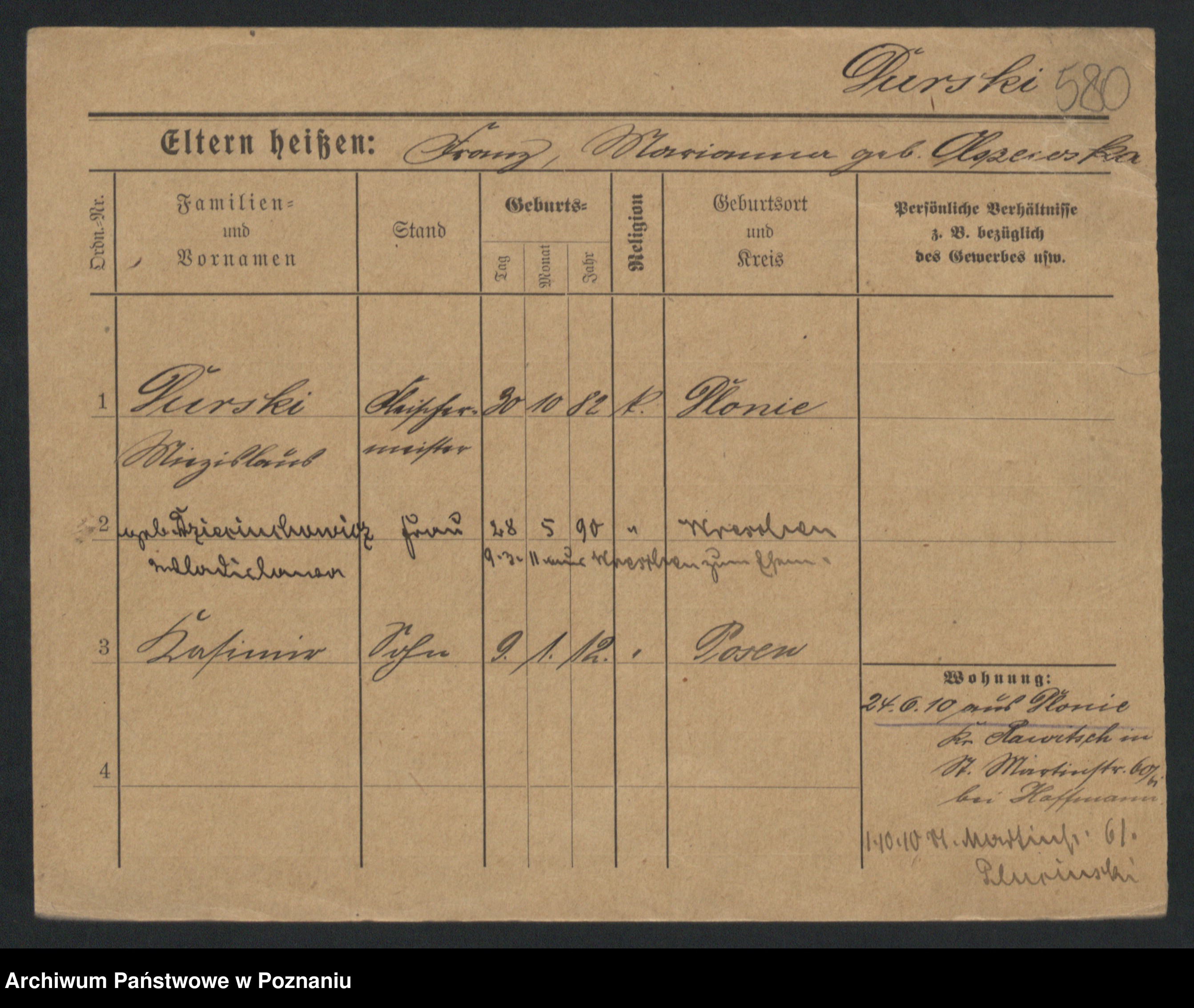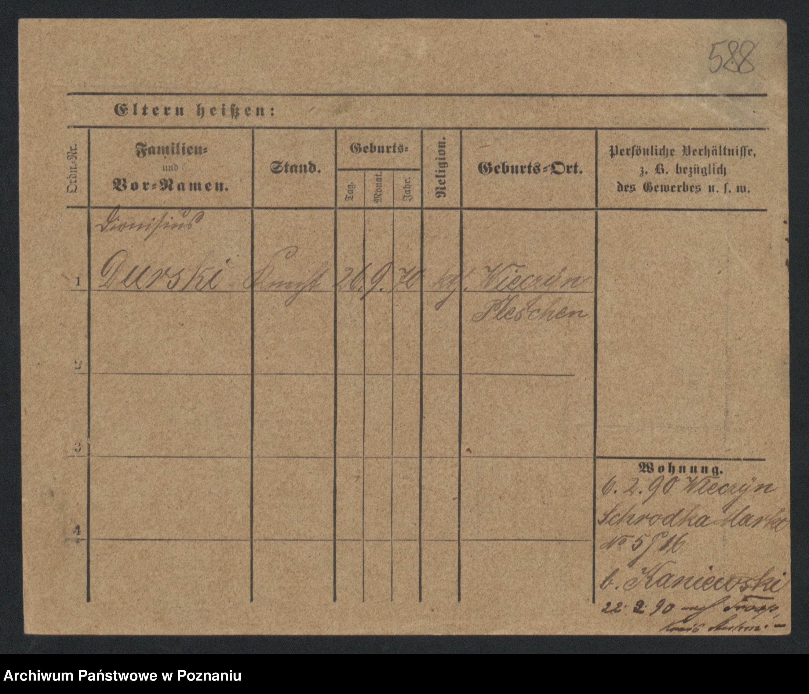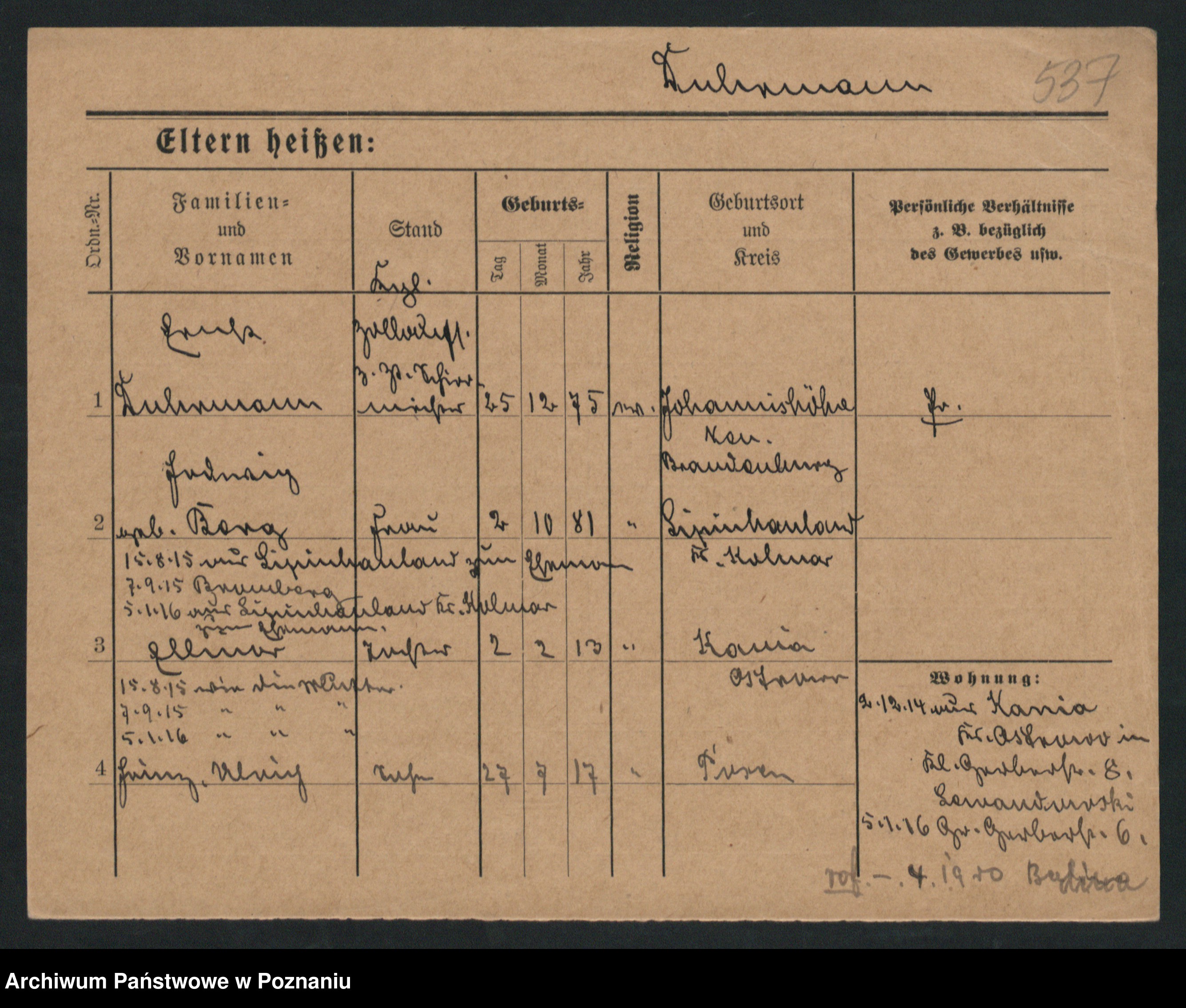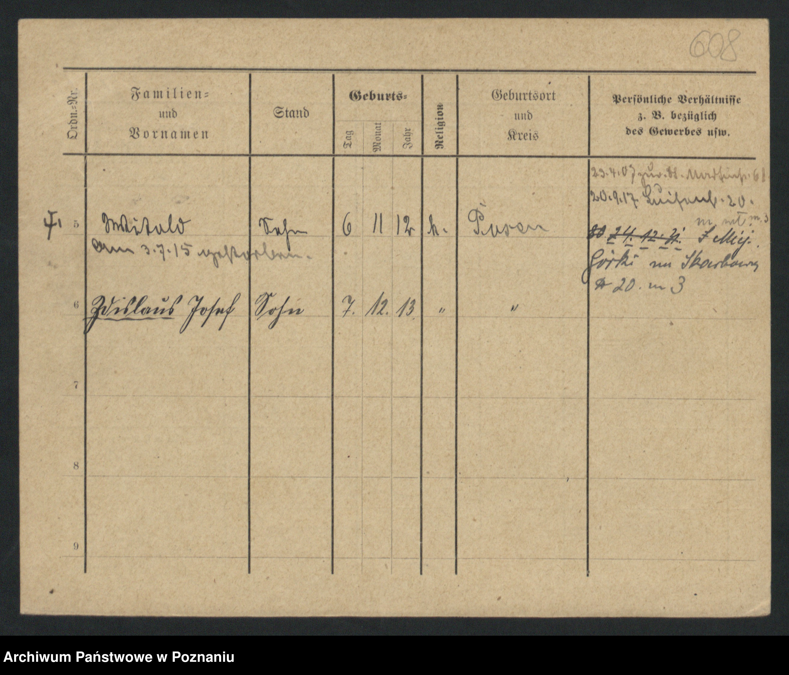 Podgląd karty osobowej dostępny jest po kliknięciu na nazwisko lub ikonkę karty. Można dokonywać powiększenia (ikony na górze) lub przechodzić między kolejnymi skanami (strzałki po bokach).