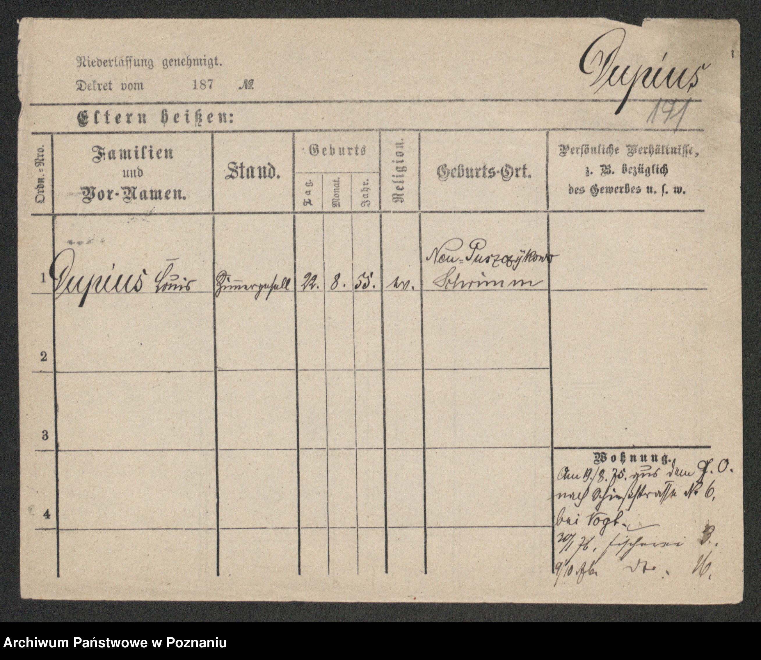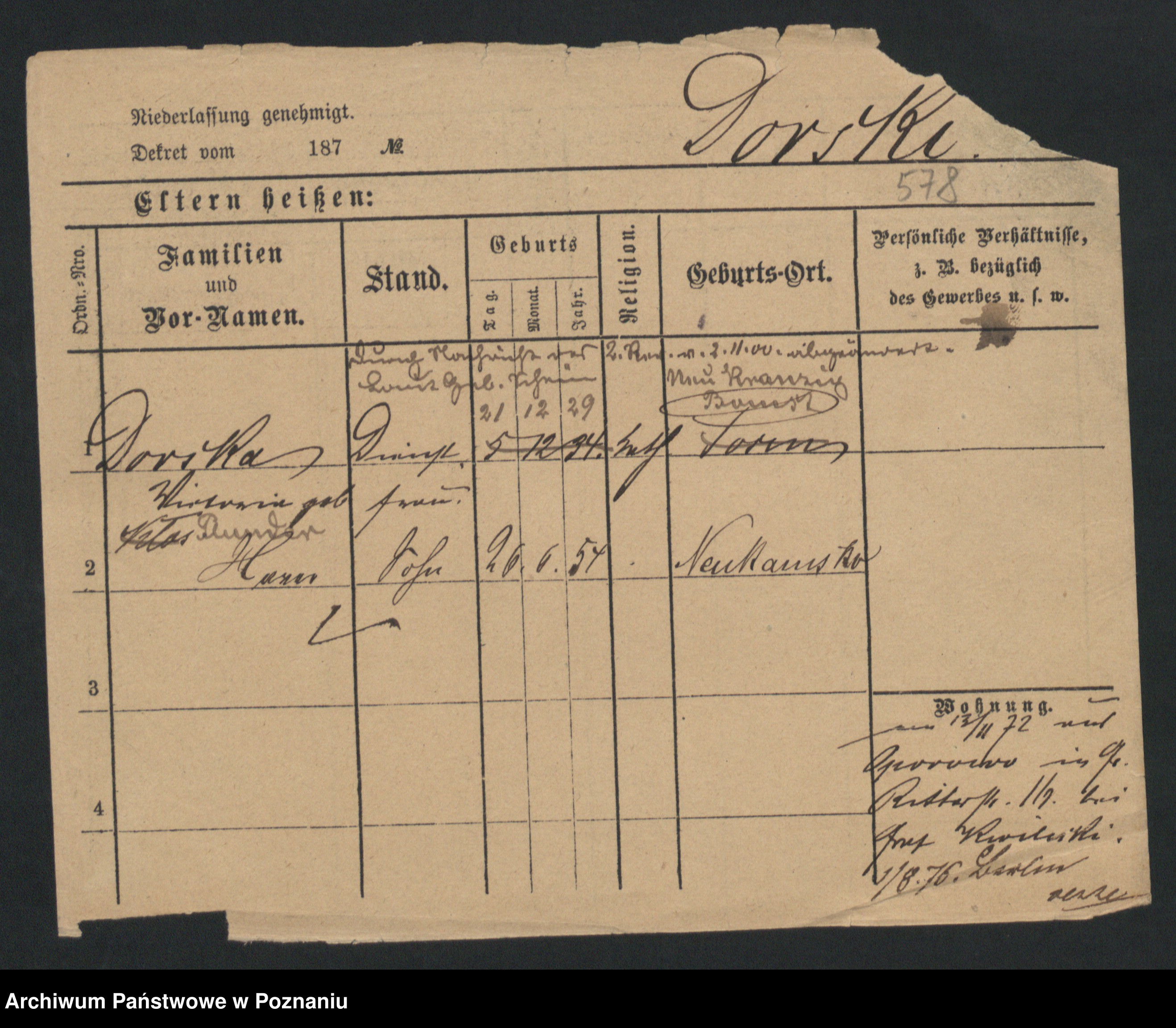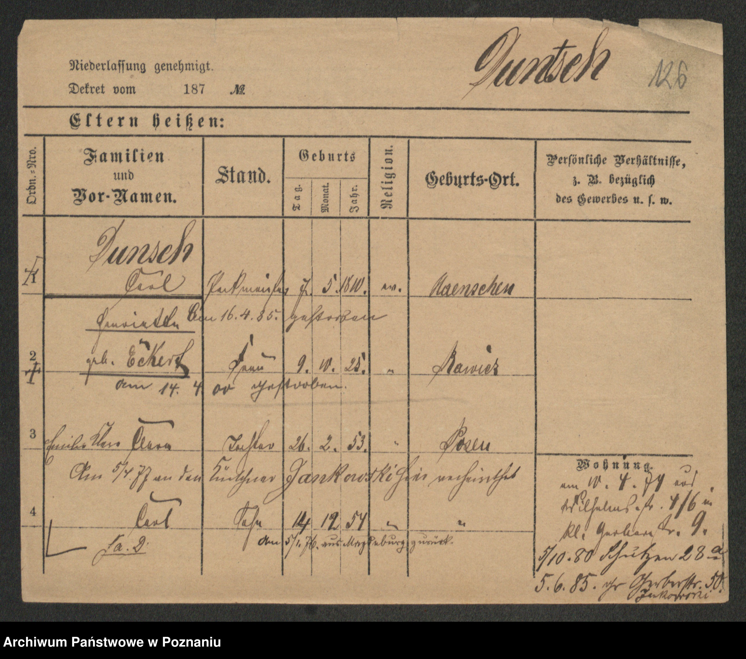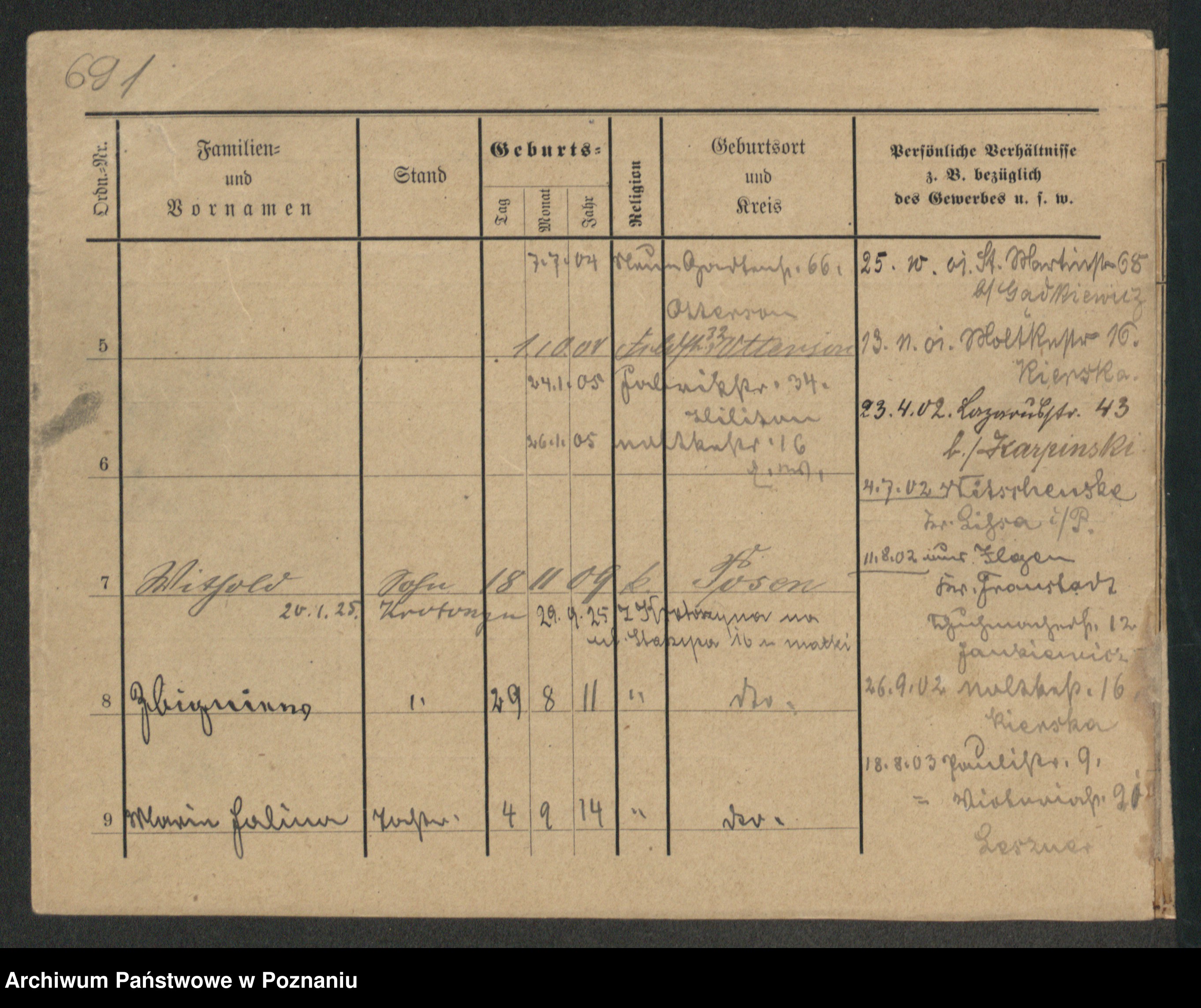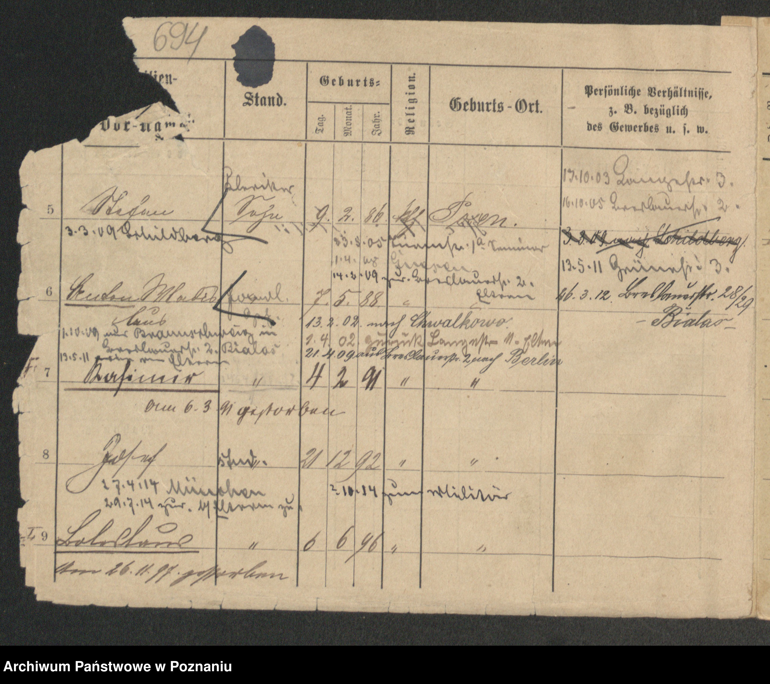 Podgląd karty osobowej dostępny jest po kliknięciu na nazwisko lub ikonkę karty. Można dokonywać powiększenia (ikony na górze) lub przechodzić między kolejnymi skanami (strzałki po bokach).