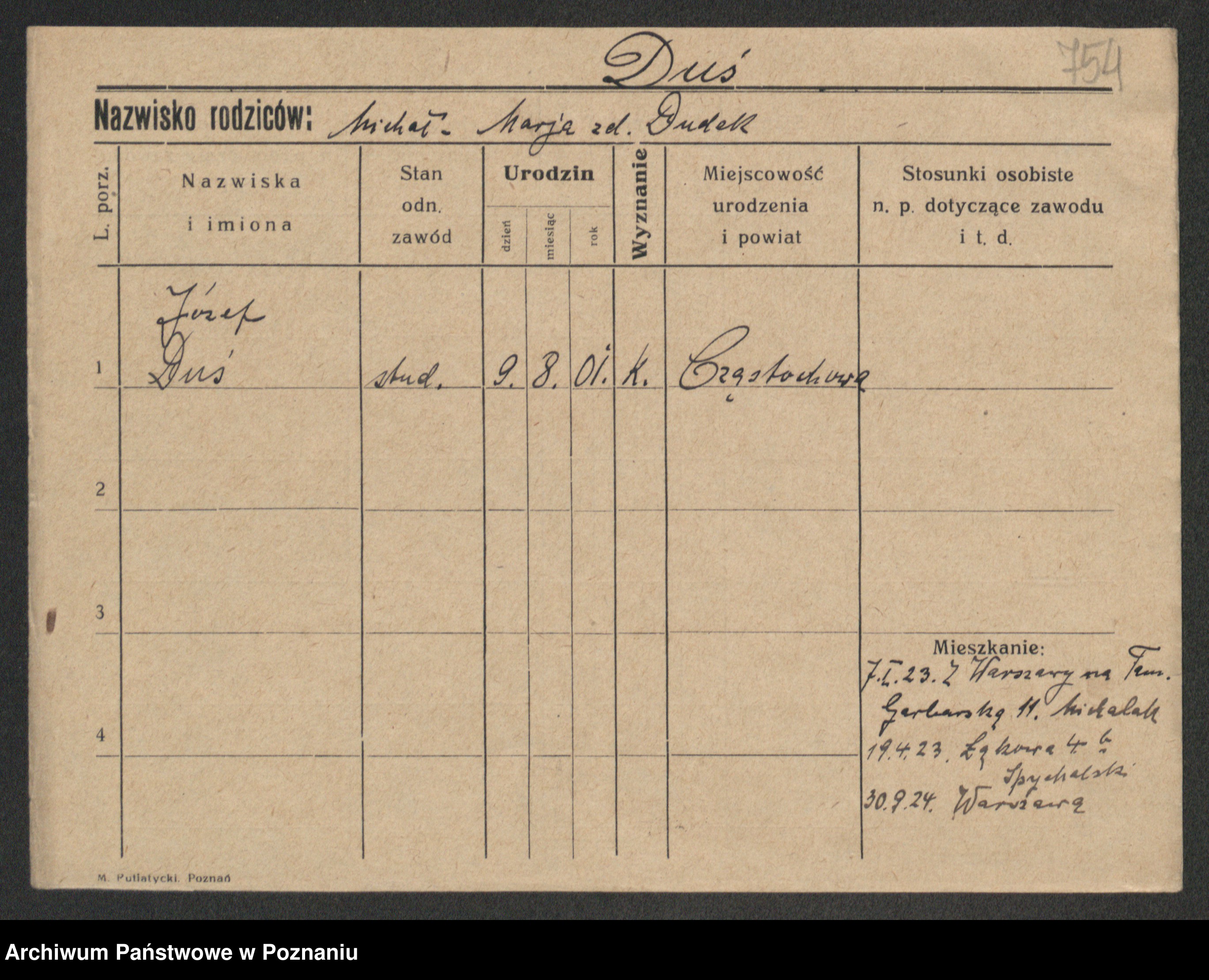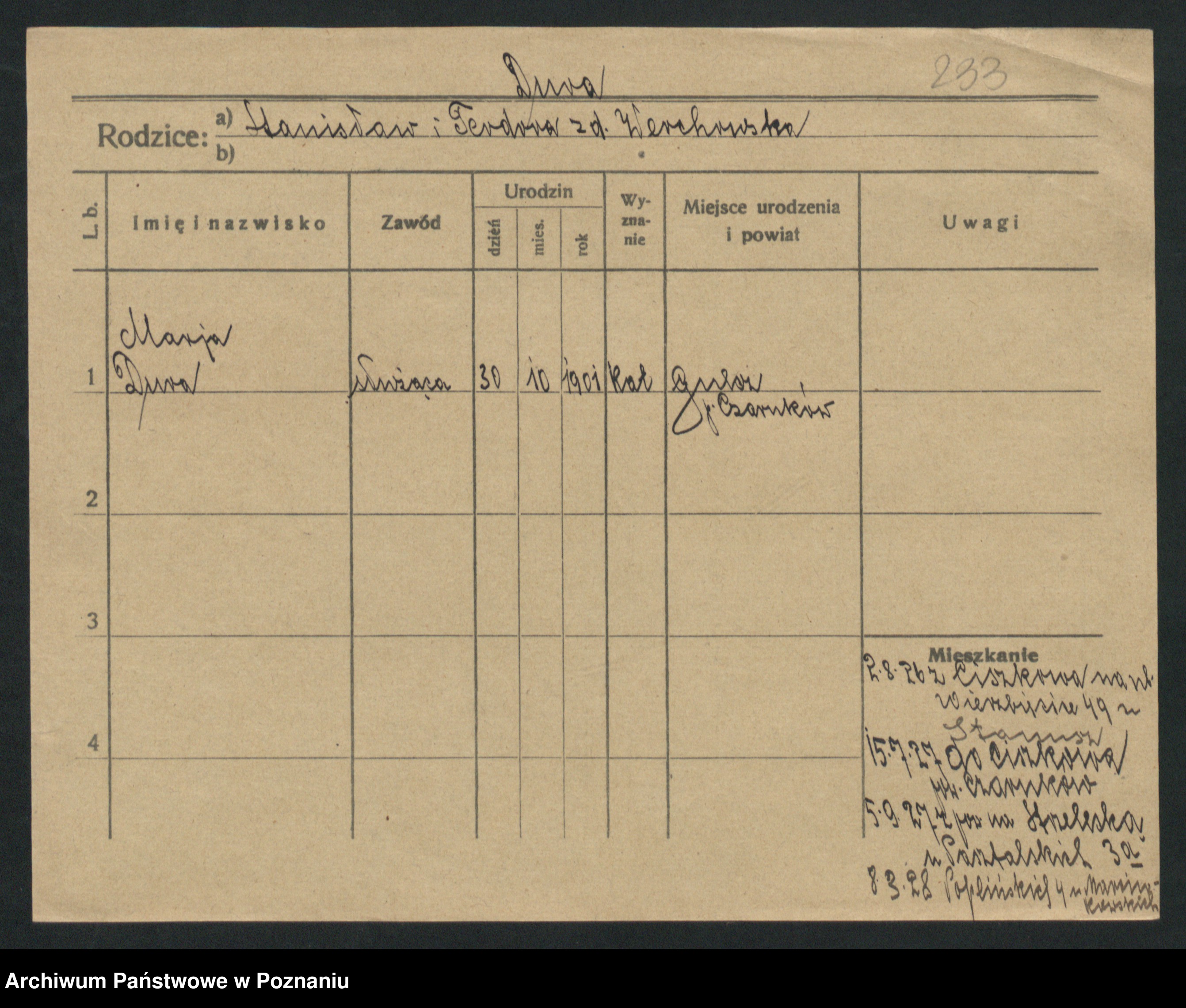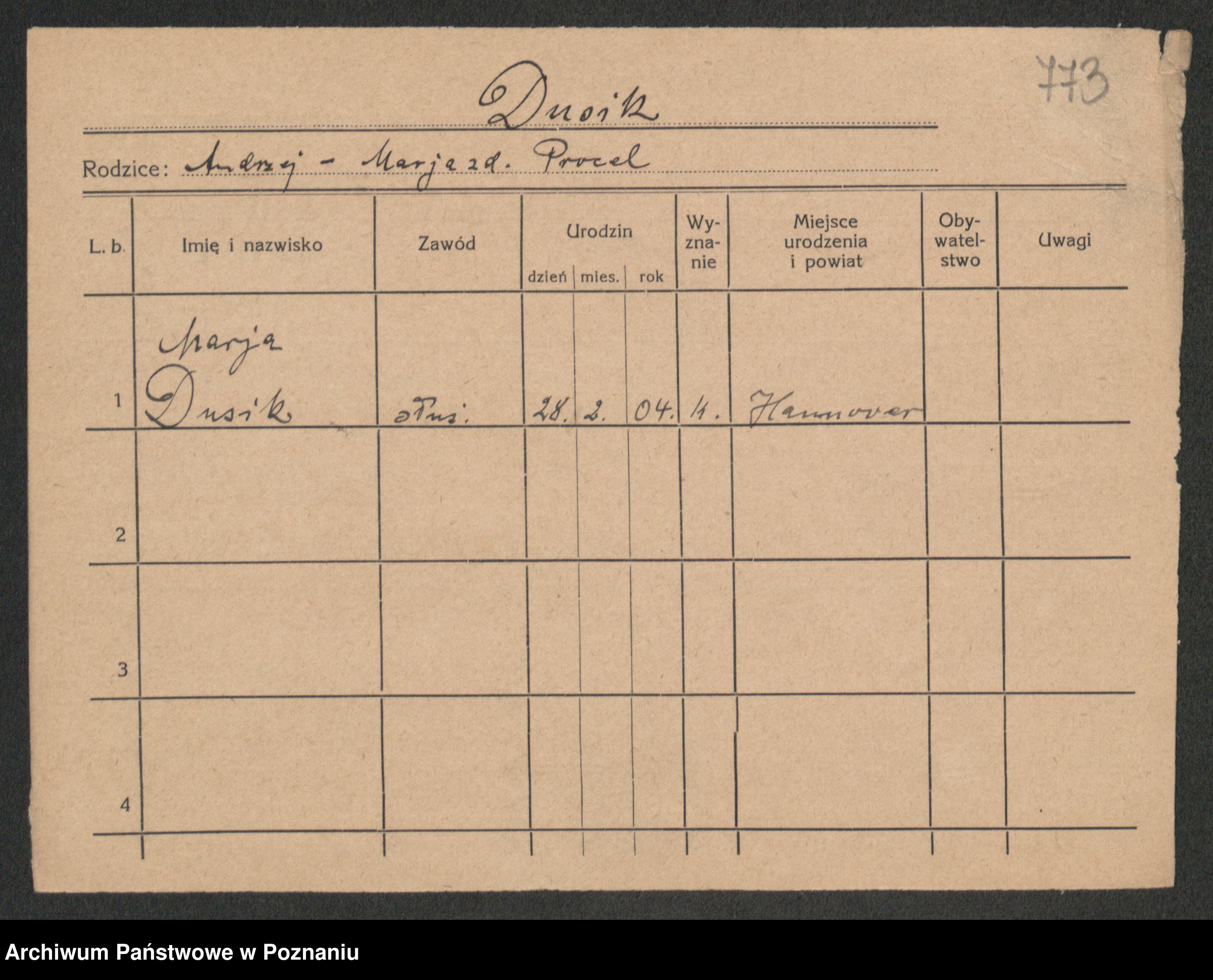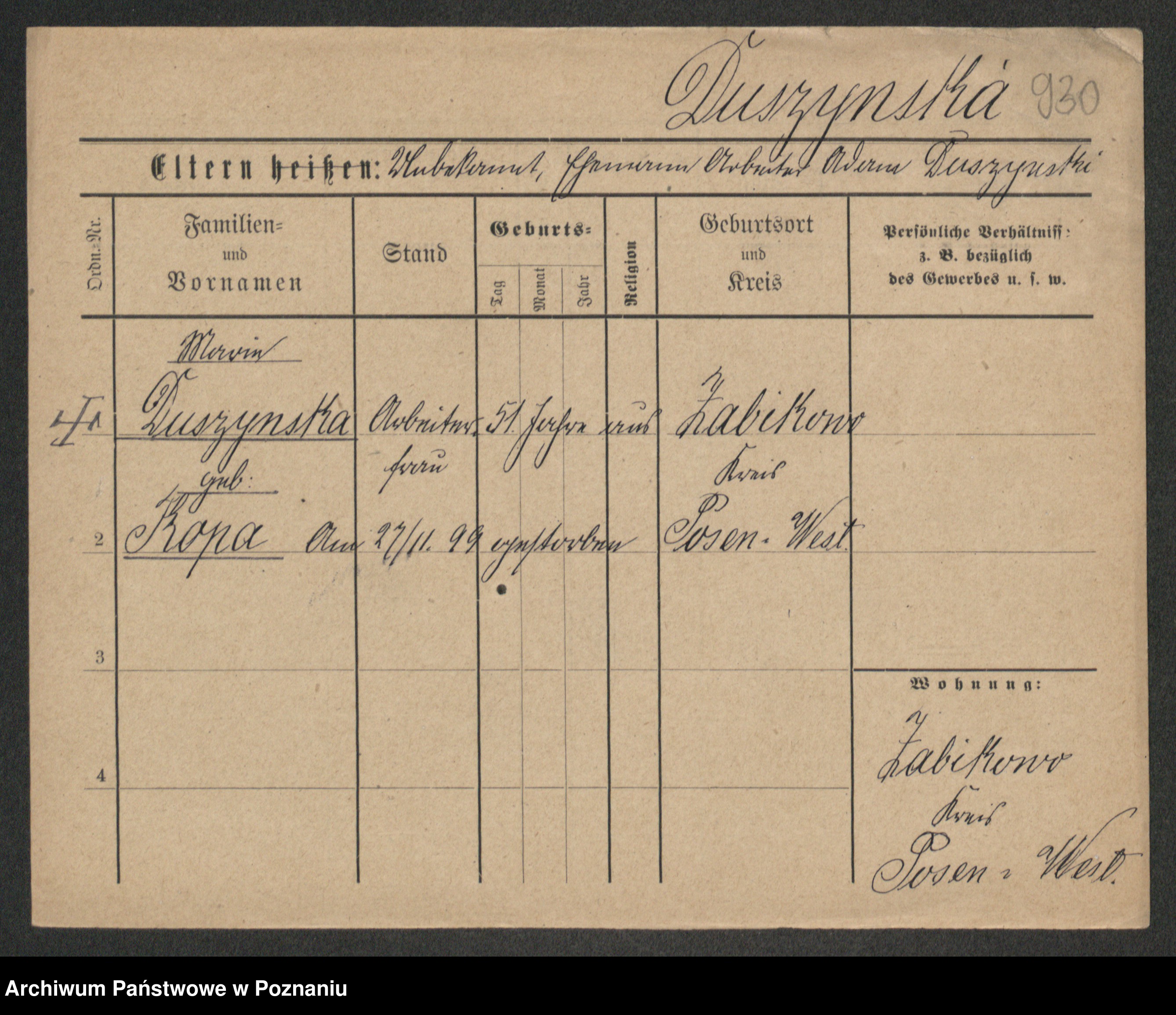 Duszynska zd. Kopa, Marie