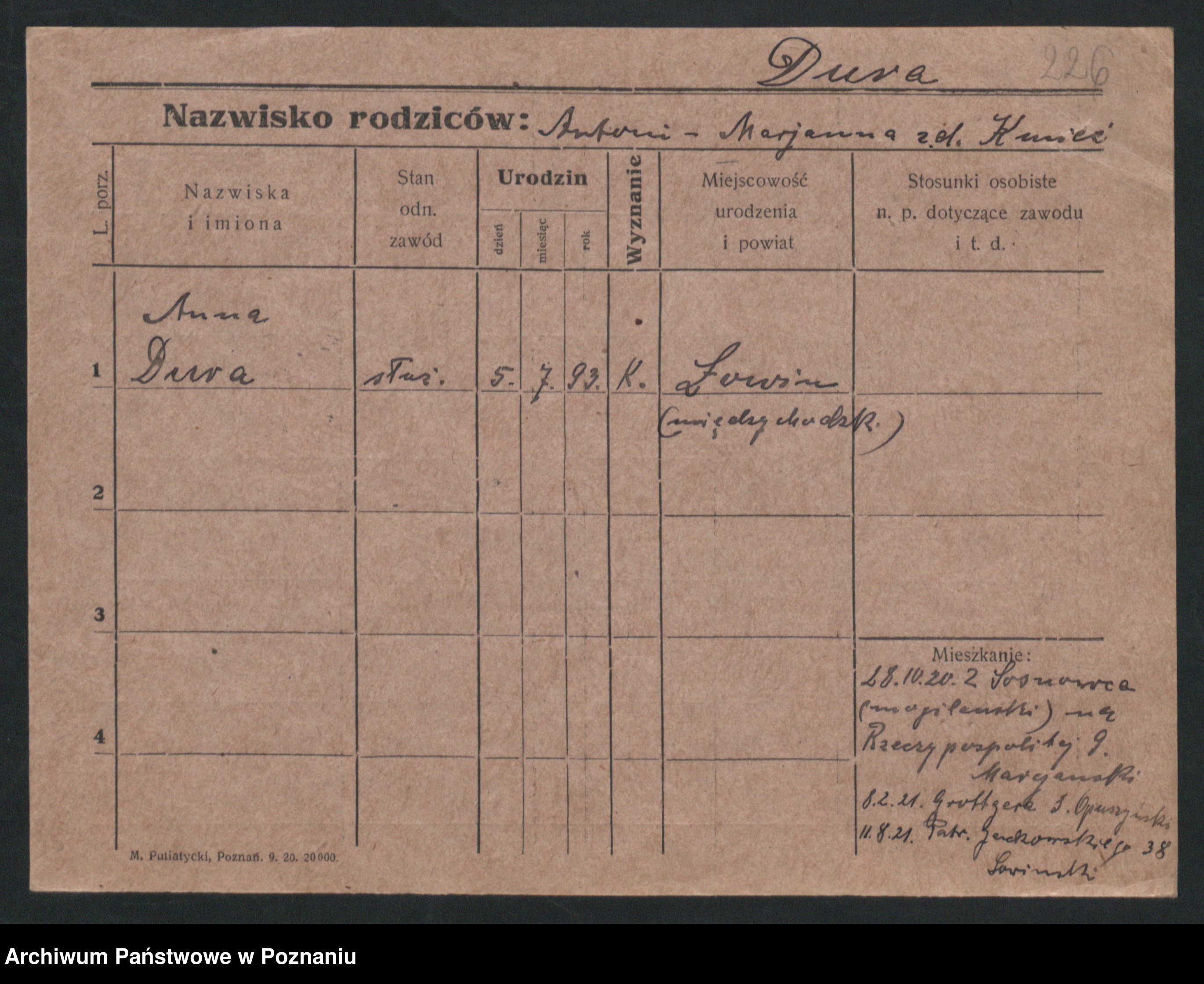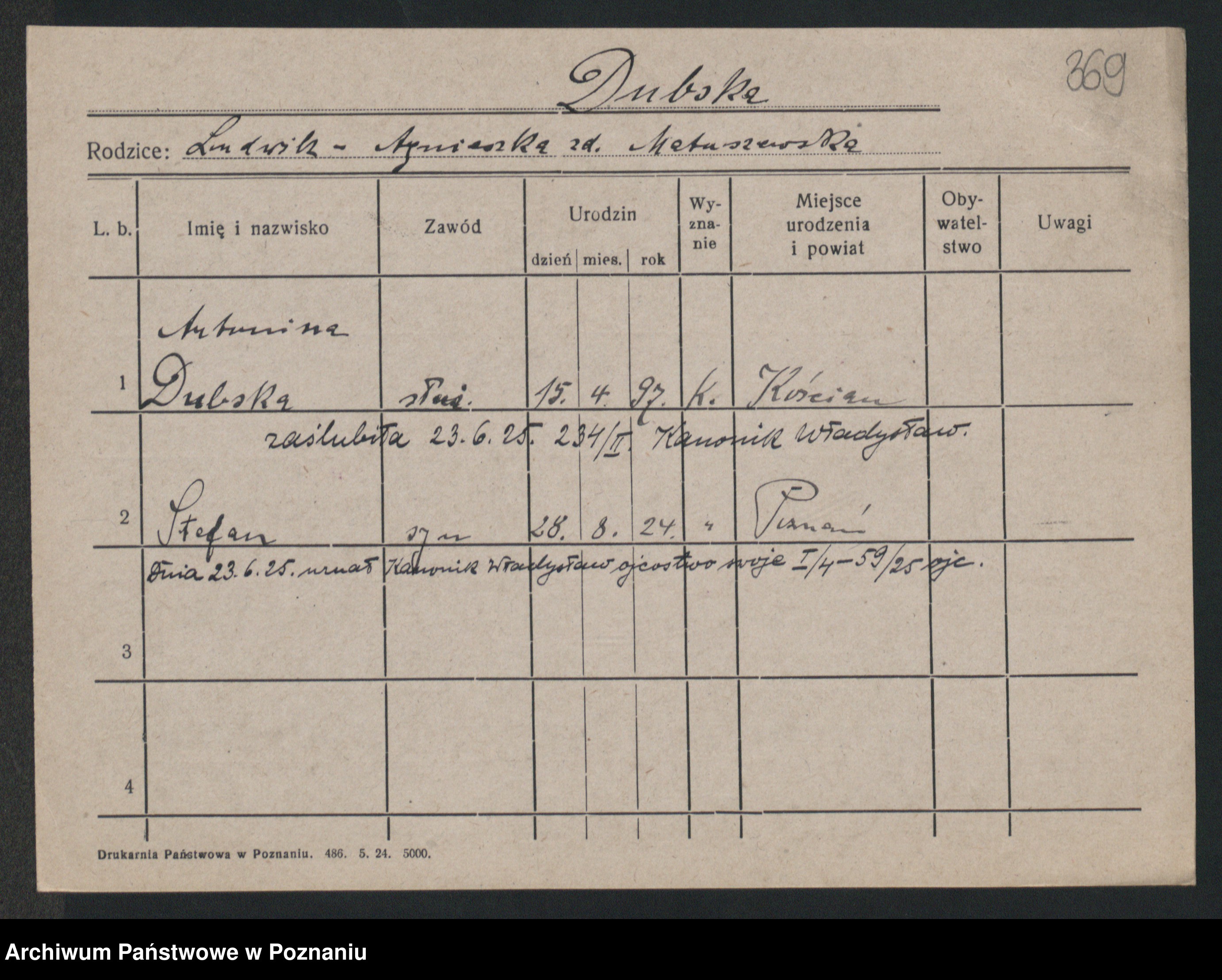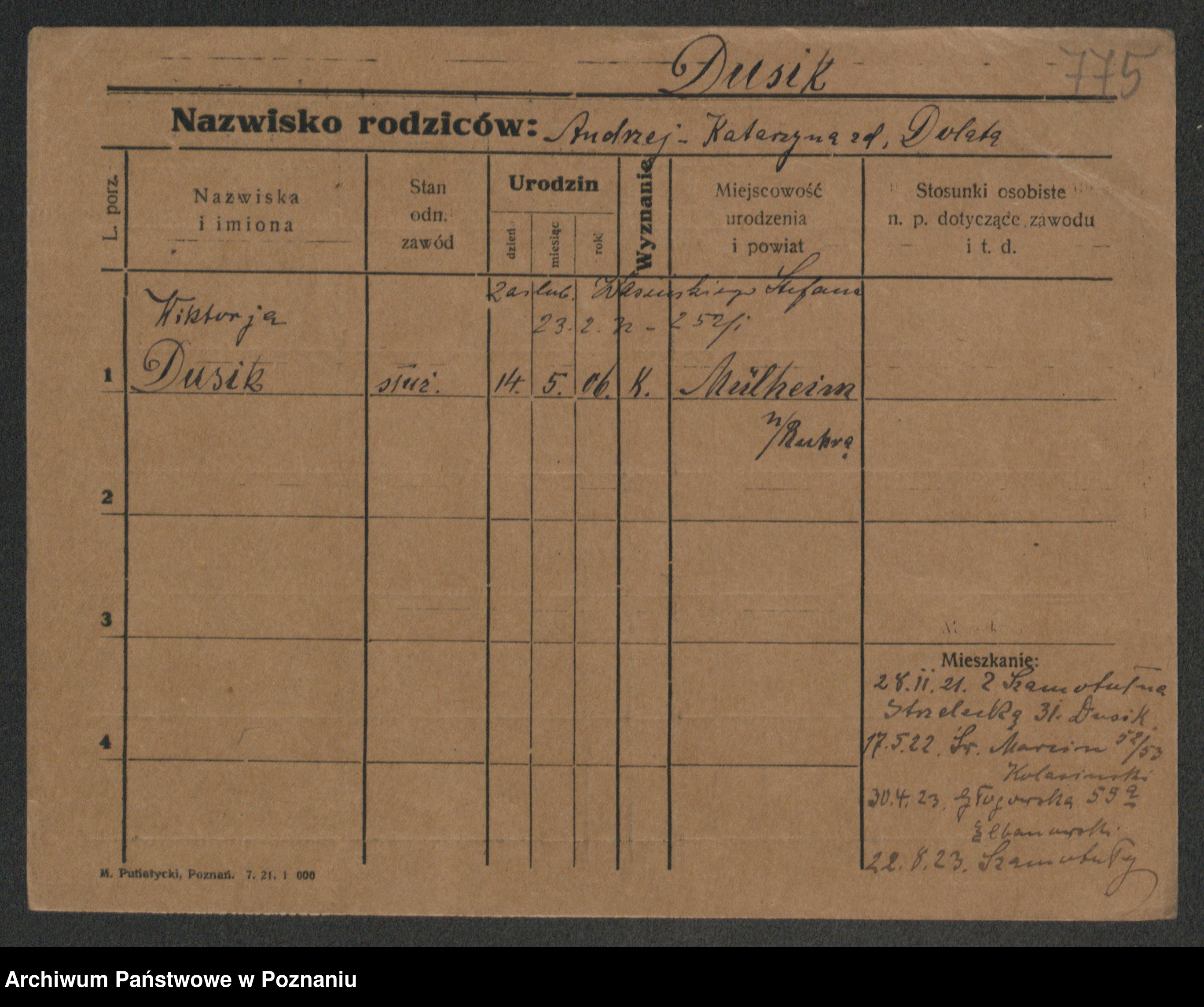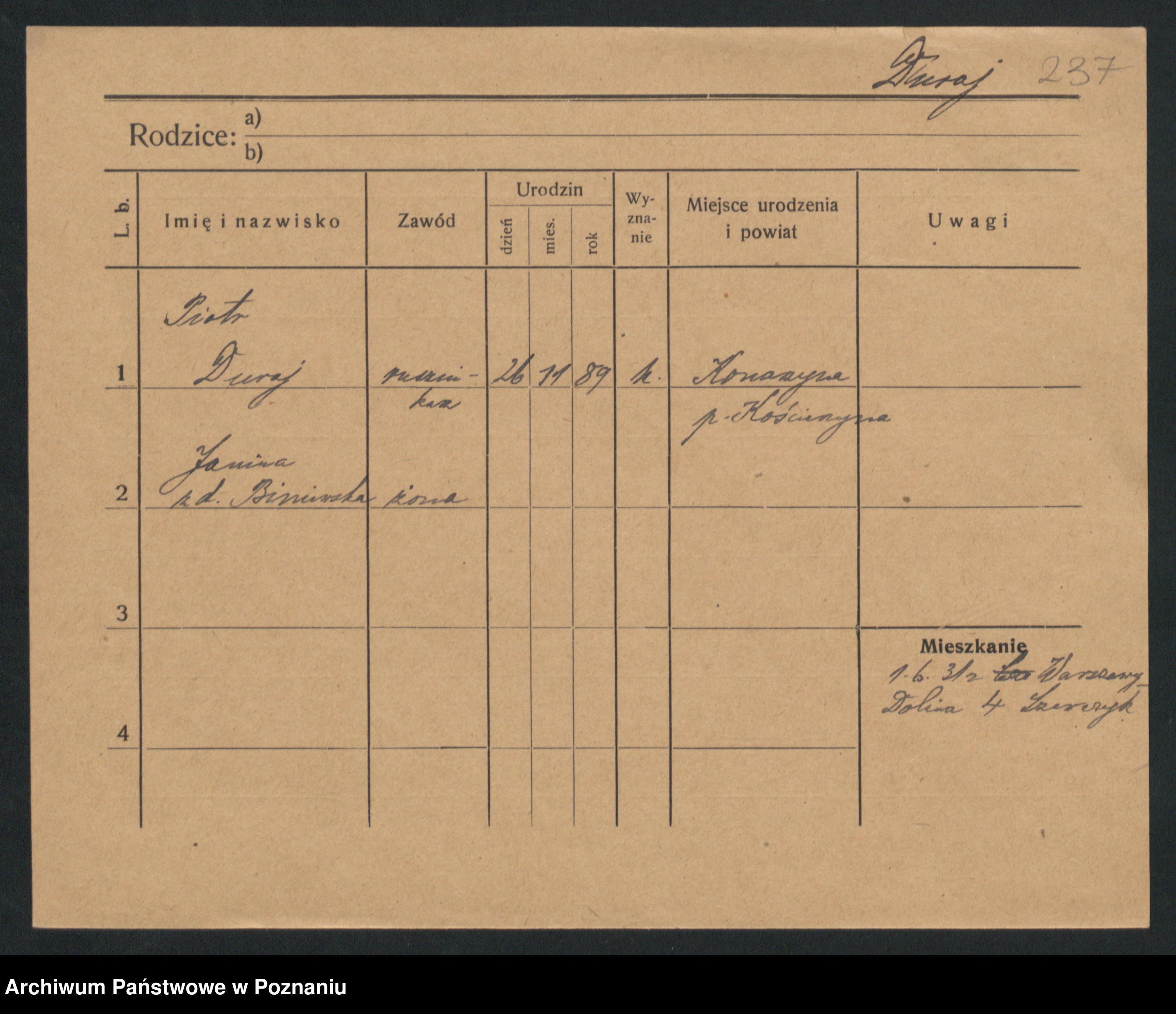 Duszynska zd. Kopa, Marie