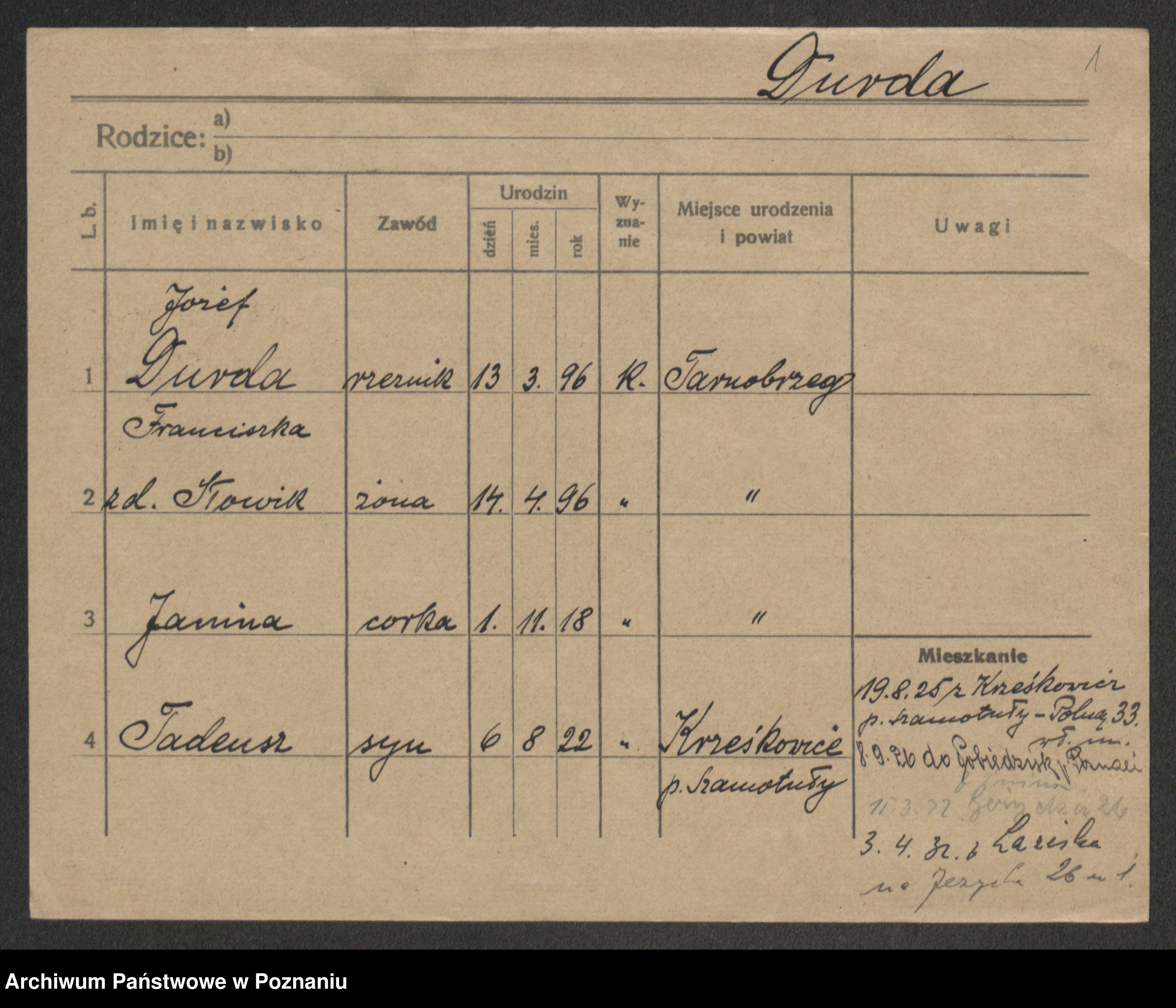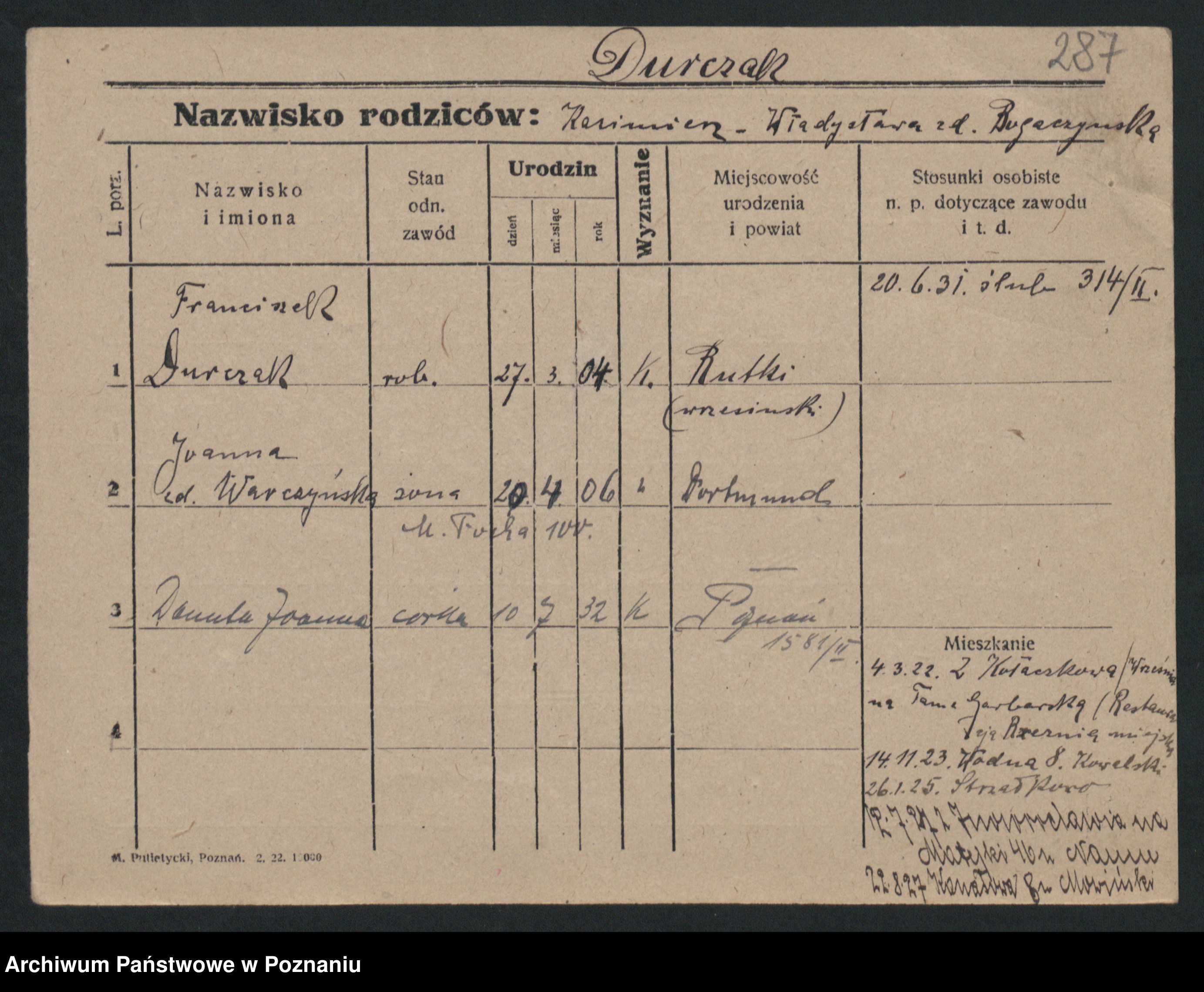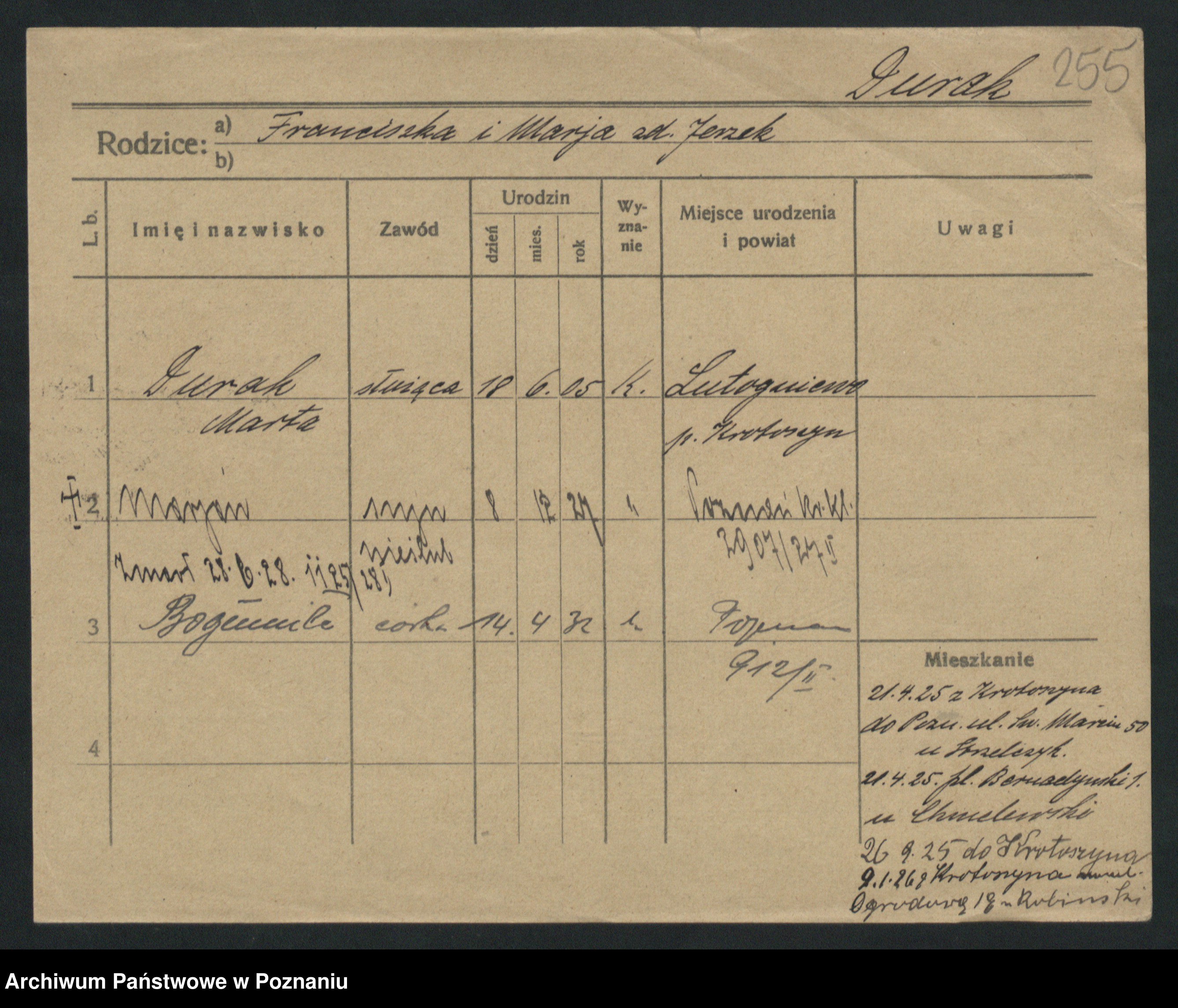 Durda zd. Słowik, Franciszka