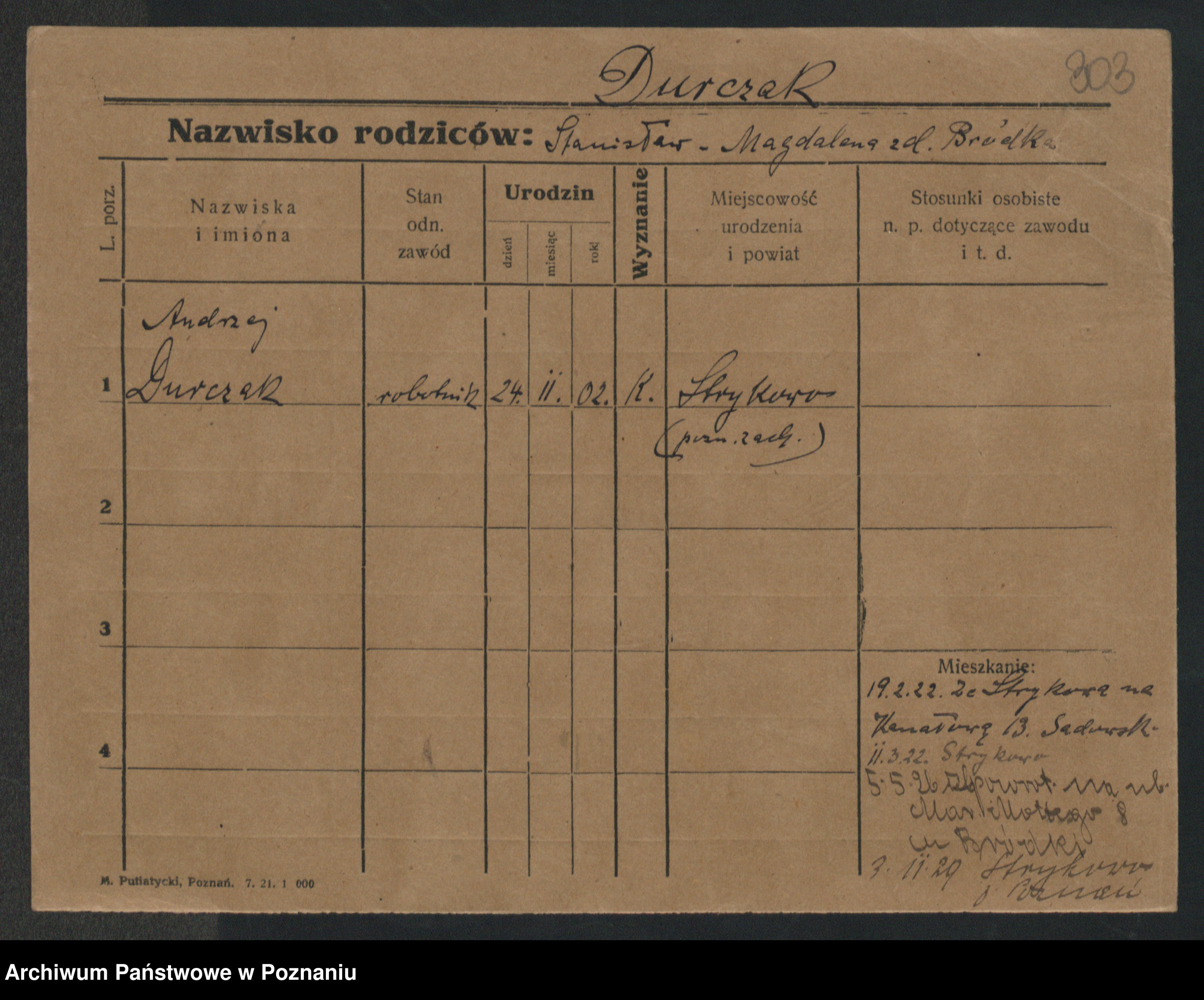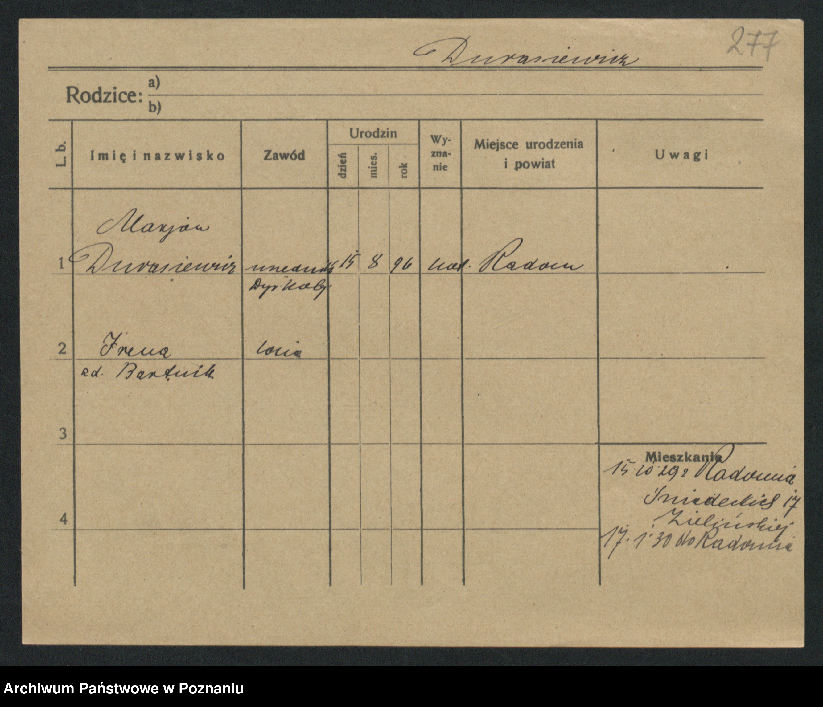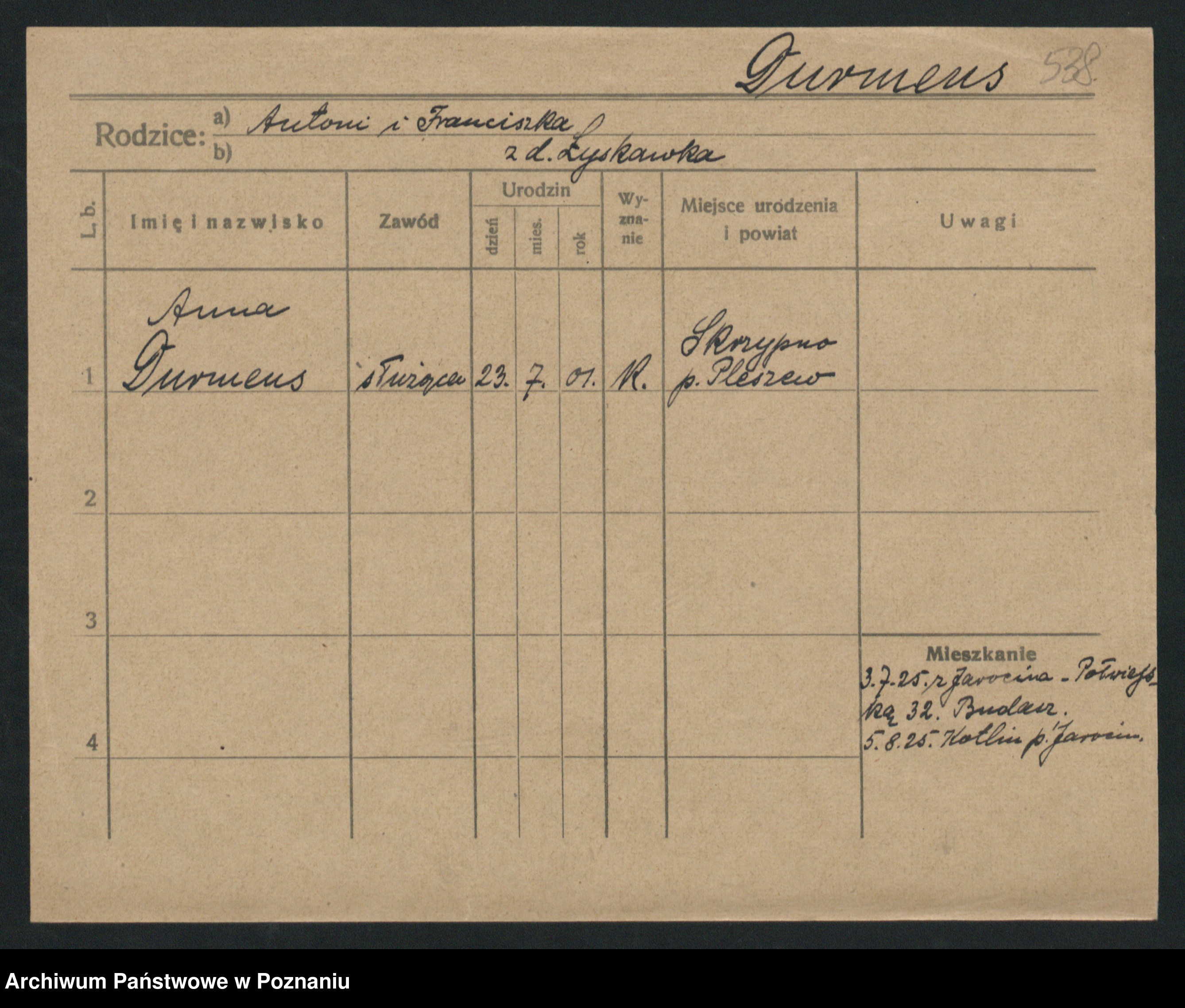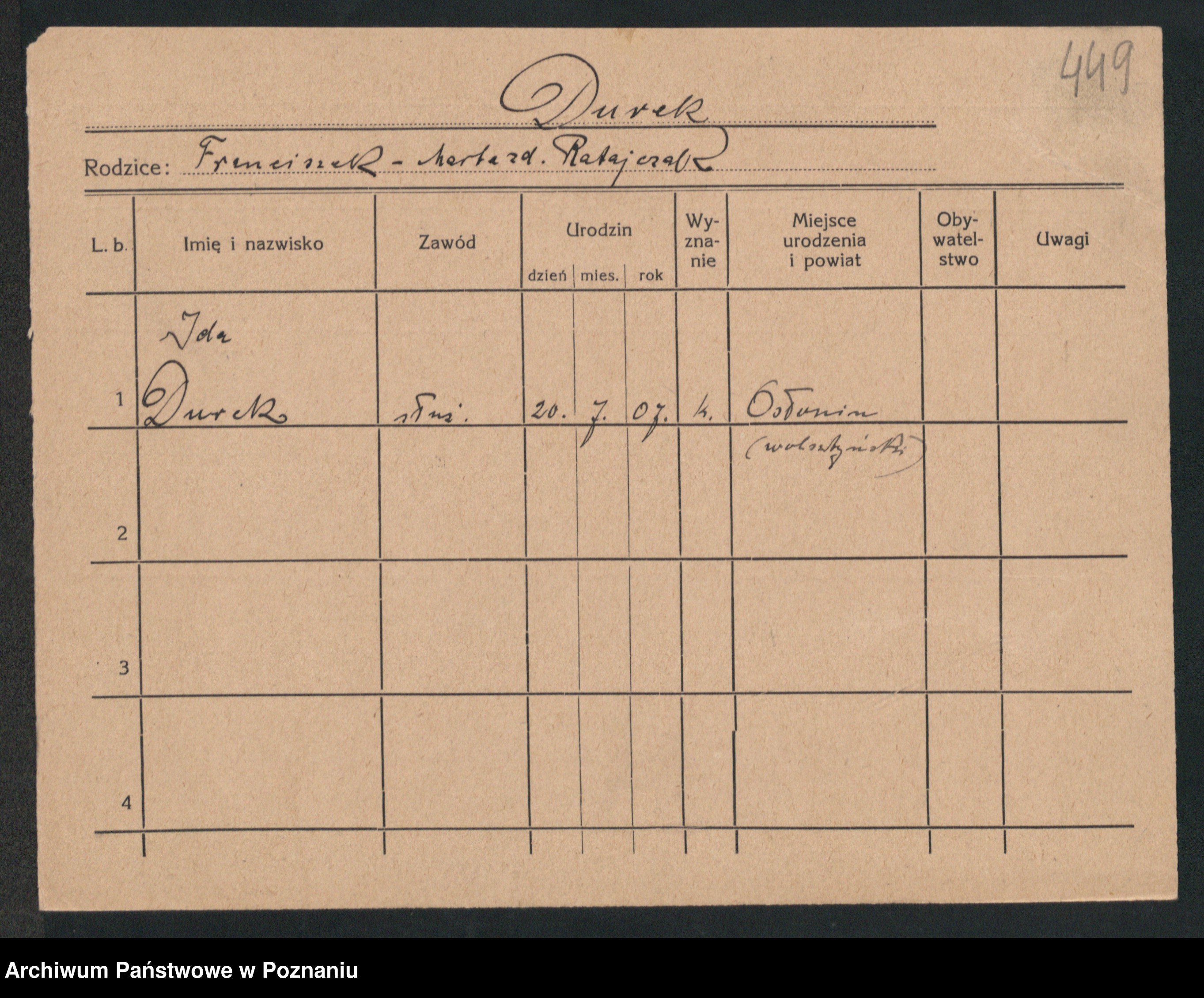 Durda zd. Słowik, Franciszka