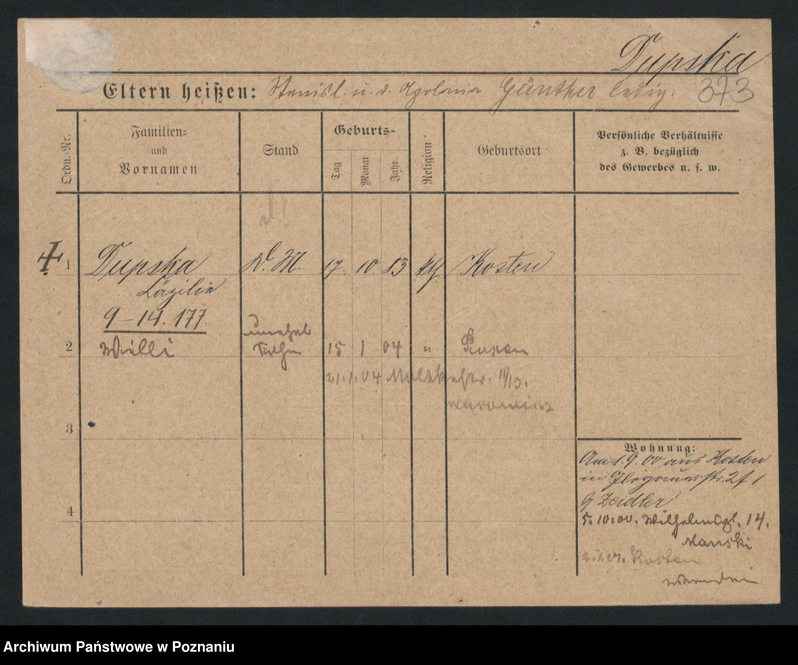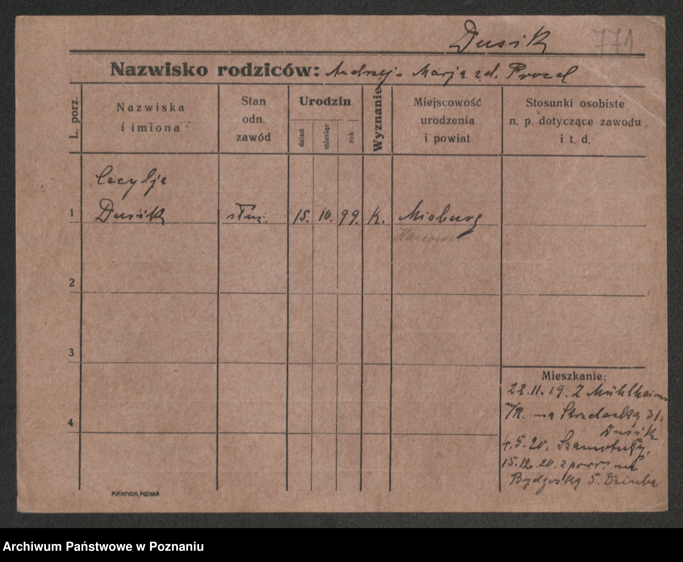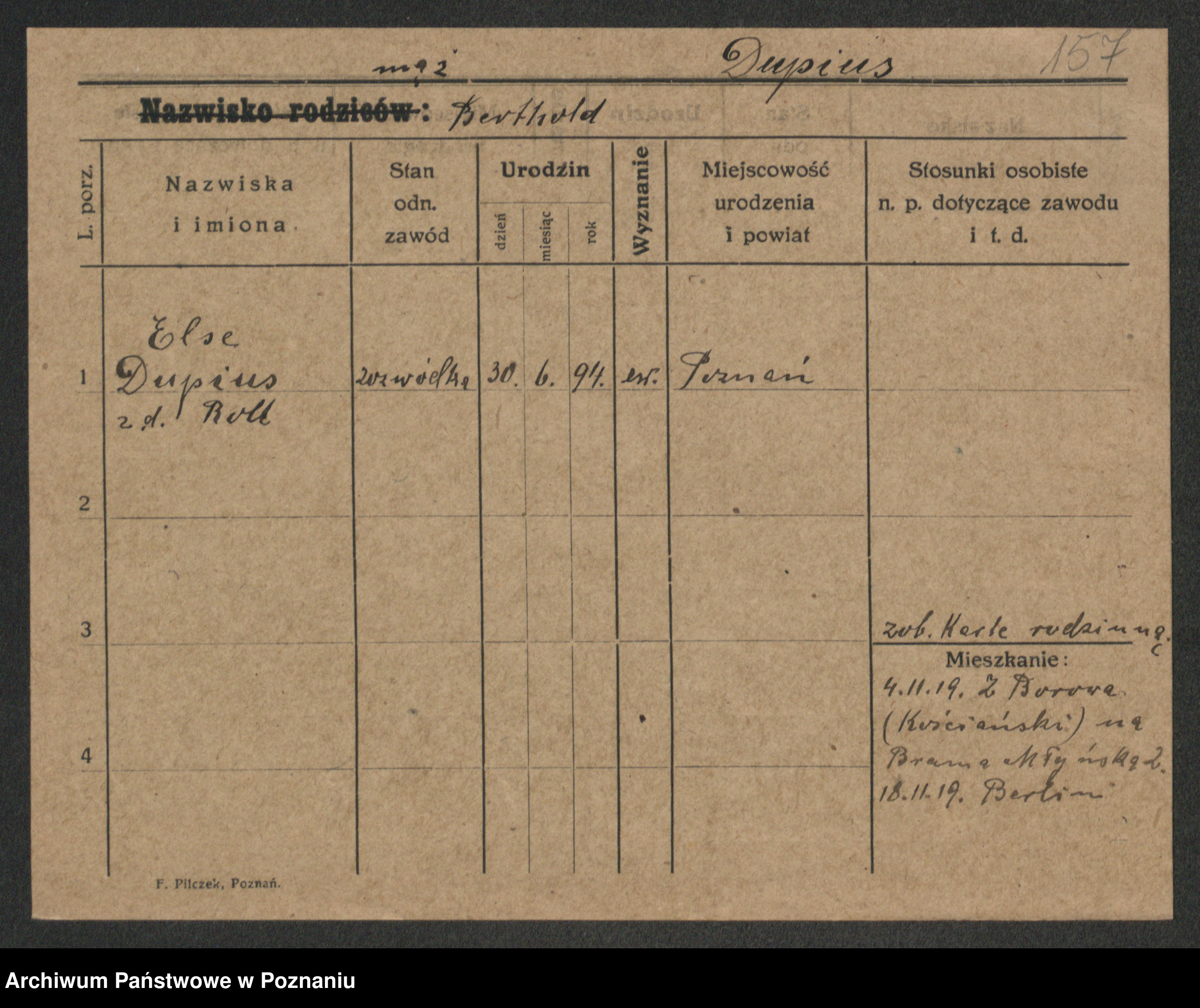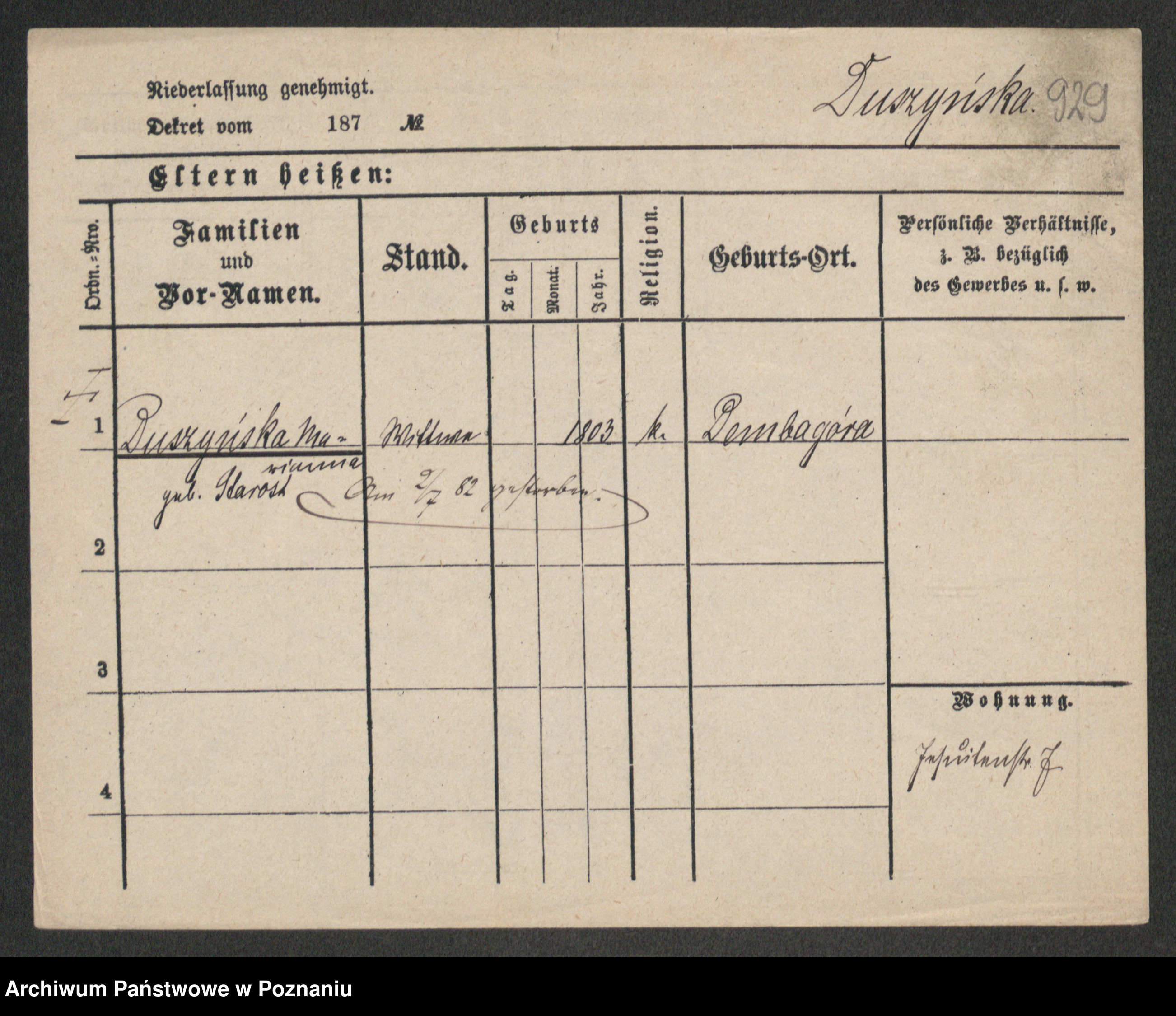 Duszewski zd. Dietzich, Emilie