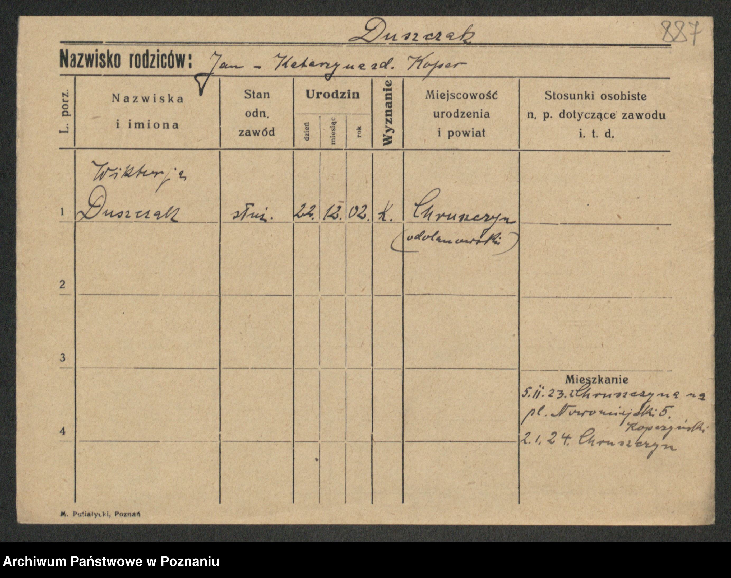 Duszczak, Wiktorja