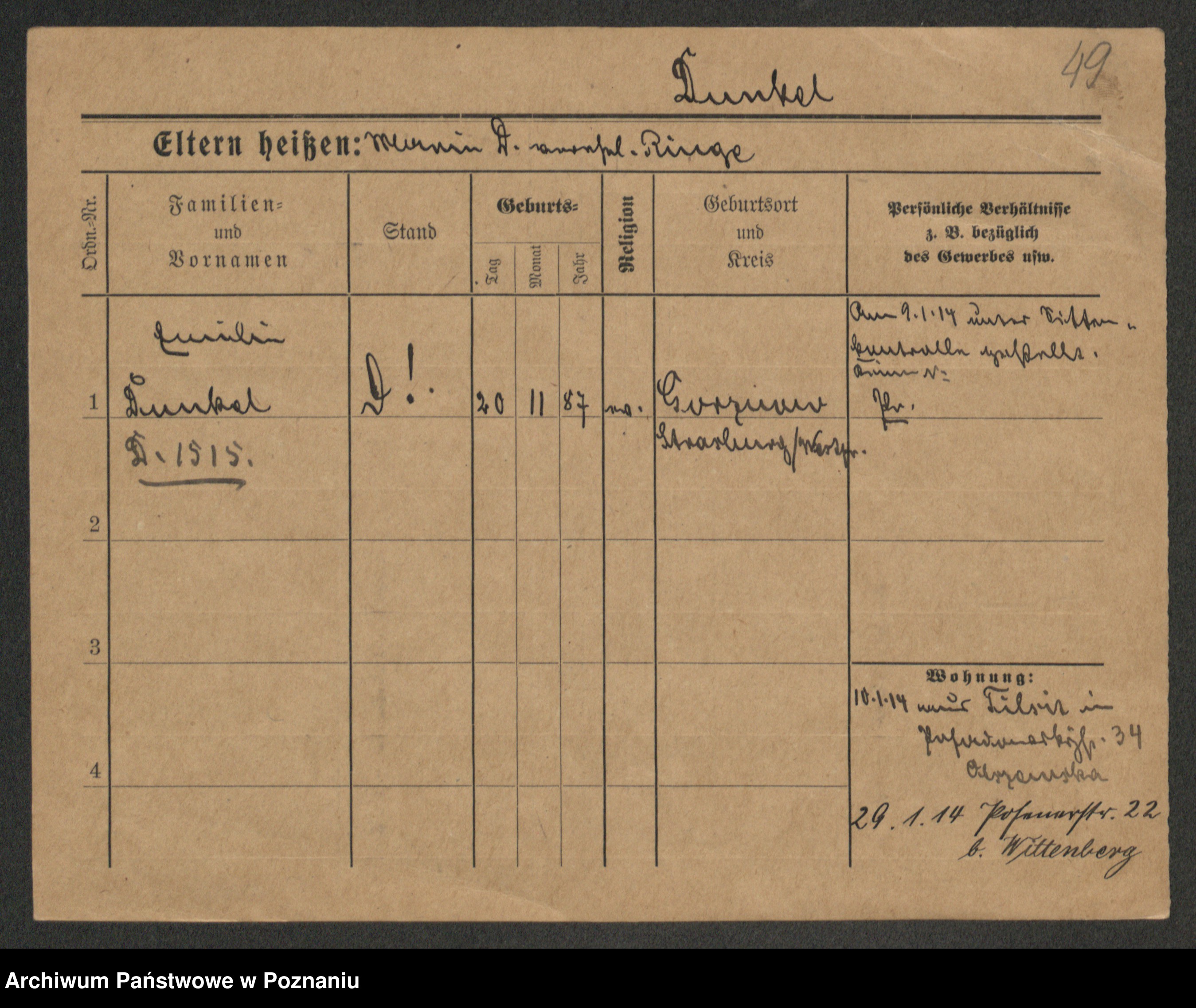 Welling – Dunkel zd. Cieślińska, Filomena