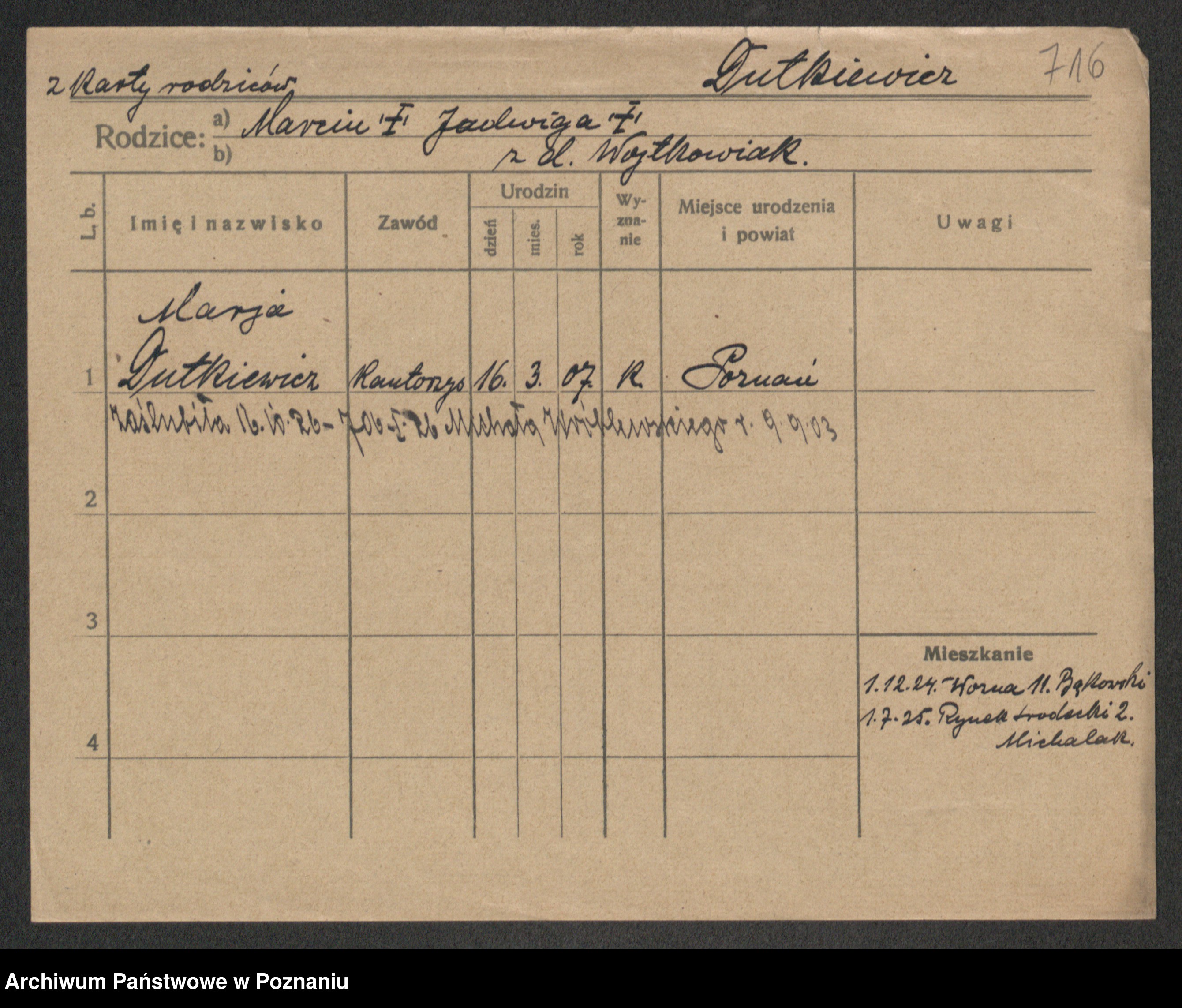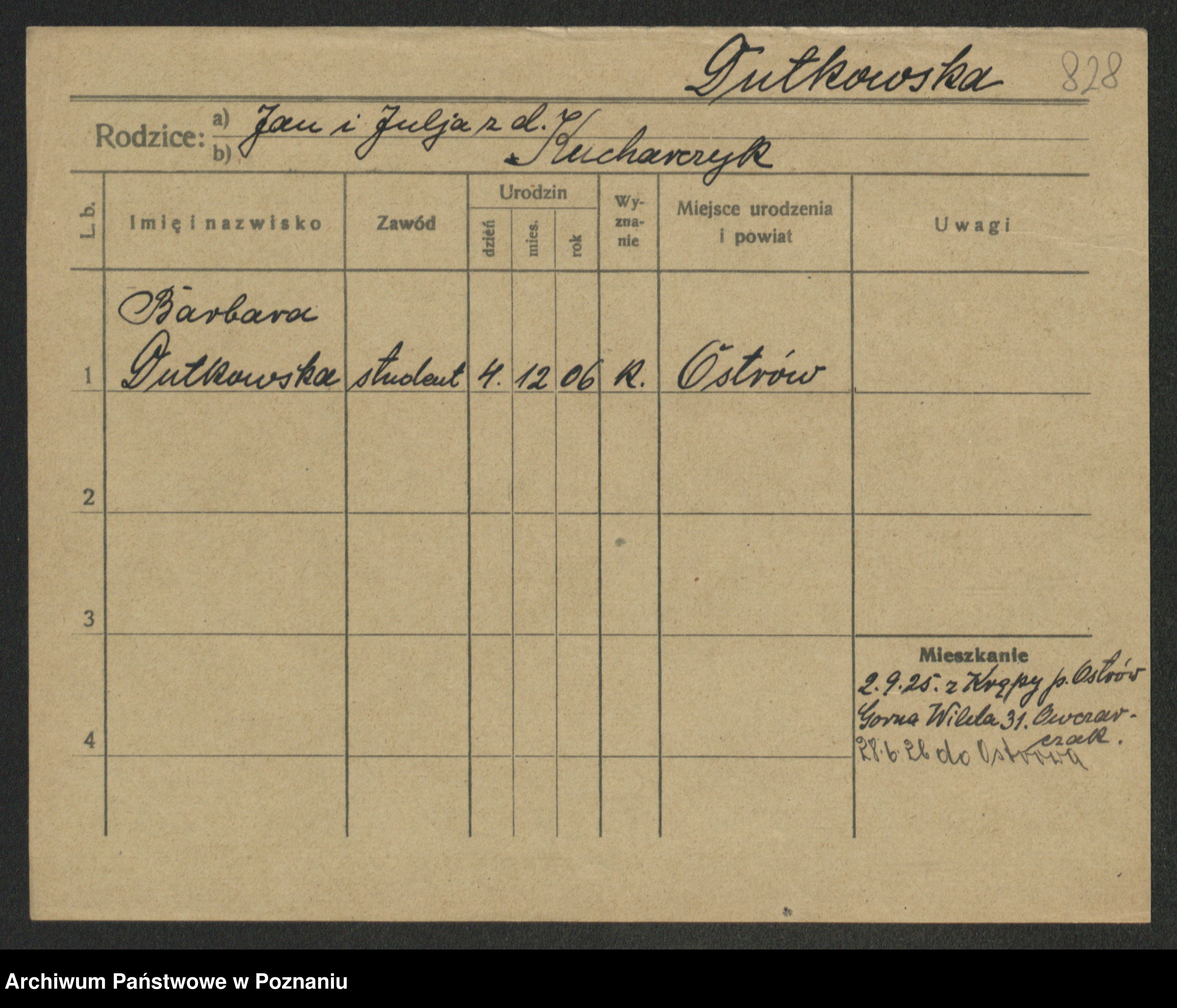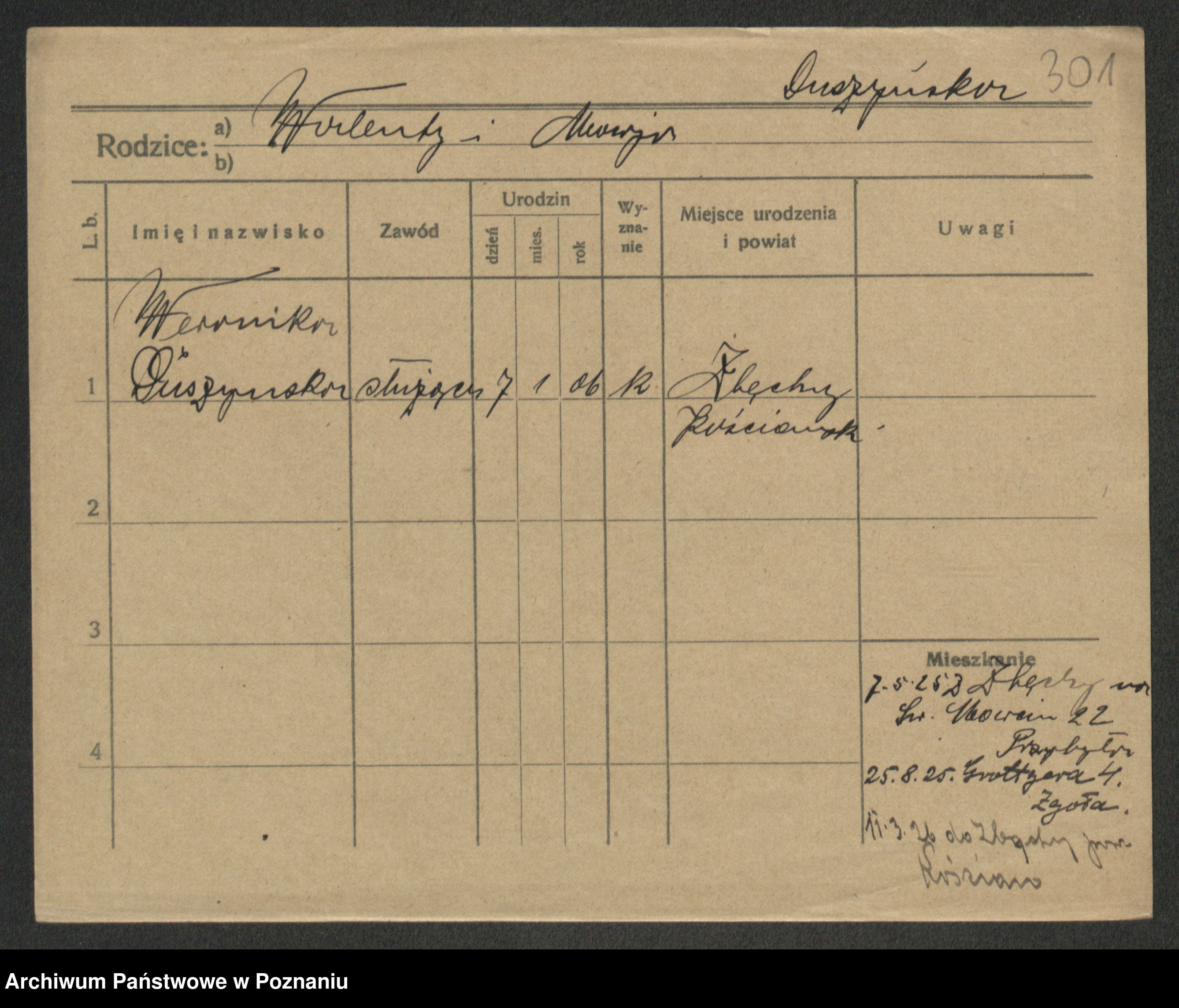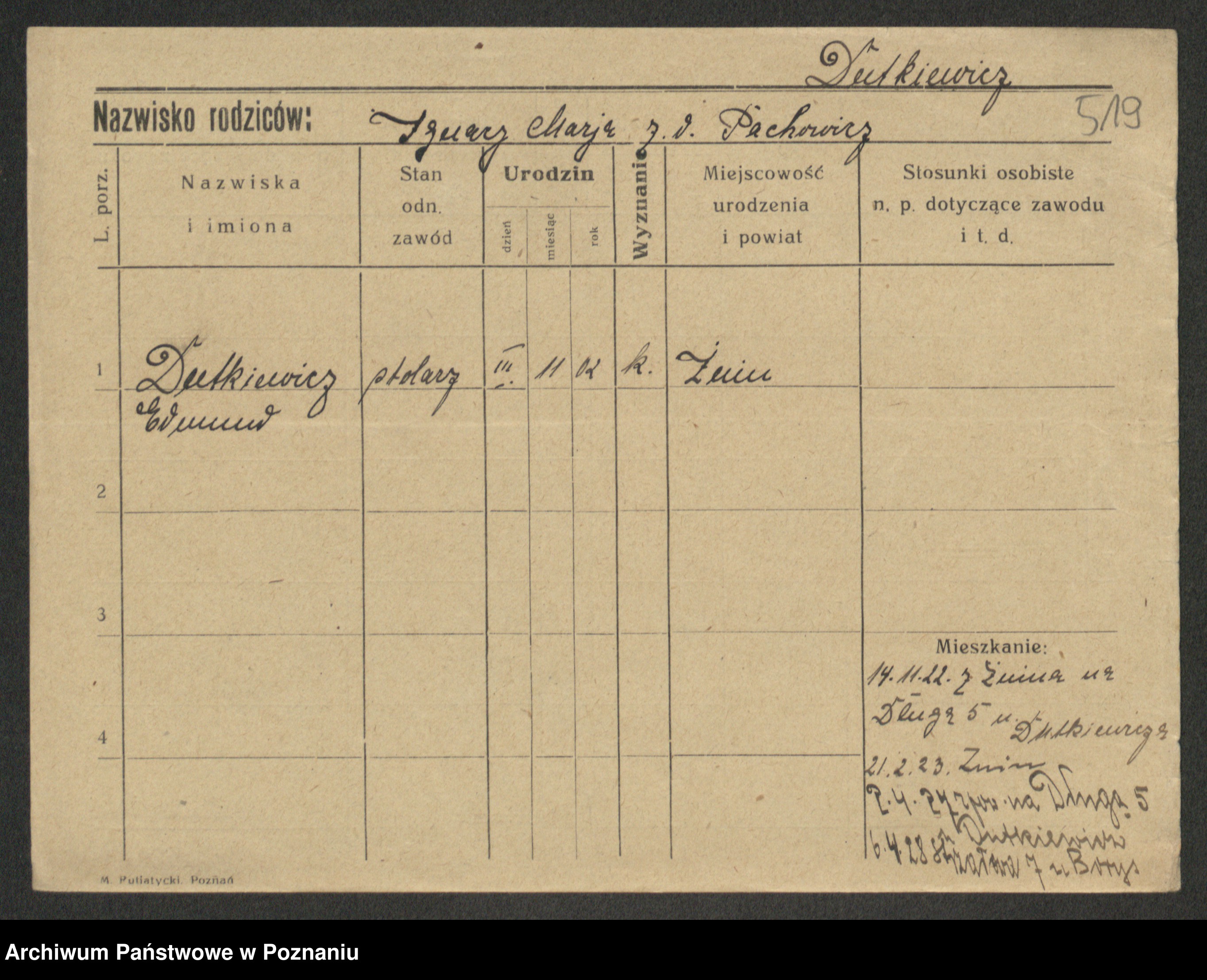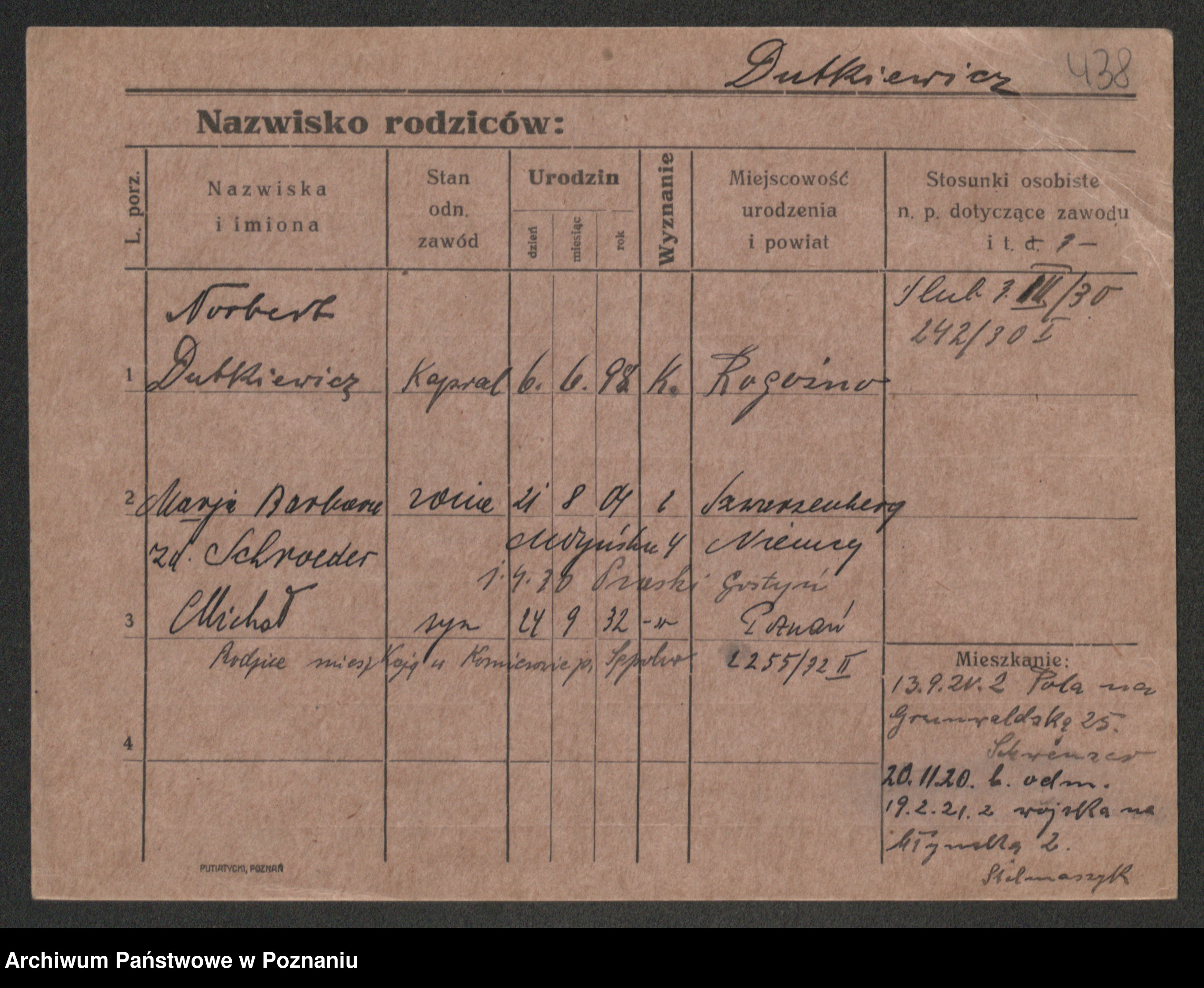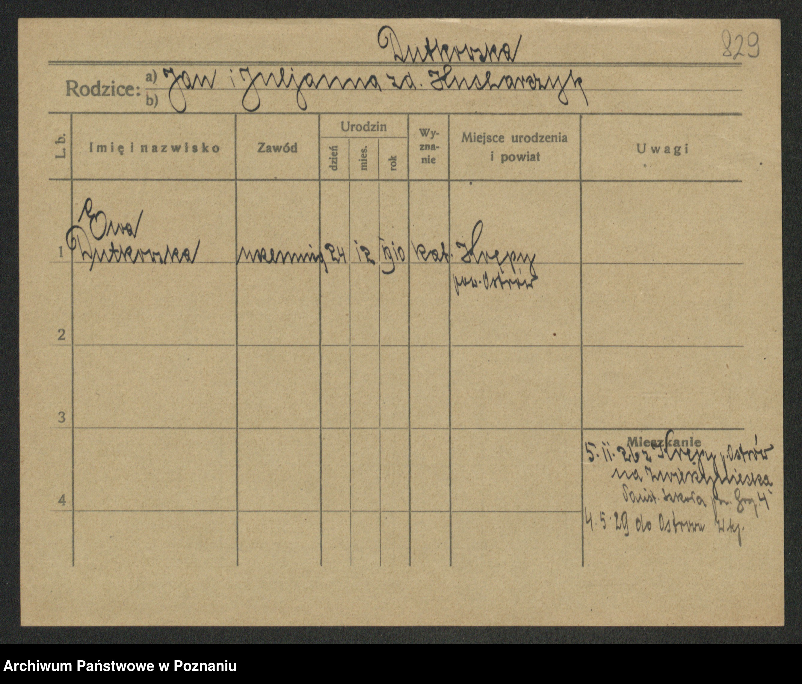 Podgląd karty osobowej dostępny jest po kliknięciu na nazwisko lub ikonkę karty. Można dokonywać powiększenia (ikony na górze) lub przechodzić między kolejnymi skanami (strzałki po bokach).