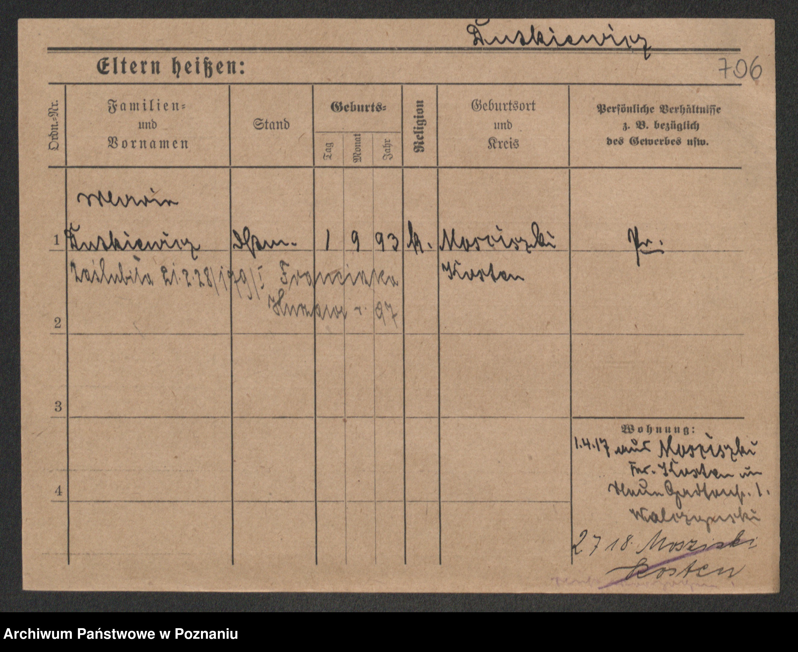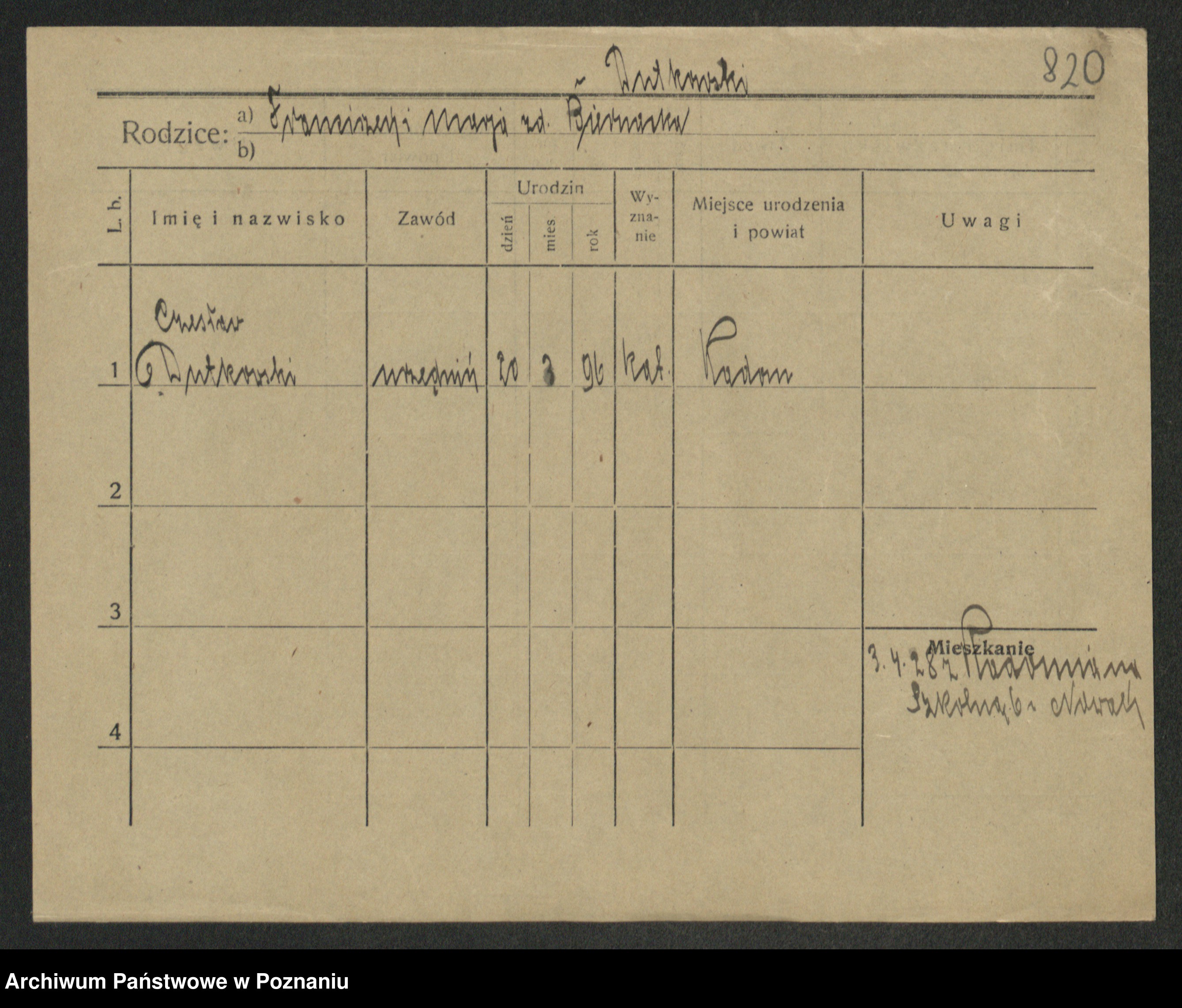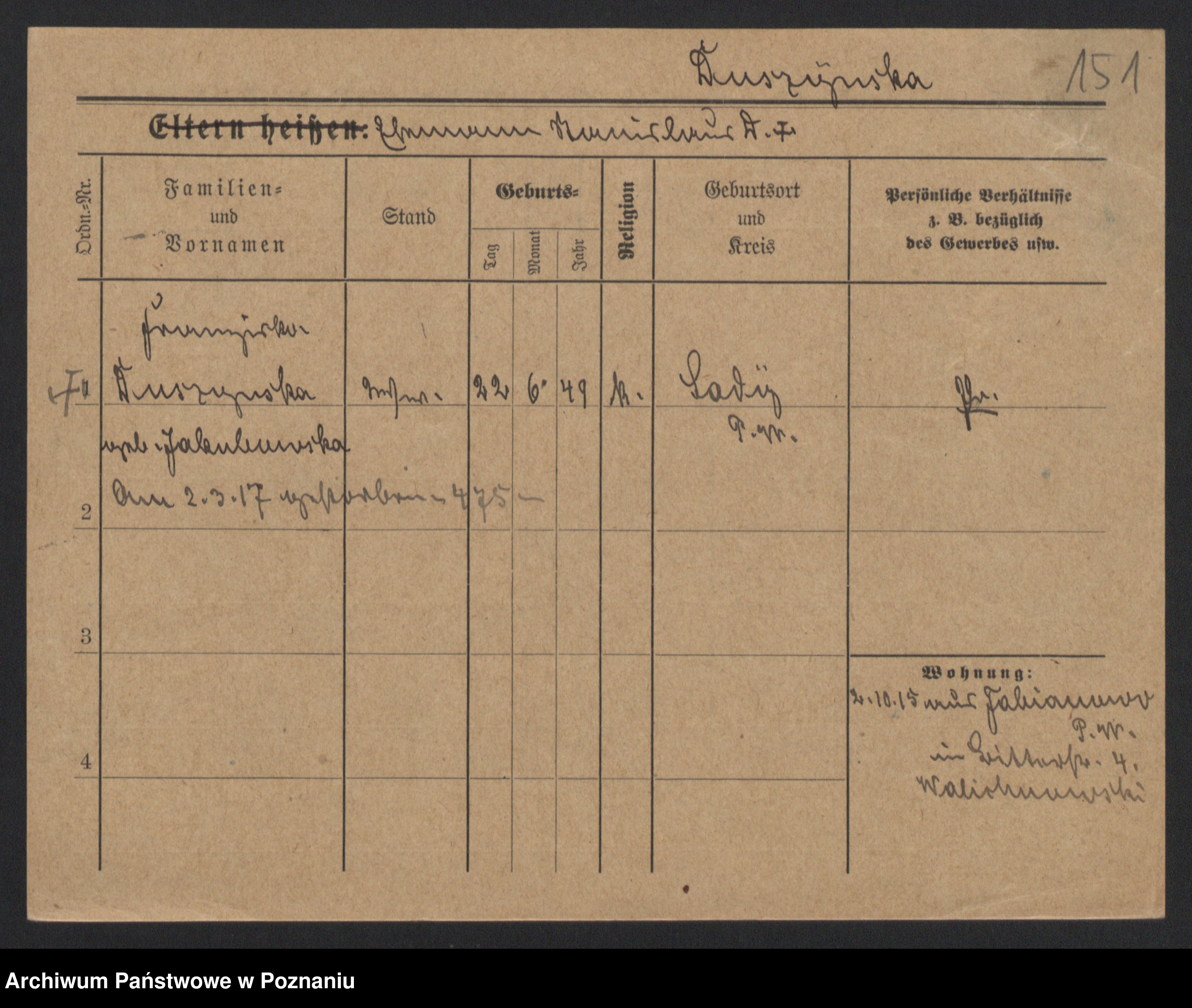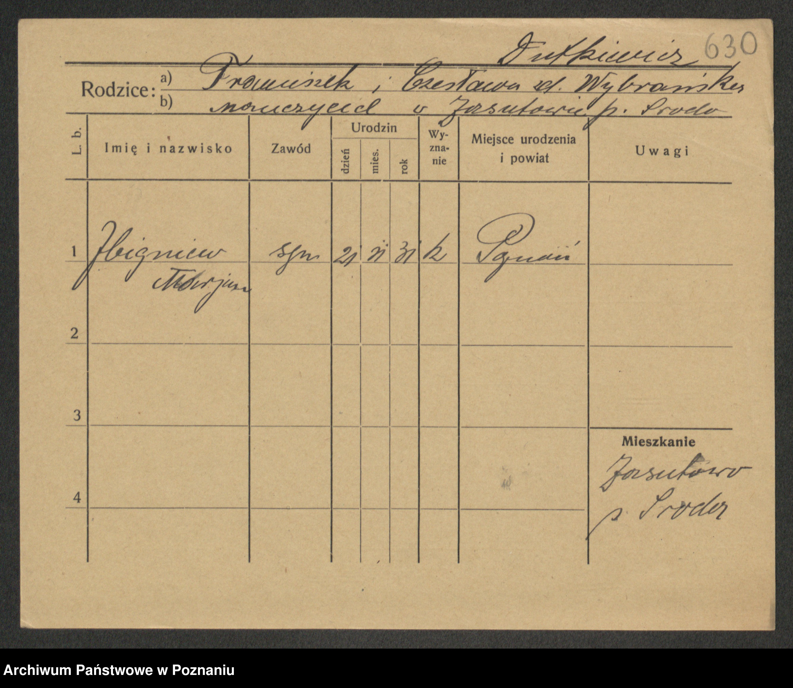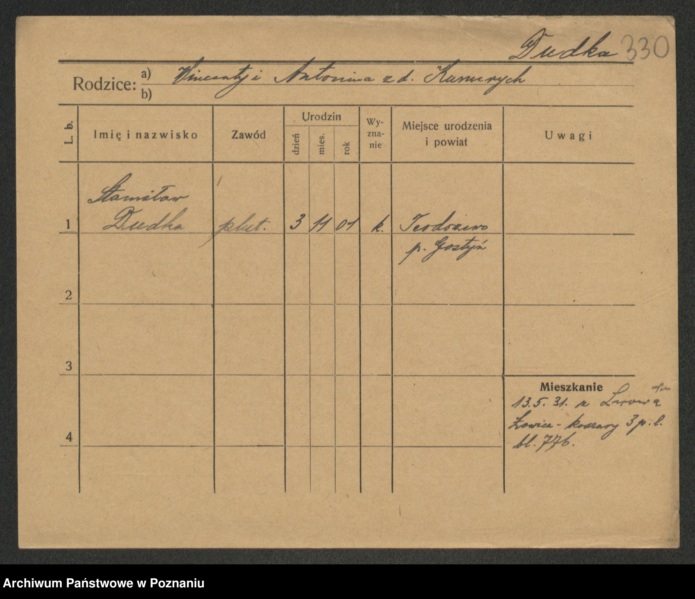 Podgląd karty osobowej dostępny jest po kliknięciu na nazwisko lub ikonkę karty. Można dokonywać powiększenia (ikony na górze) lub przechodzić między kolejnymi skanami (strzałki po bokach).