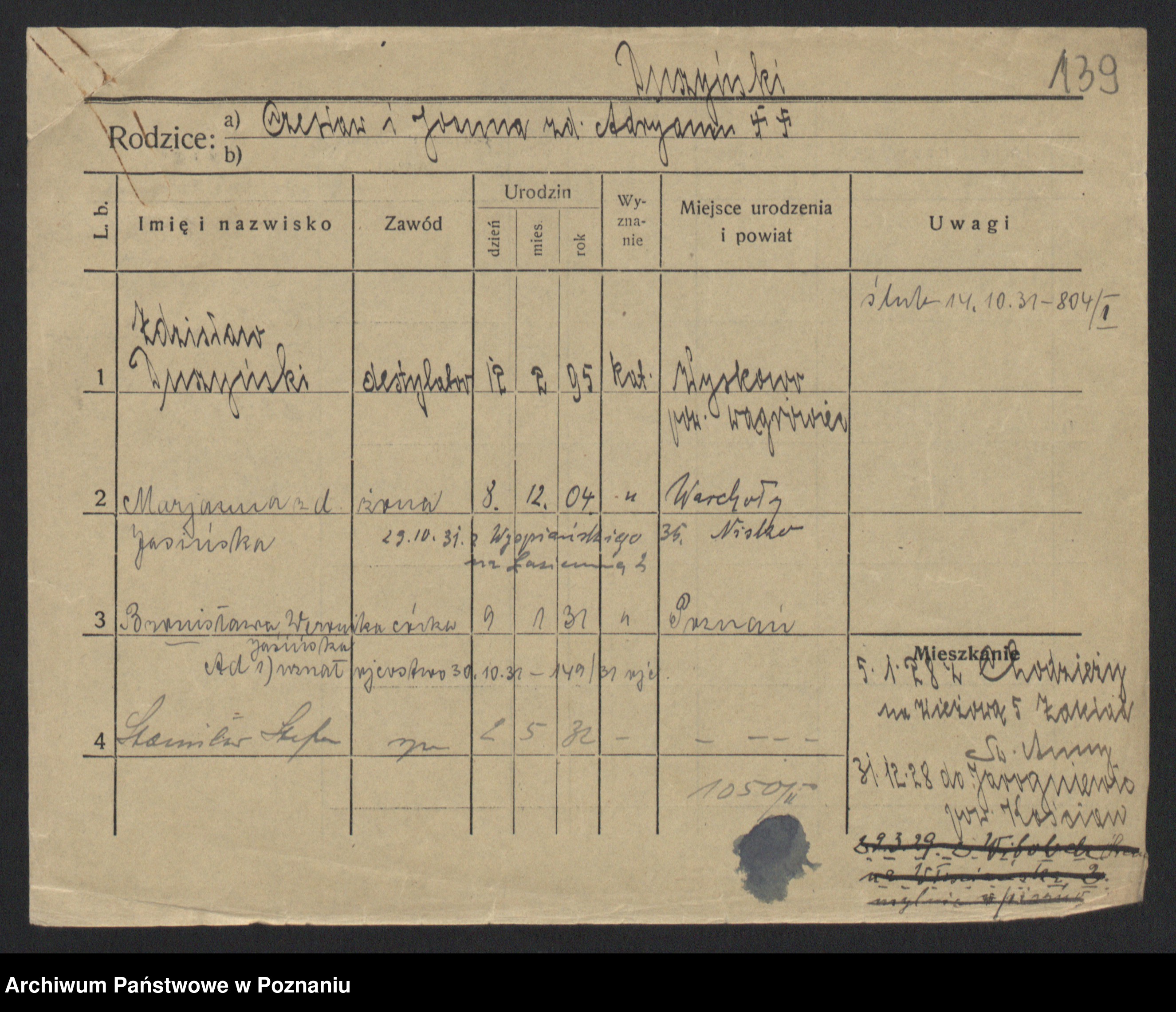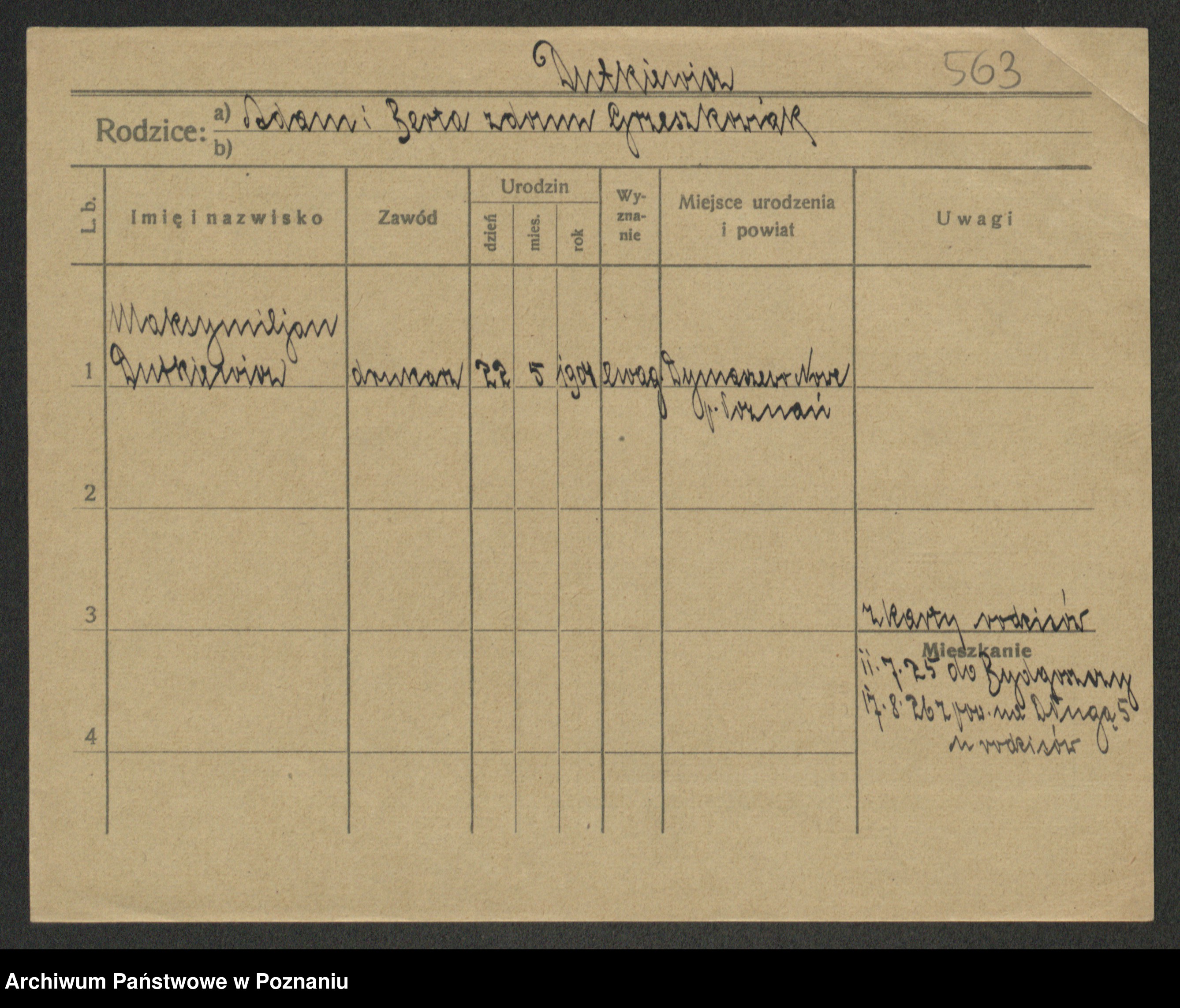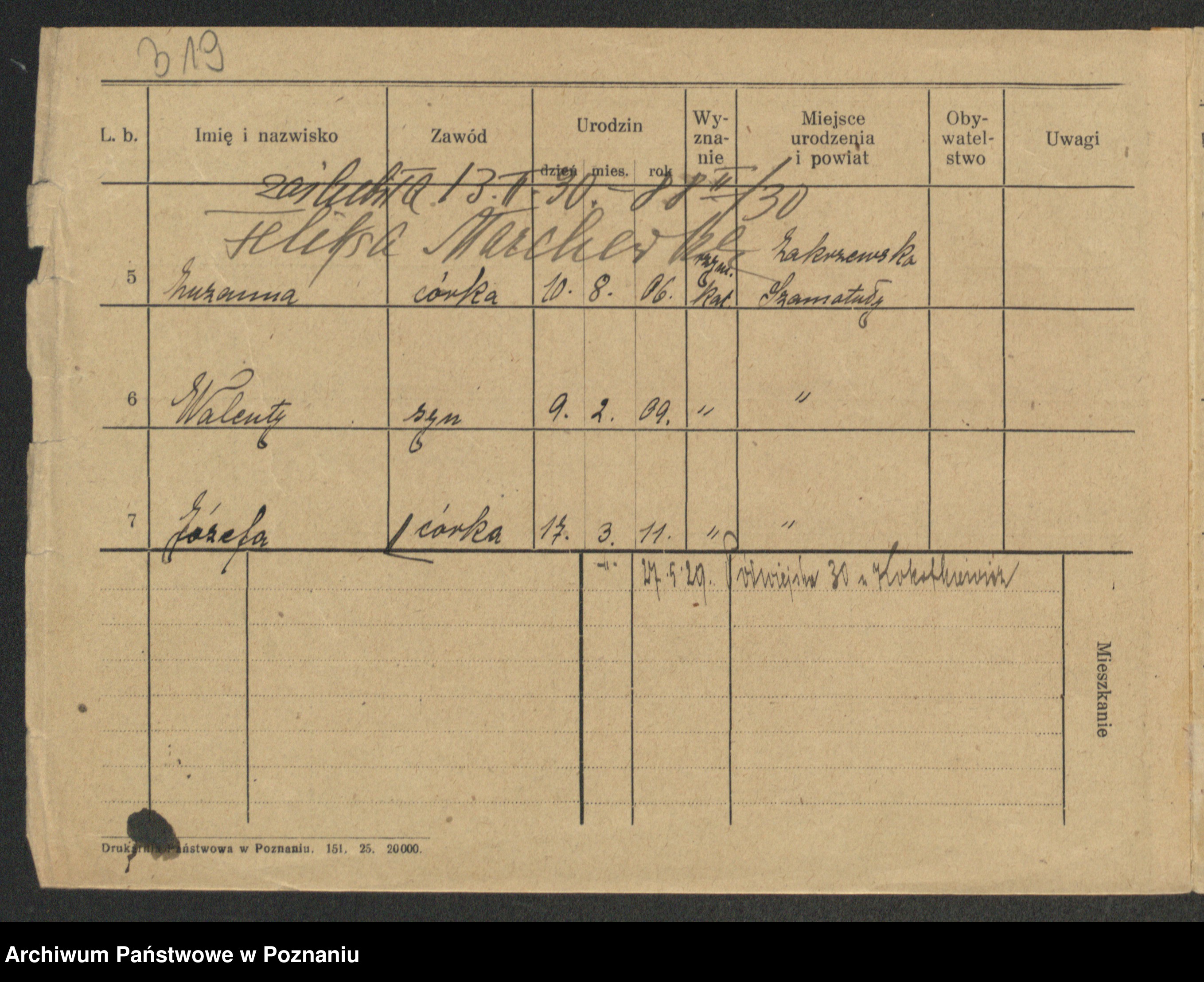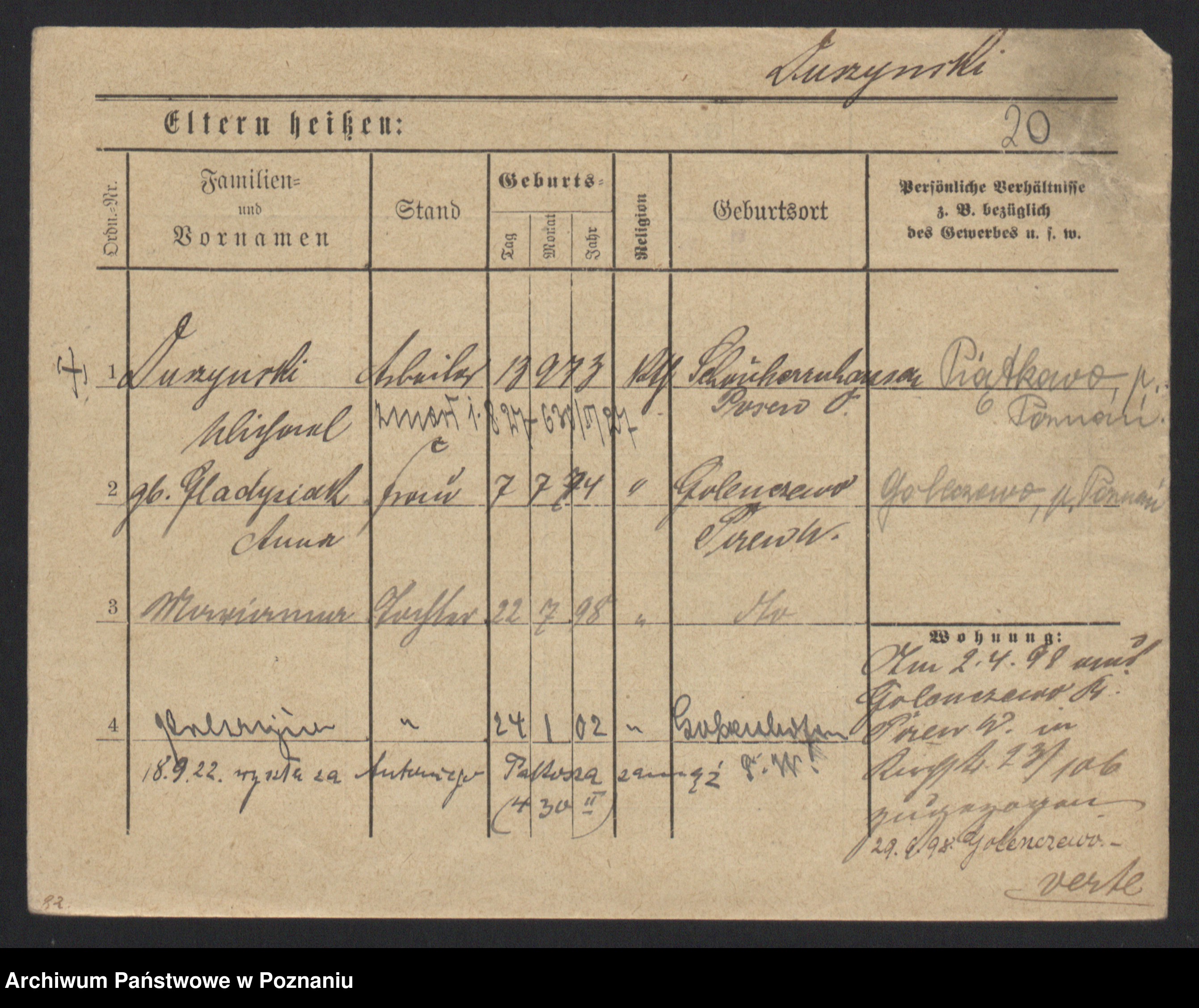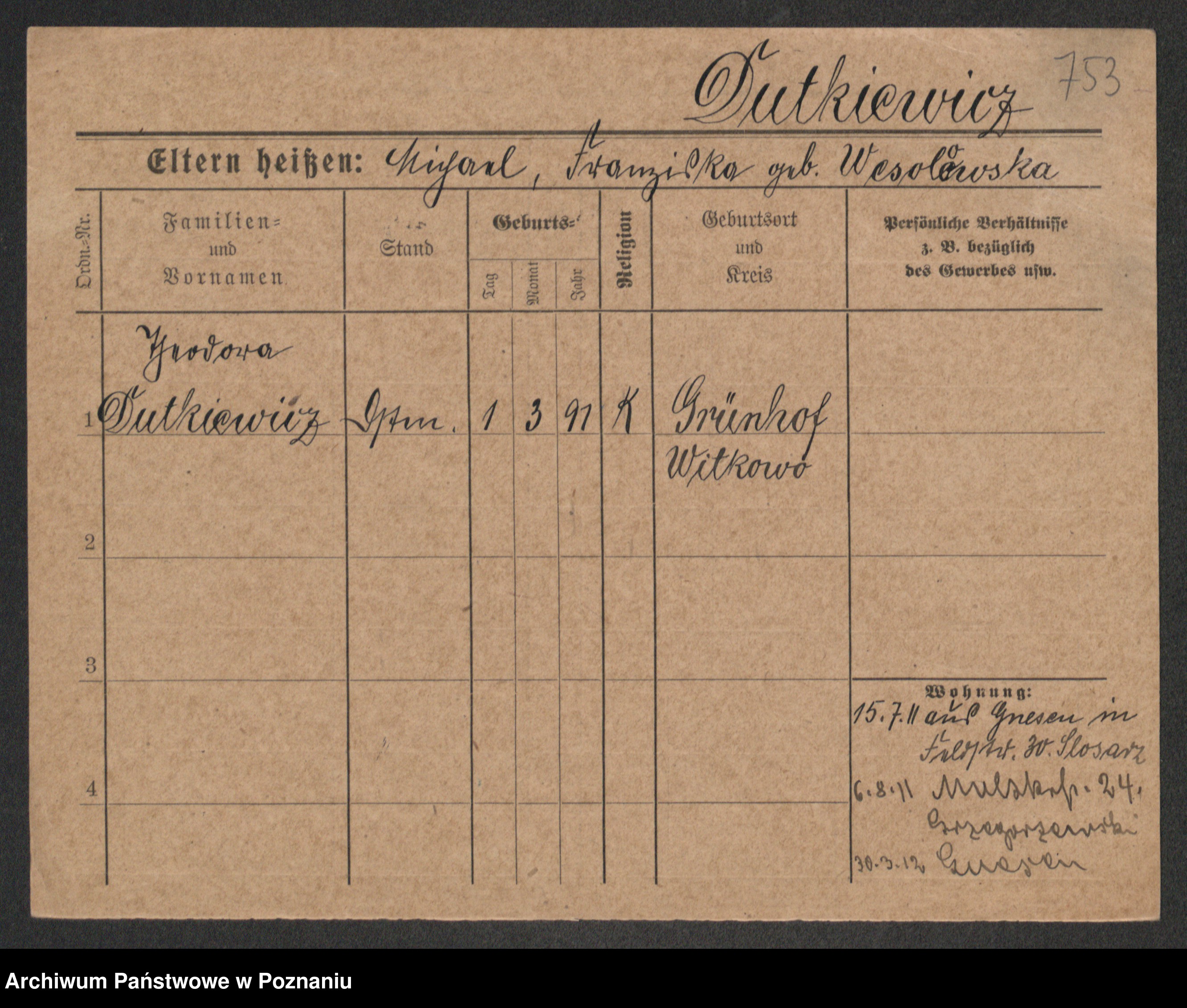 Podgląd karty osobowej dostępny jest po kliknięciu na nazwisko lub ikonkę karty. Można dokonywać powiększenia (ikony na górze) lub przechodzić między kolejnymi skanami (strzałki po bokach).