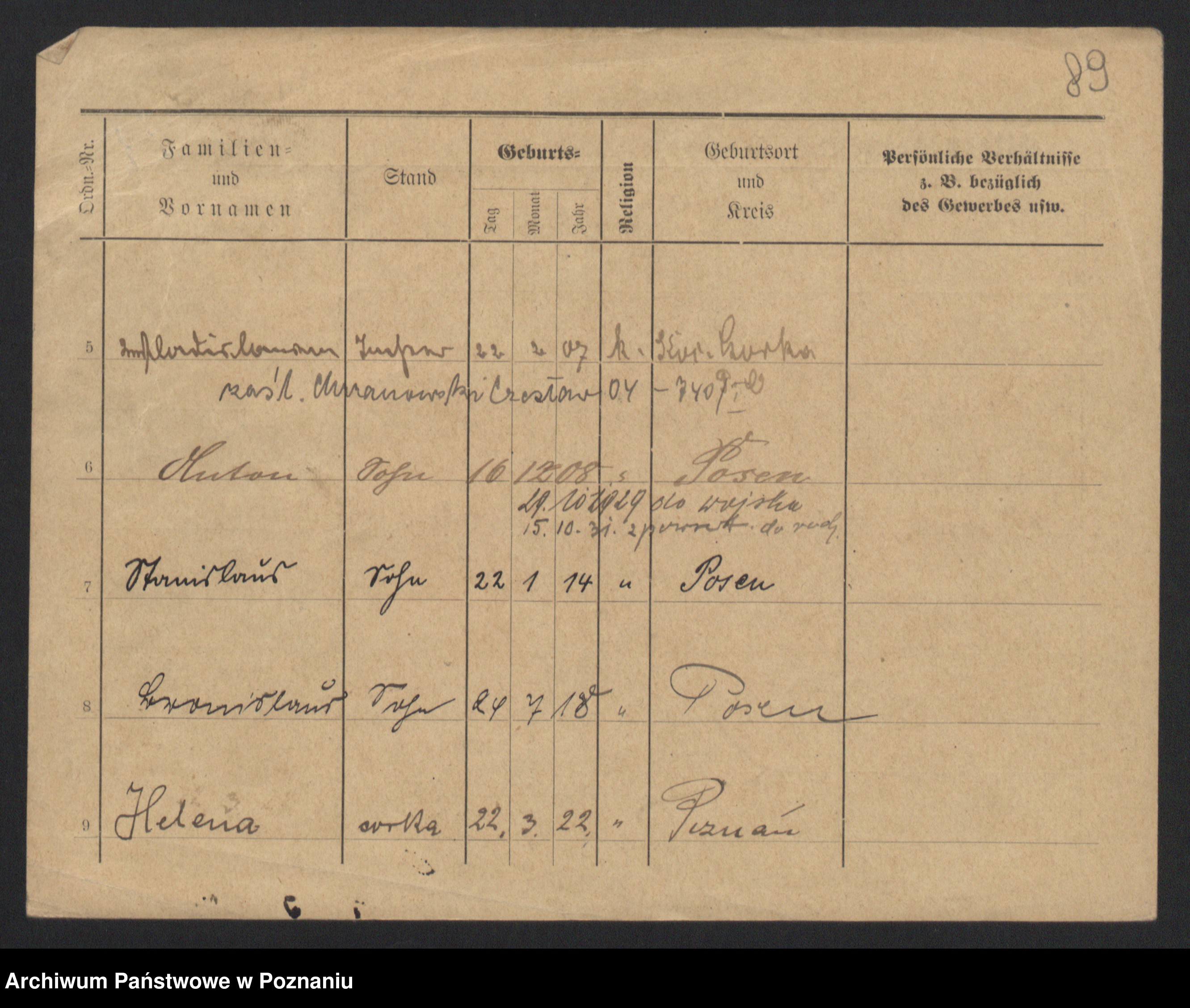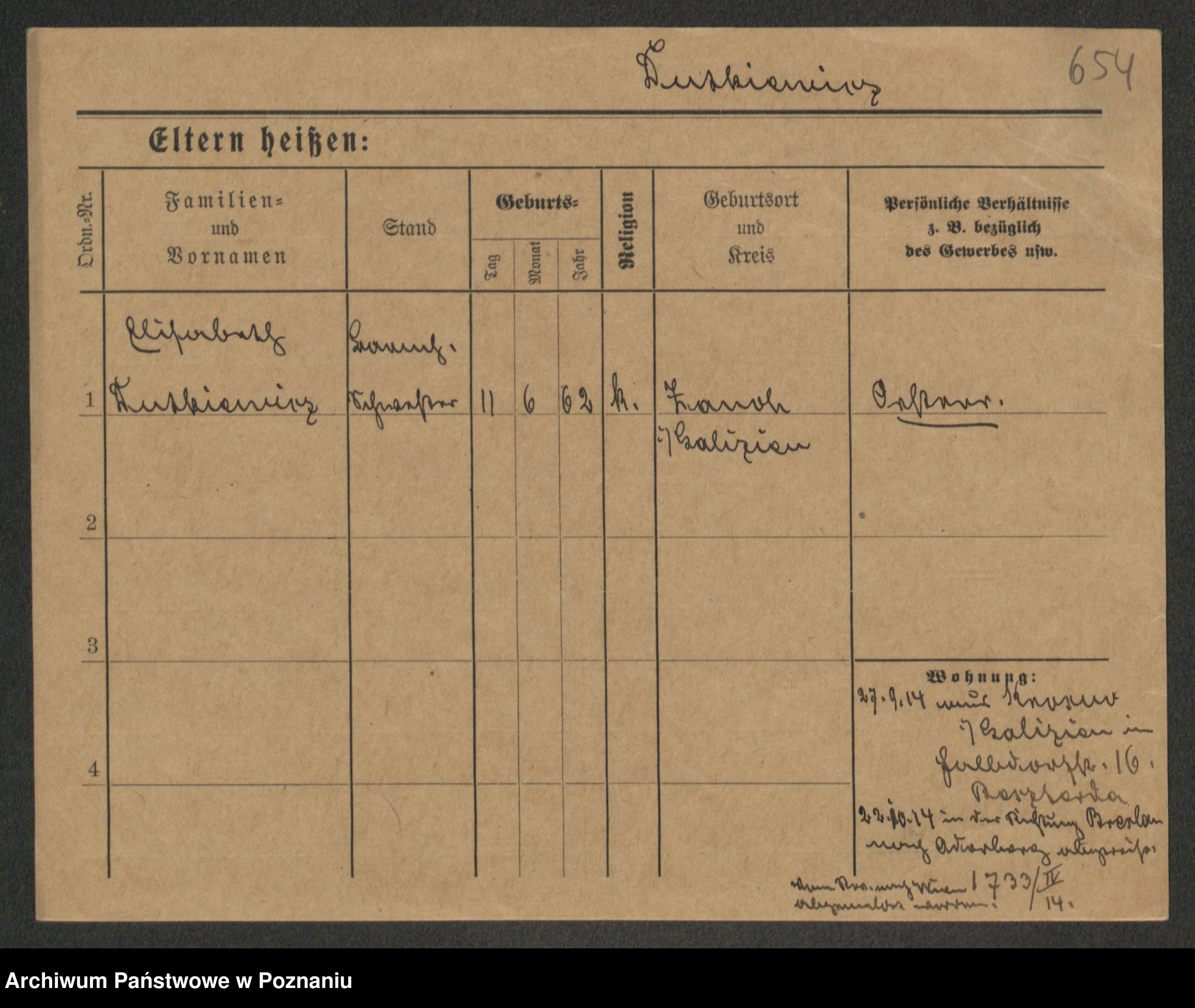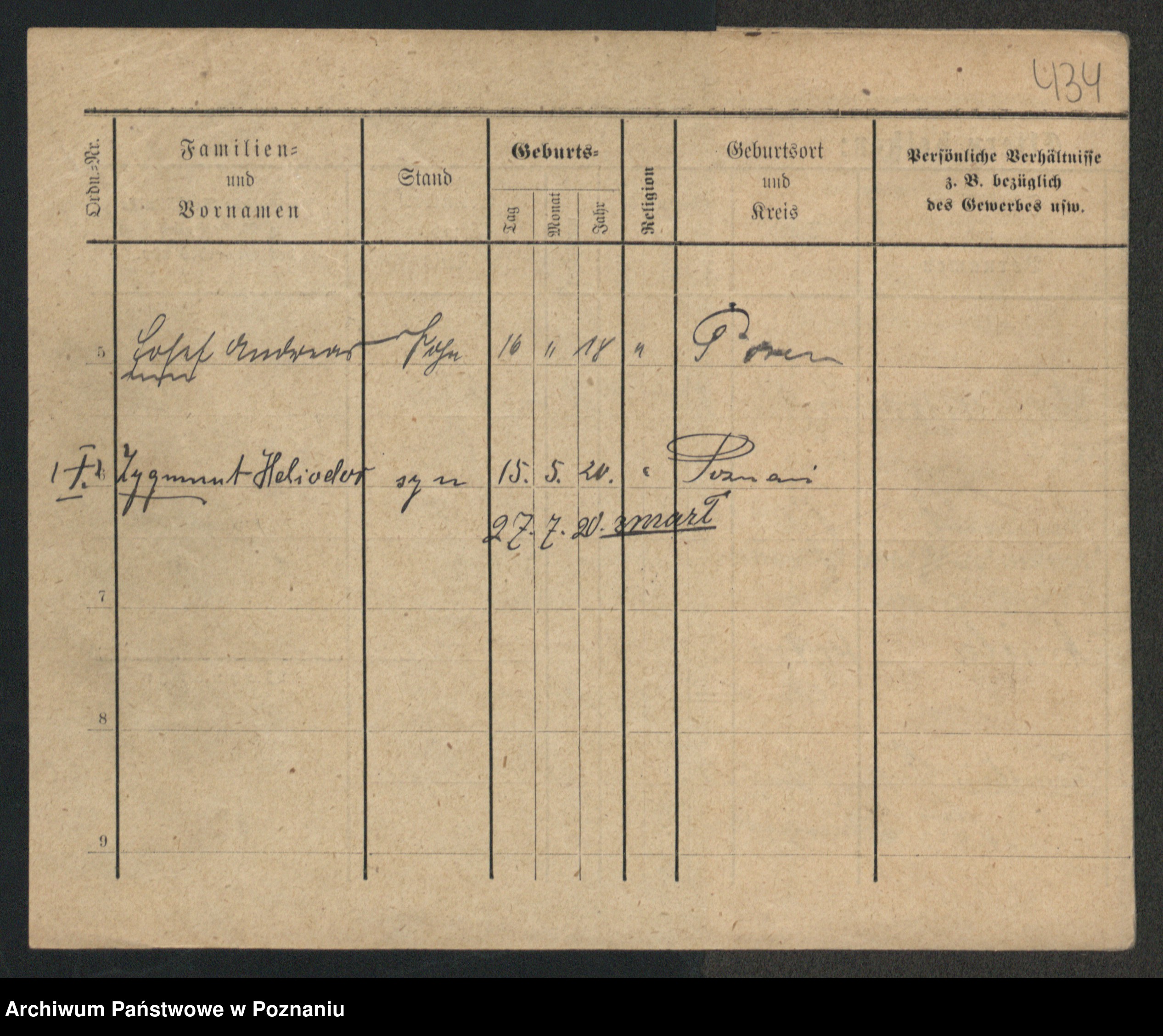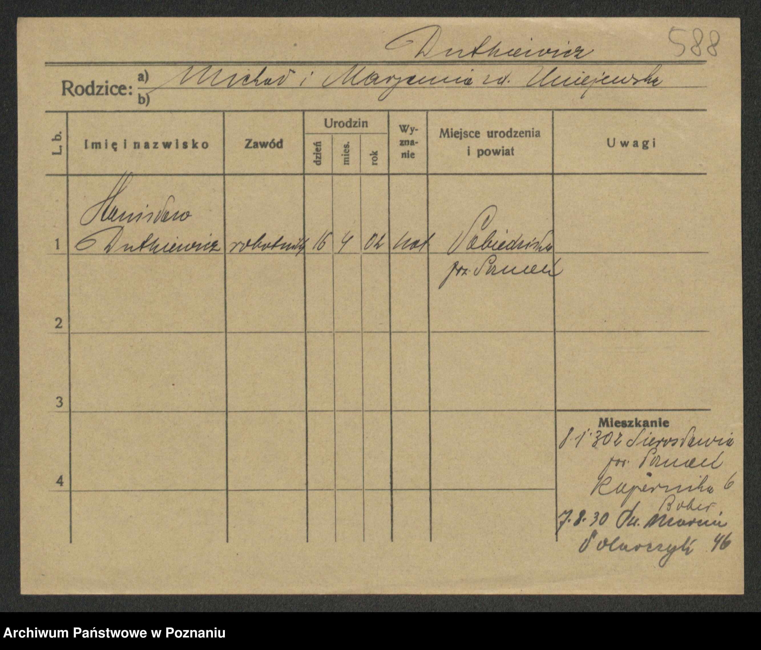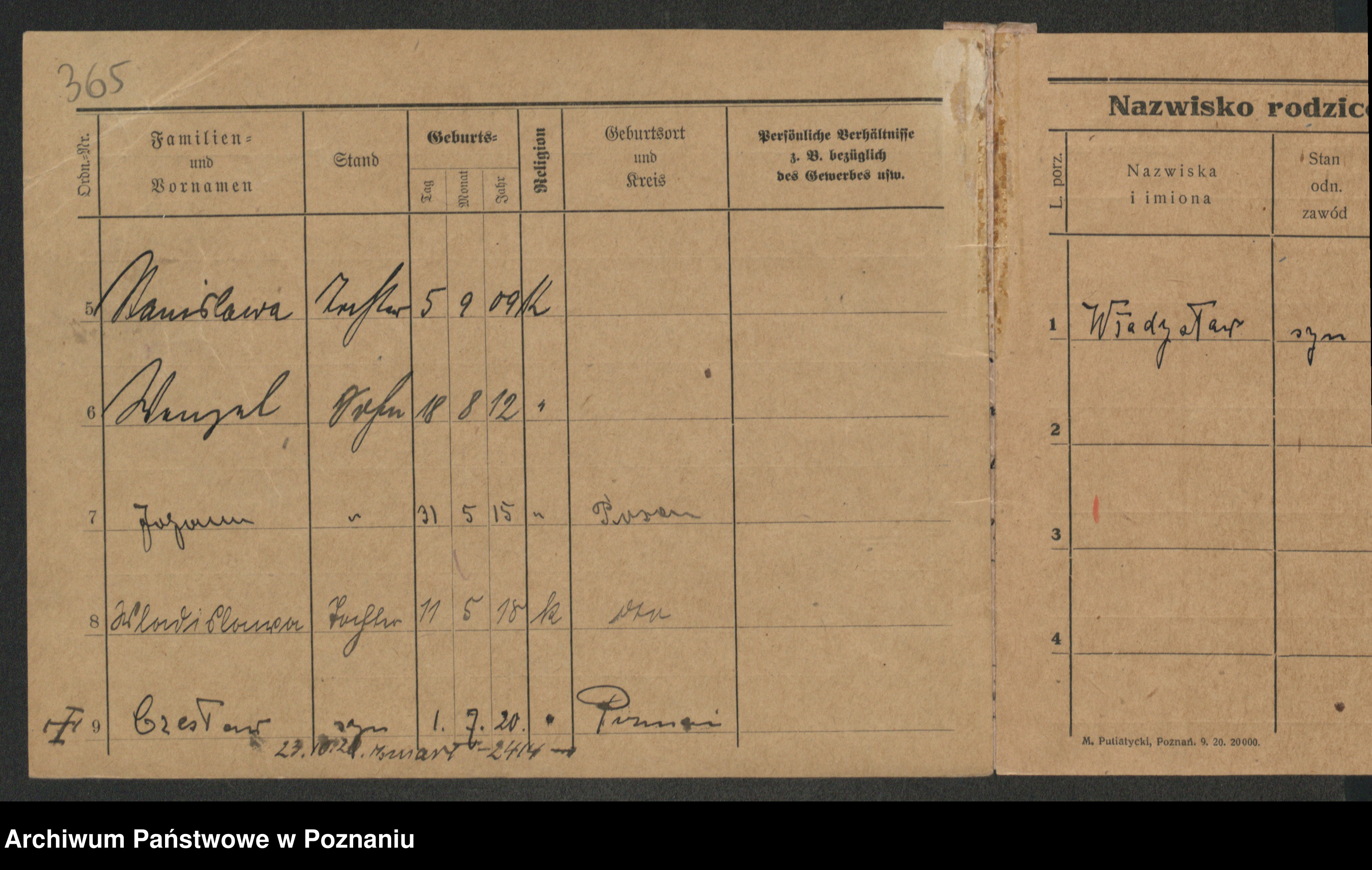 Podgląd karty osobowej dostępny jest po kliknięciu na nazwisko lub ikonkę karty. Można dokonywać powiększenia (ikony na górze) lub przechodzić między kolejnymi skanami (strzałki po bokach).