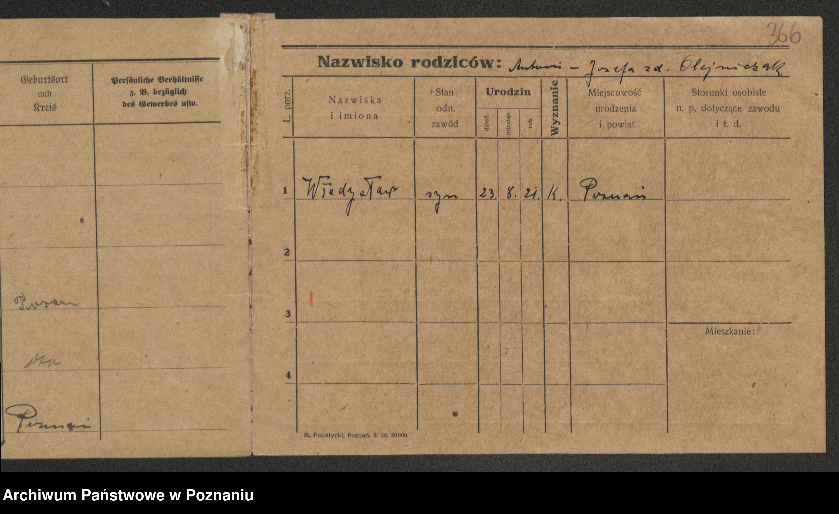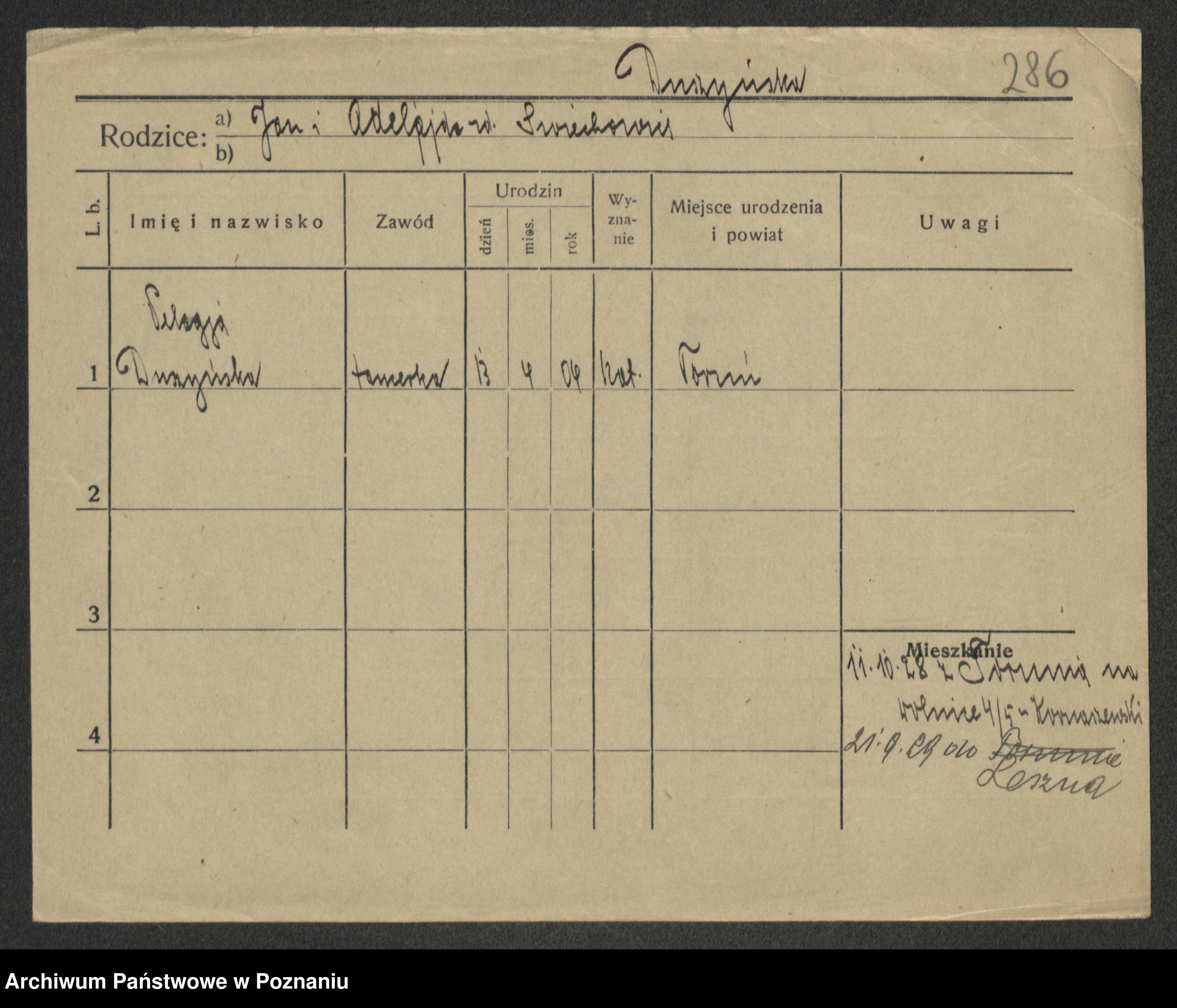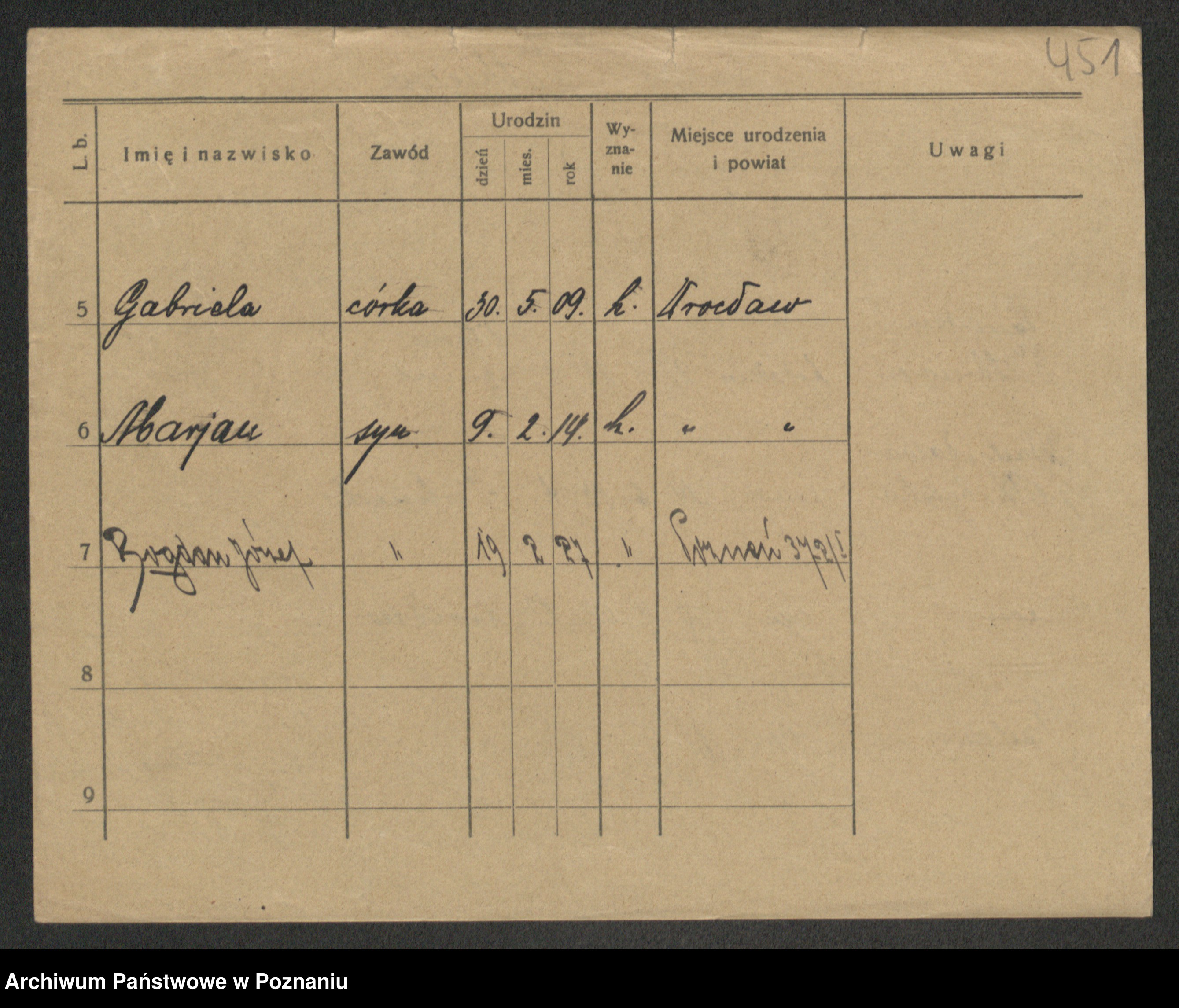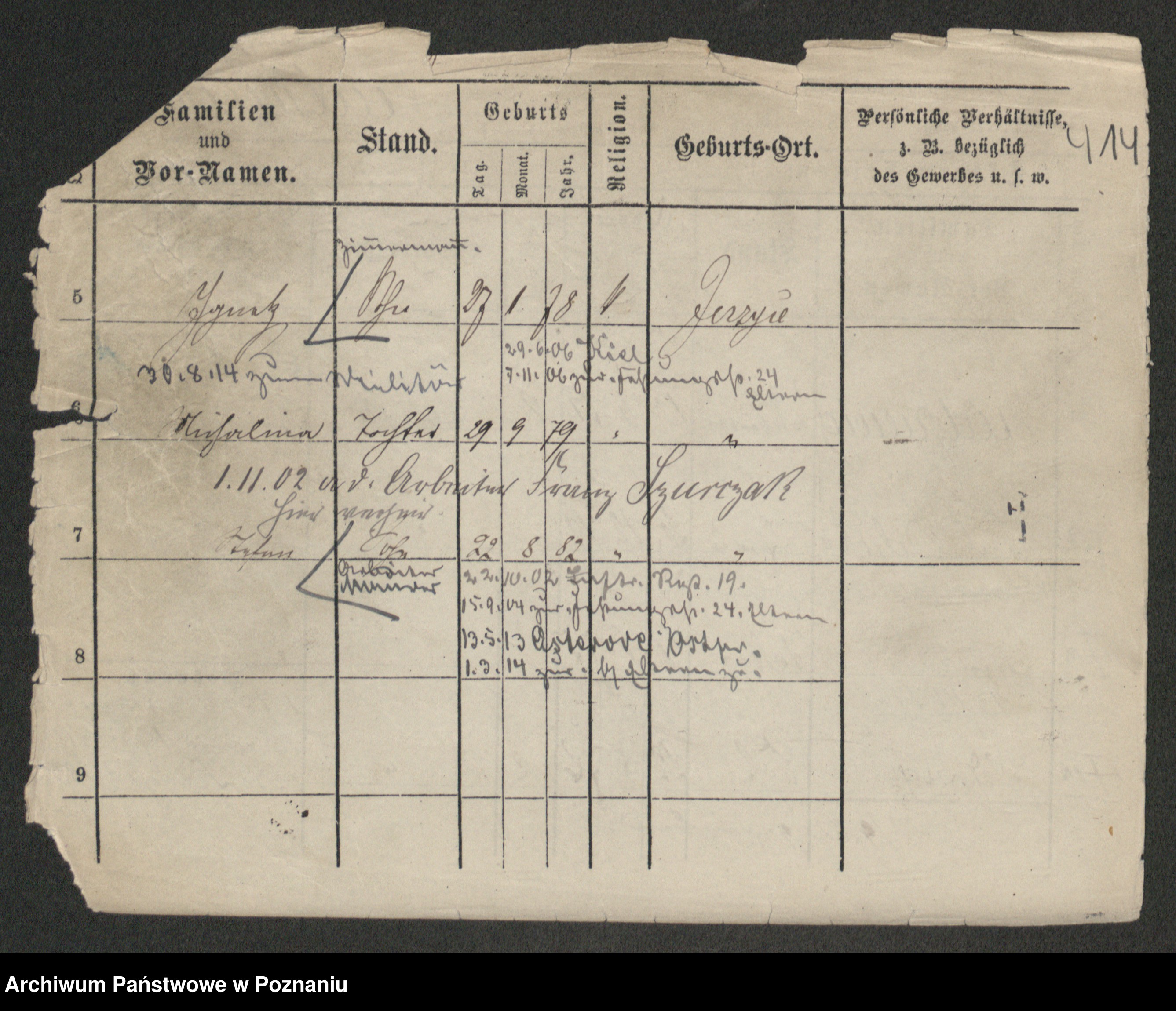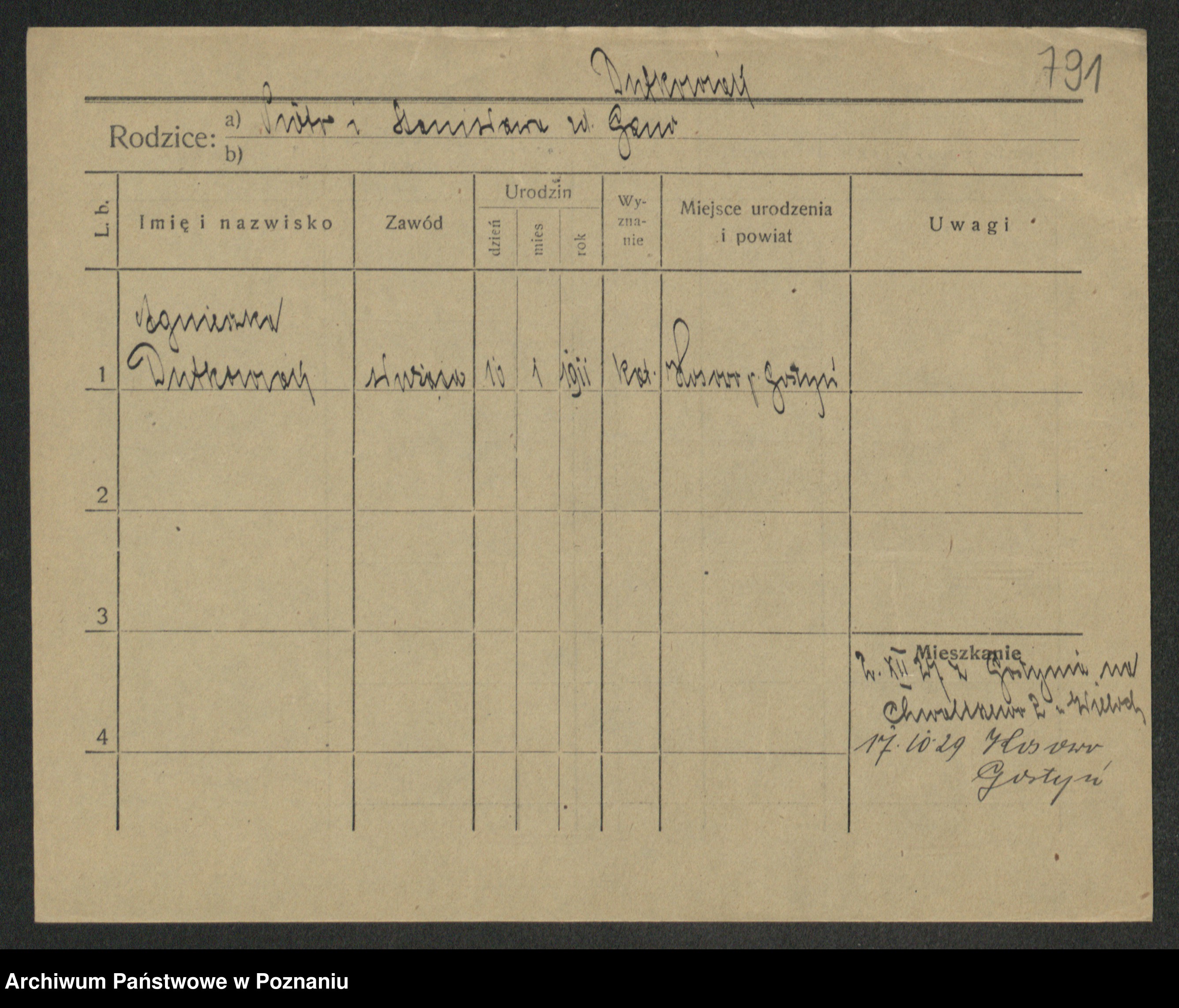 Podgląd karty osobowej dostępny jest po kliknięciu na nazwisko lub ikonkę karty. Można dokonywać powiększenia (ikony na górze) lub przechodzić między kolejnymi skanami (strzałki po bokach).