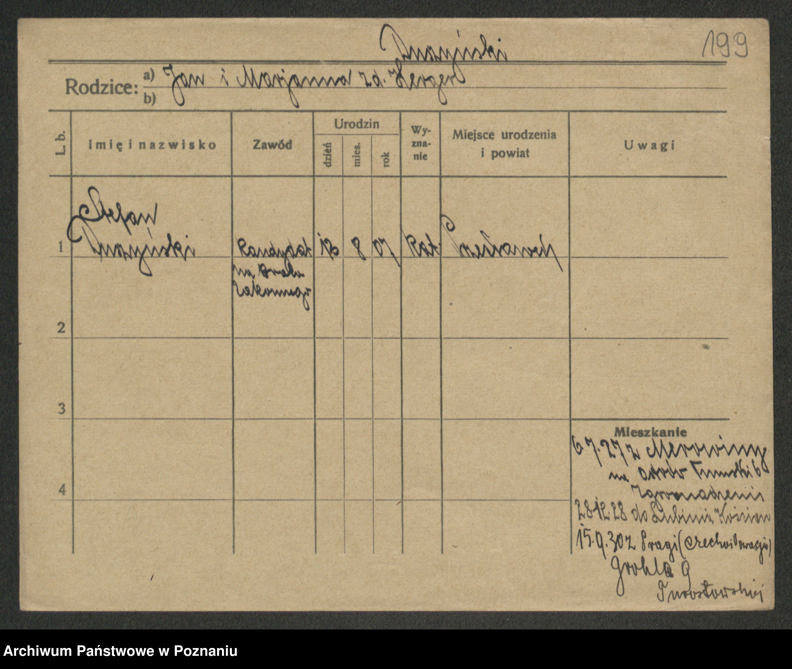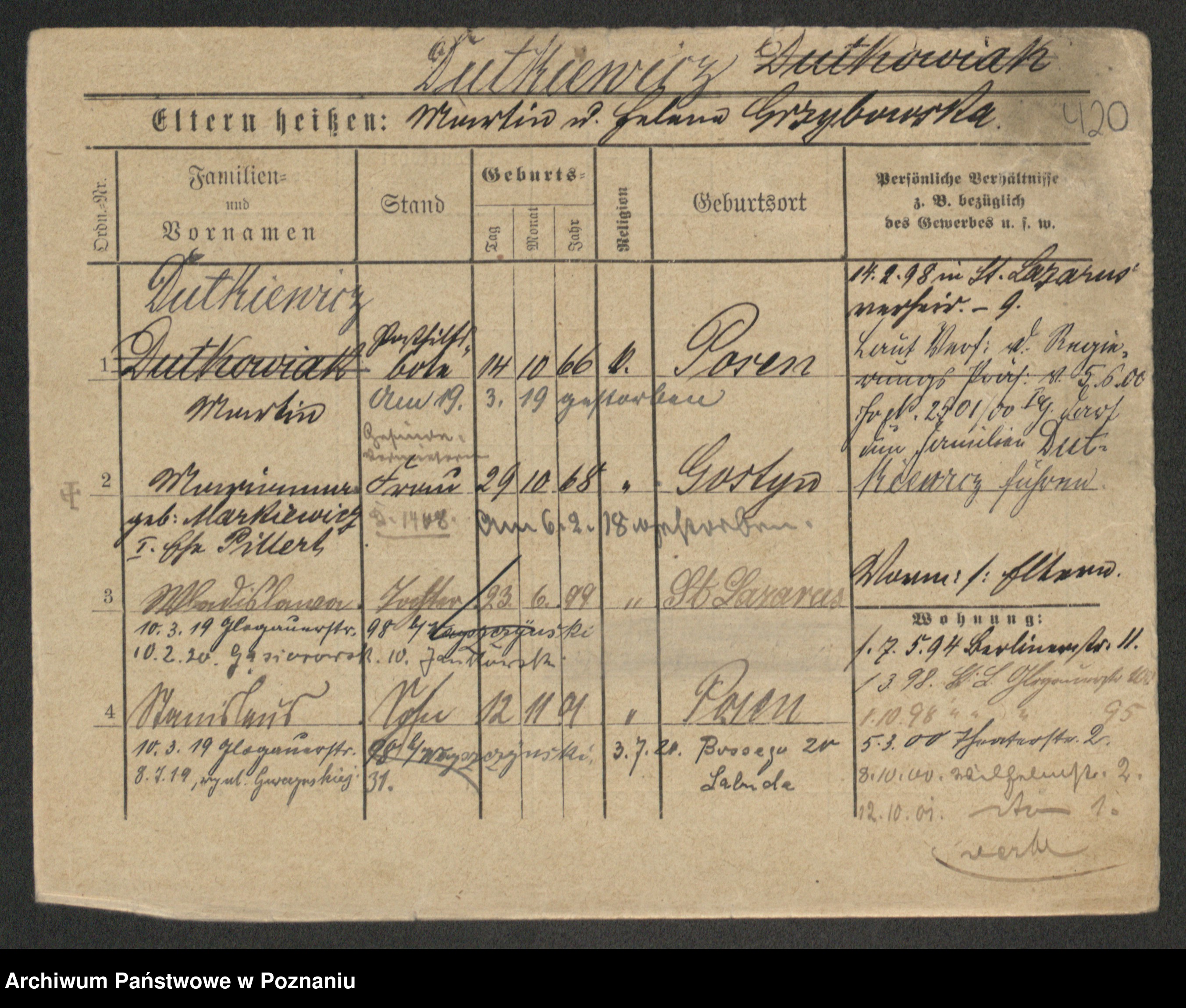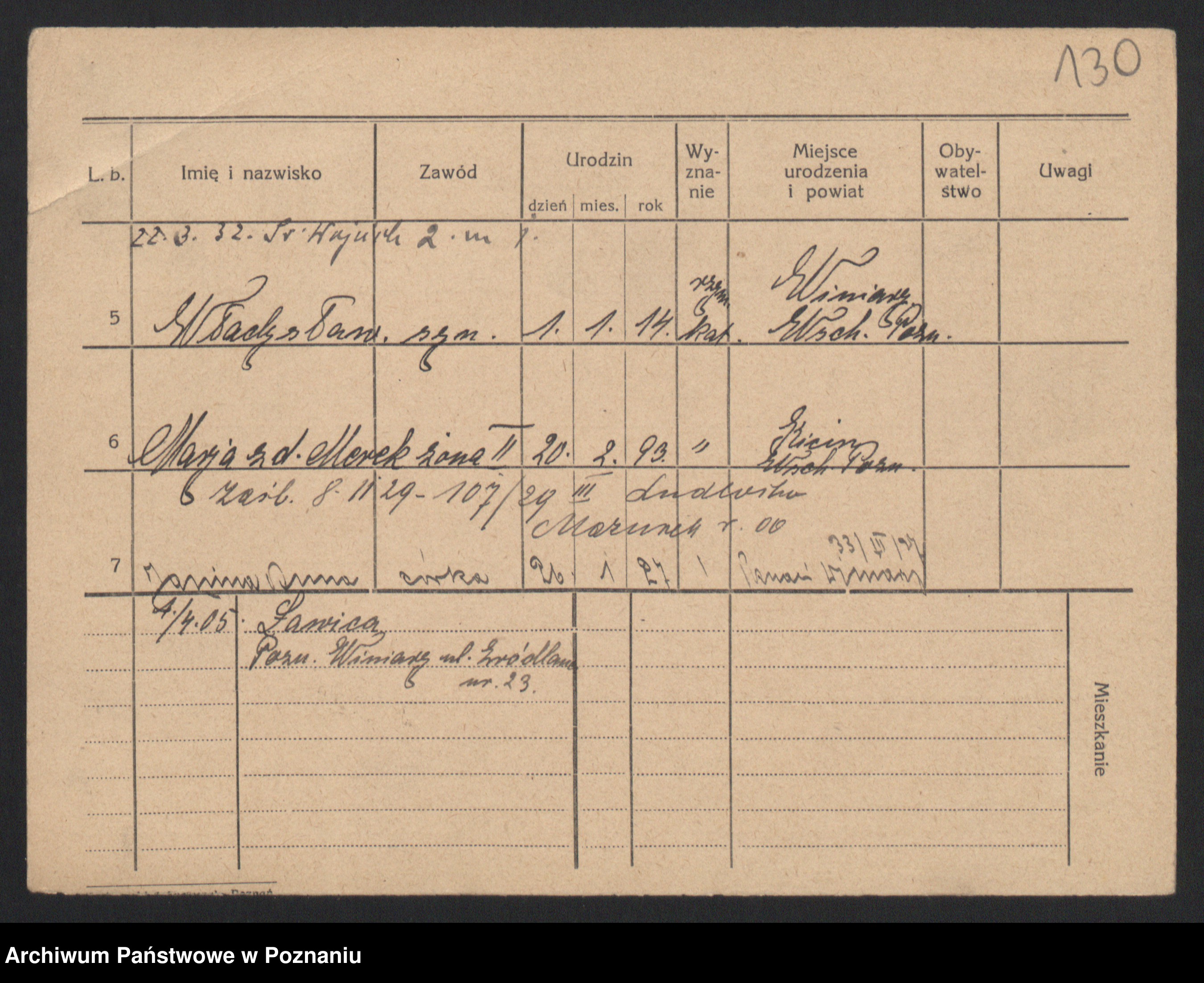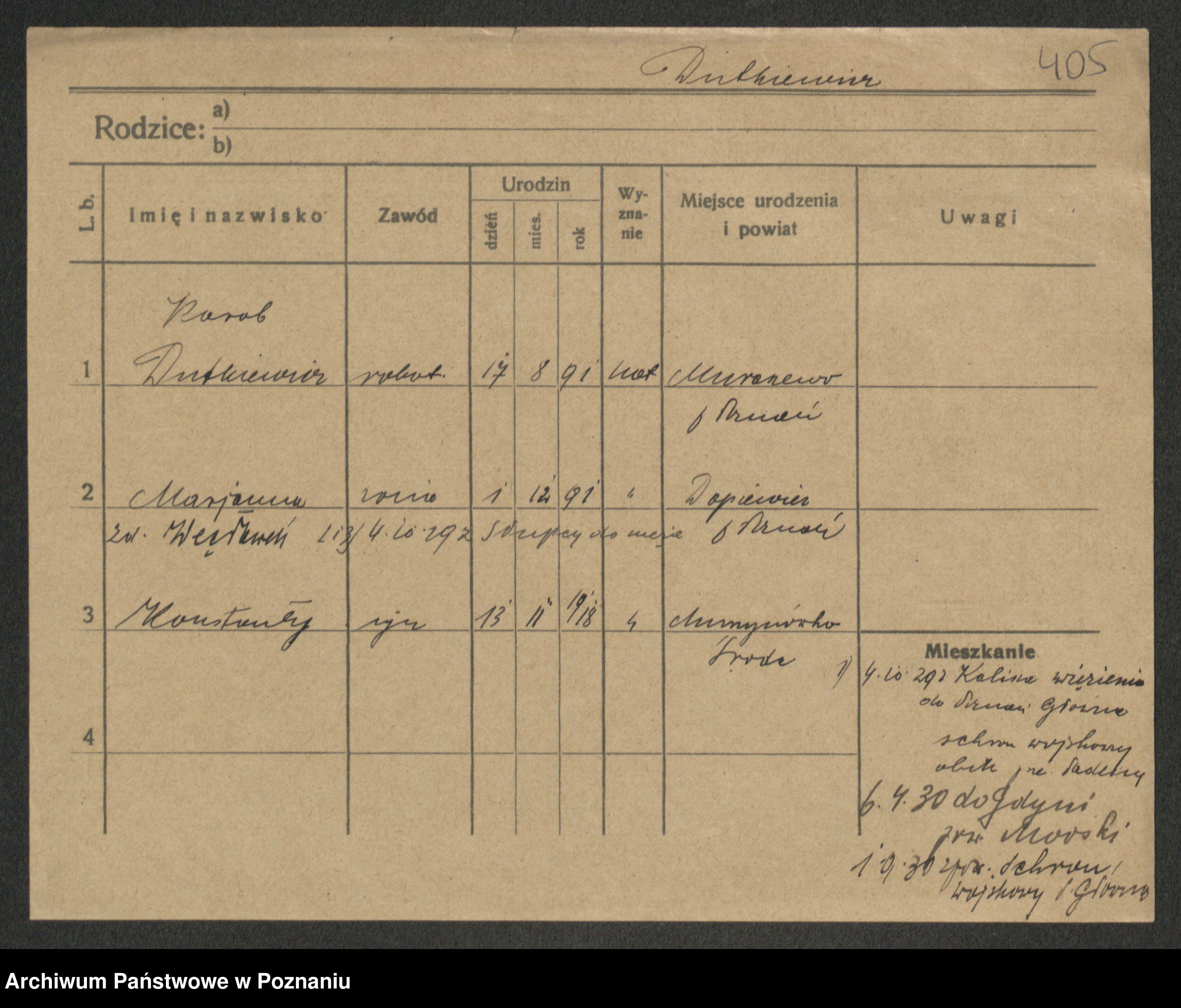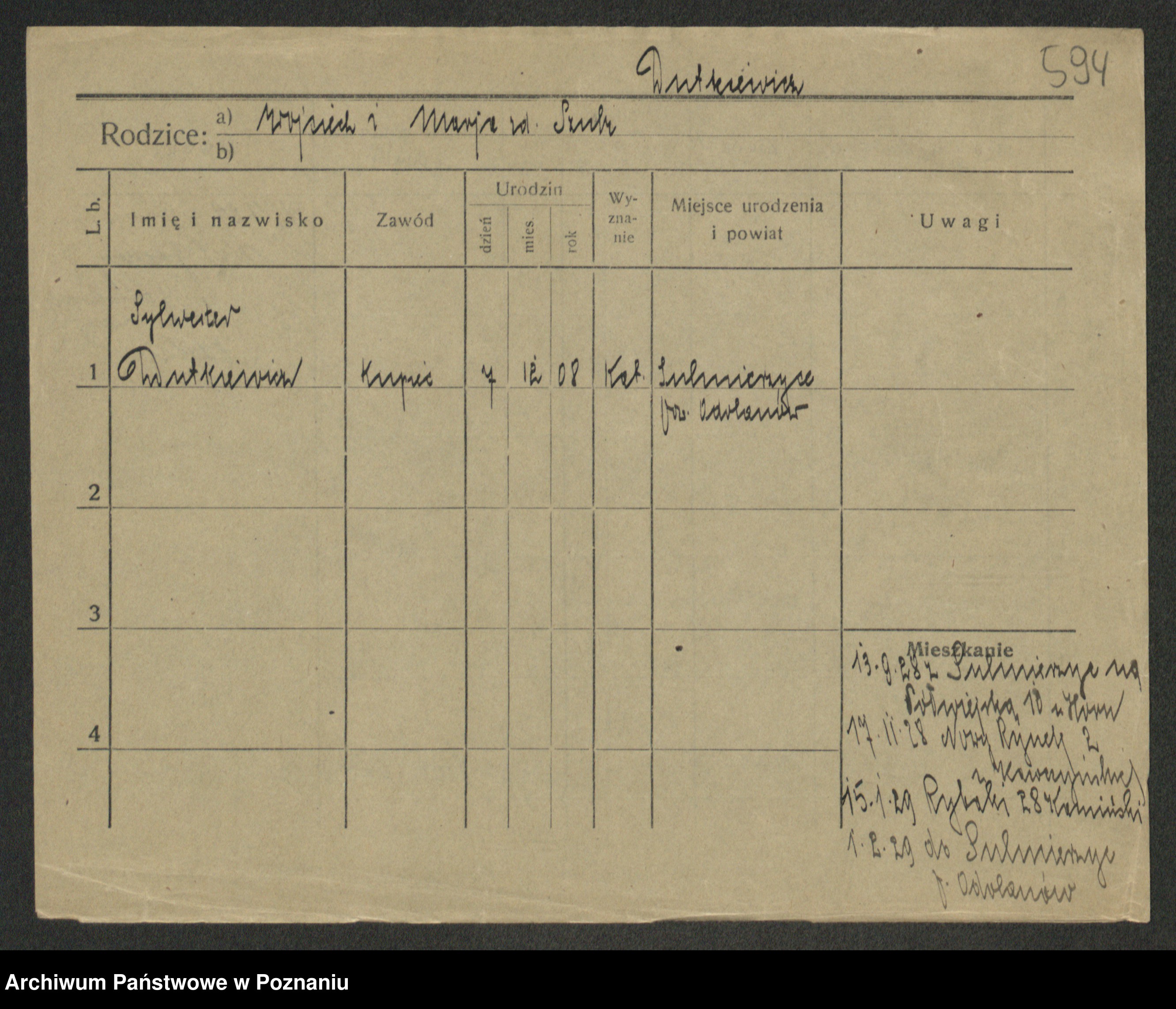 Podgląd karty osobowej dostępny jest po kliknięciu na nazwisko lub ikonkę karty. Można dokonywać powiększenia (ikony na górze) lub przechodzić między kolejnymi skanami (strzałki po bokach).