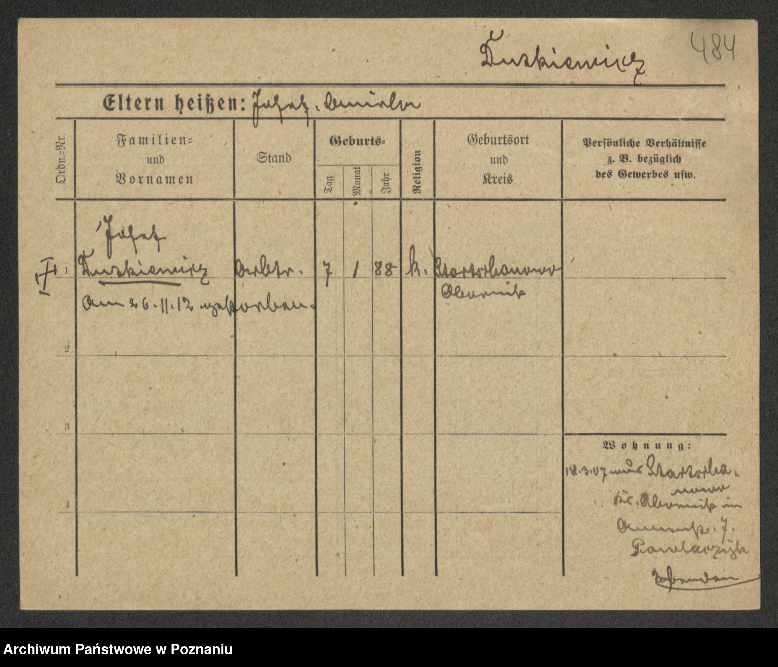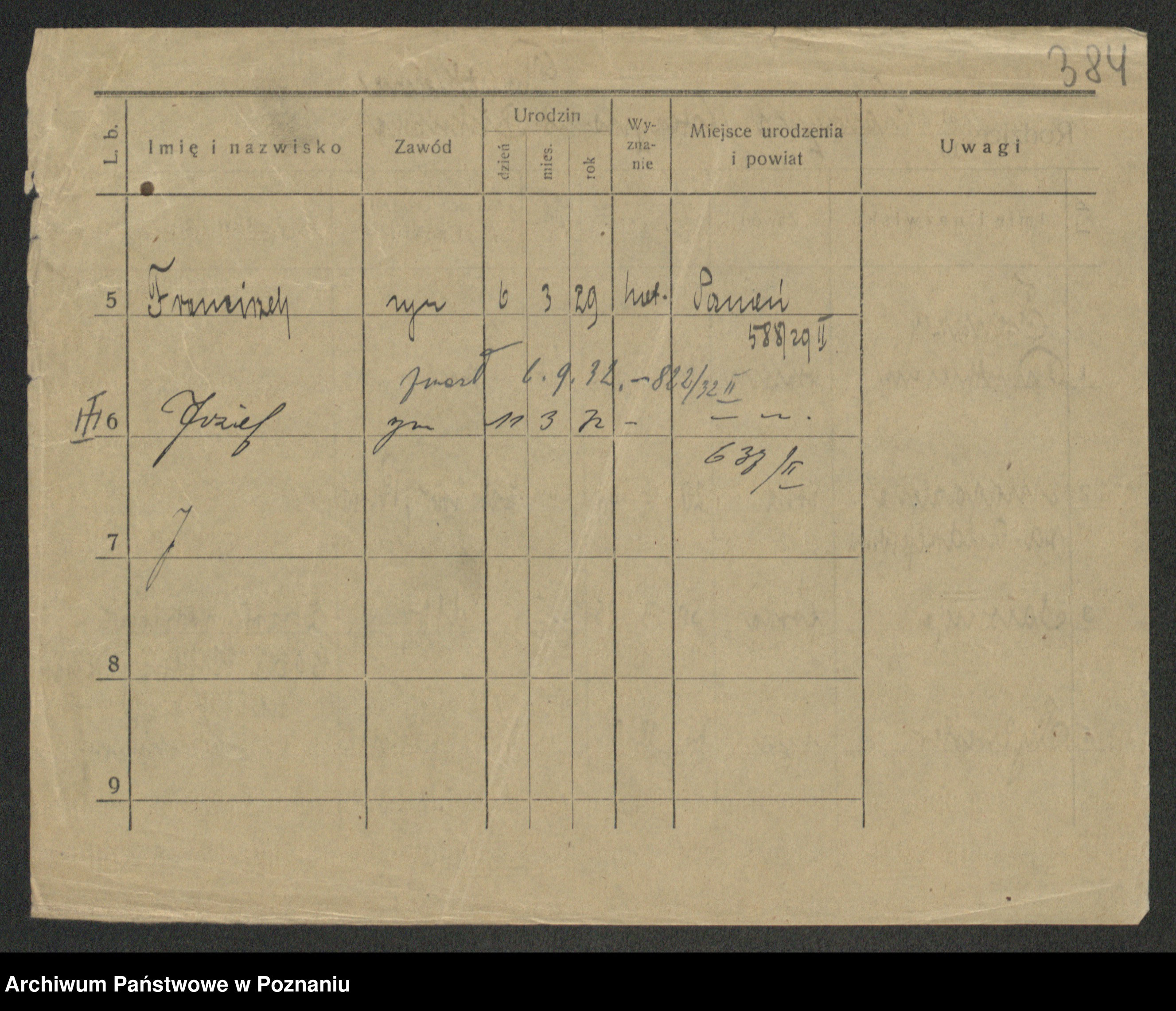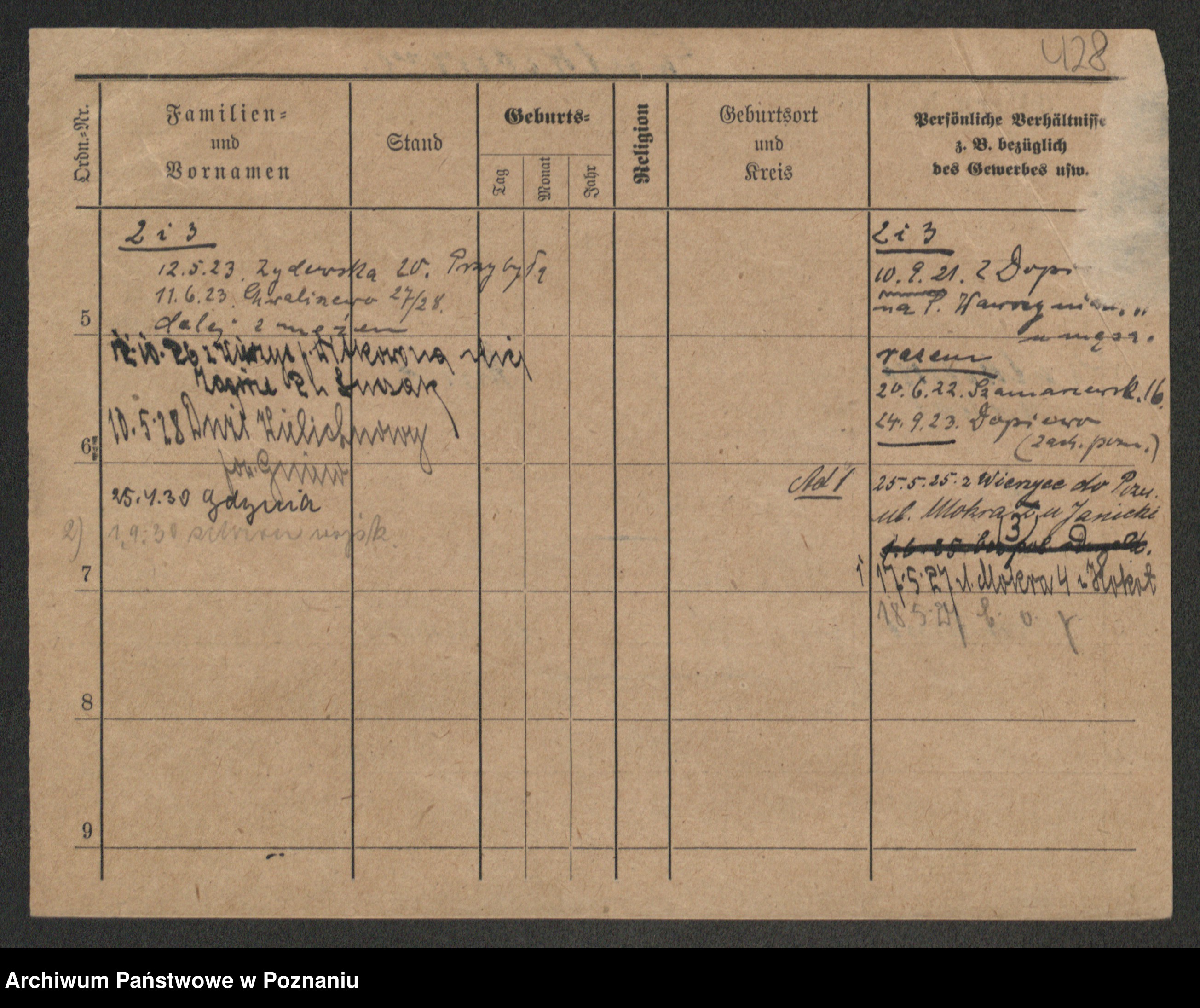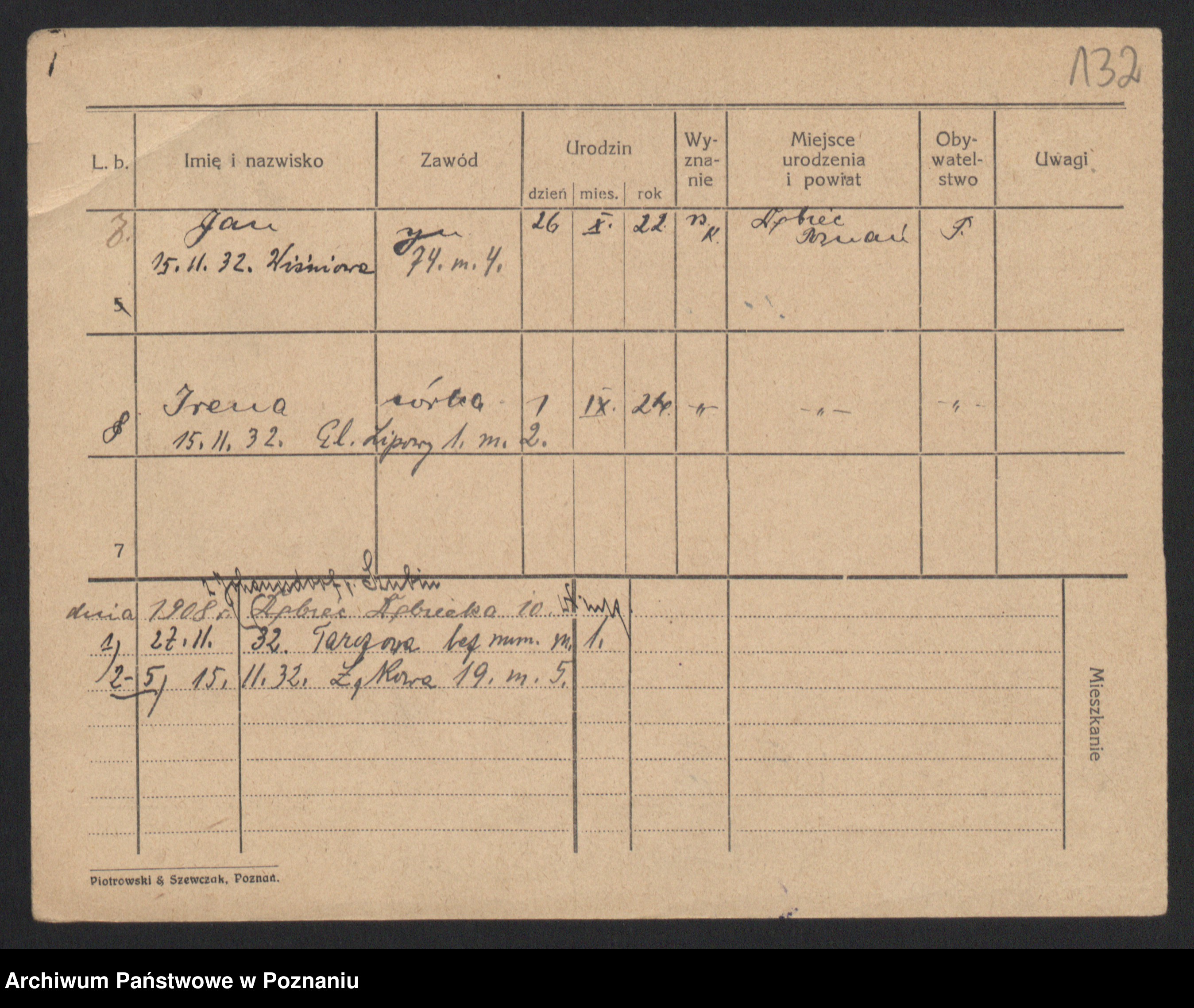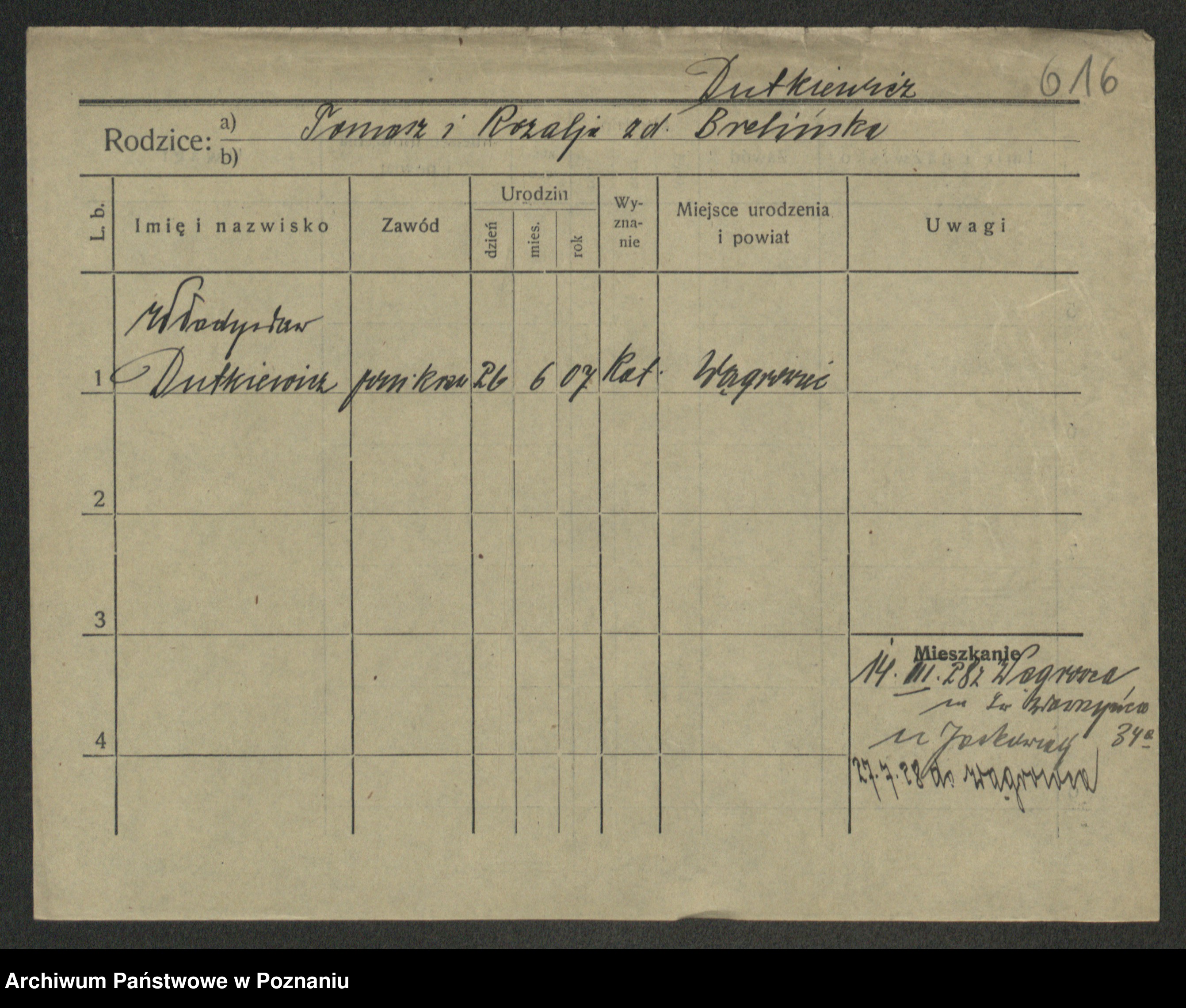 Podgląd karty osobowej dostępny jest po kliknięciu na nazwisko lub ikonkę karty. Można dokonywać powiększenia (ikony na górze) lub przechodzić między kolejnymi skanami (strzałki po bokach).