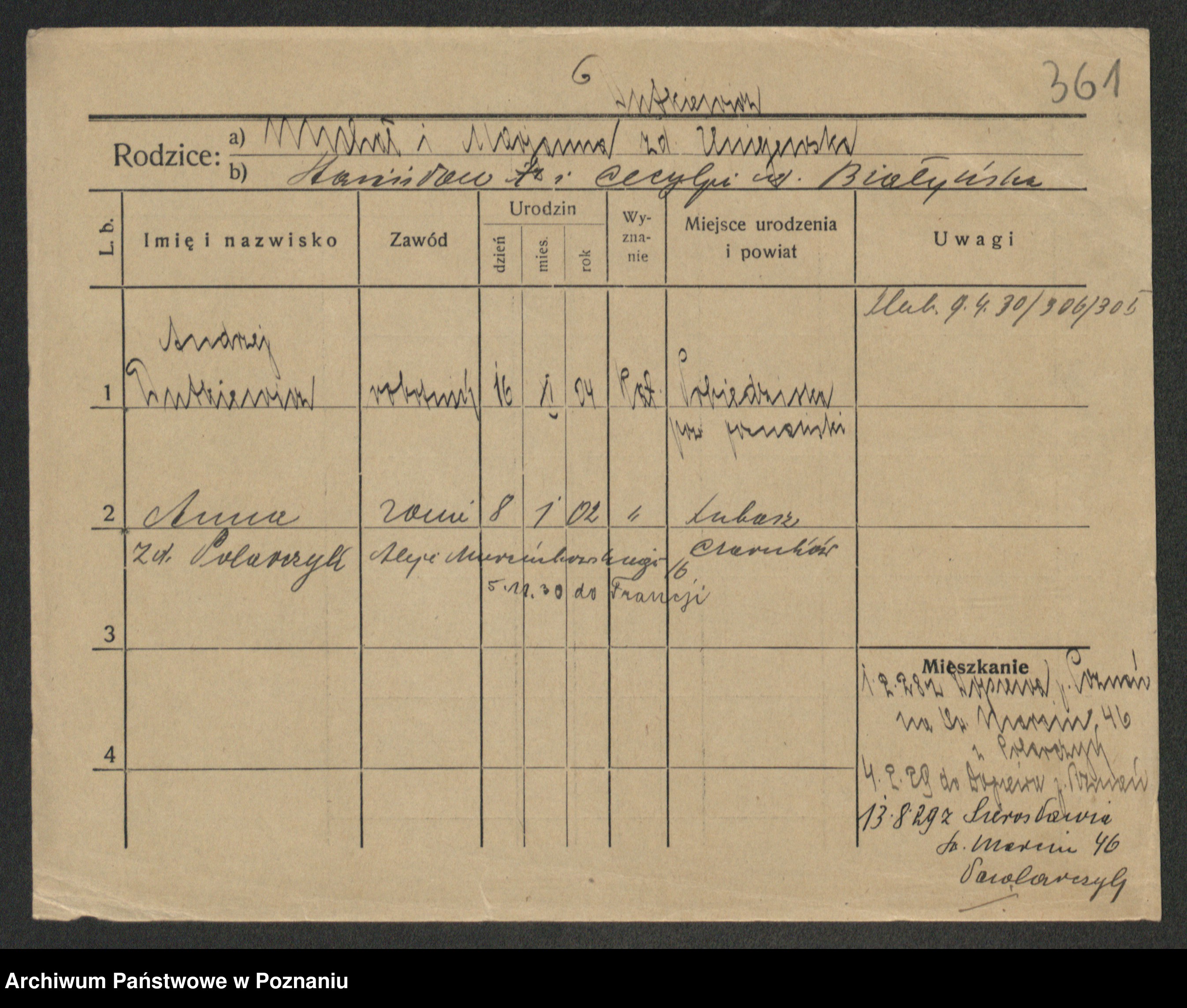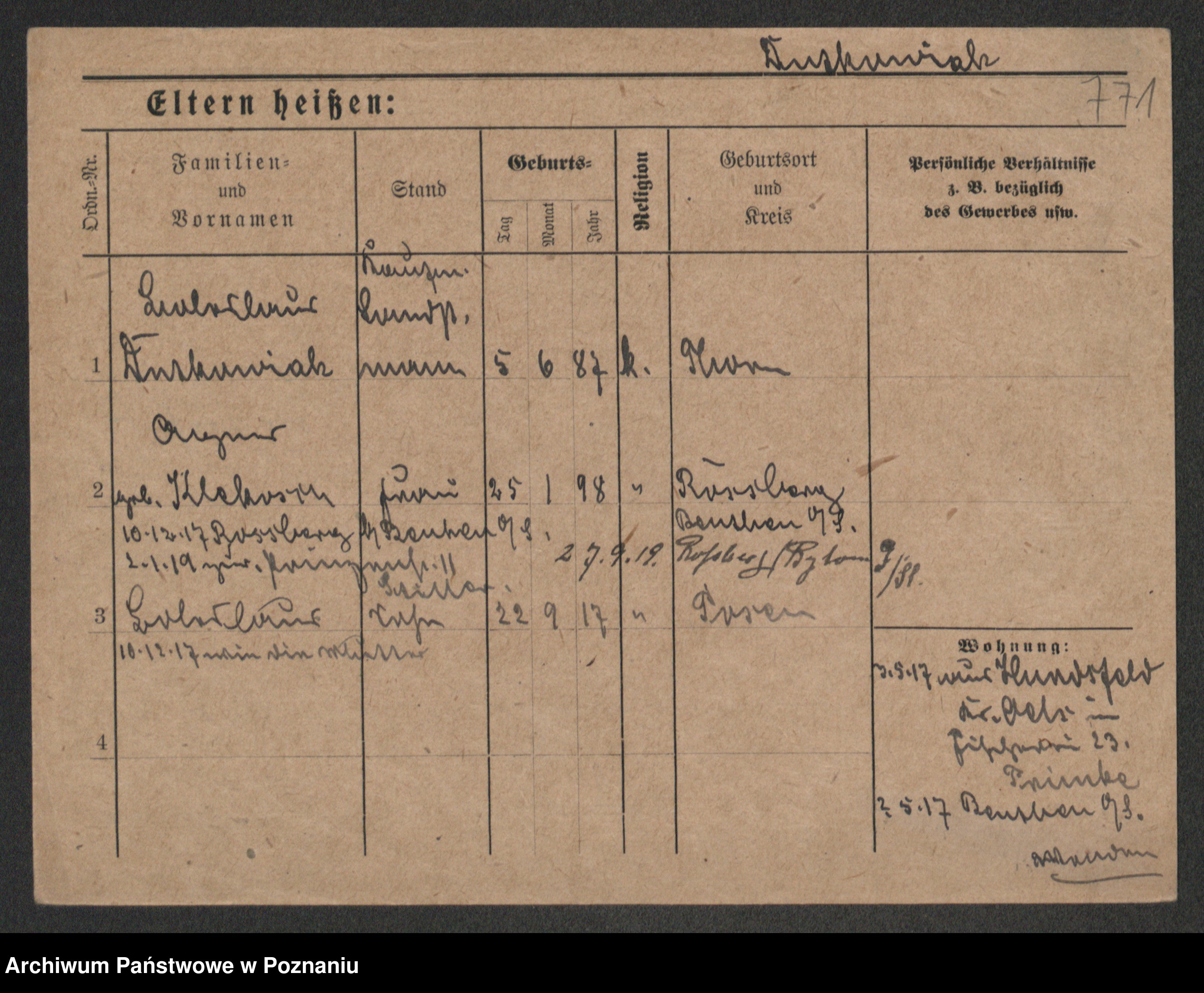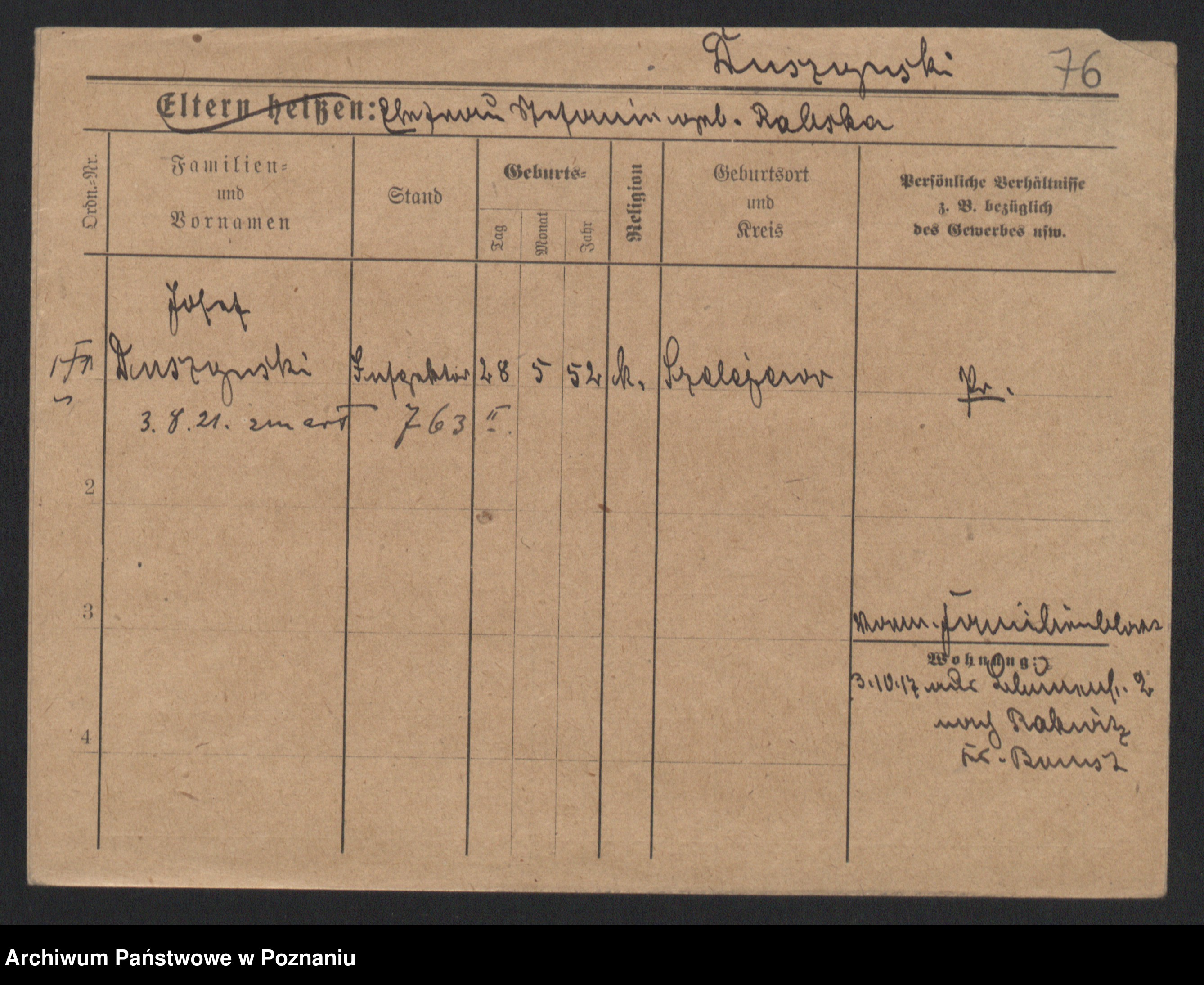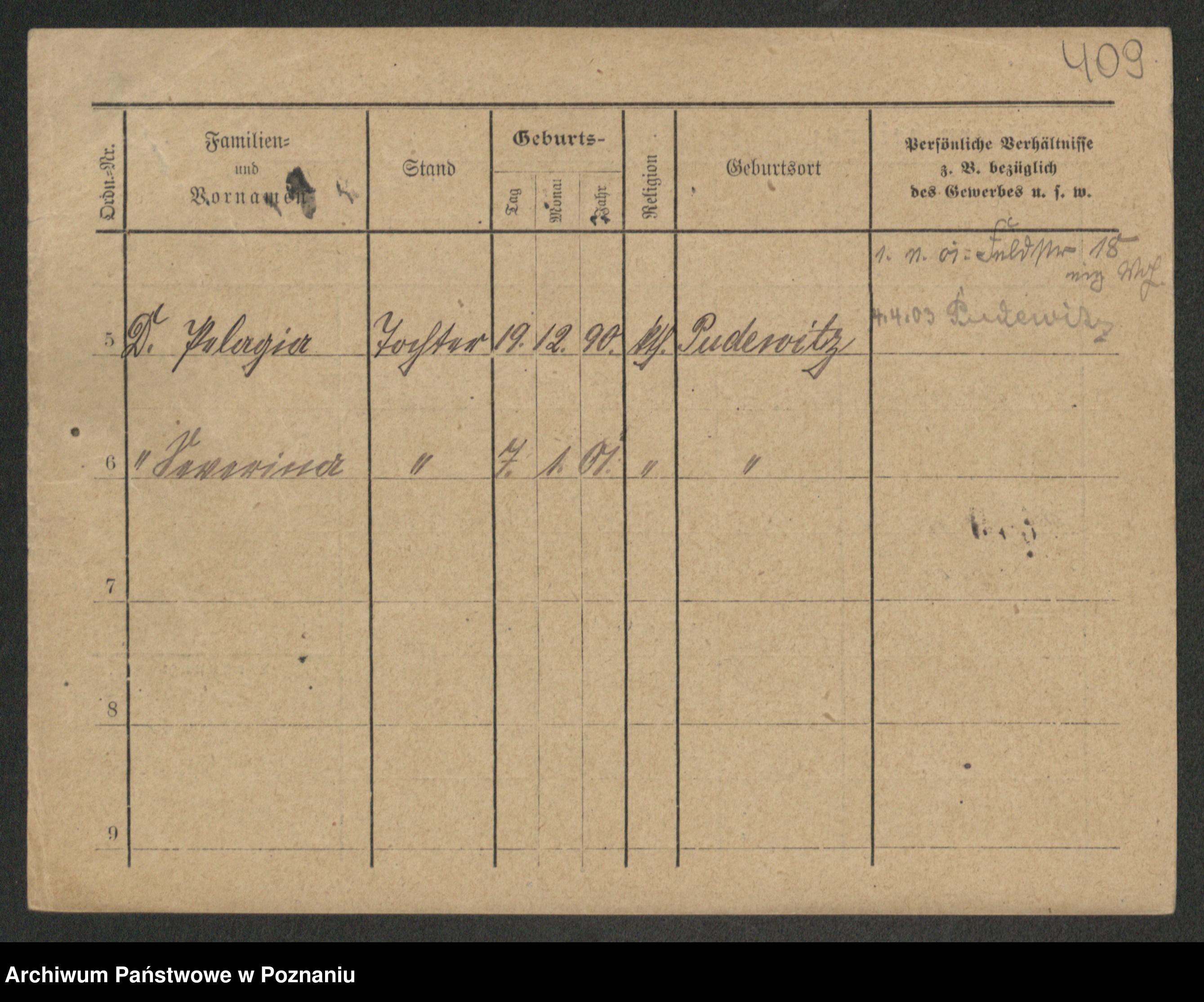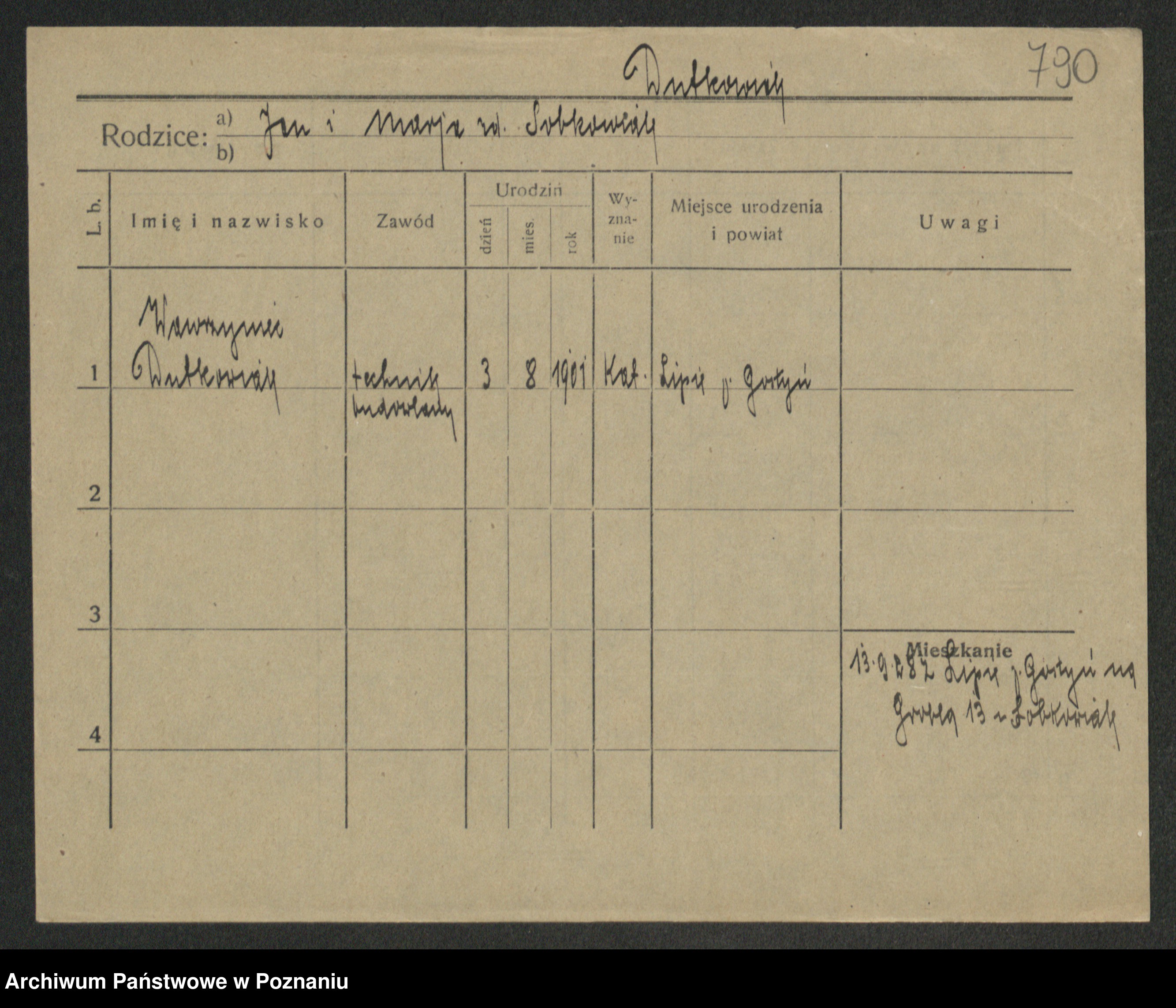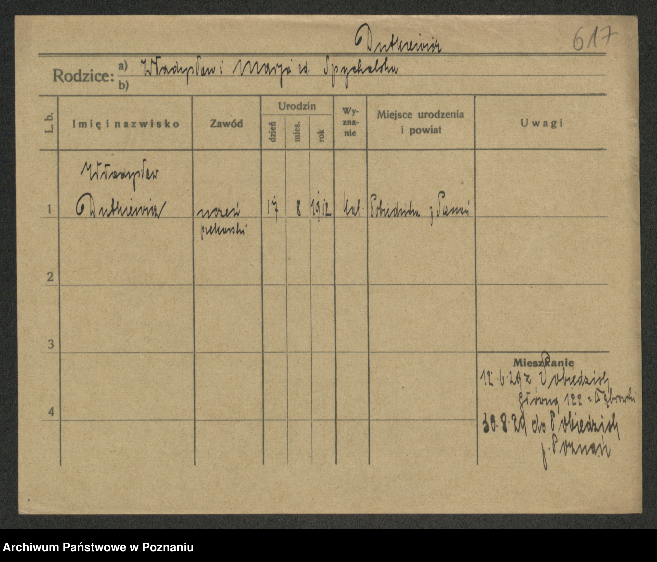 Podgląd karty osobowej dostępny jest po kliknięciu na nazwisko lub ikonkę karty. Można dokonywać powiększenia (ikony na górze) lub przechodzić między kolejnymi skanami (strzałki po bokach).