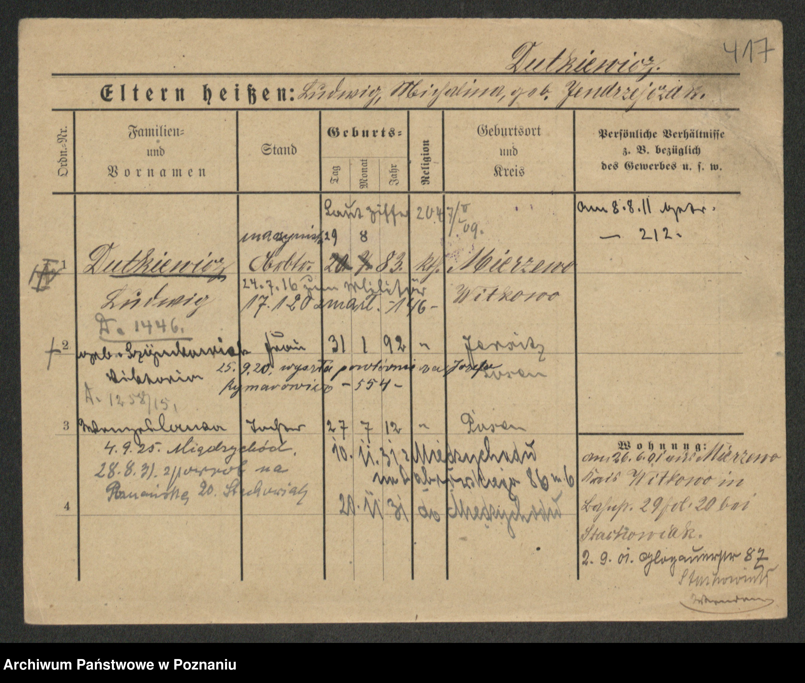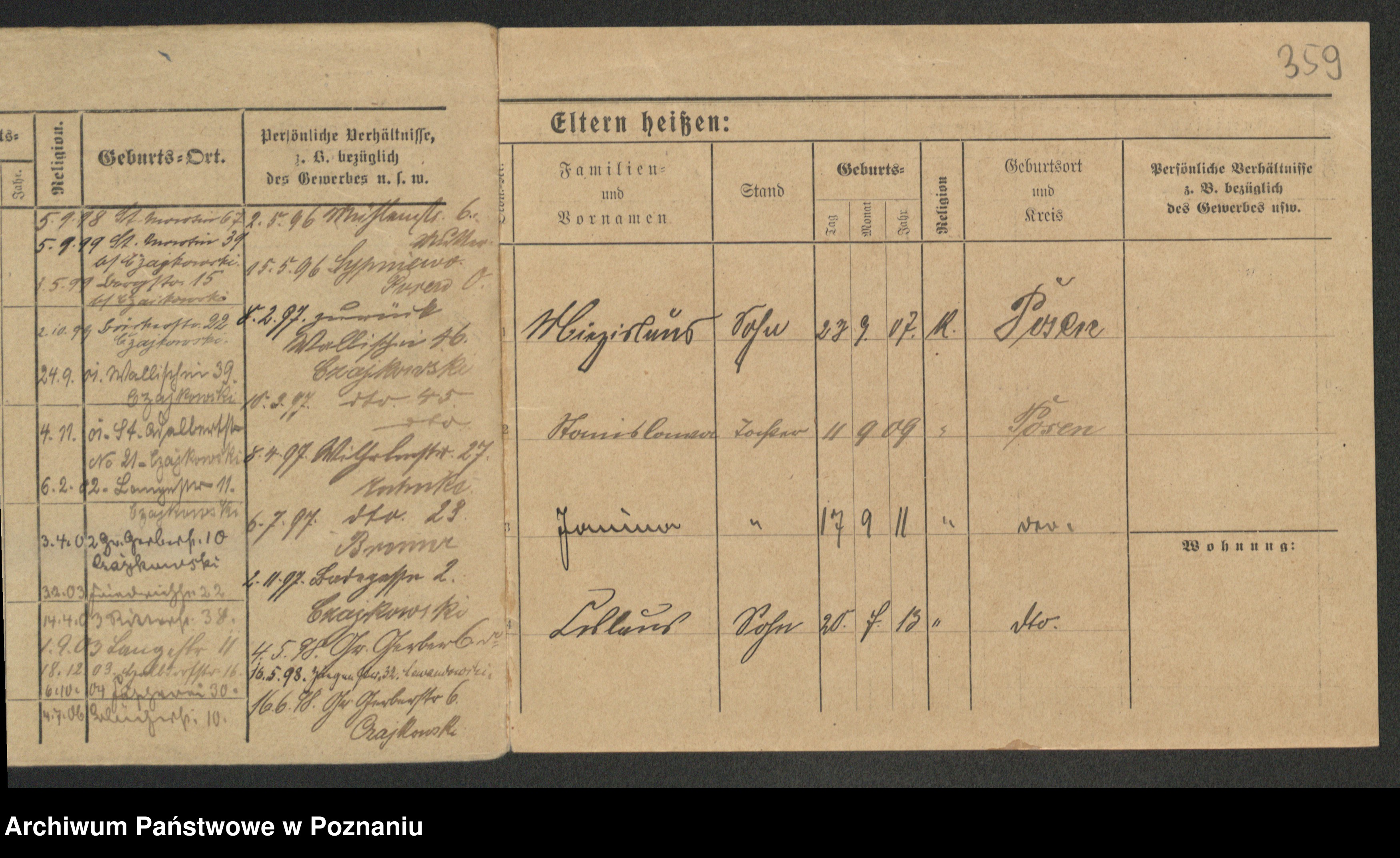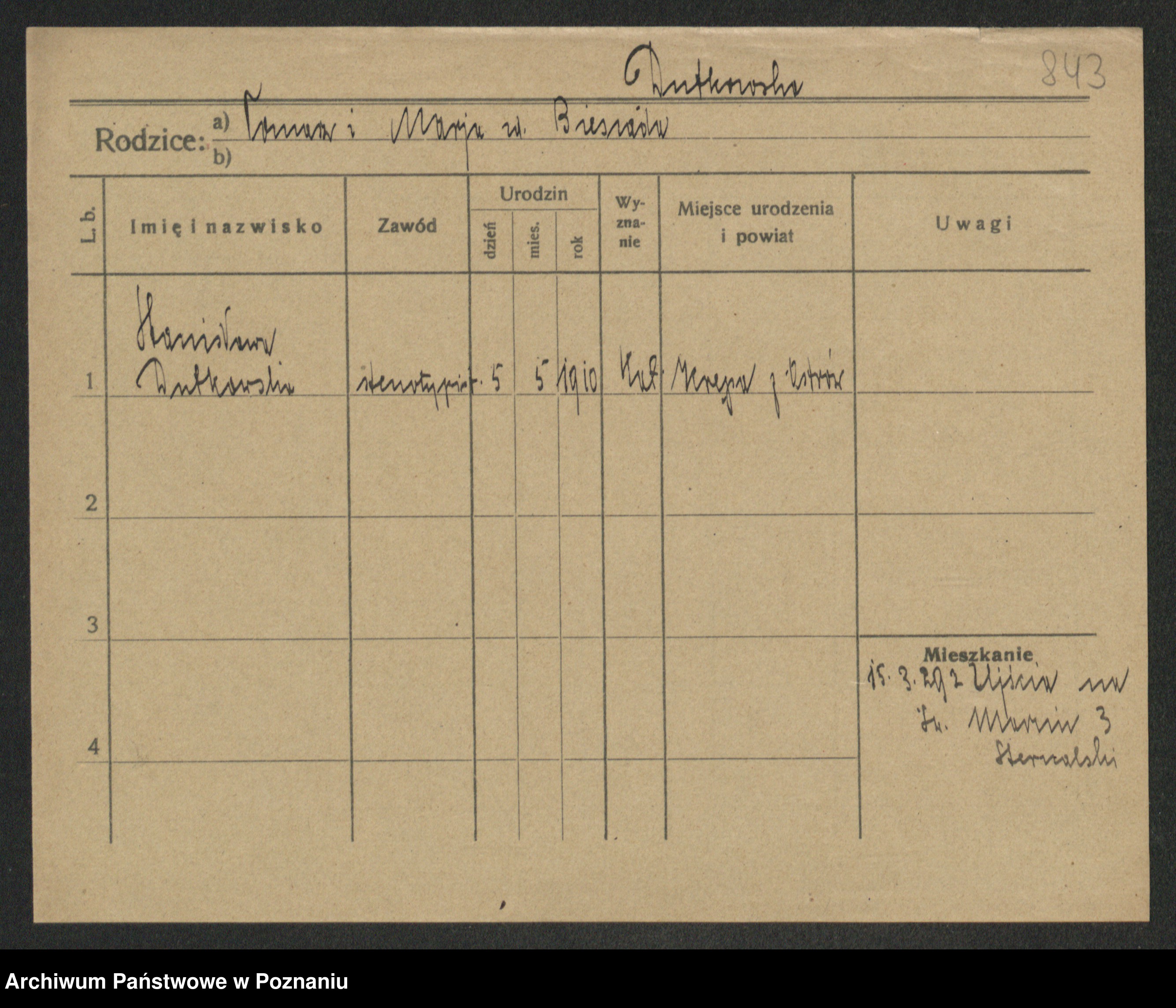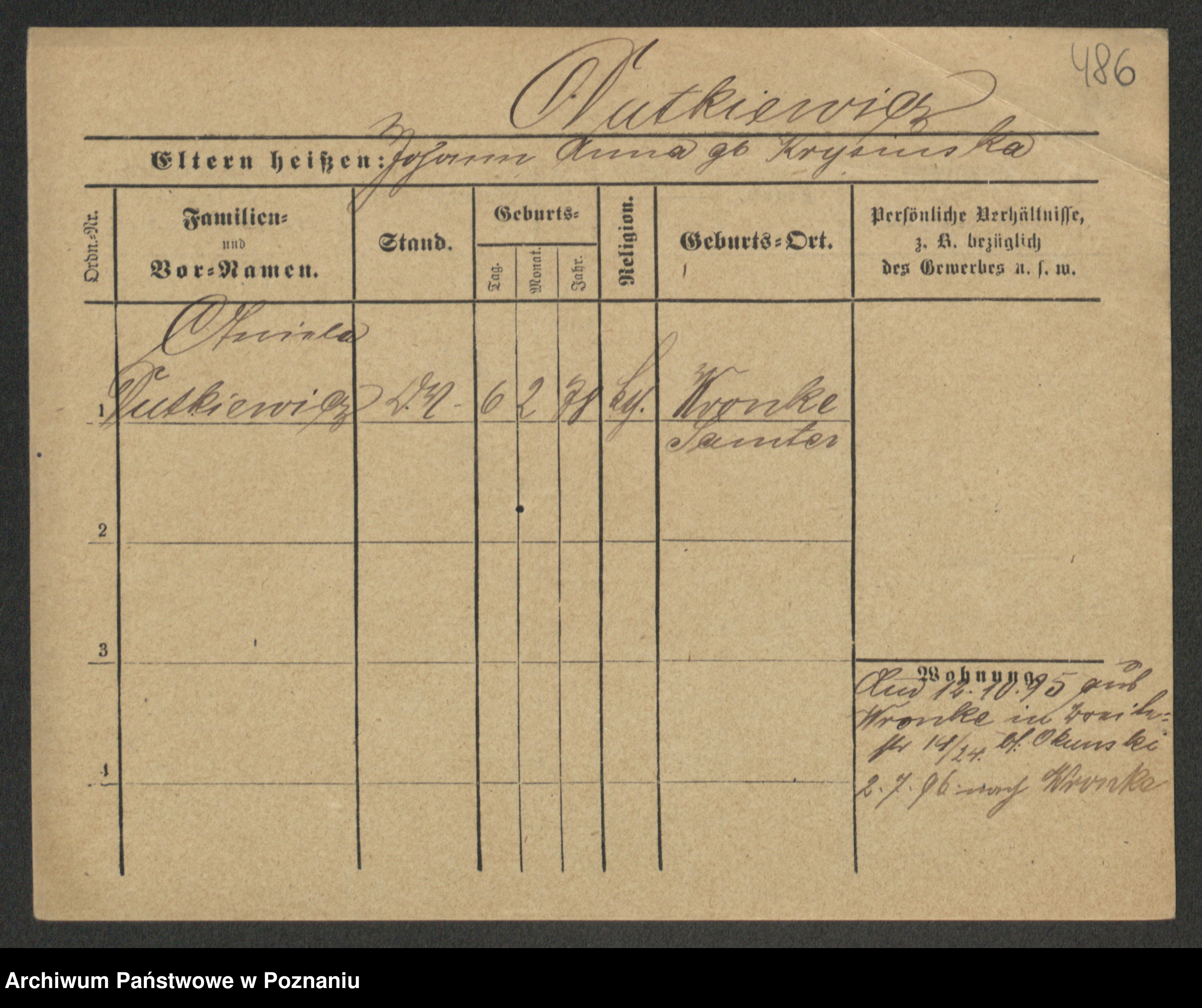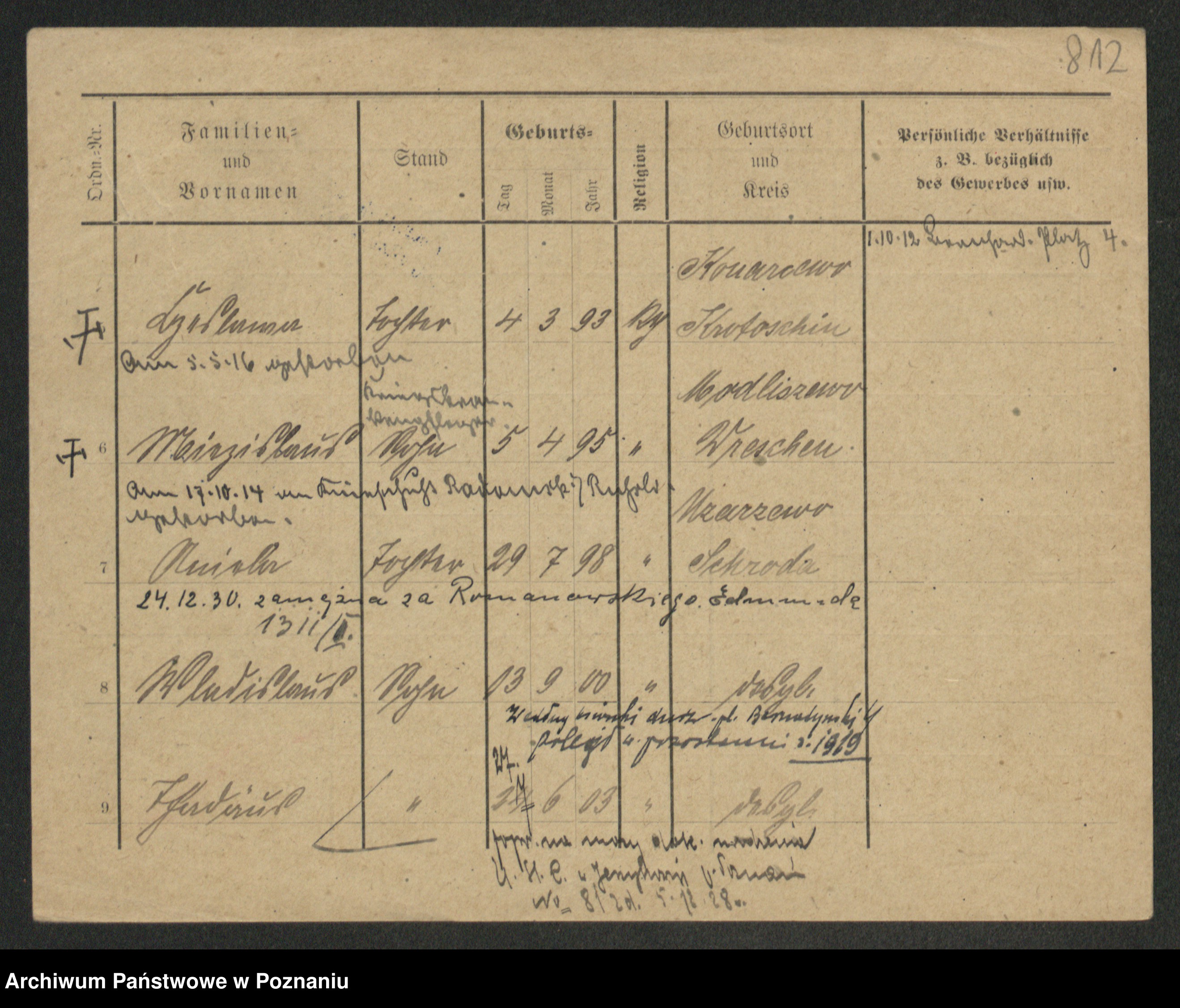 Podgląd karty osobowej dostępny jest po kliknięciu na nazwisko lub ikonkę karty. Można dokonywać powiększenia (ikony na górze) lub przechodzić między kolejnymi skanami (strzałki po bokach).