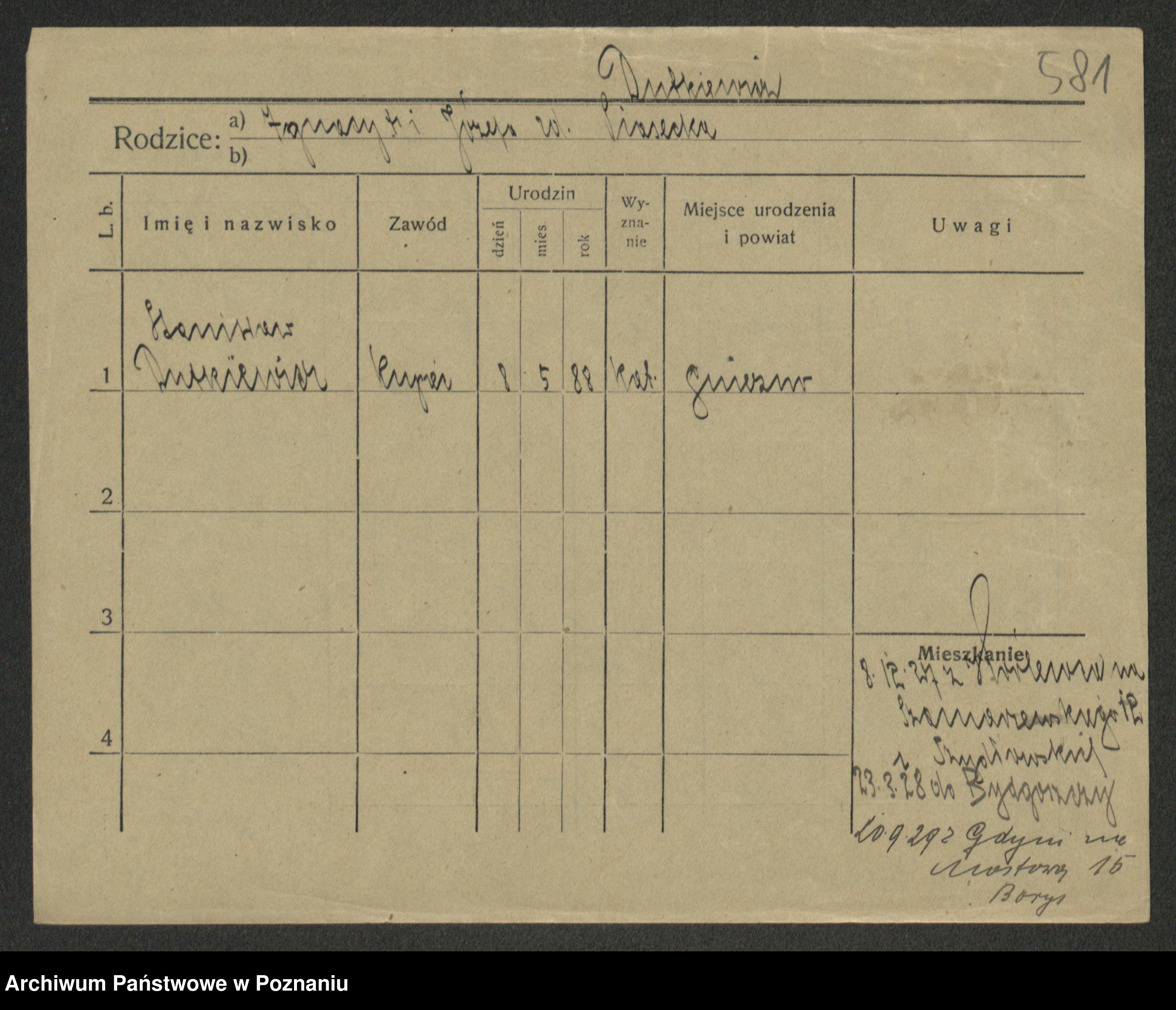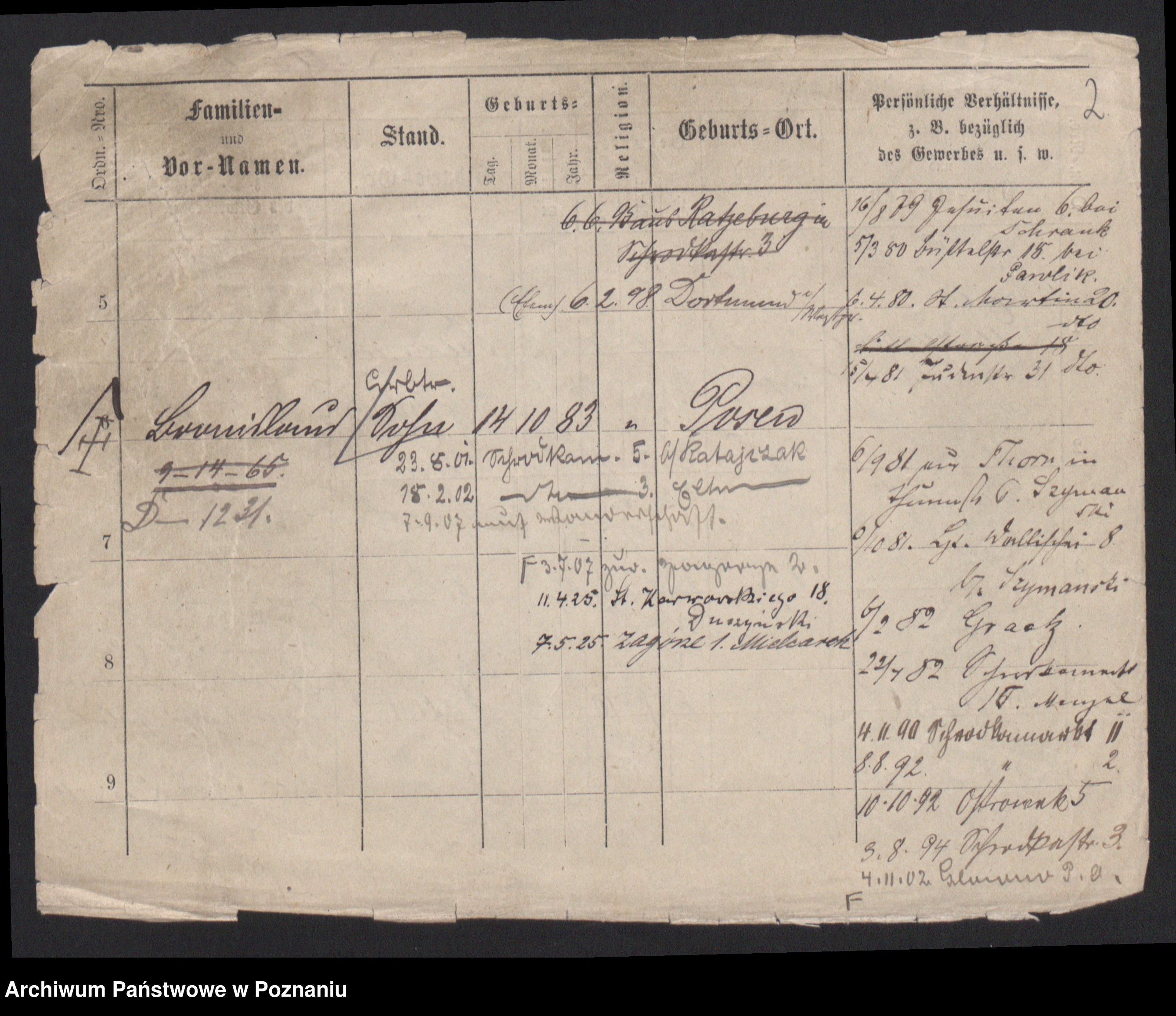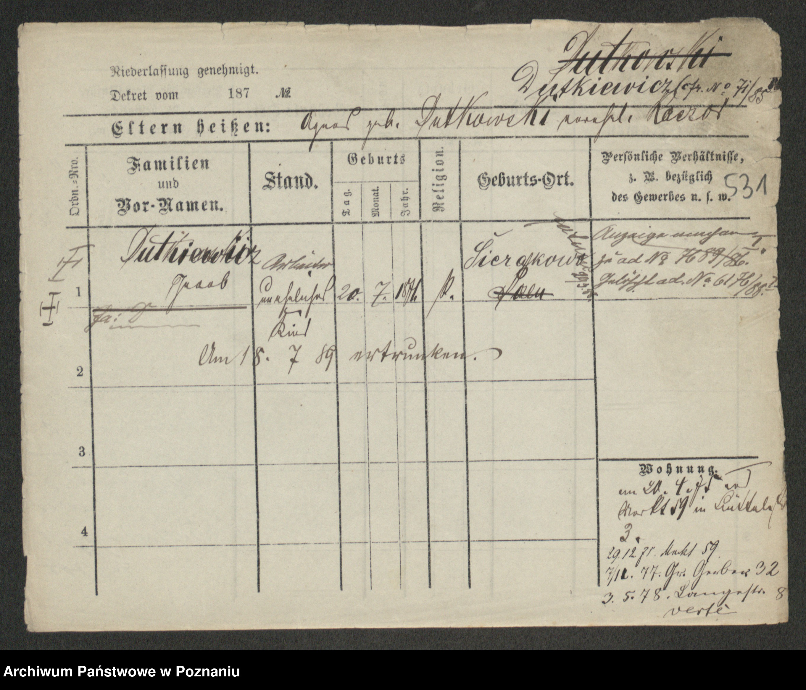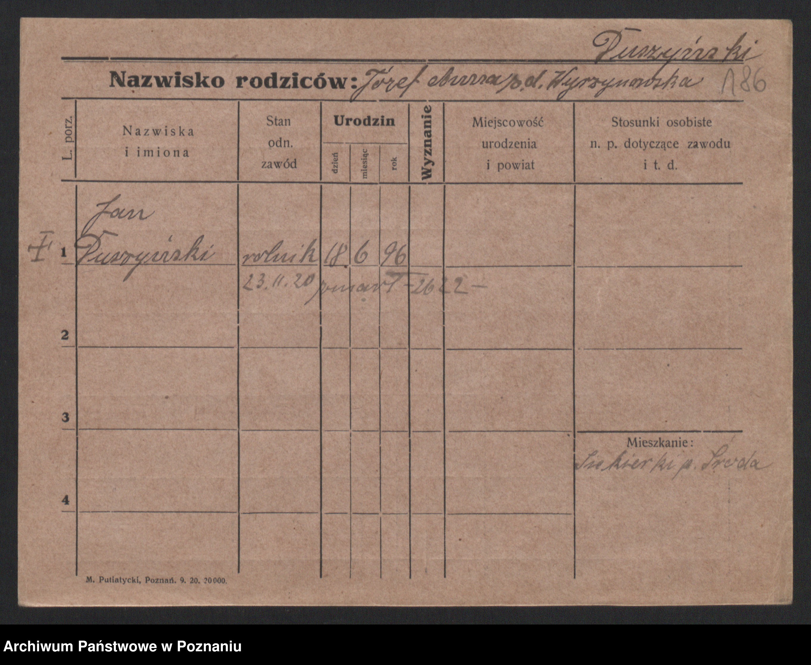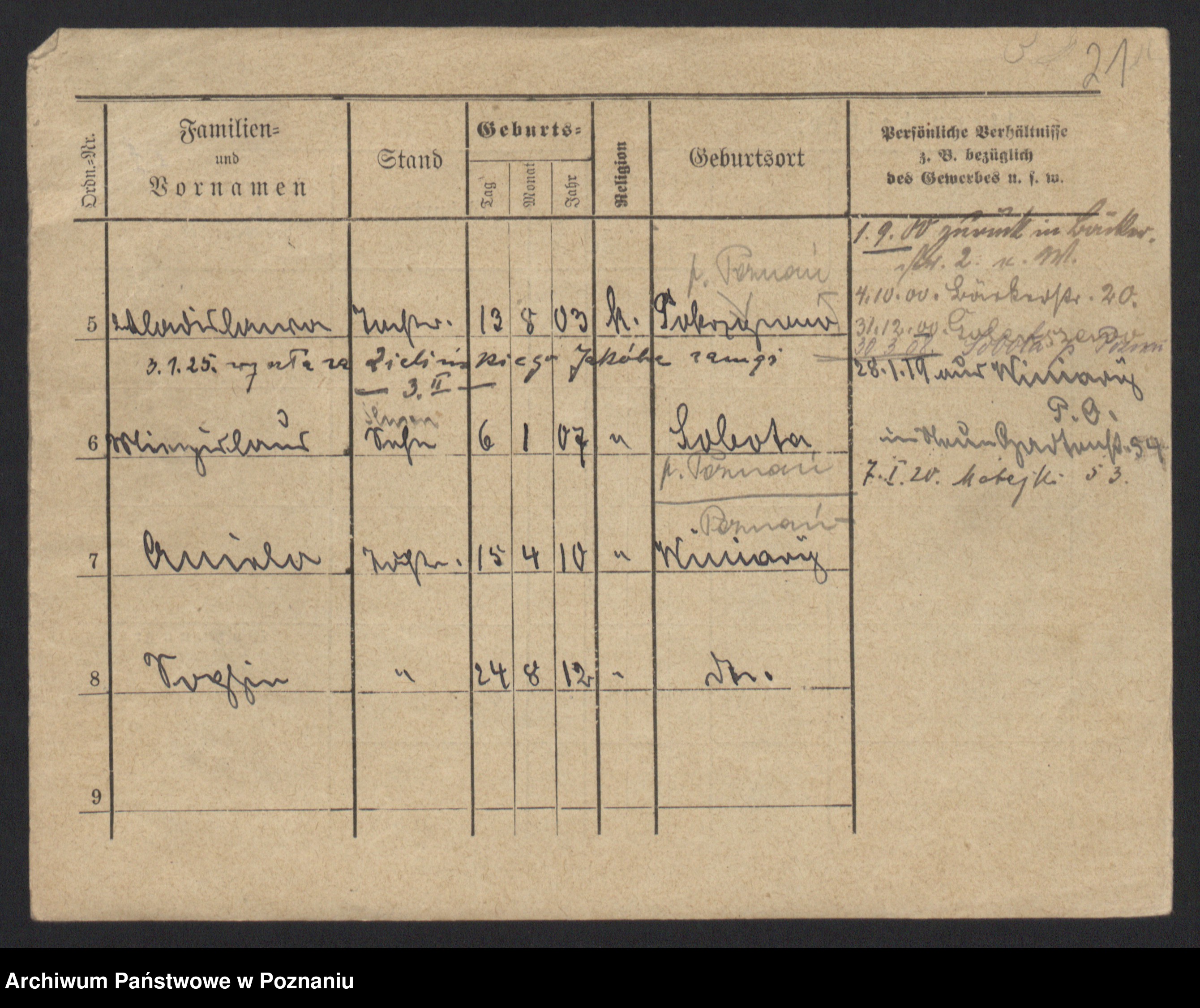 Podgląd karty osobowej dostępny jest po kliknięciu na nazwisko lub ikonkę karty. Można dokonywać powiększenia (ikony na górze) lub przechodzić między kolejnymi skanami (strzałki po bokach).