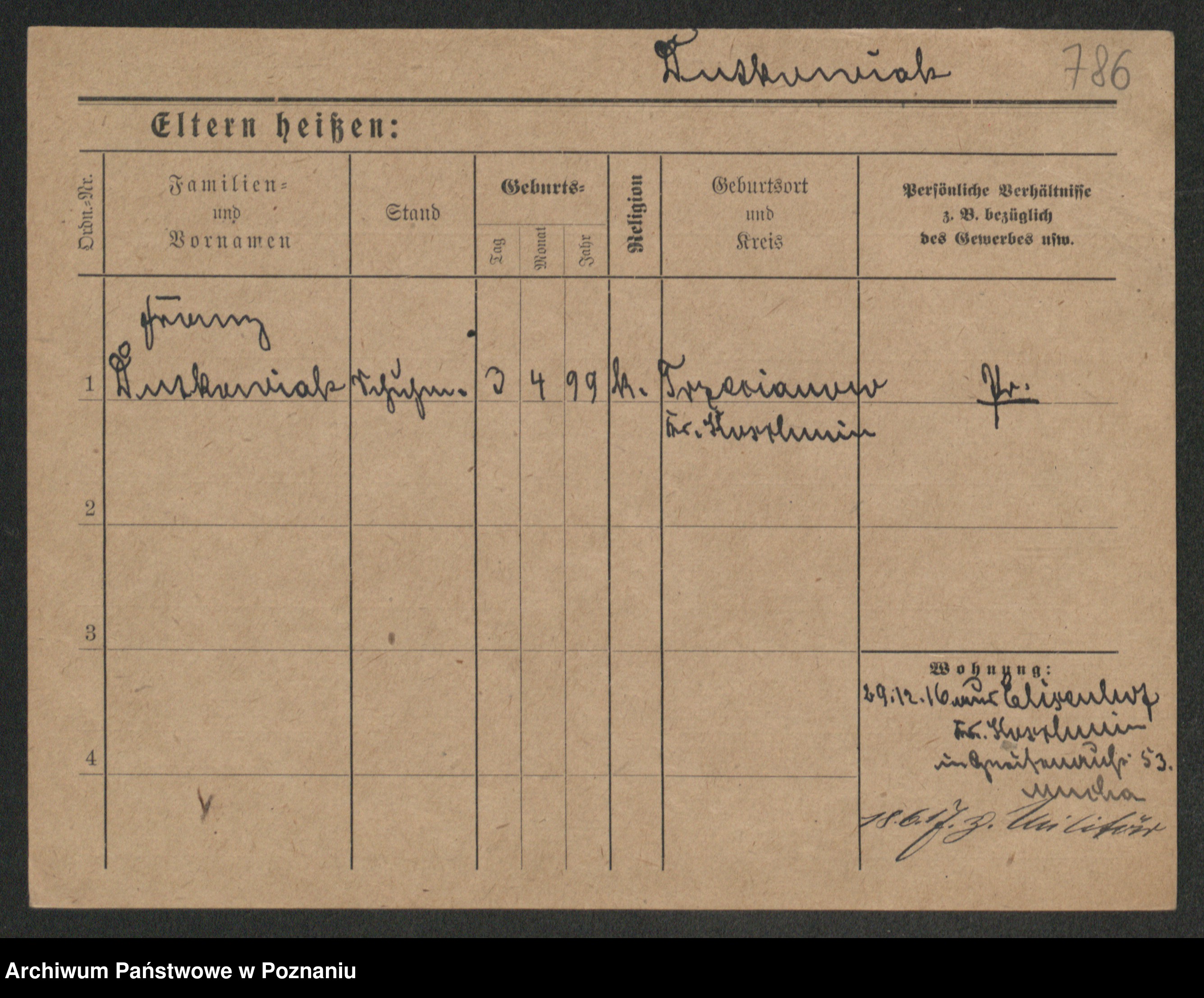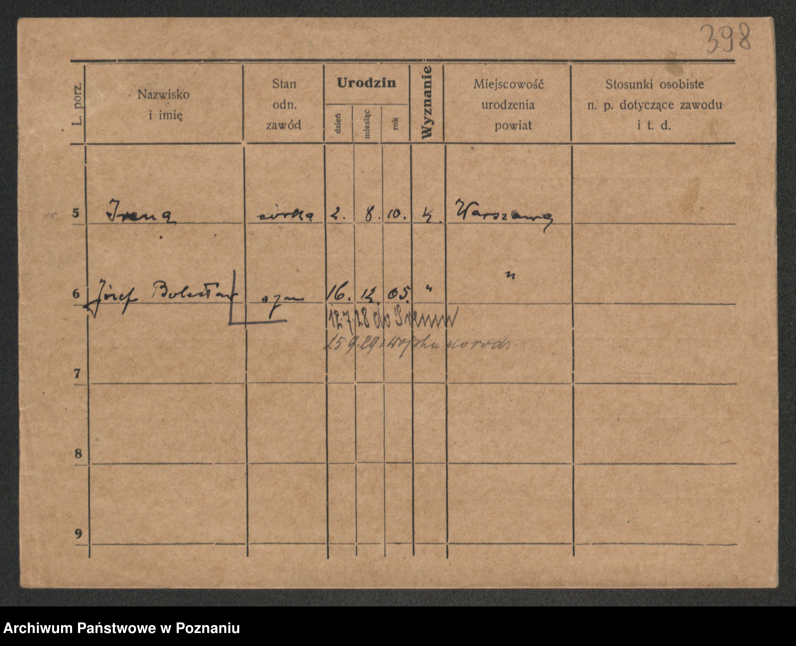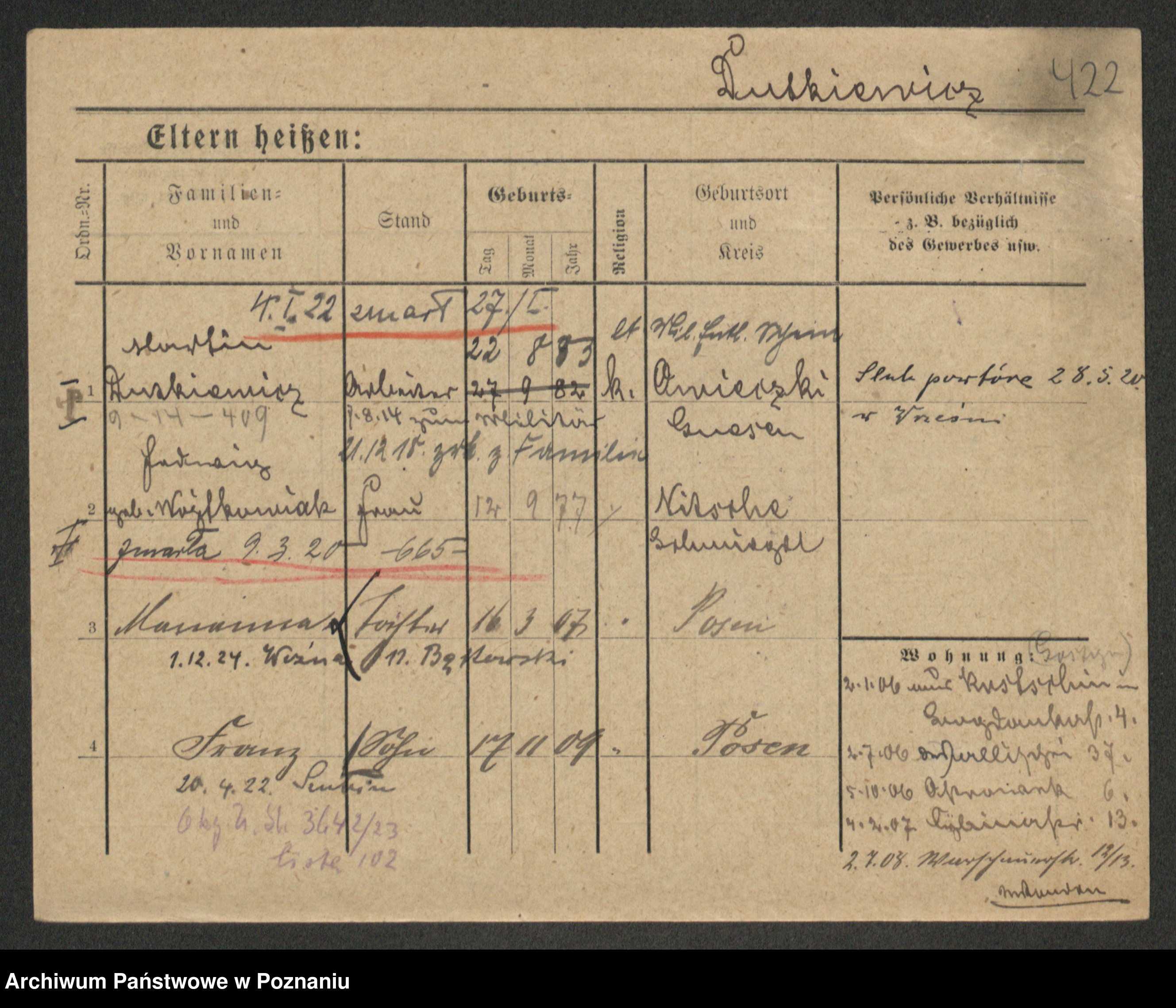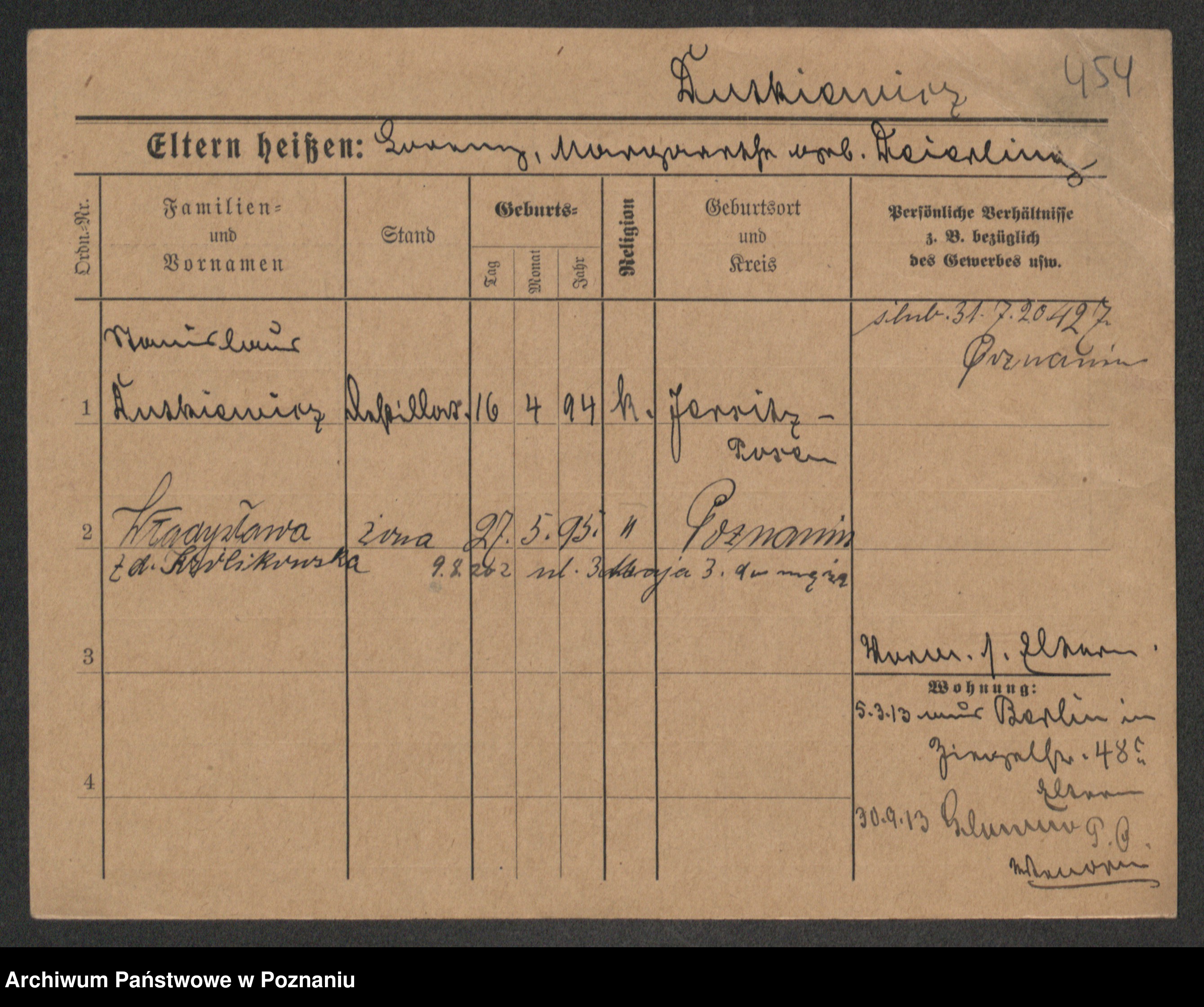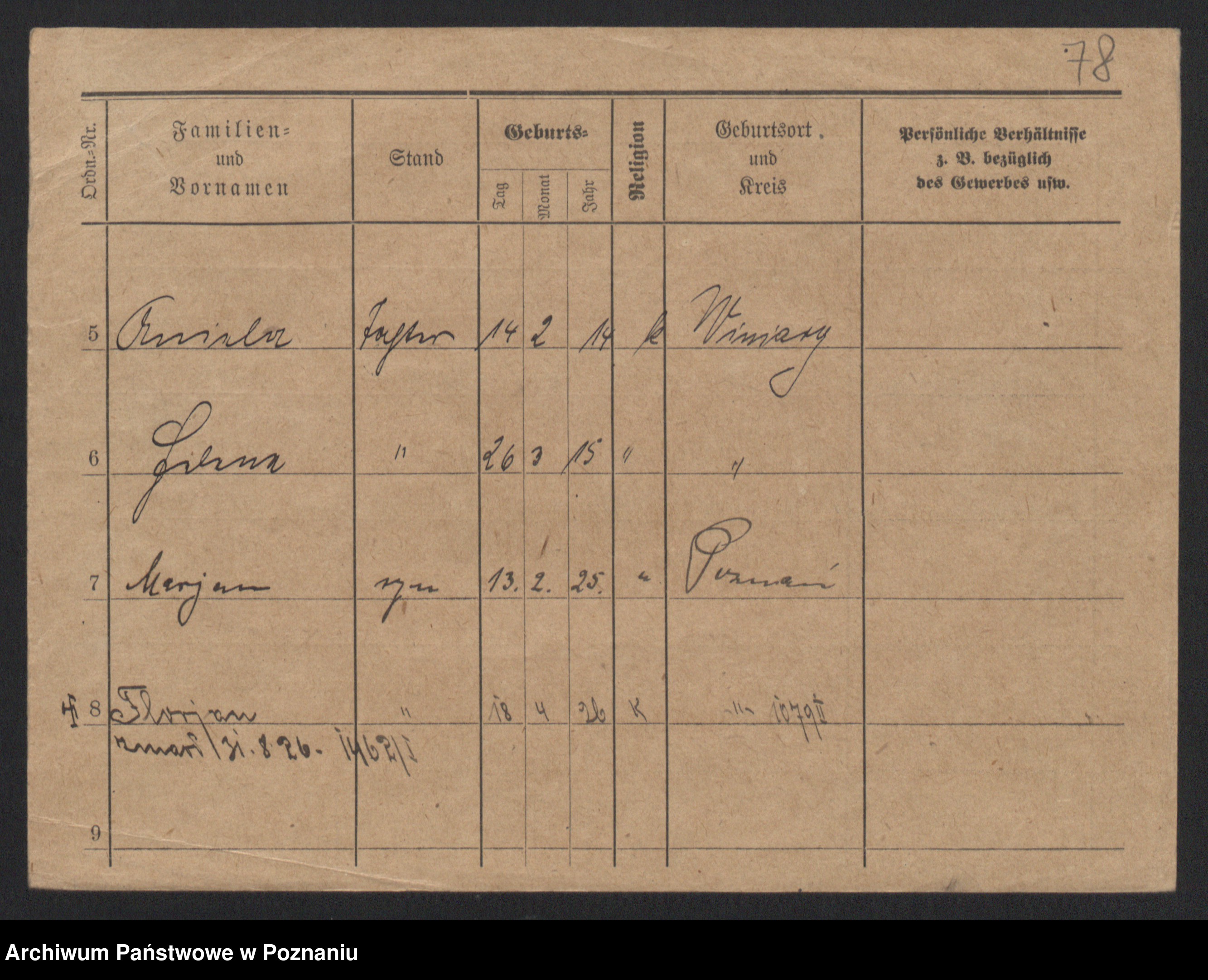 Podgląd karty osobowej dostępny jest po kliknięciu na nazwisko lub ikonkę karty. Można dokonywać powiększenia (ikony na górze) lub przechodzić między kolejnymi skanami (strzałki po bokach).
