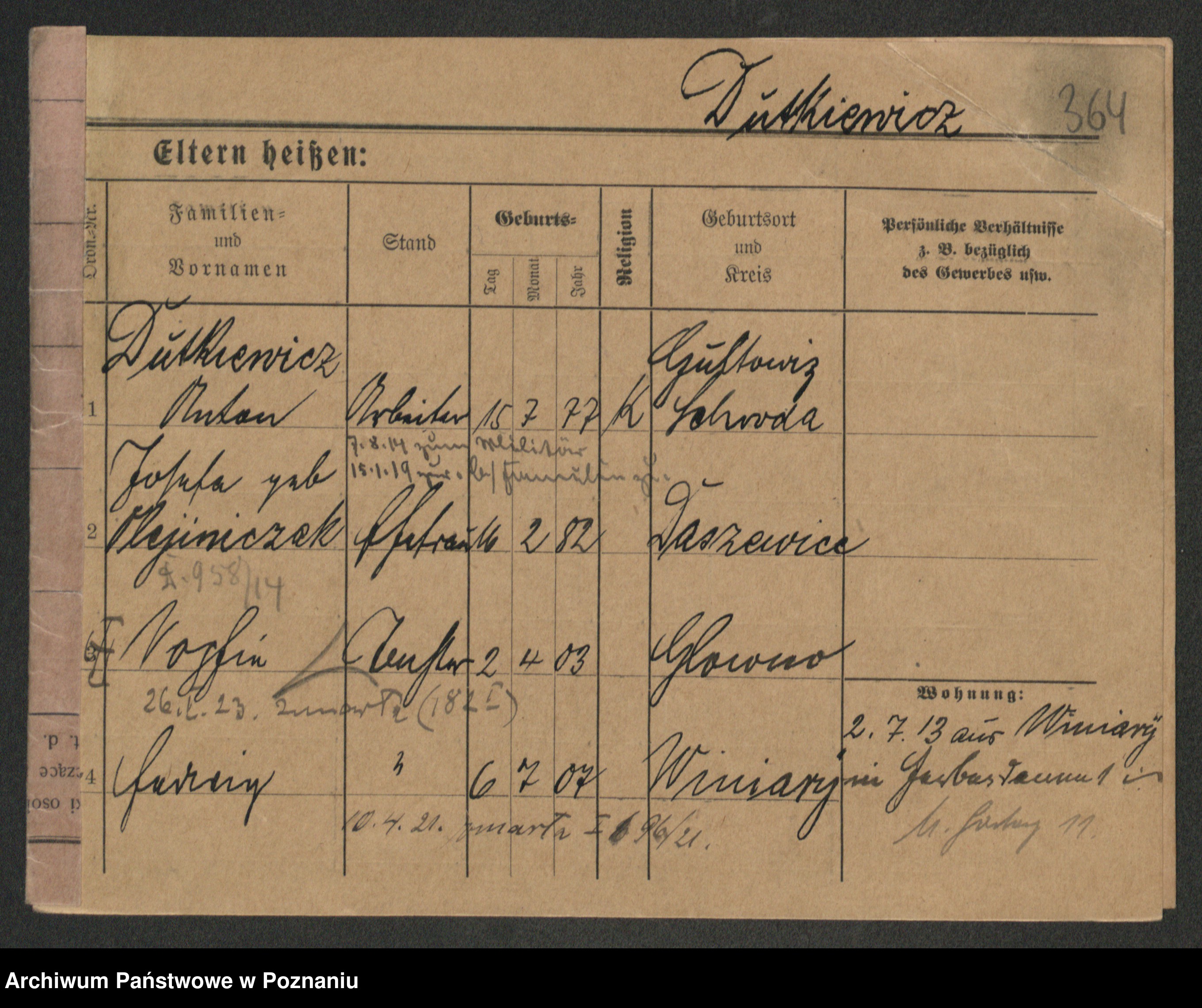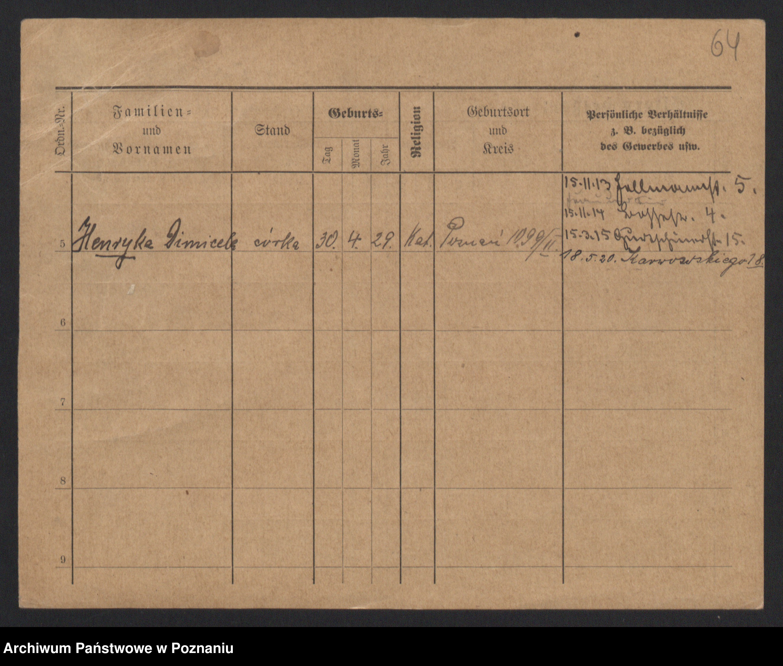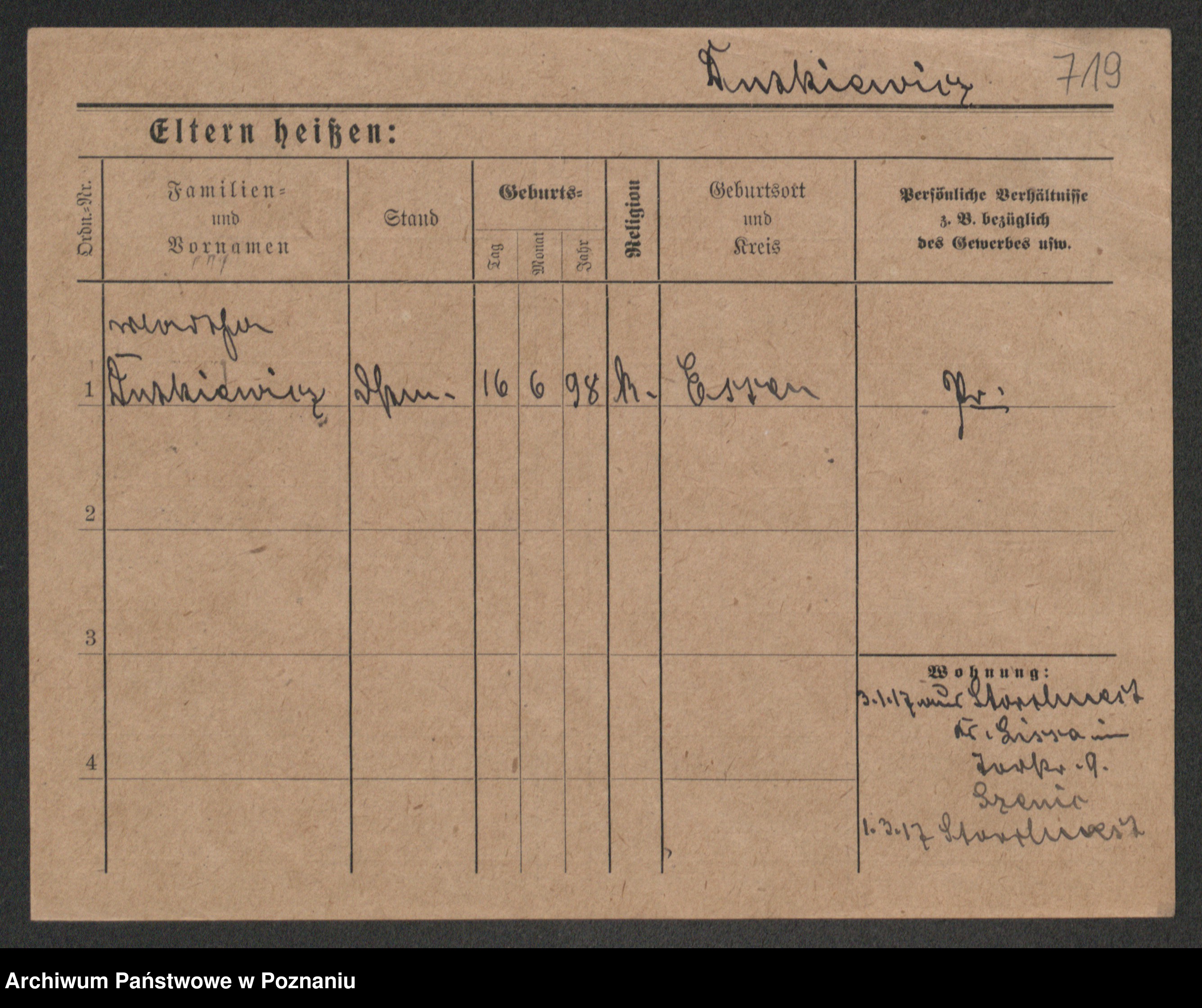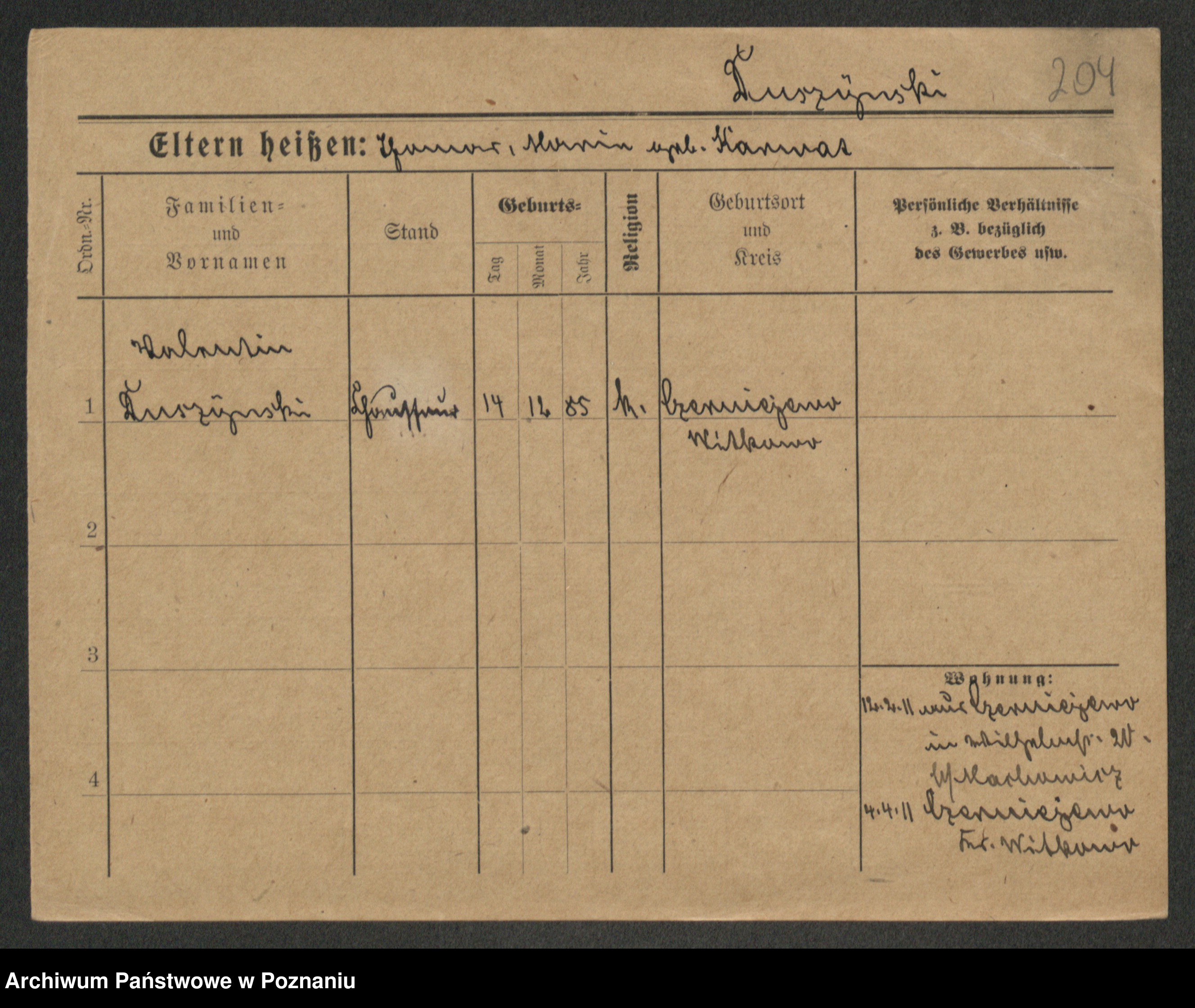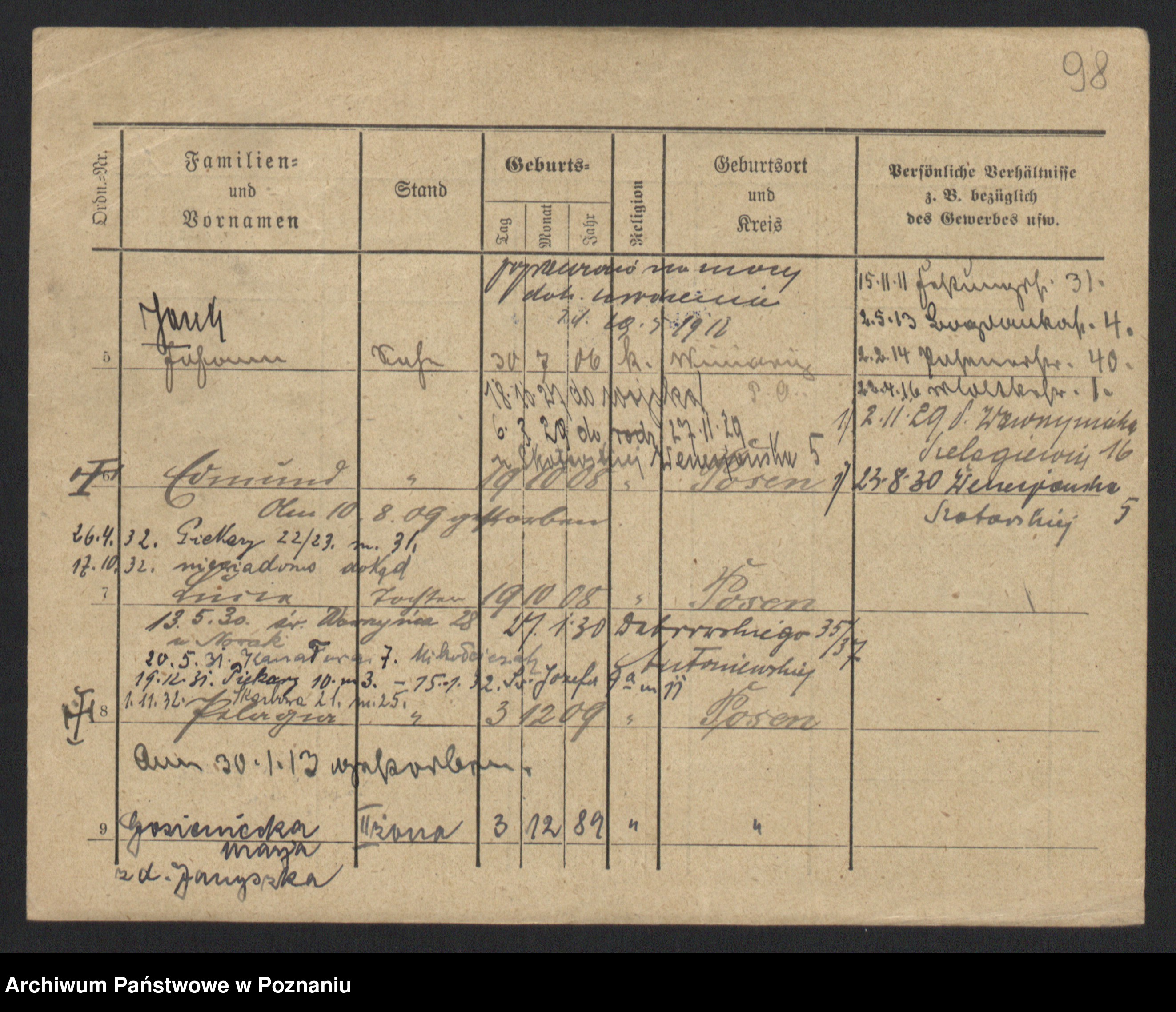 Podgląd karty osobowej dostępny jest po kliknięciu na nazwisko lub ikonkę karty. Można dokonywać powiększenia (ikony na górze) lub przechodzić między kolejnymi skanami (strzałki po bokach).