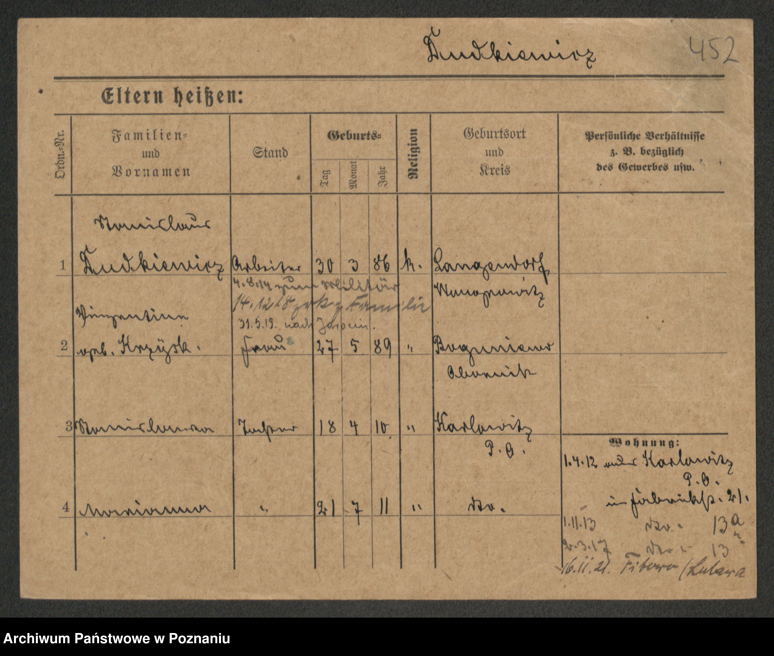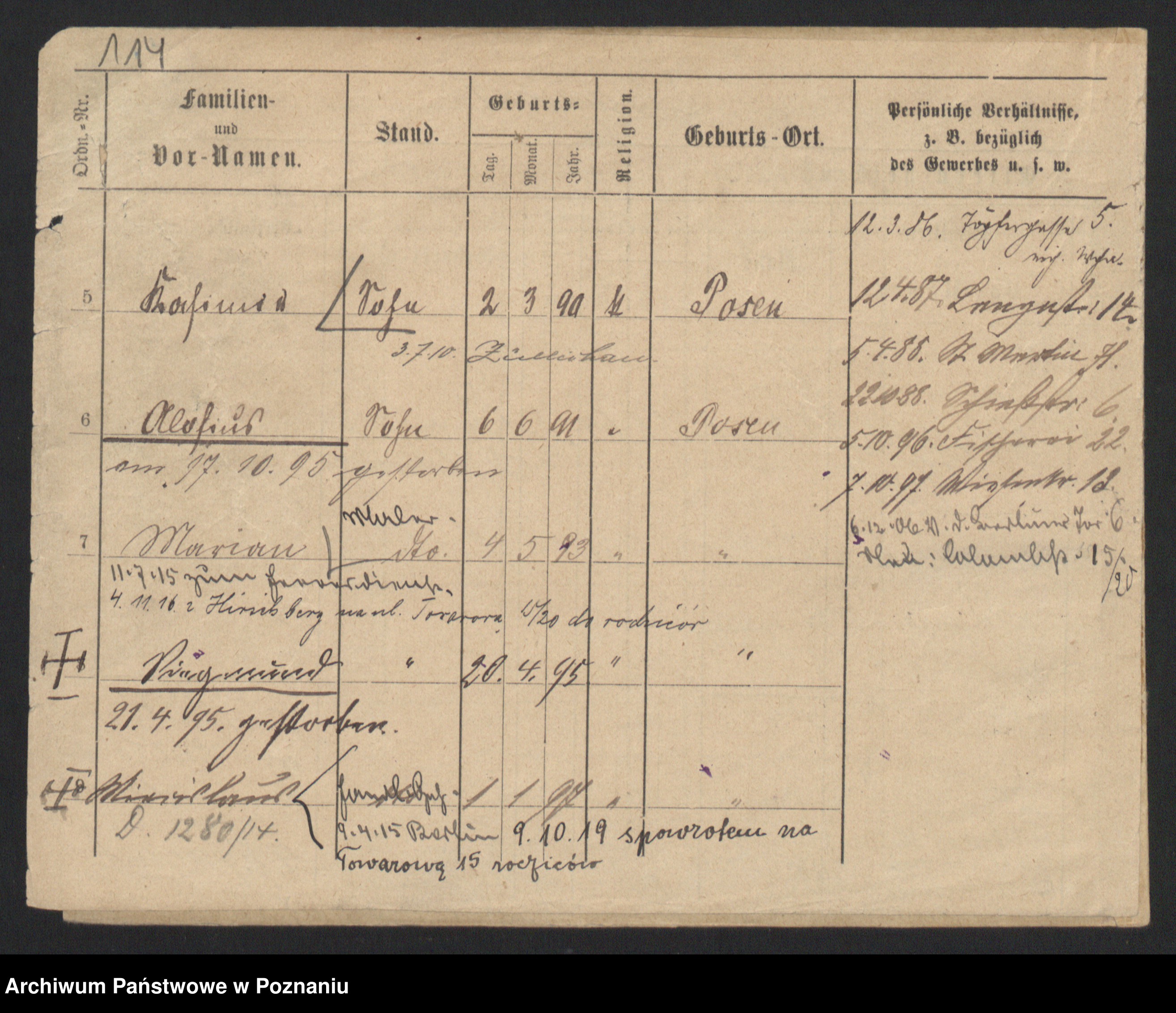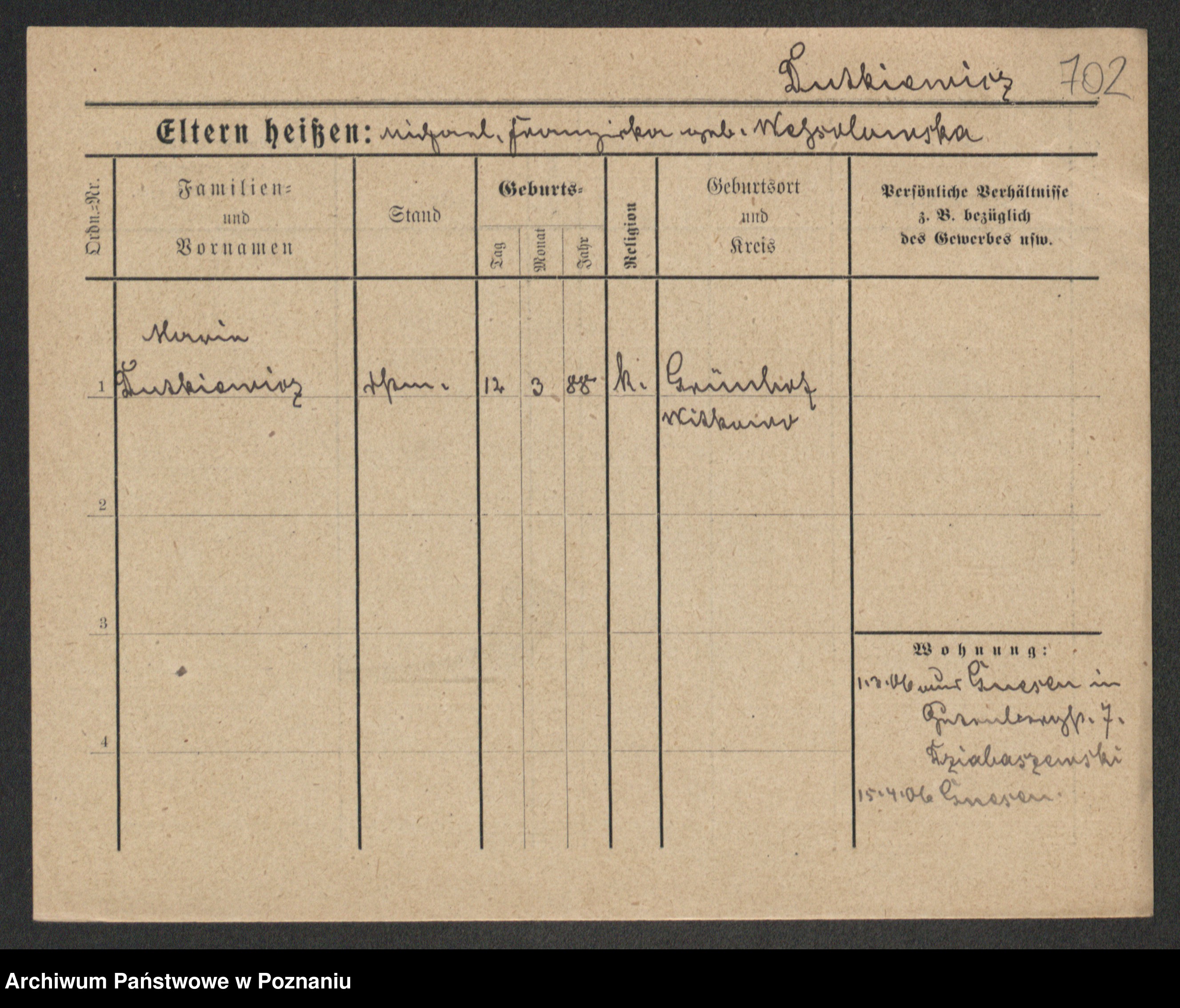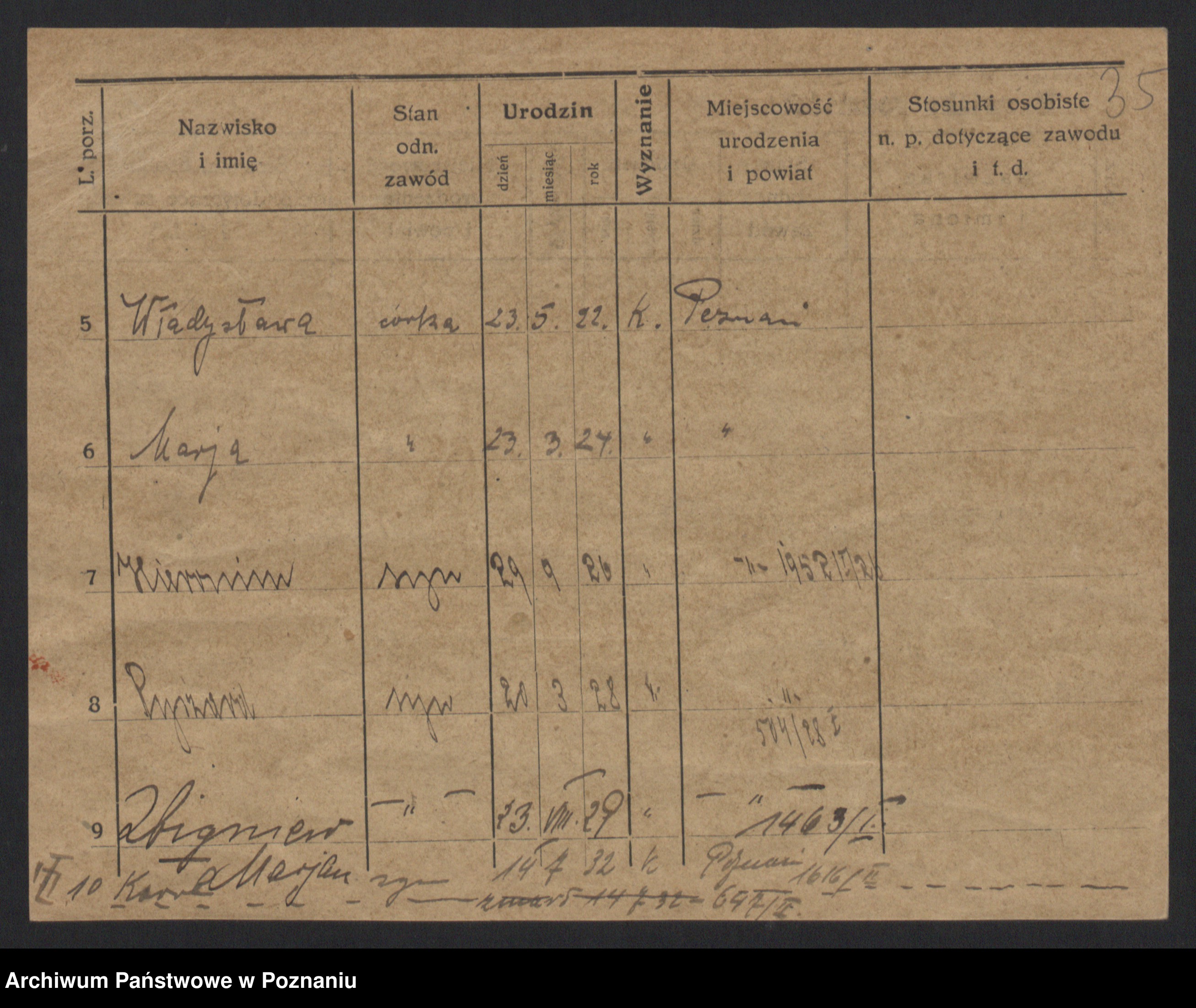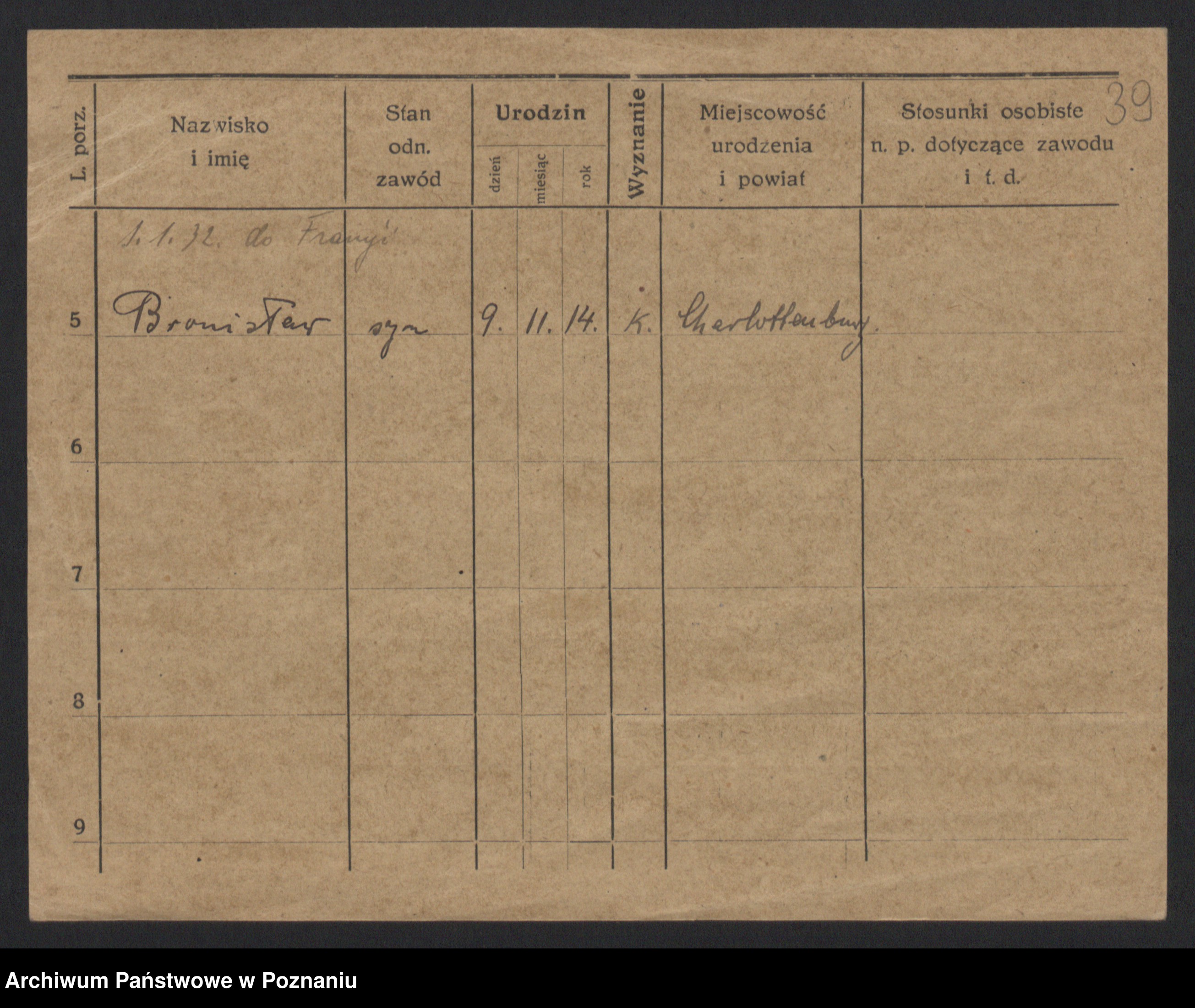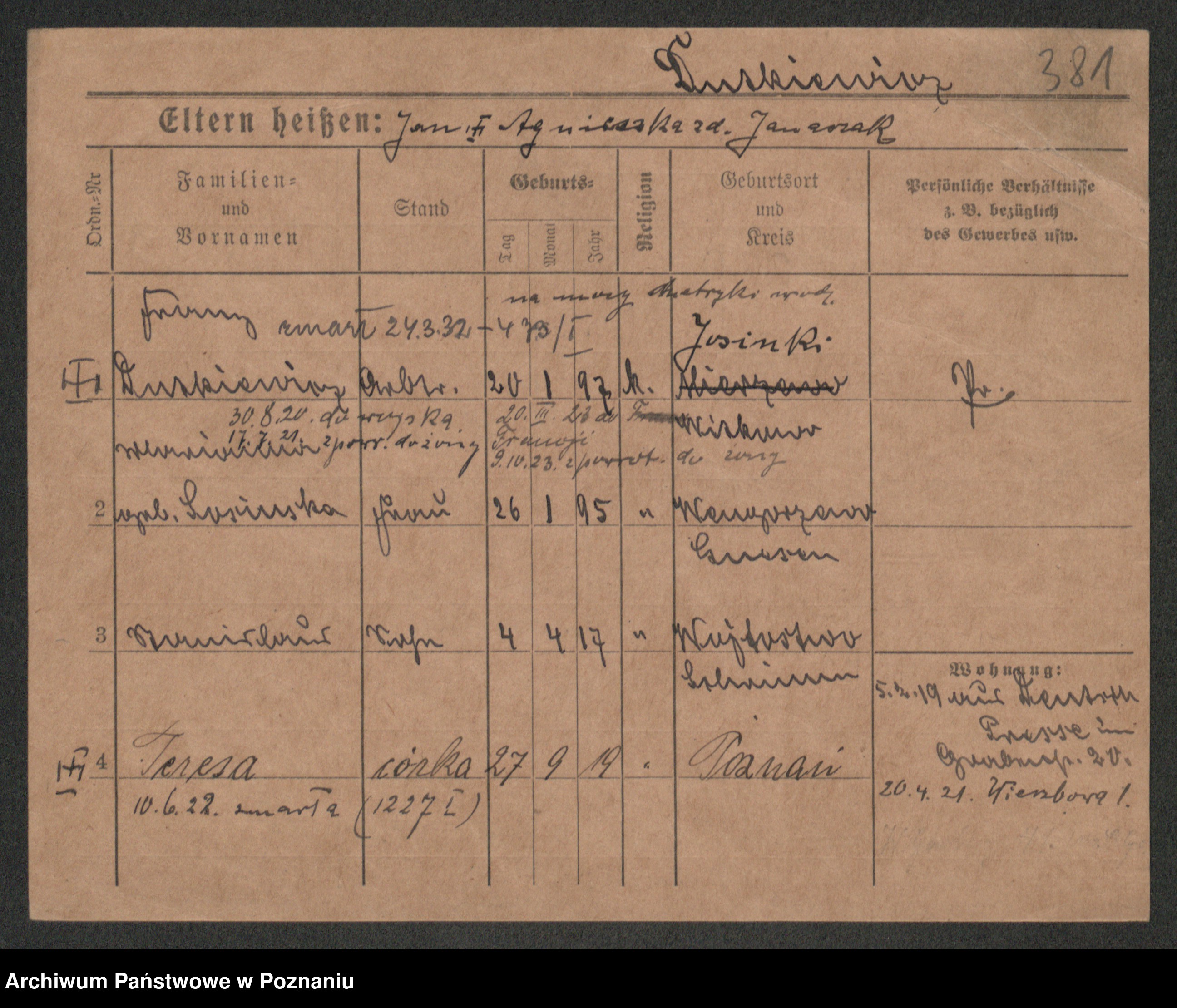 Podgląd karty osobowej dostępny jest po kliknięciu na nazwisko lub ikonkę karty. Można dokonywać powiększenia (ikony na górze) lub przechodzić między kolejnymi skanami (strzałki po bokach).
