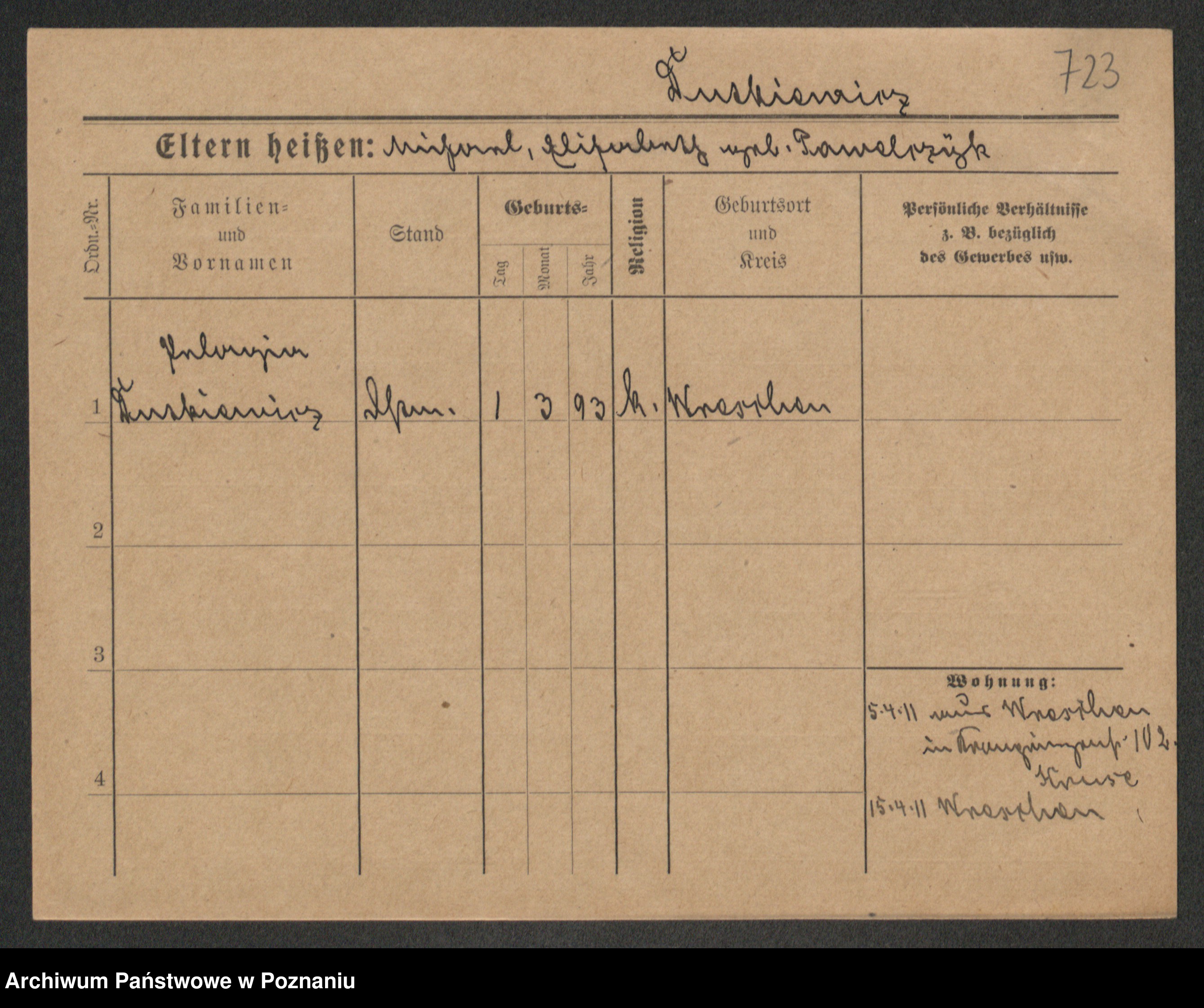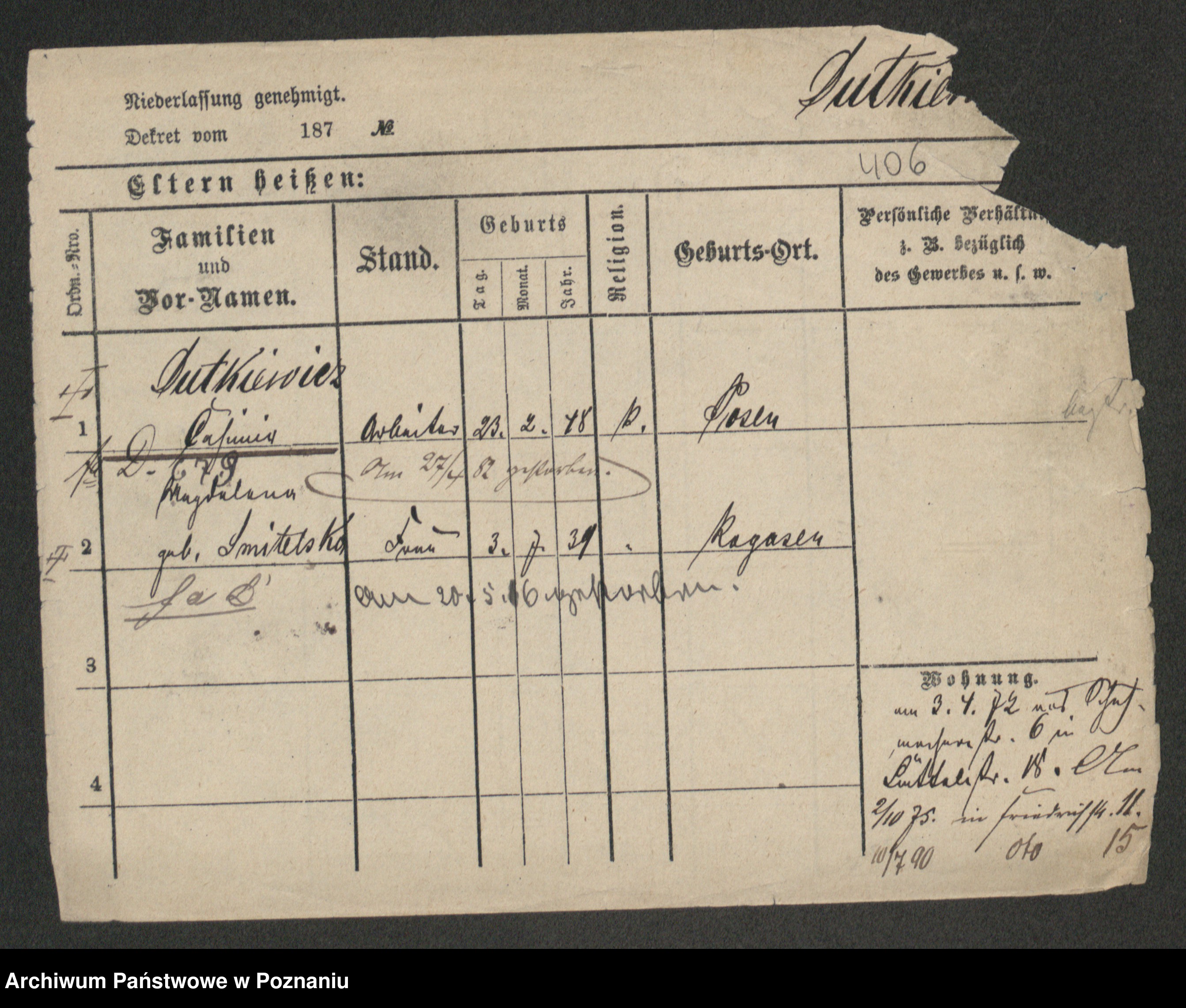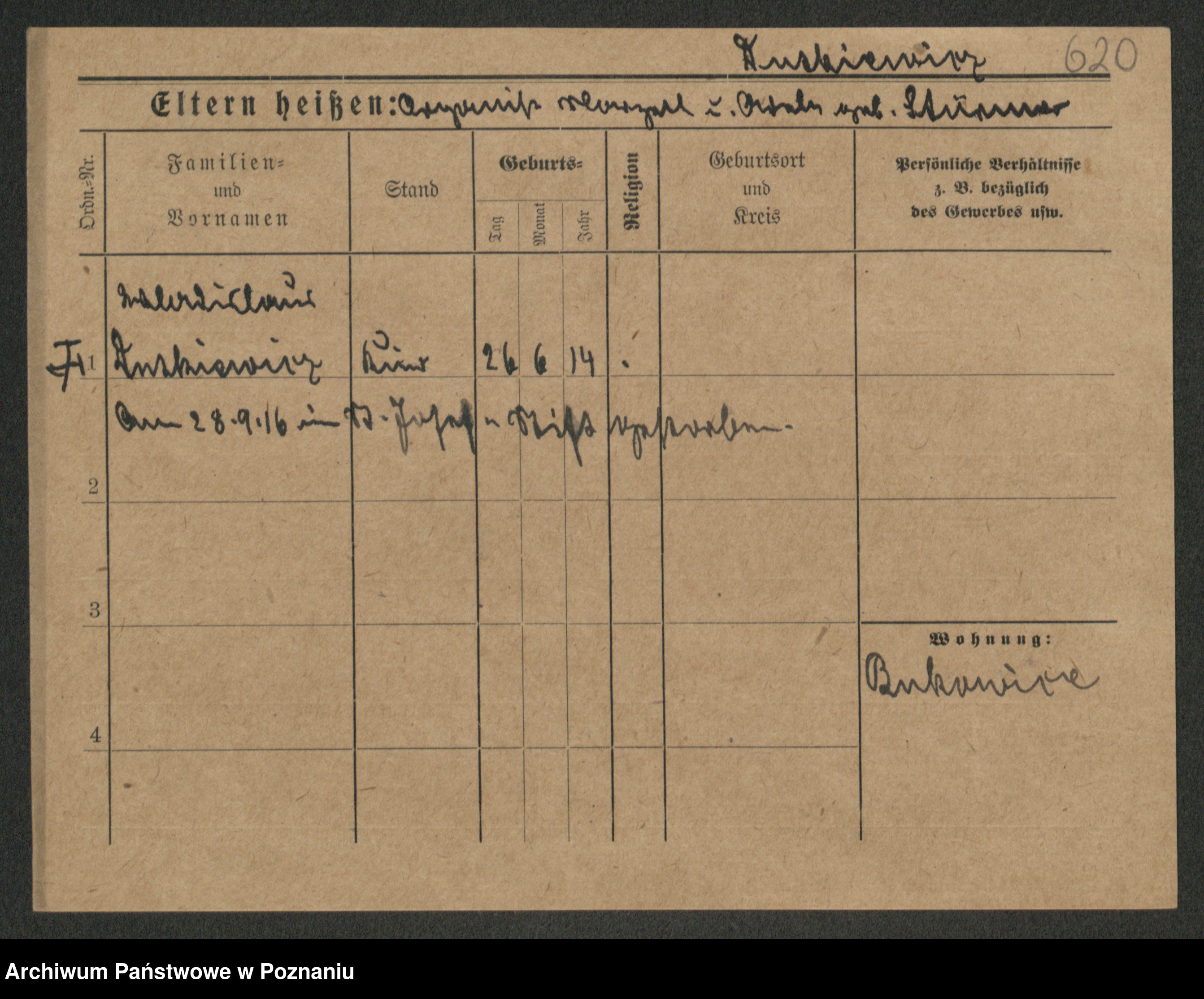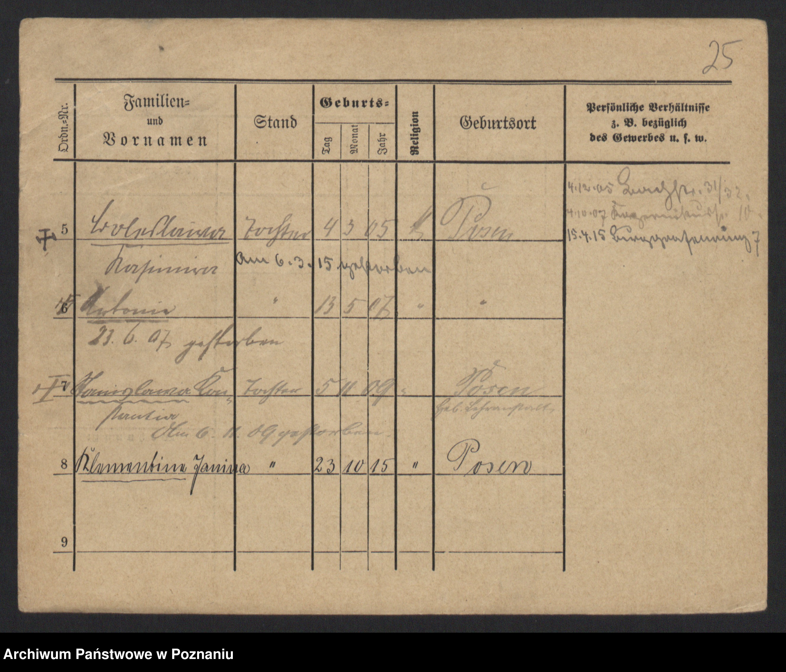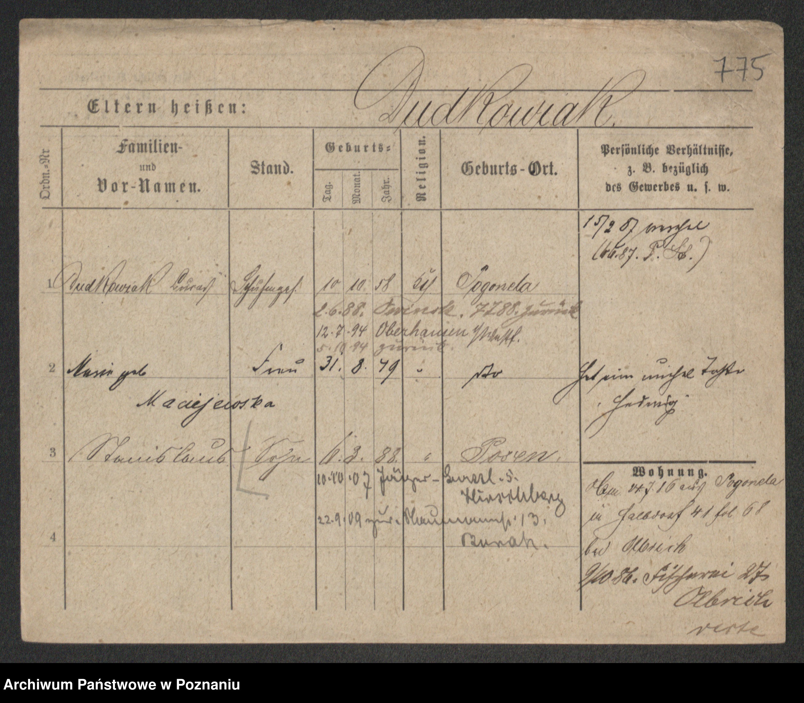 Podgląd karty osobowej dostępny jest po kliknięciu na nazwisko lub ikonkę karty. Można dokonywać powiększenia (ikony na górze) lub przechodzić między kolejnymi skanami (strzałki po bokach).