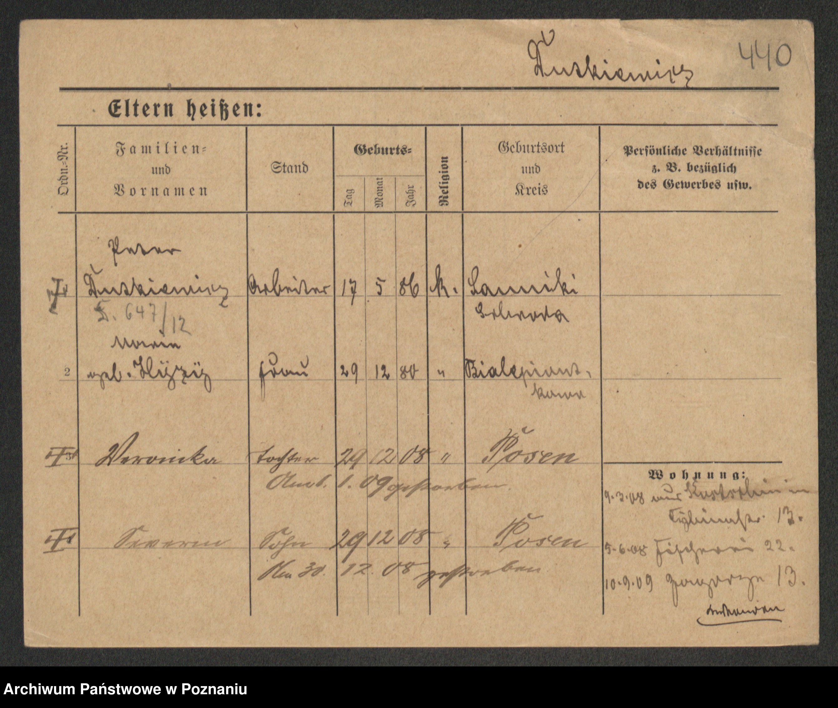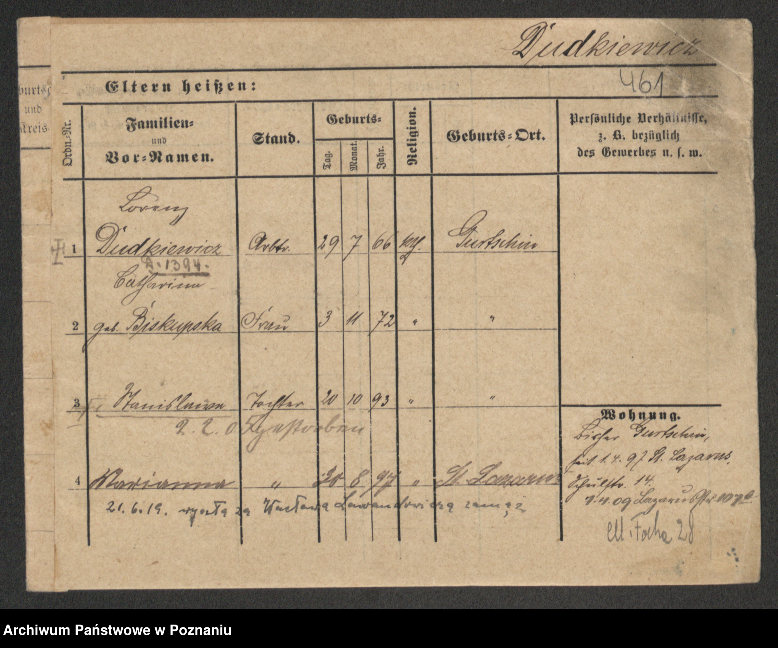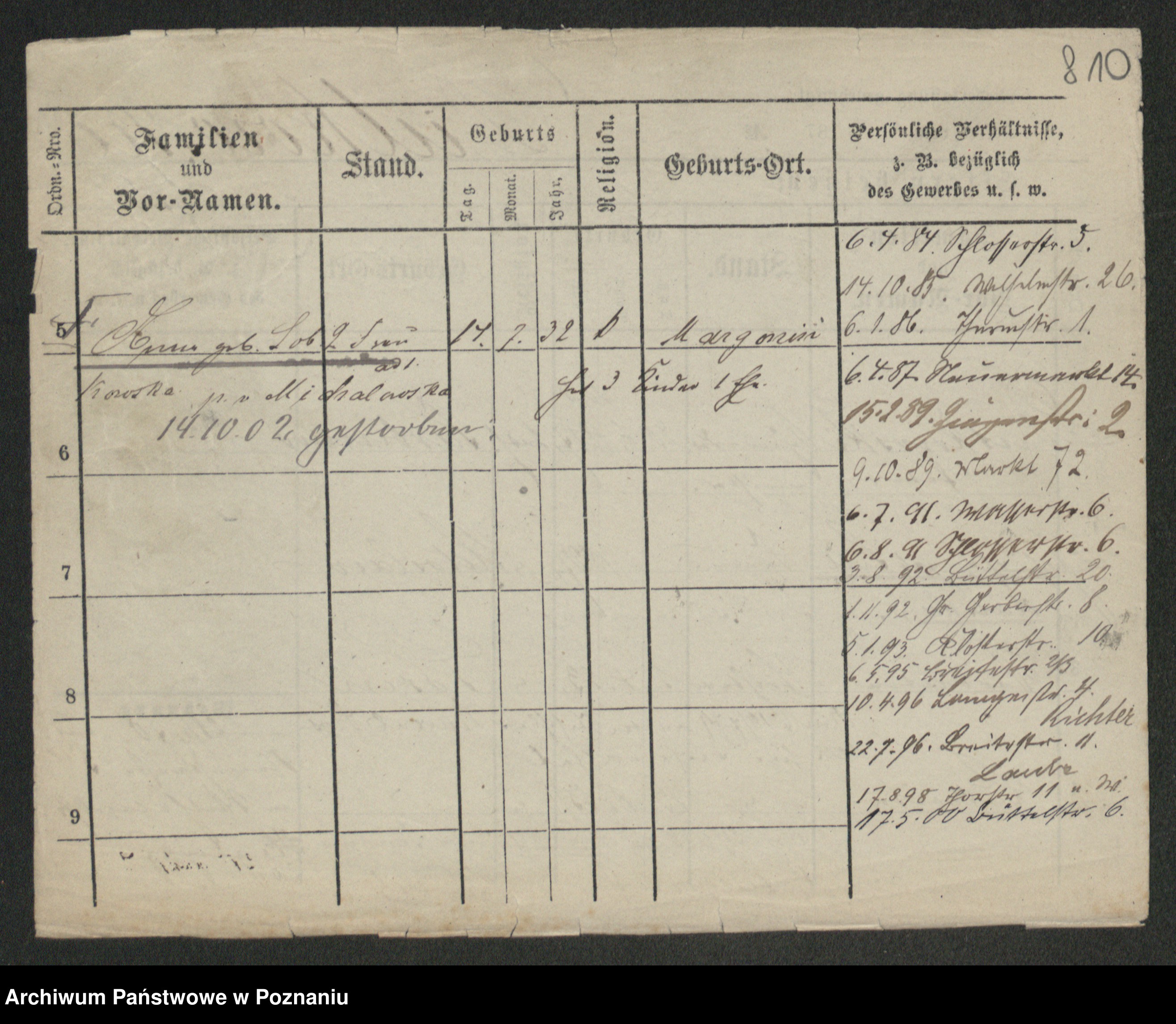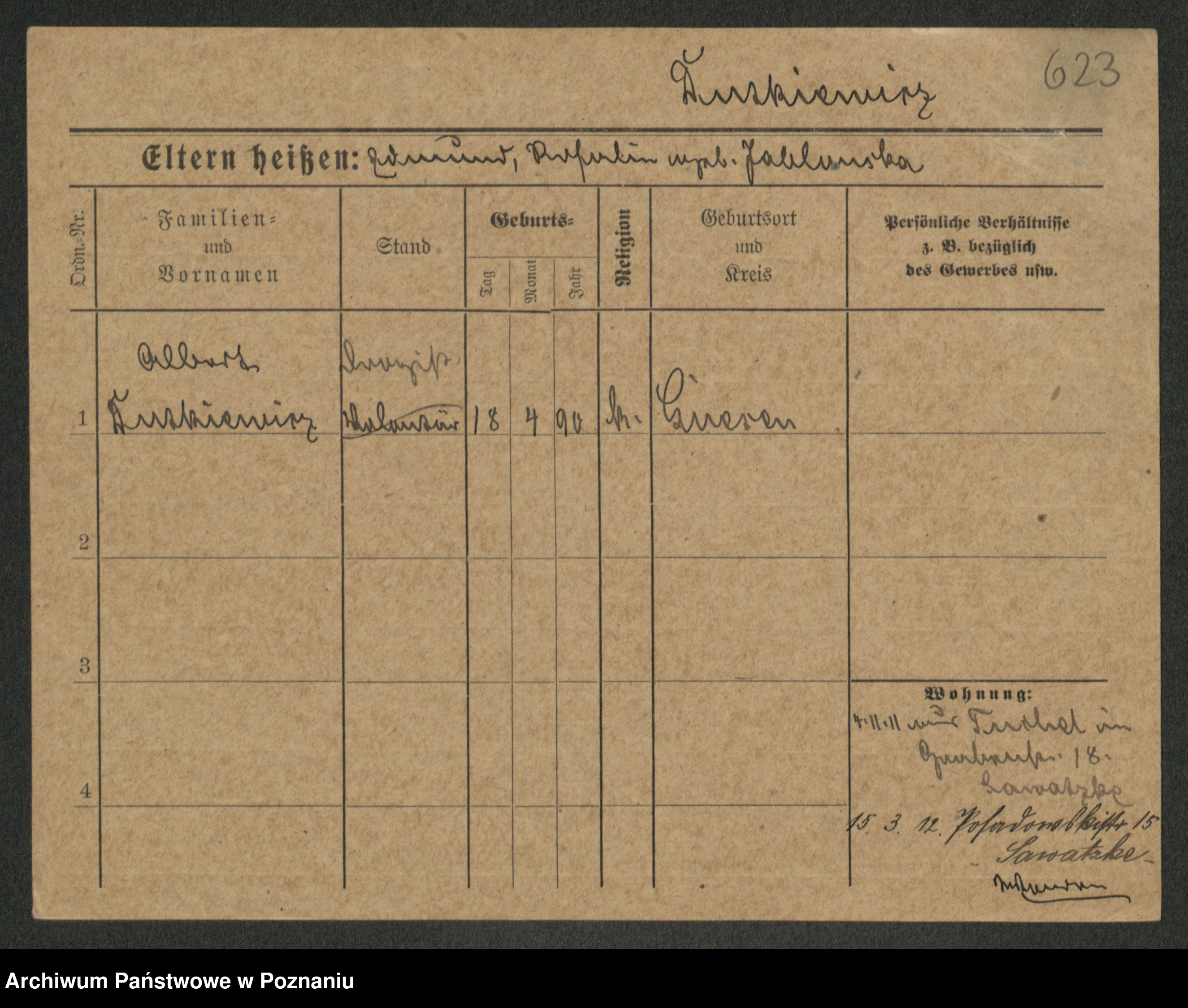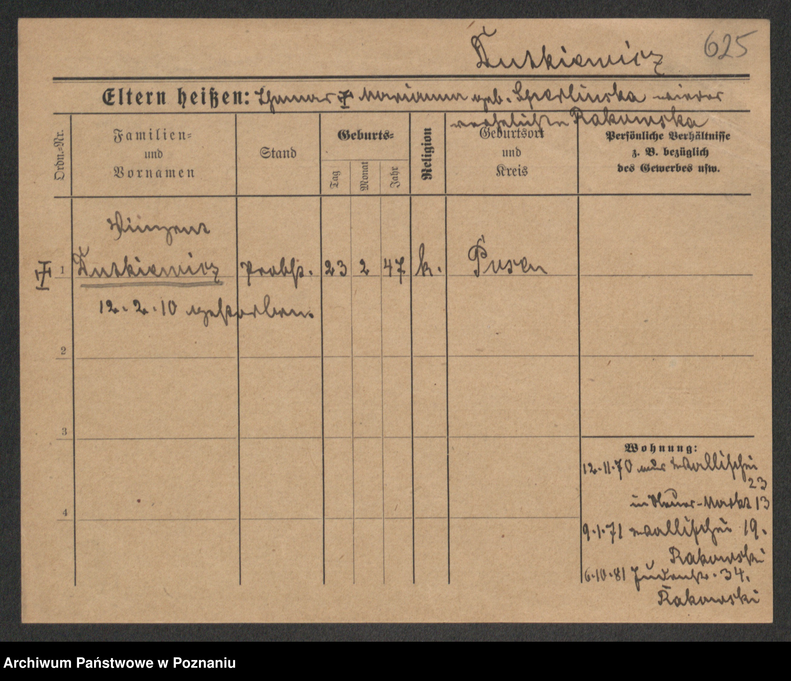 Podgląd karty osobowej dostępny jest po kliknięciu na nazwisko lub ikonkę karty. Można dokonywać powiększenia (ikony na górze) lub przechodzić między kolejnymi skanami (strzałki po bokach).