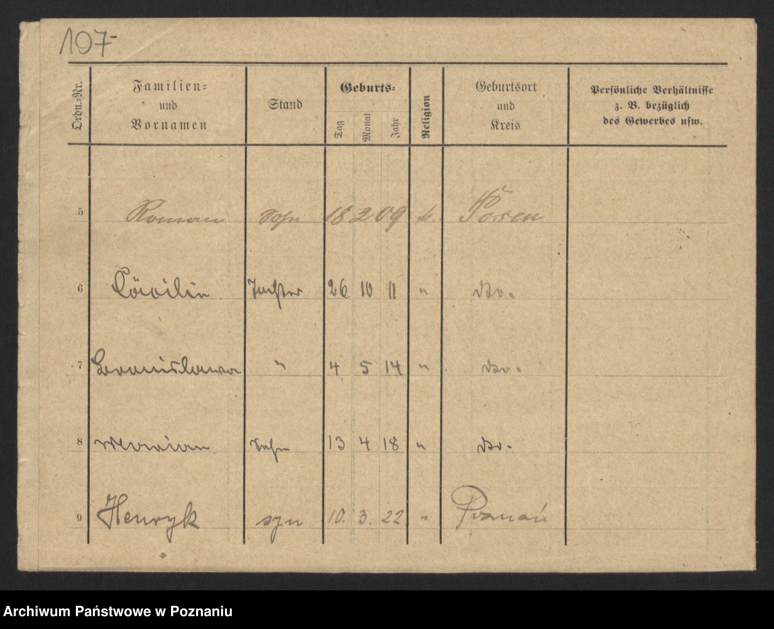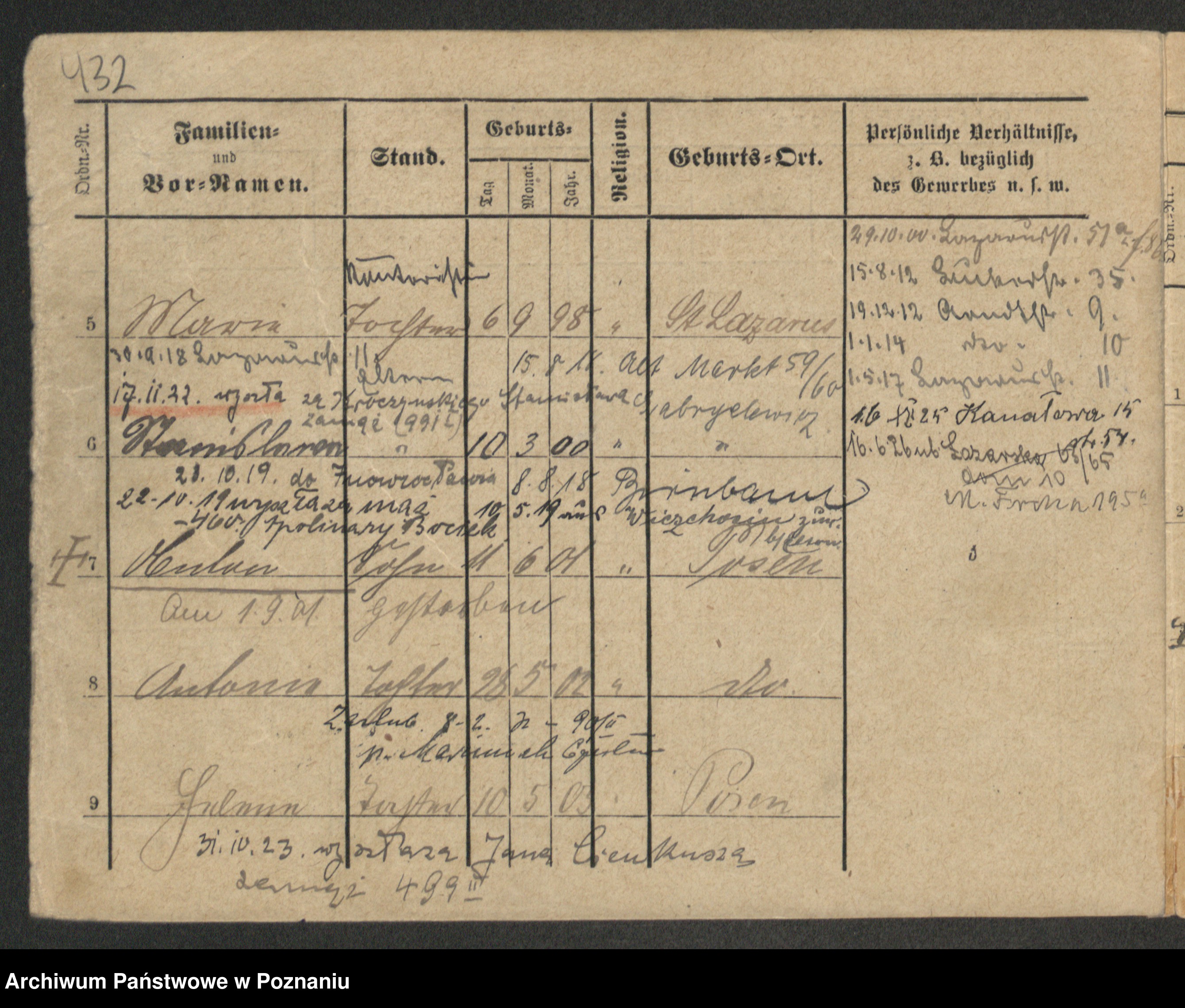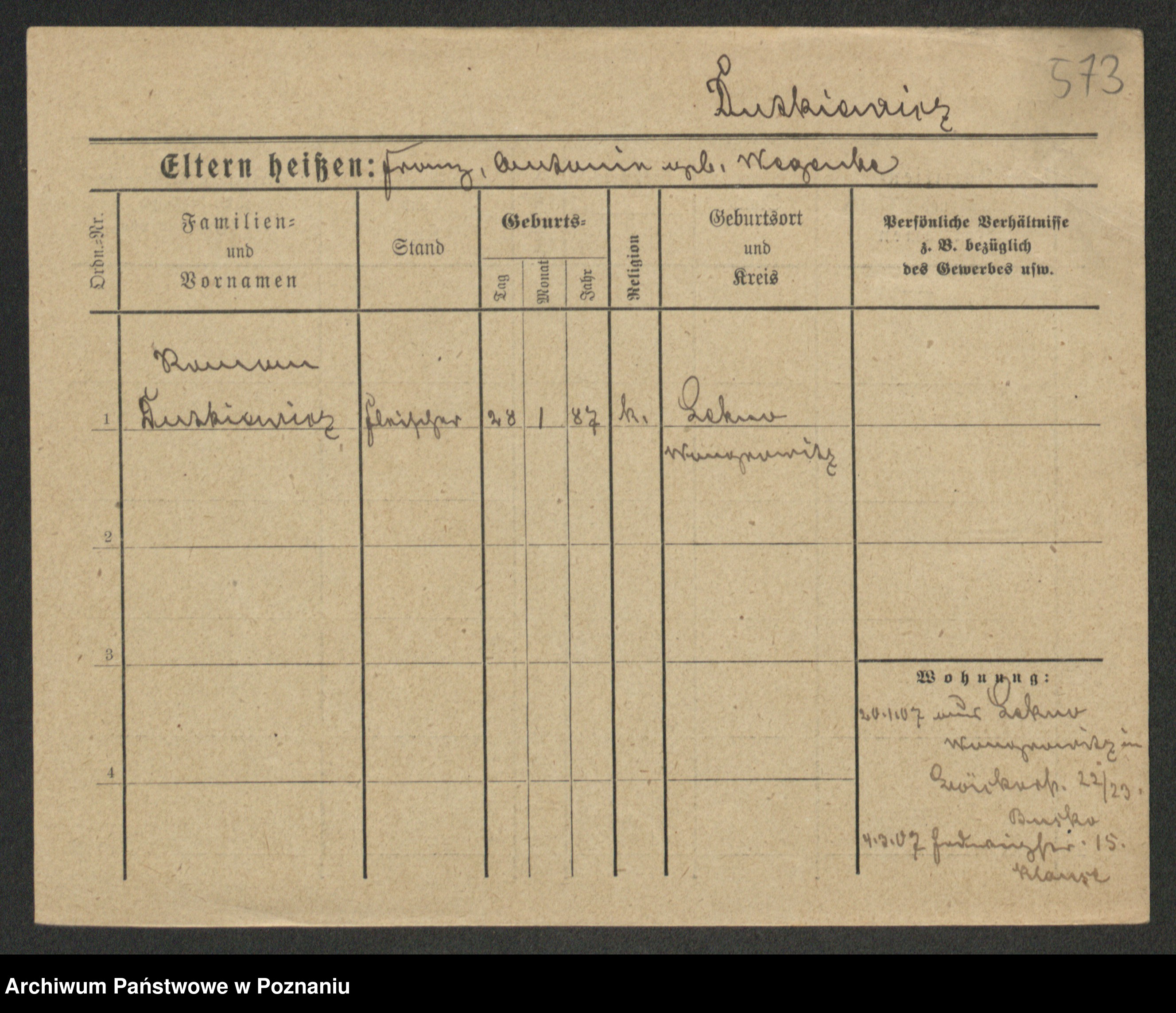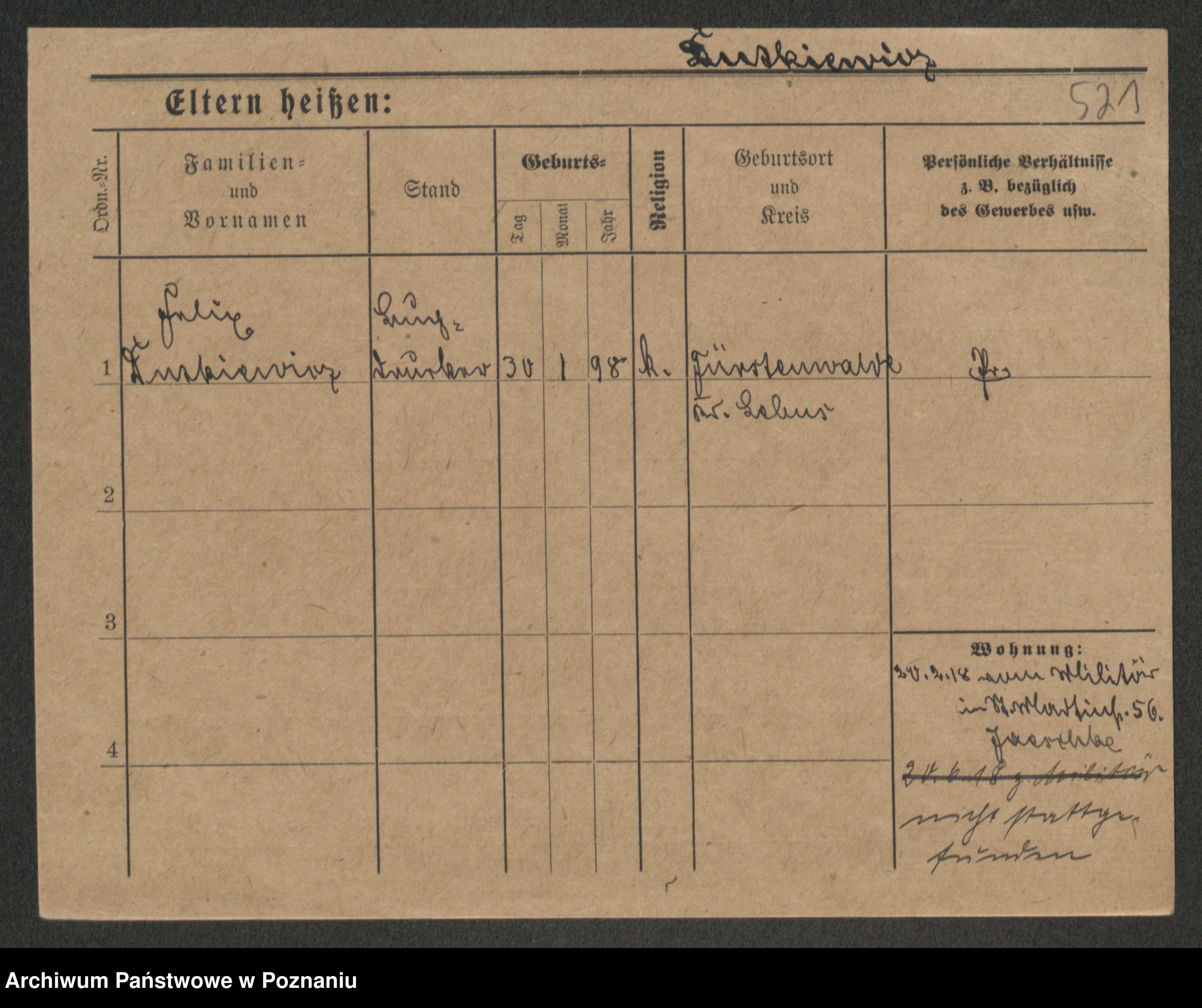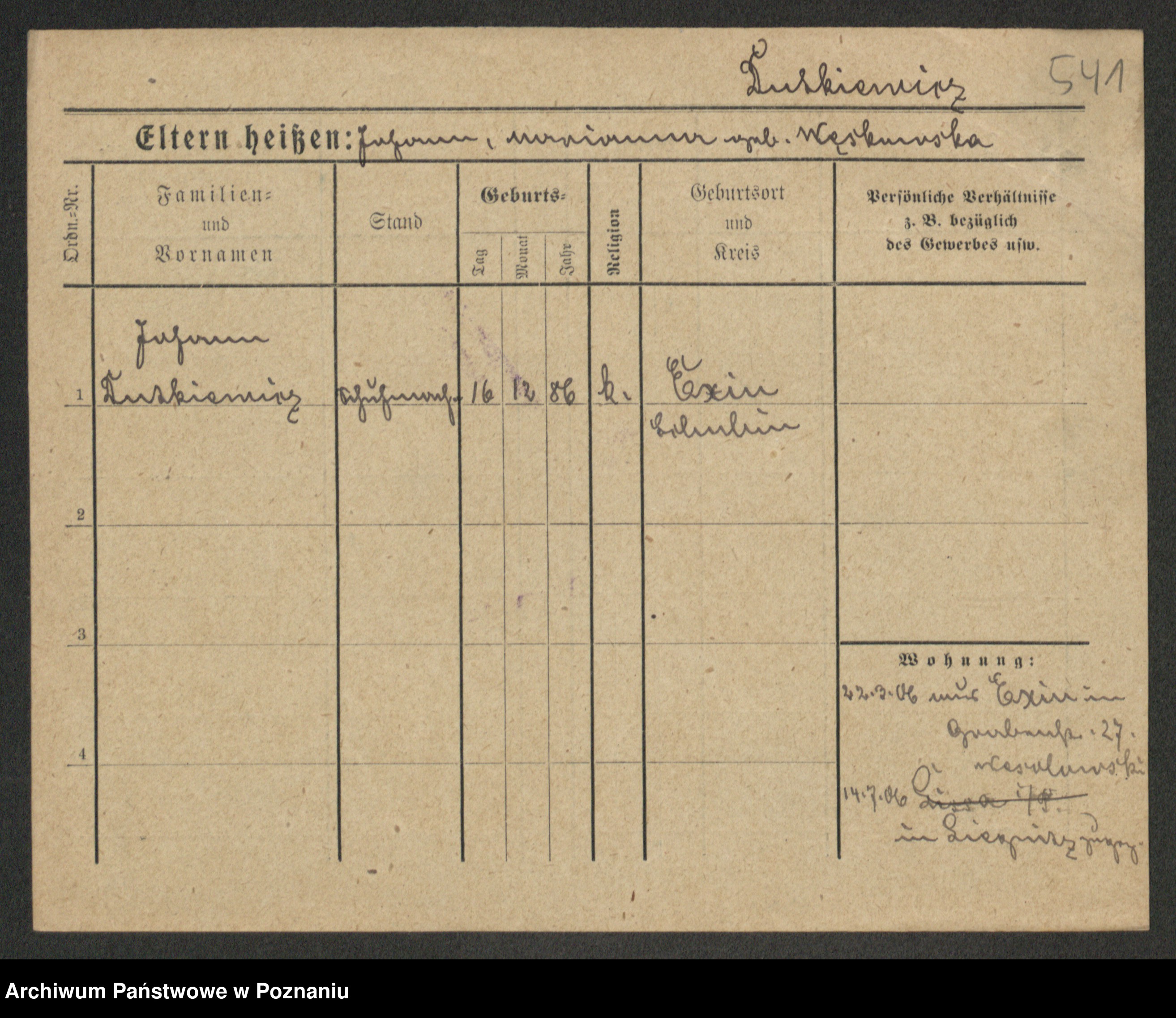 Podgląd karty osobowej dostępny jest po kliknięciu na nazwisko lub ikonkę karty. Można dokonywać powiększenia (ikony na górze) lub przechodzić między kolejnymi skanami (strzałki po bokach).