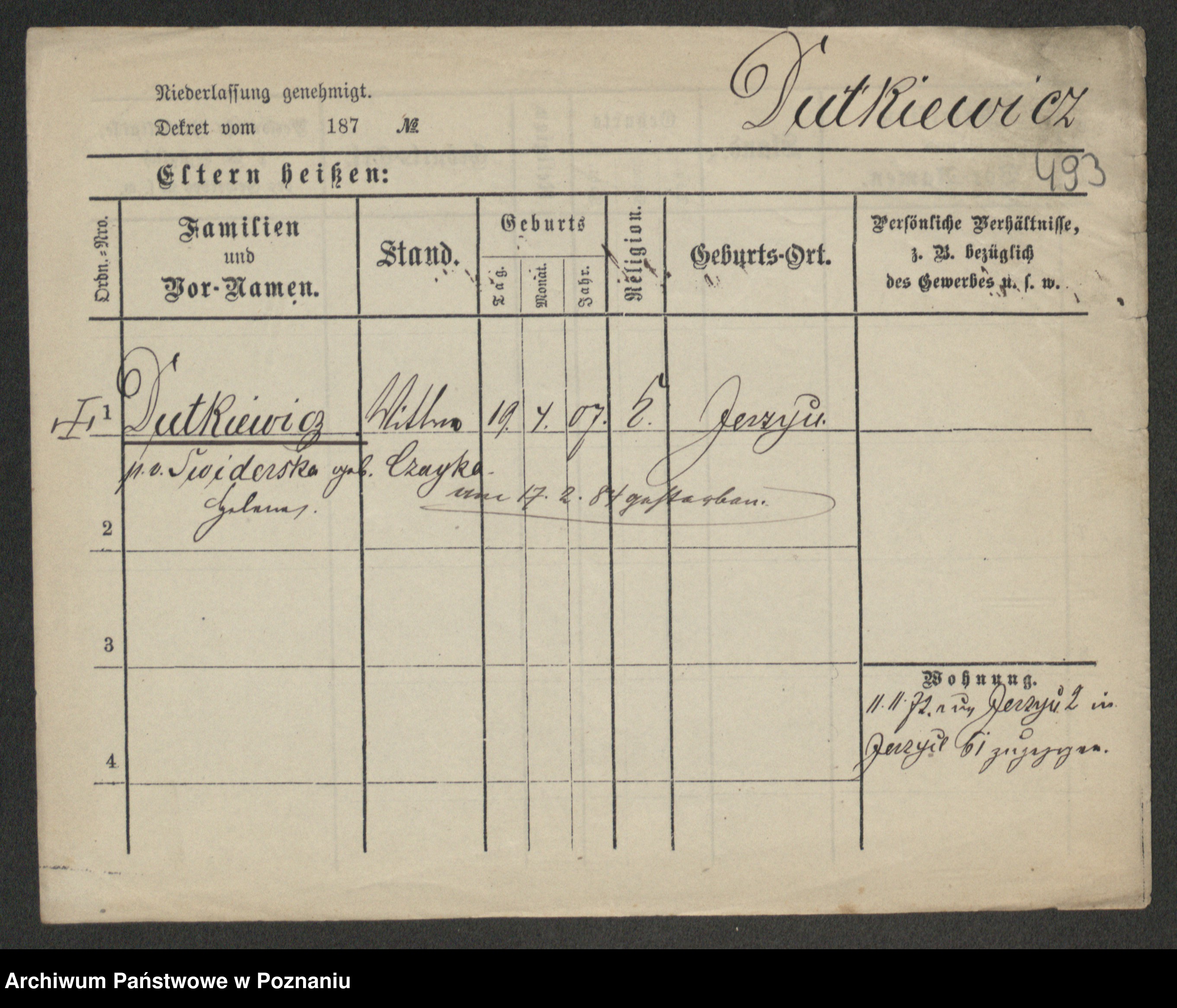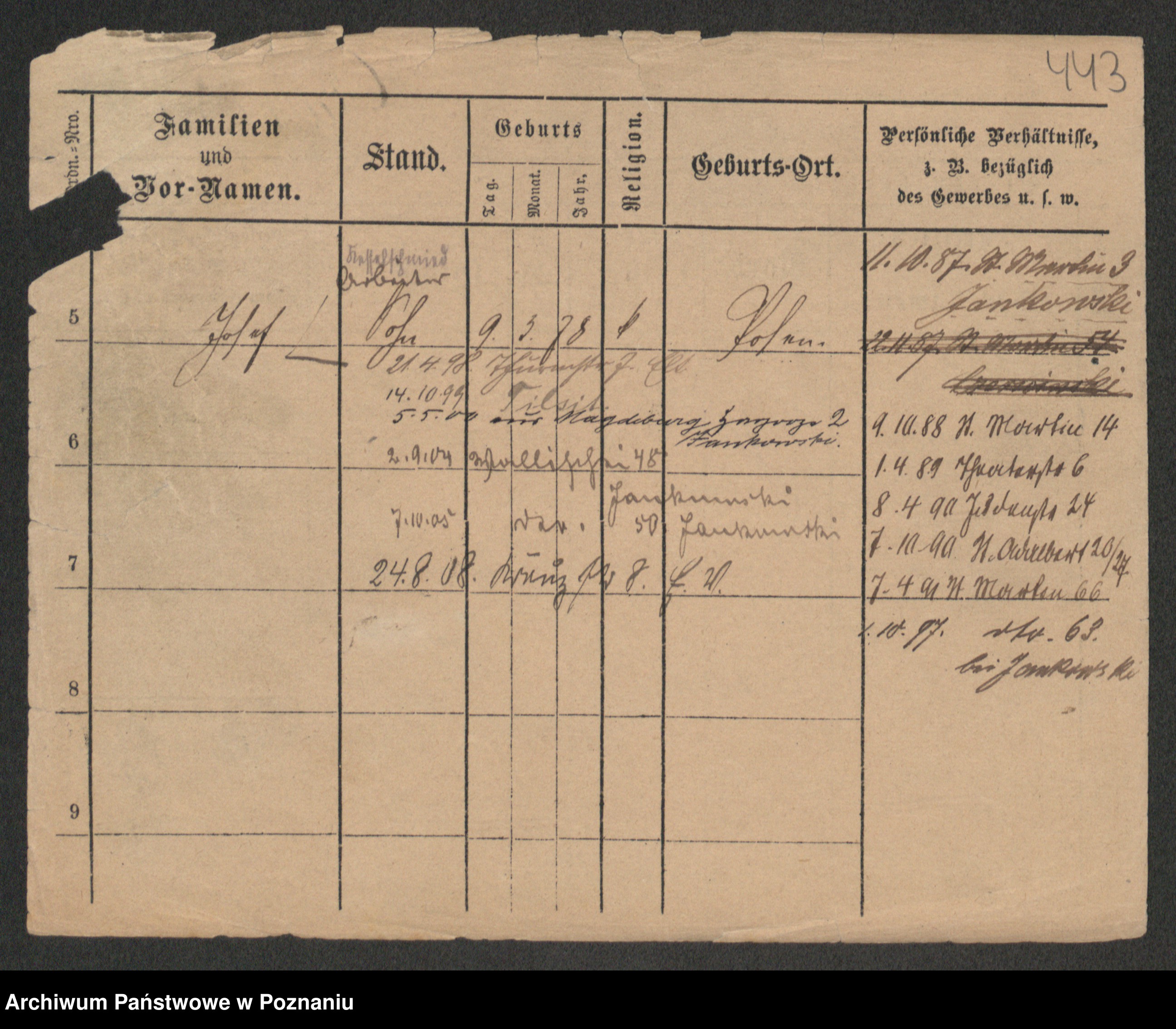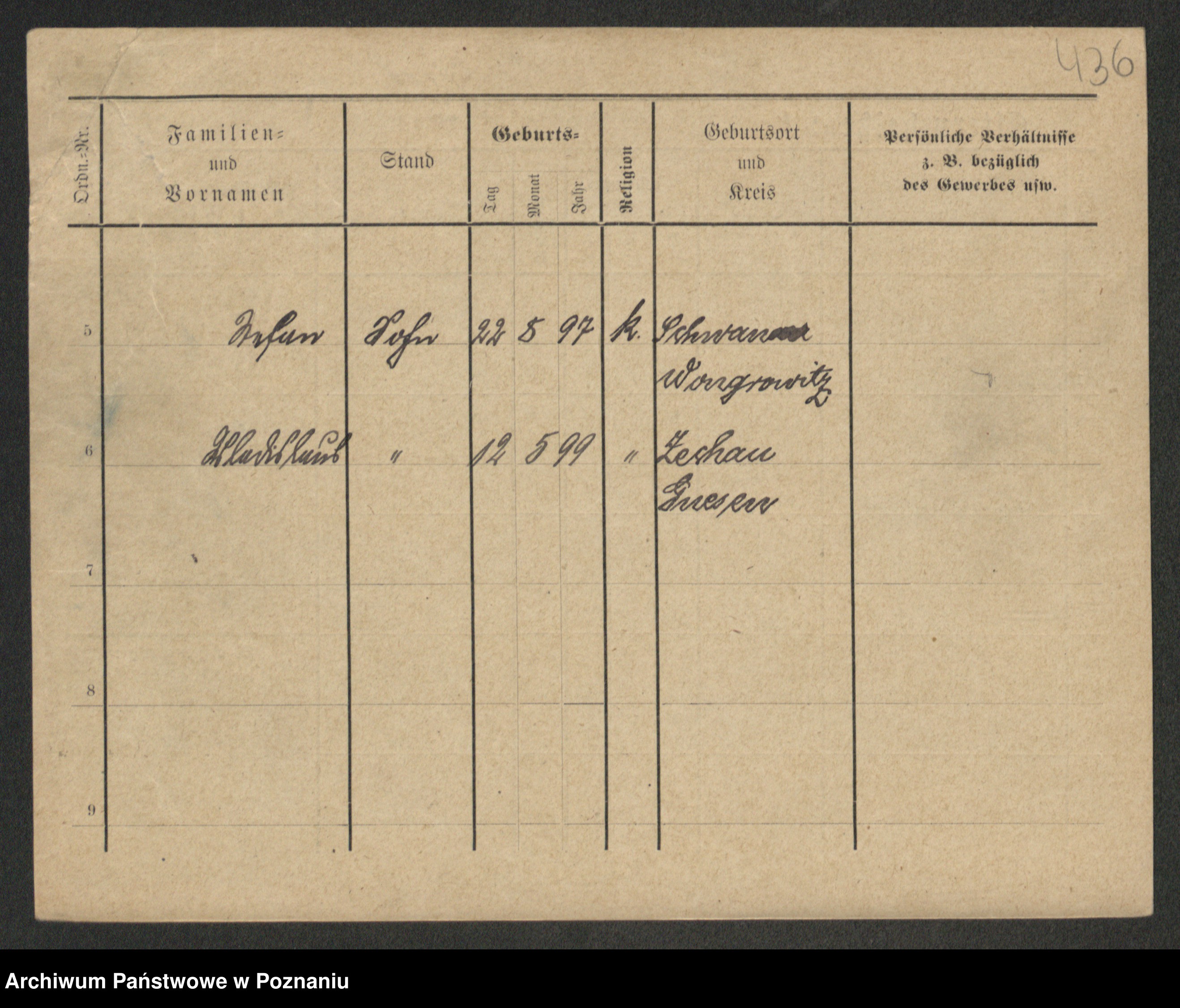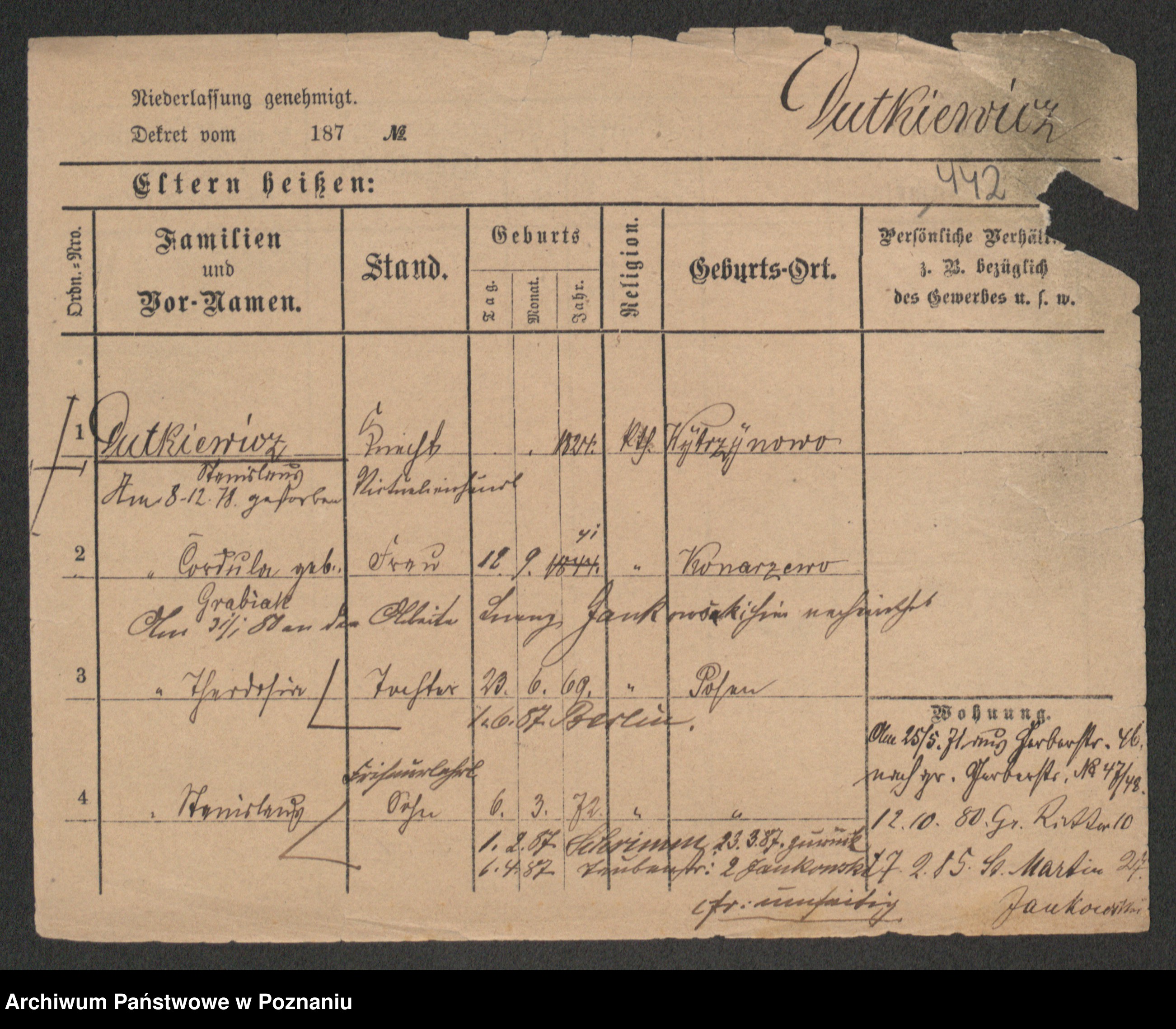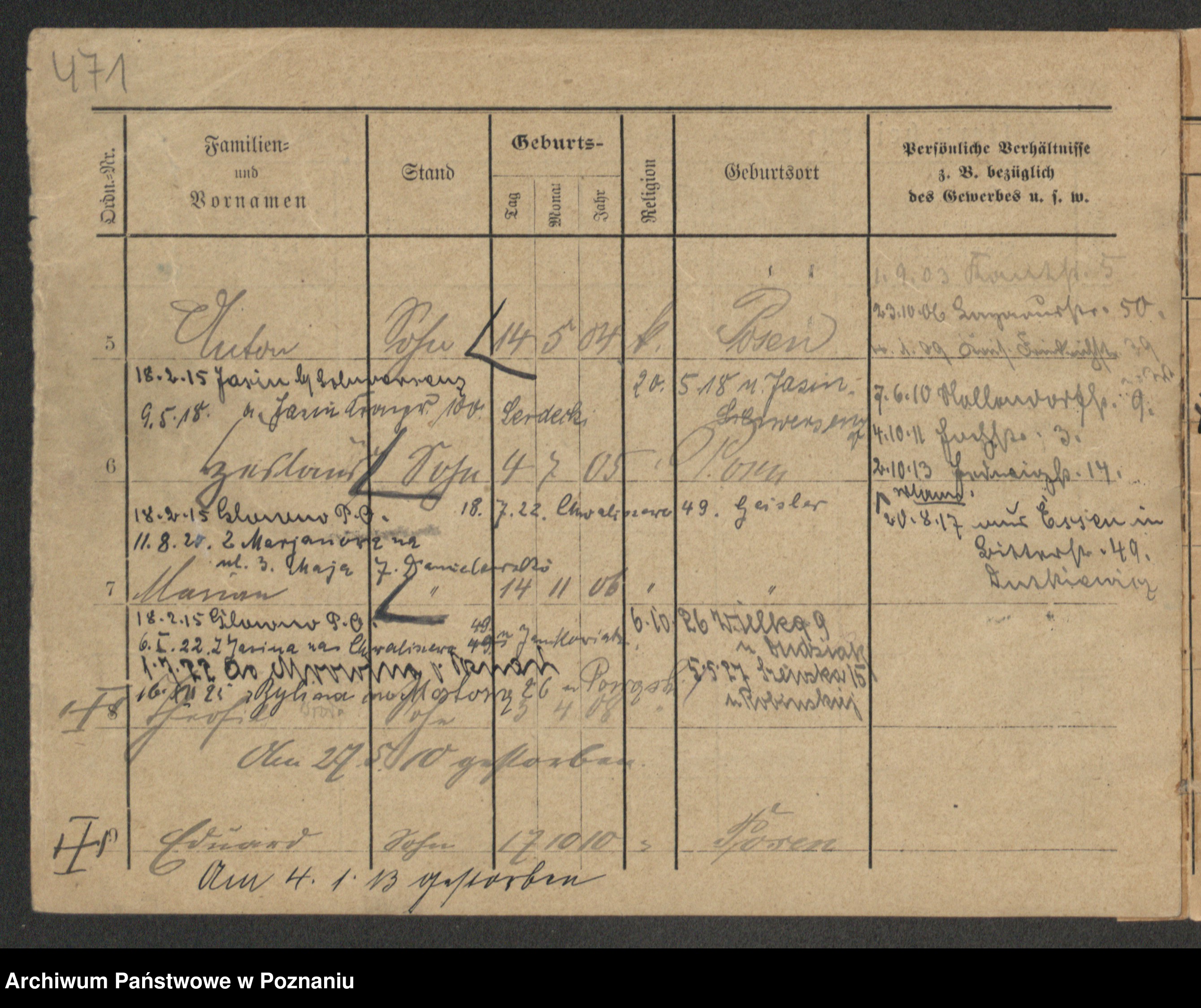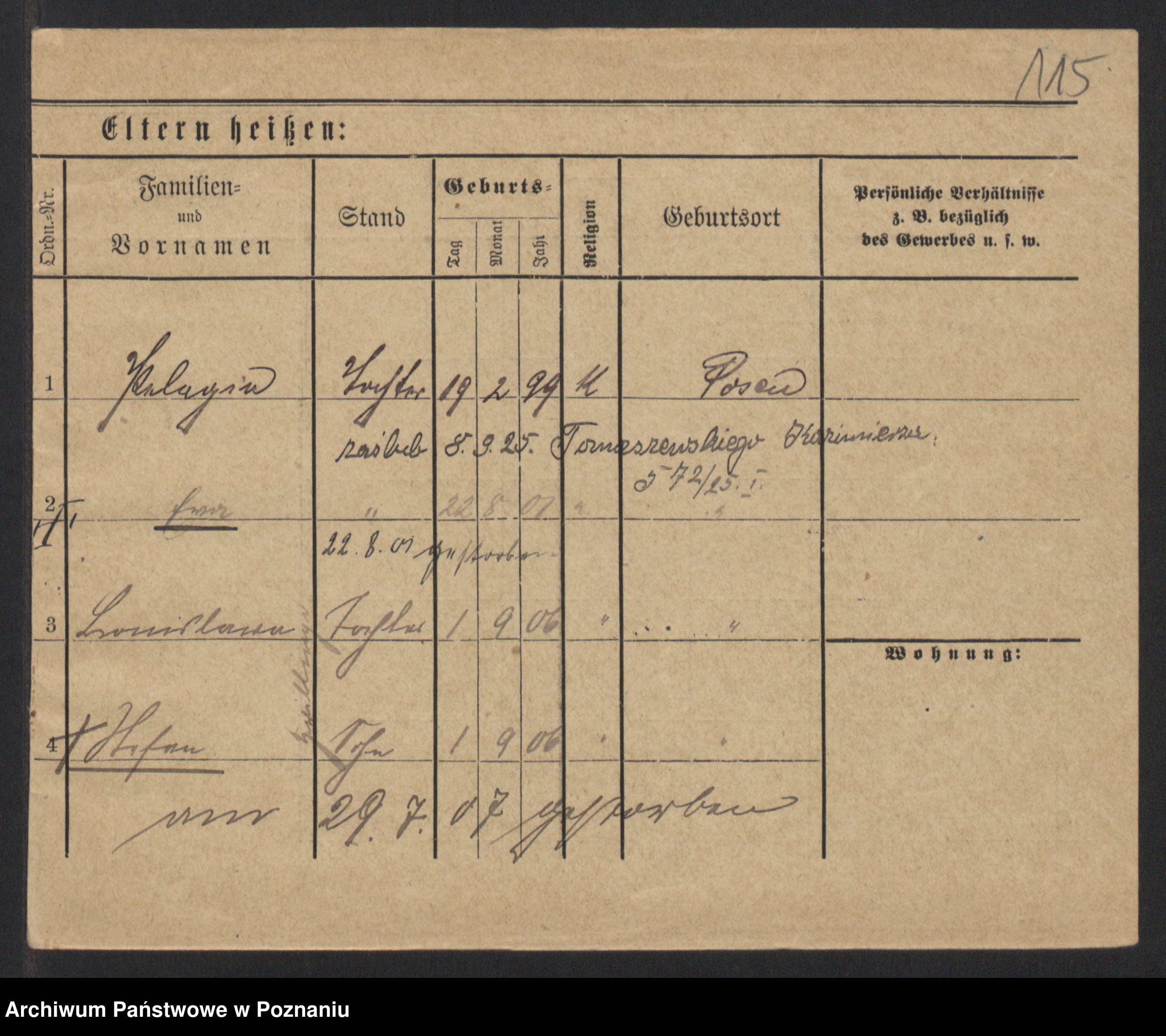 Podgląd karty osobowej dostępny jest po kliknięciu na nazwisko lub ikonkę karty. Można dokonywać powiększenia (ikony na górze) lub przechodzić między kolejnymi skanami (strzałki po bokach).