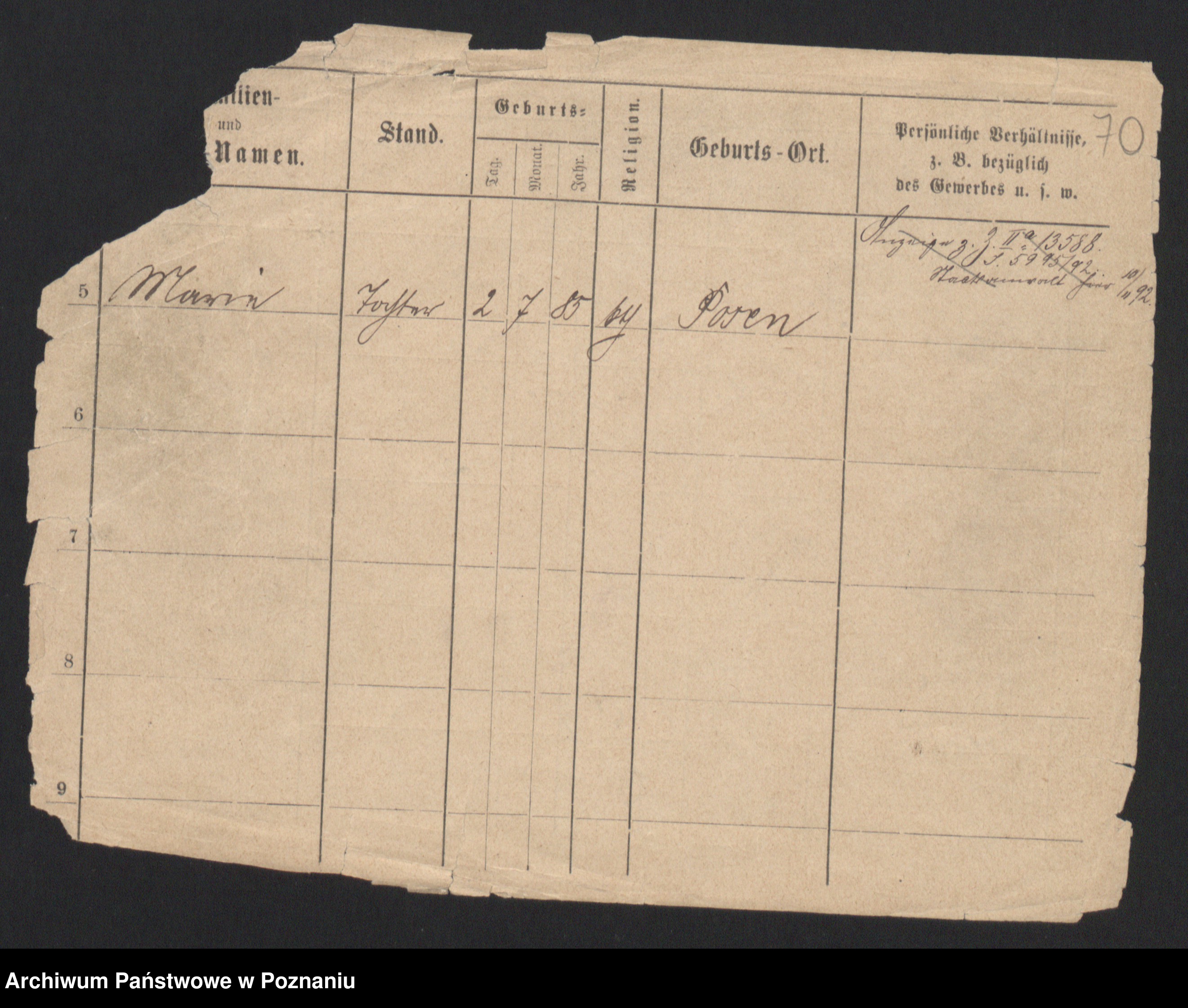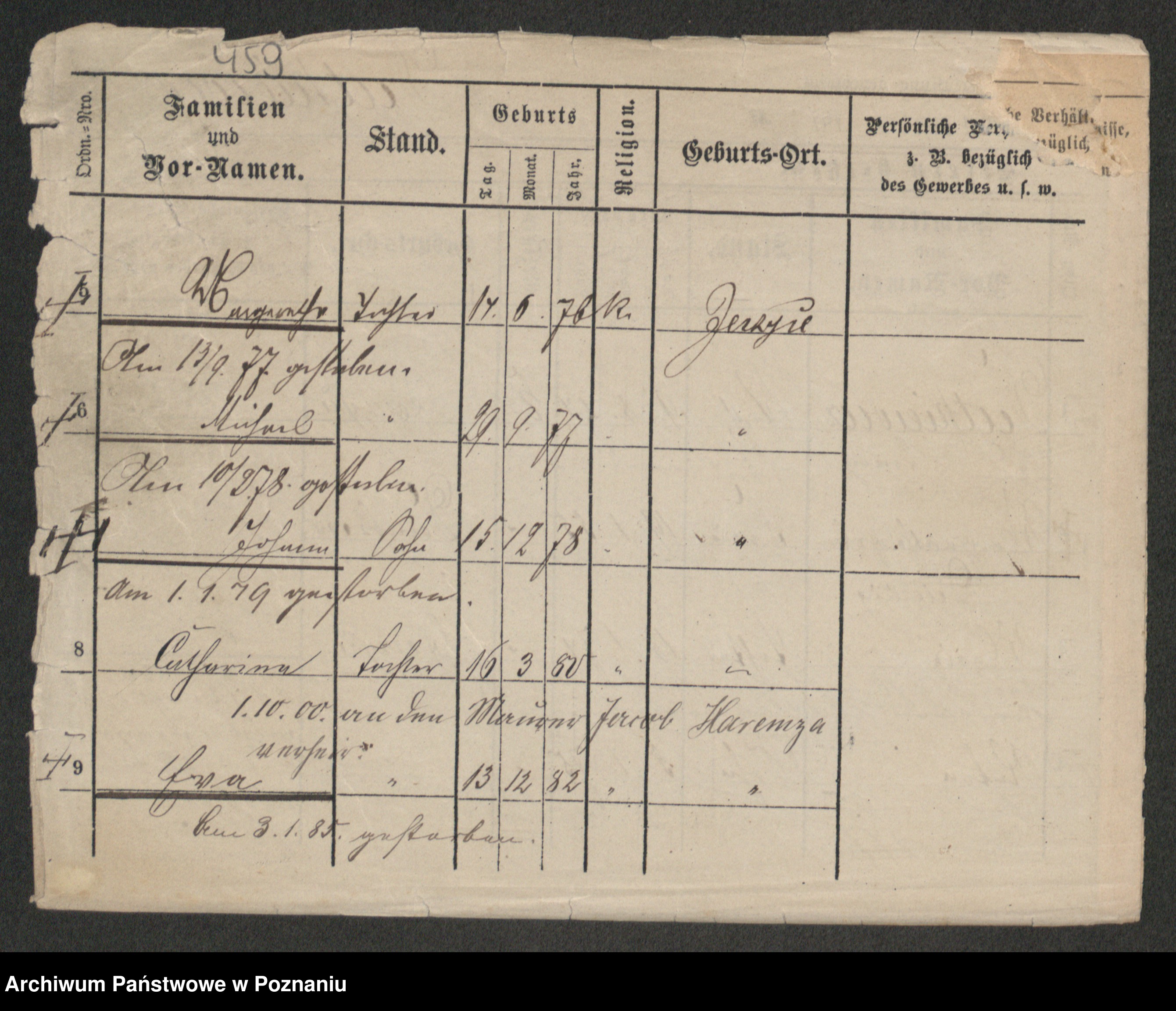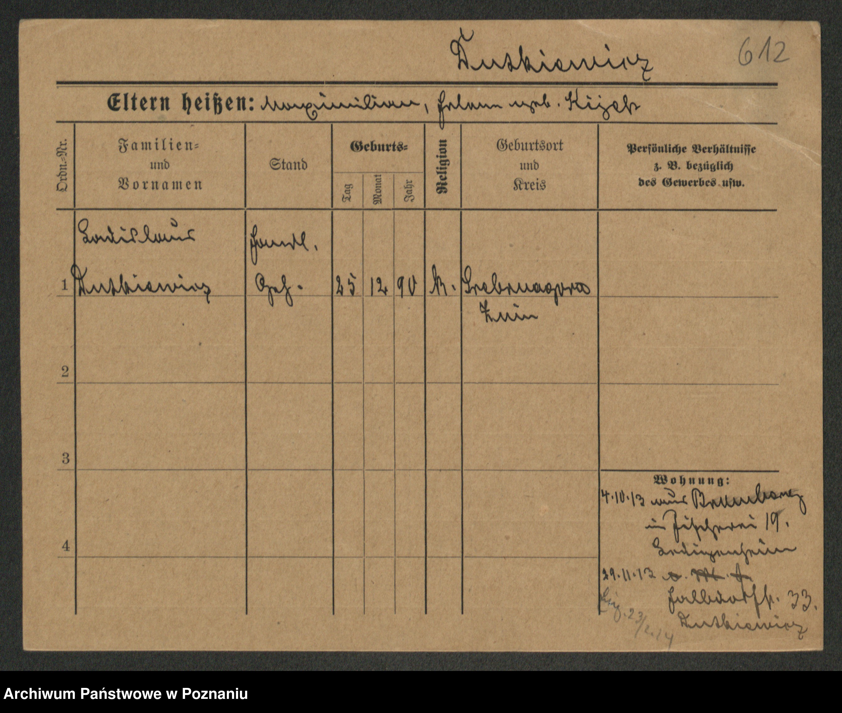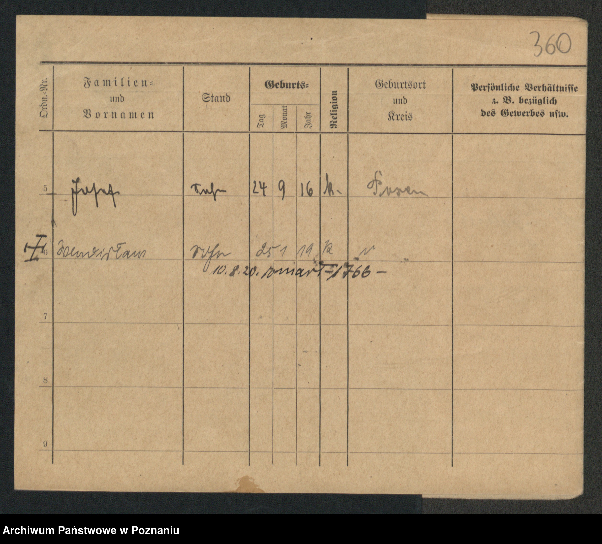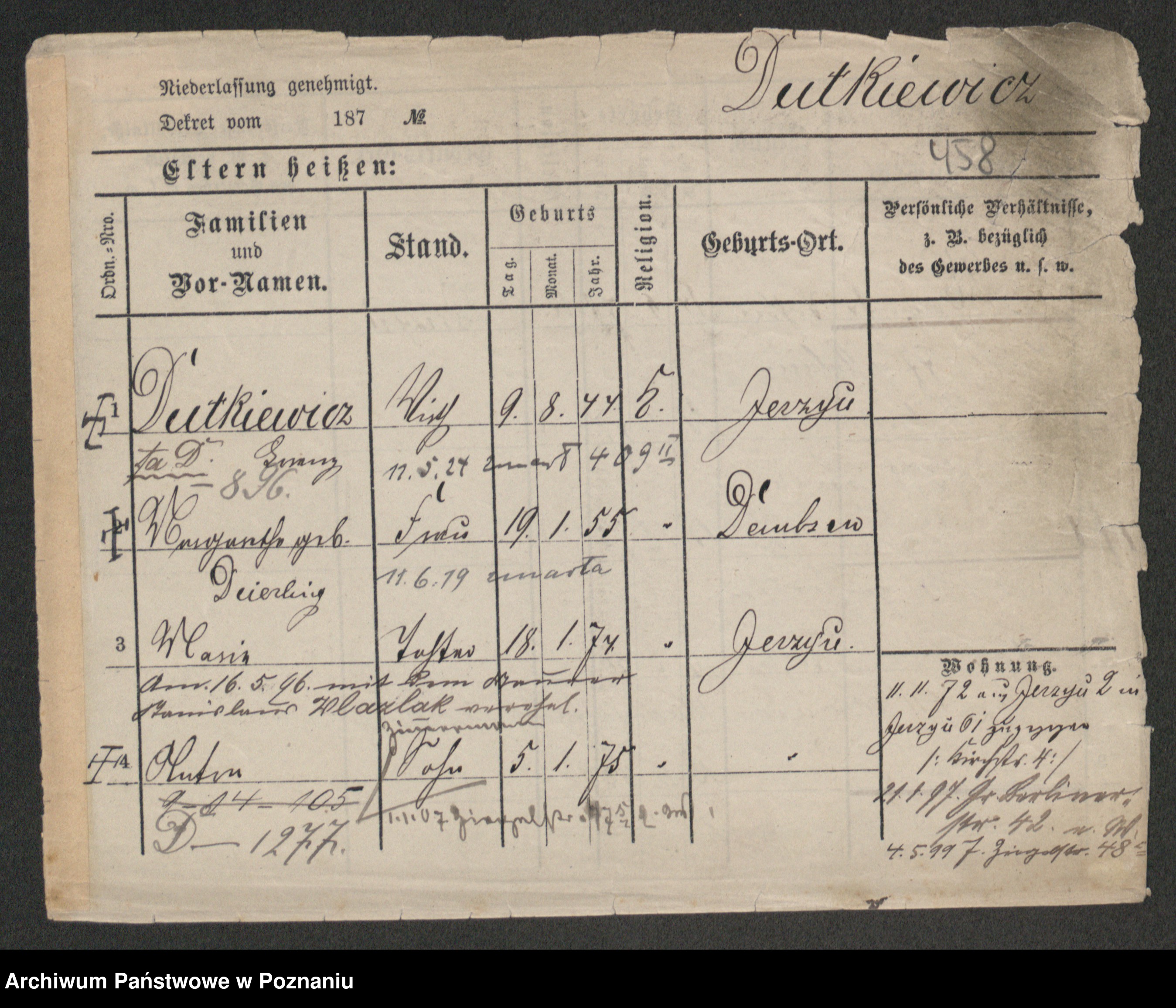 Podgląd karty osobowej dostępny jest po kliknięciu na nazwisko lub ikonkę karty. Można dokonywać powiększenia (ikony na górze) lub przechodzić między kolejnymi skanami (strzałki po bokach).
