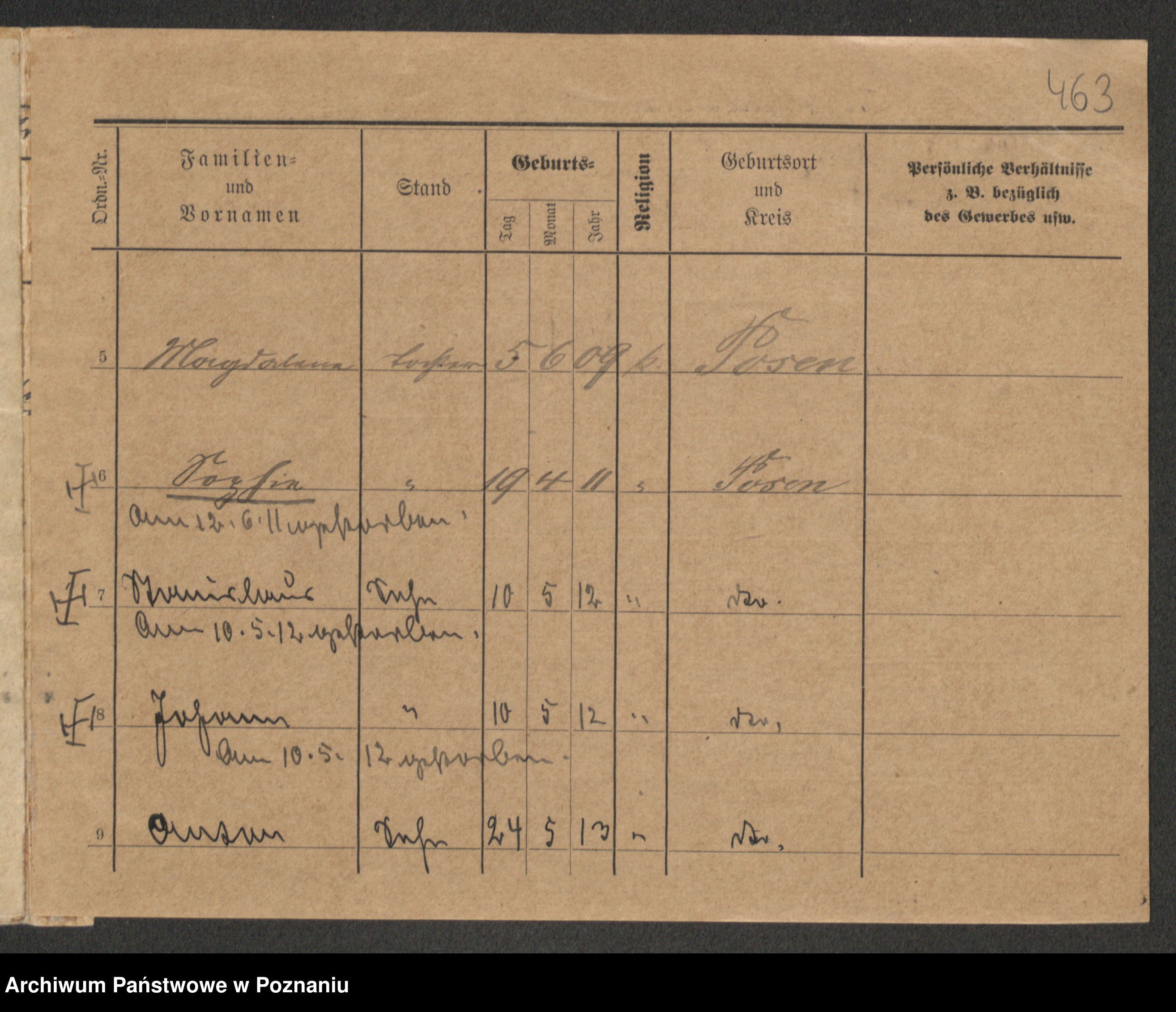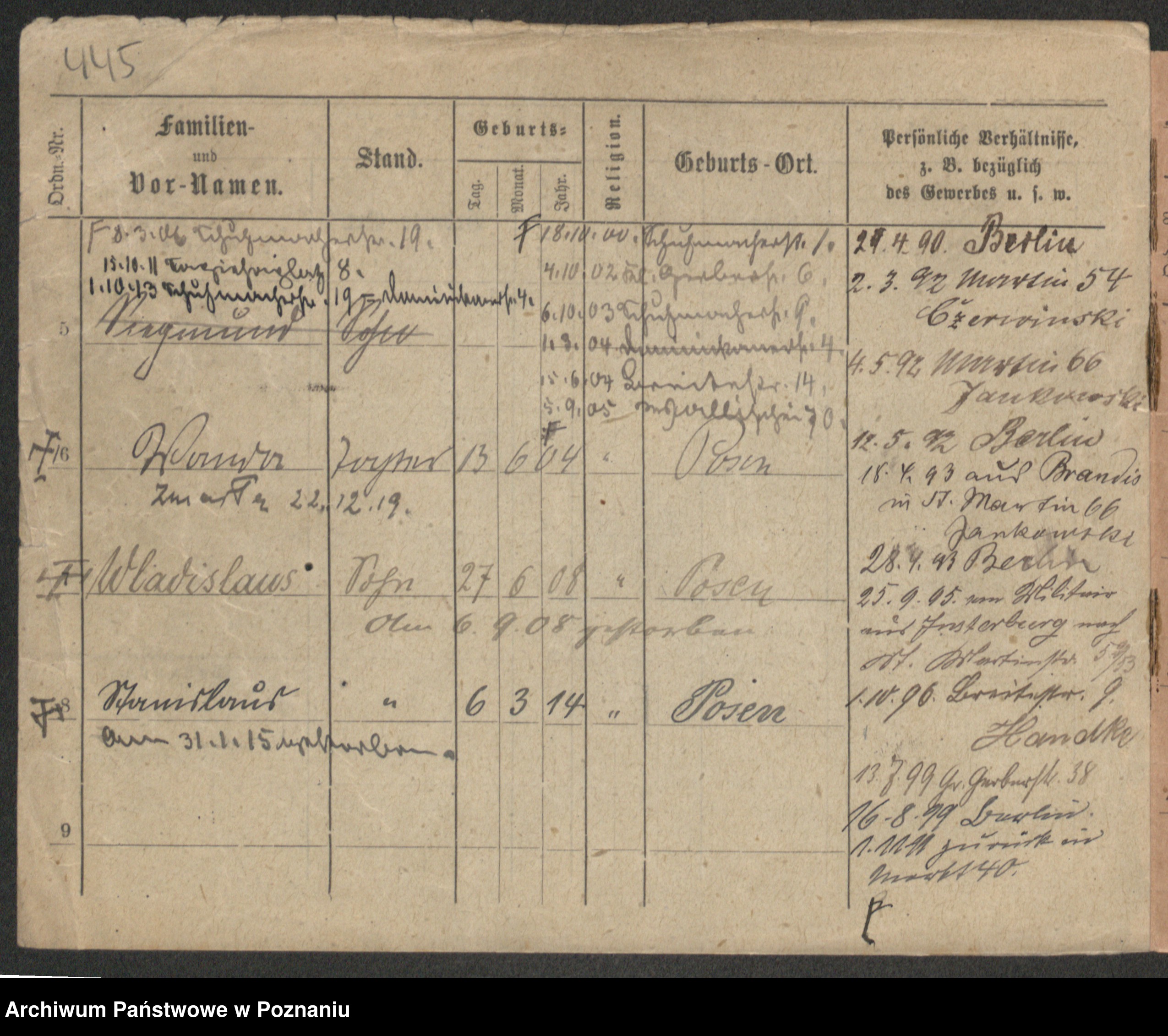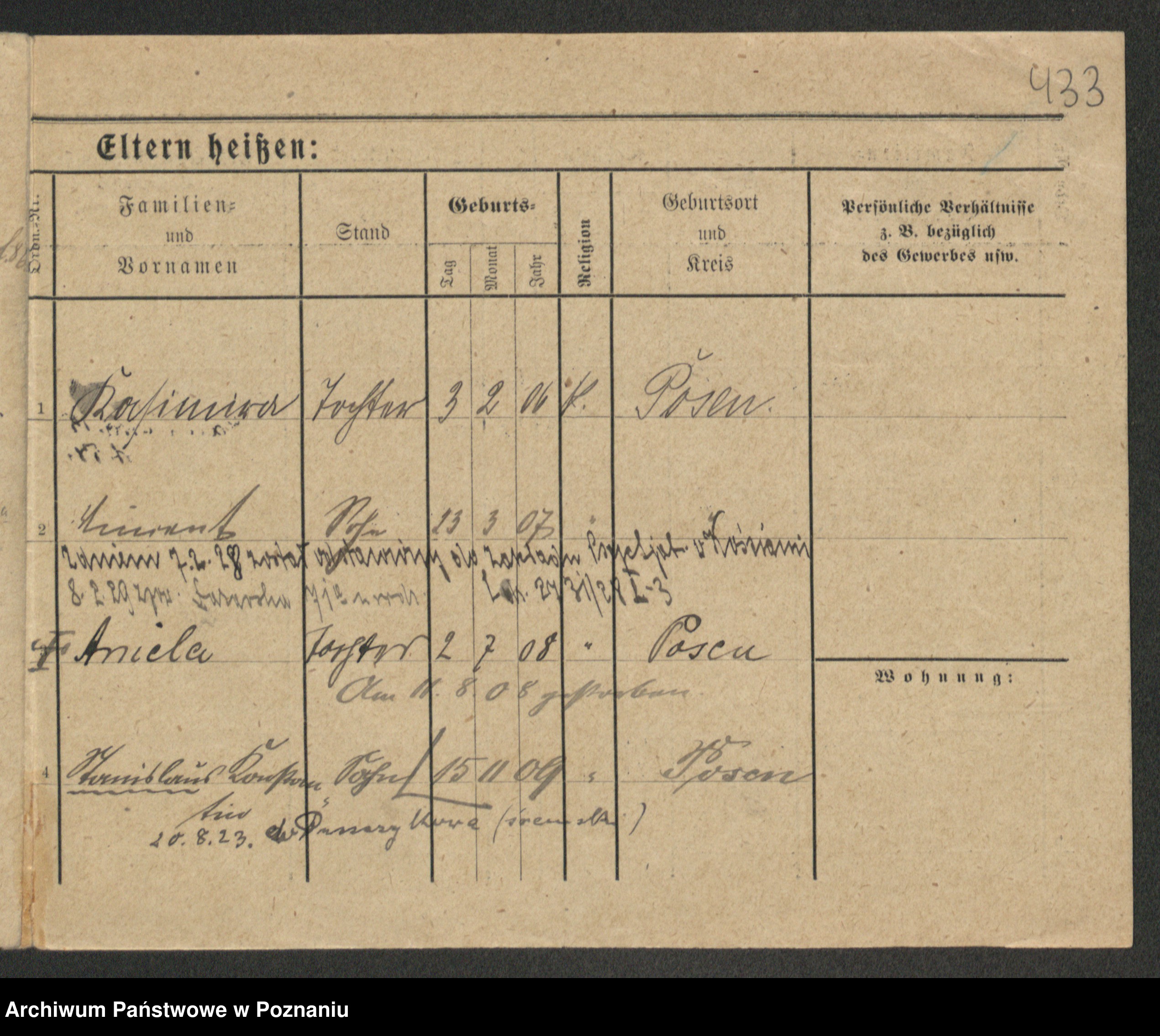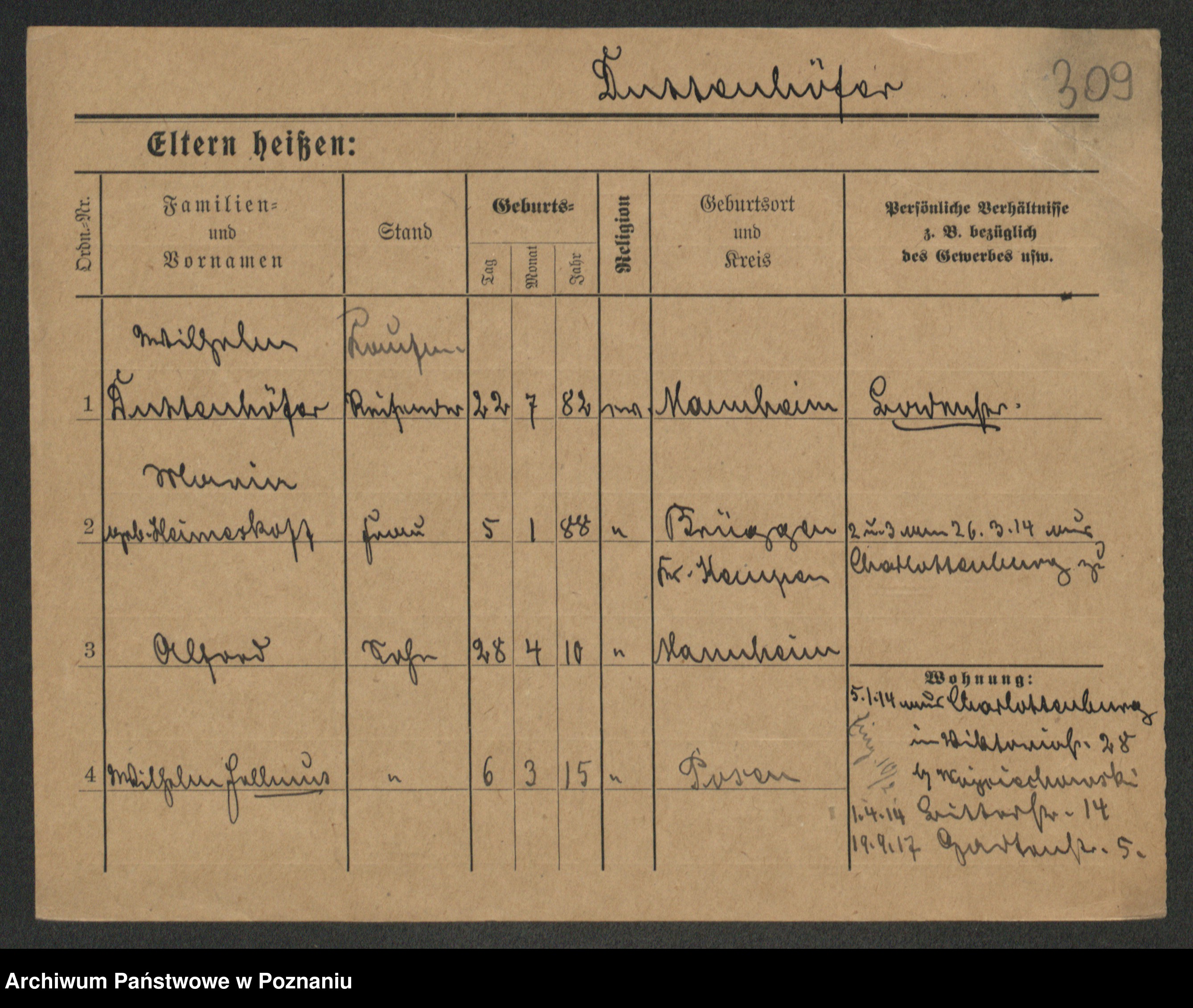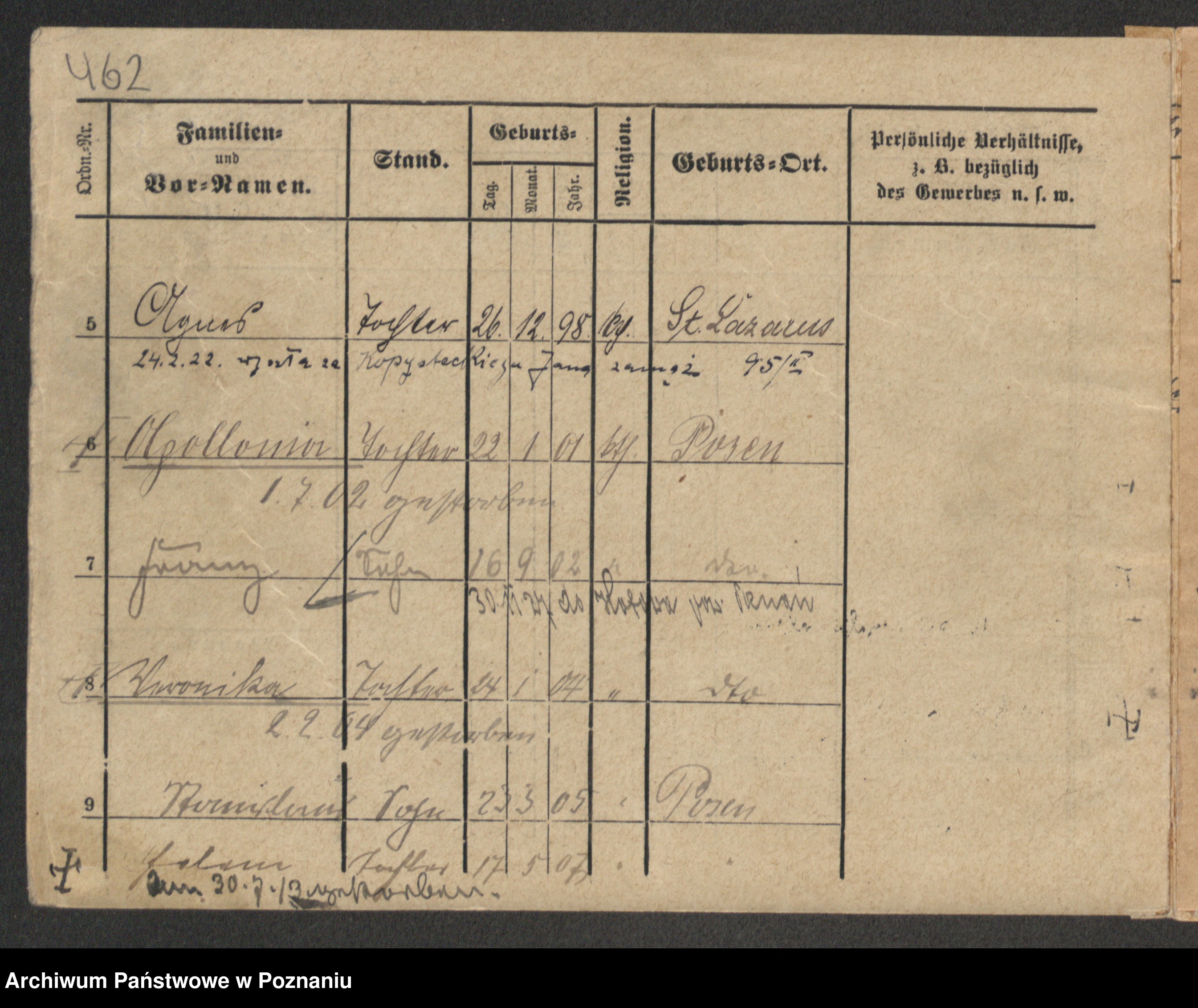 Podgląd karty osobowej dostępny jest po kliknięciu na nazwisko lub ikonkę karty. Można dokonywać powiększenia (ikony na górze) lub przechodzić między kolejnymi skanami (strzałki po bokach).