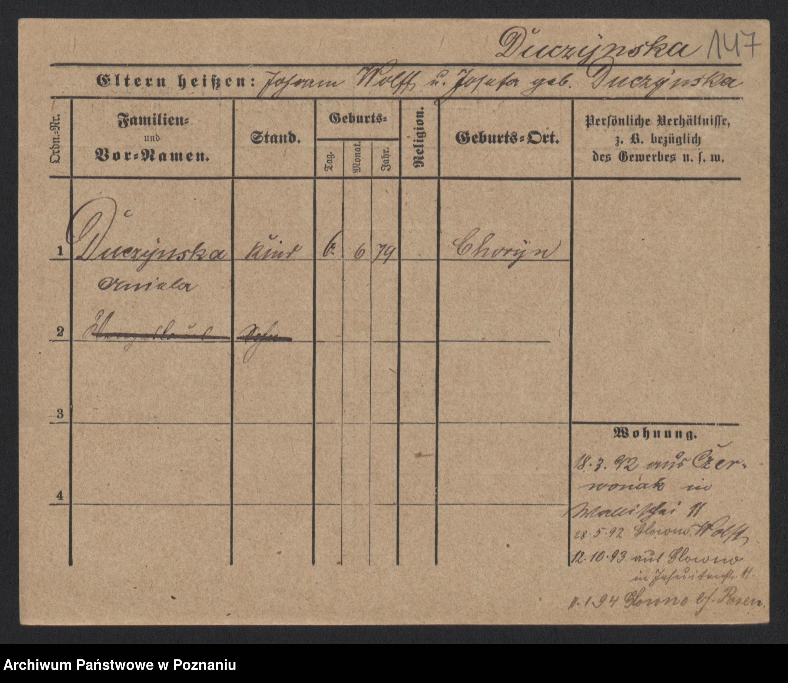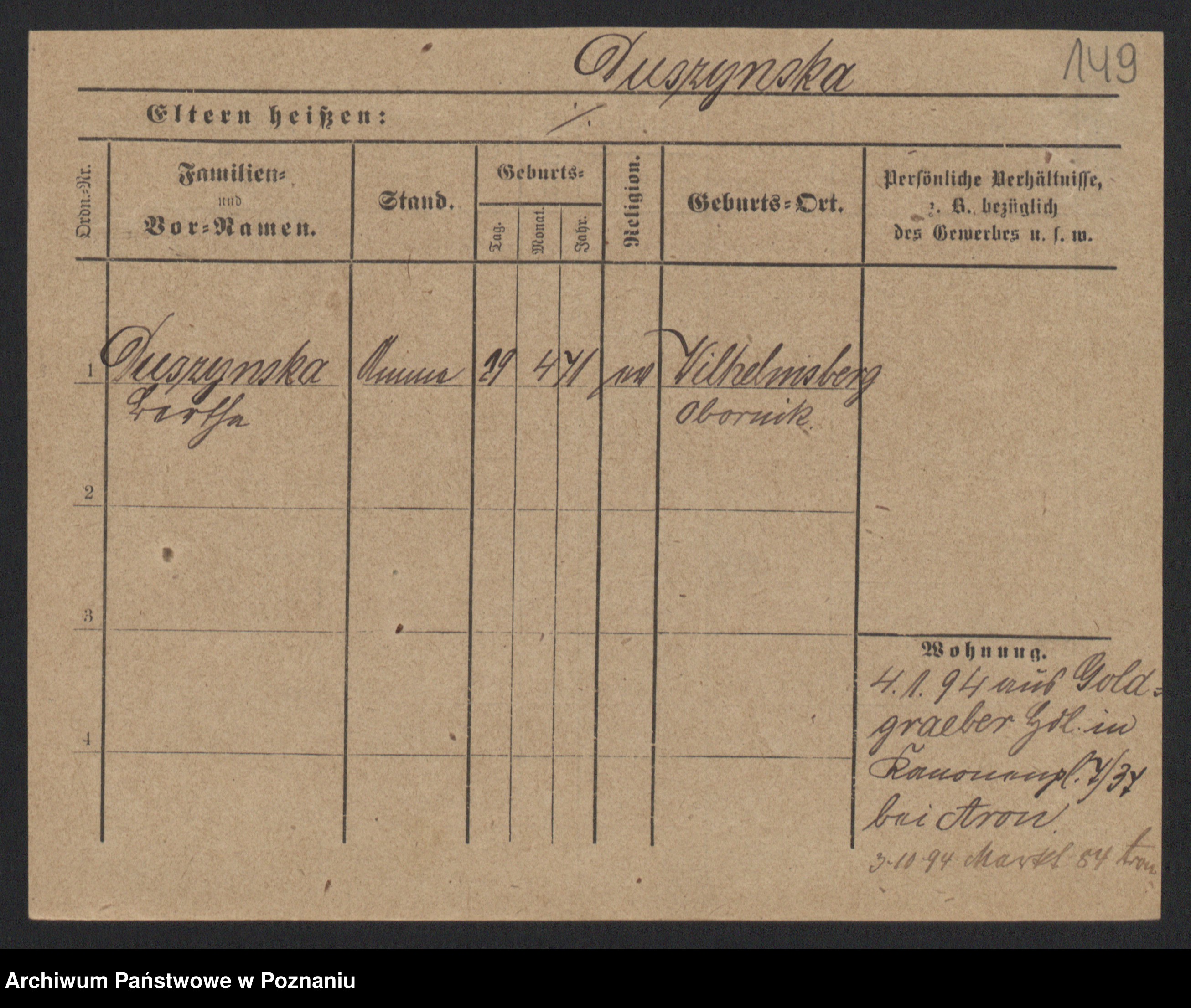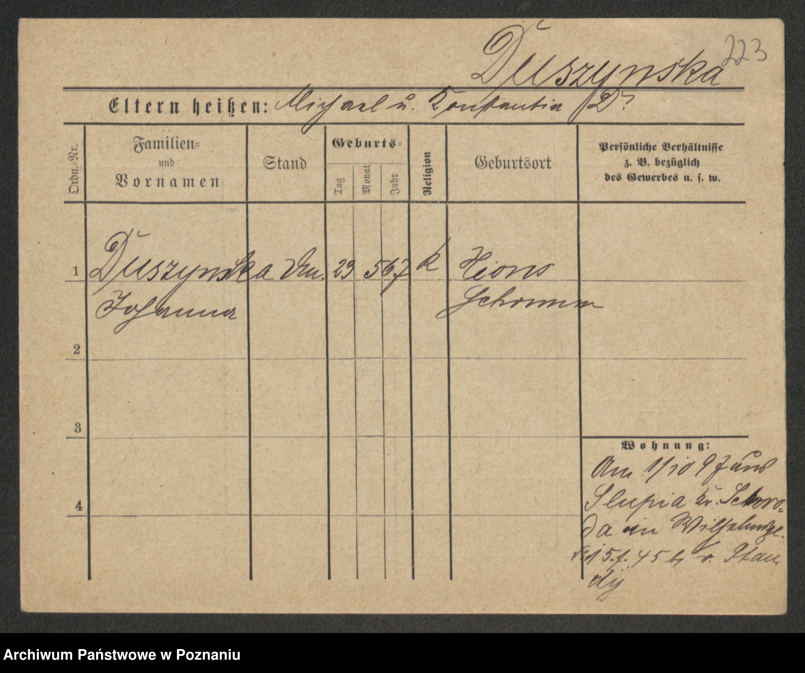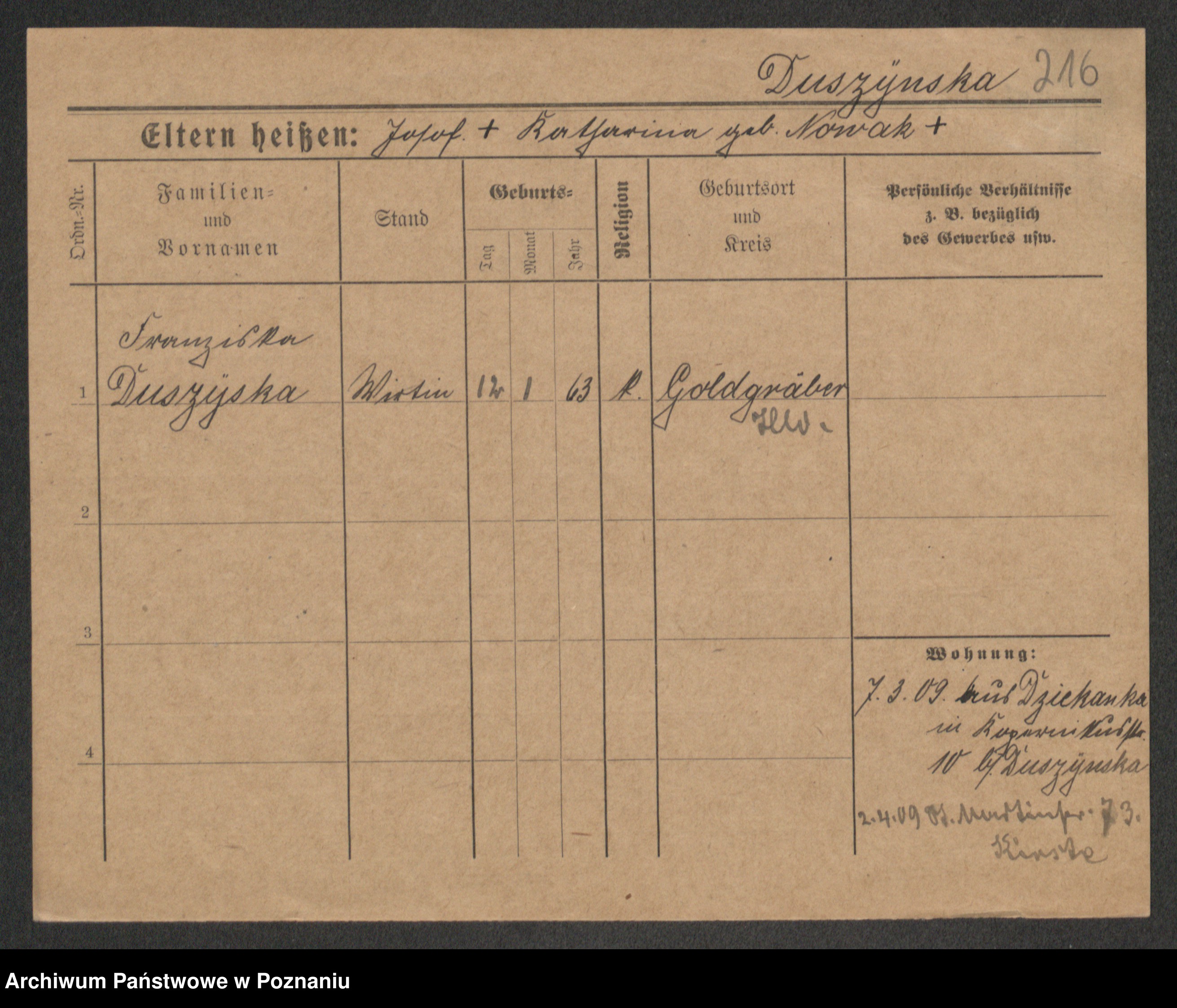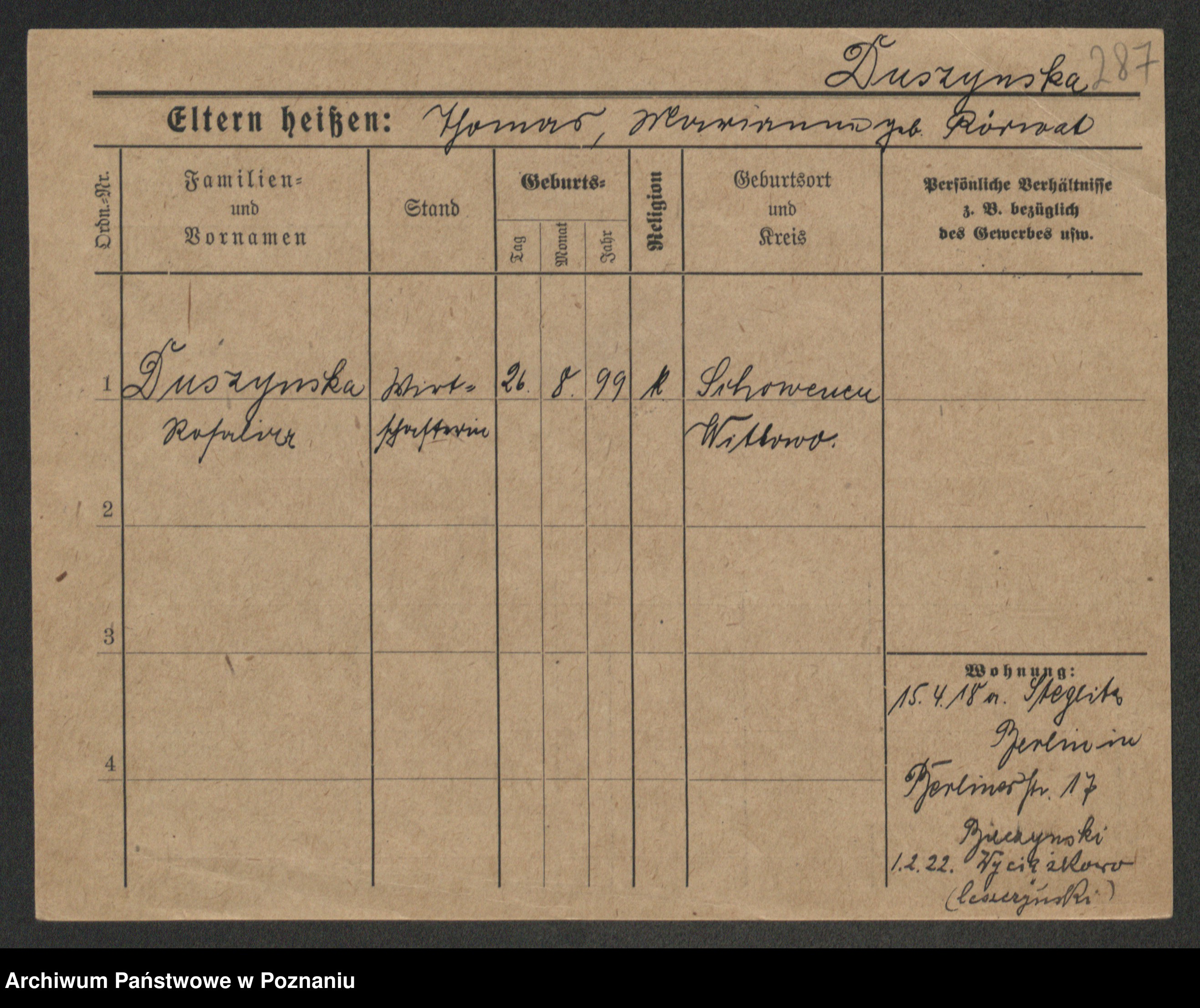 Duszyński zd. Mentzel, Wilhelmine