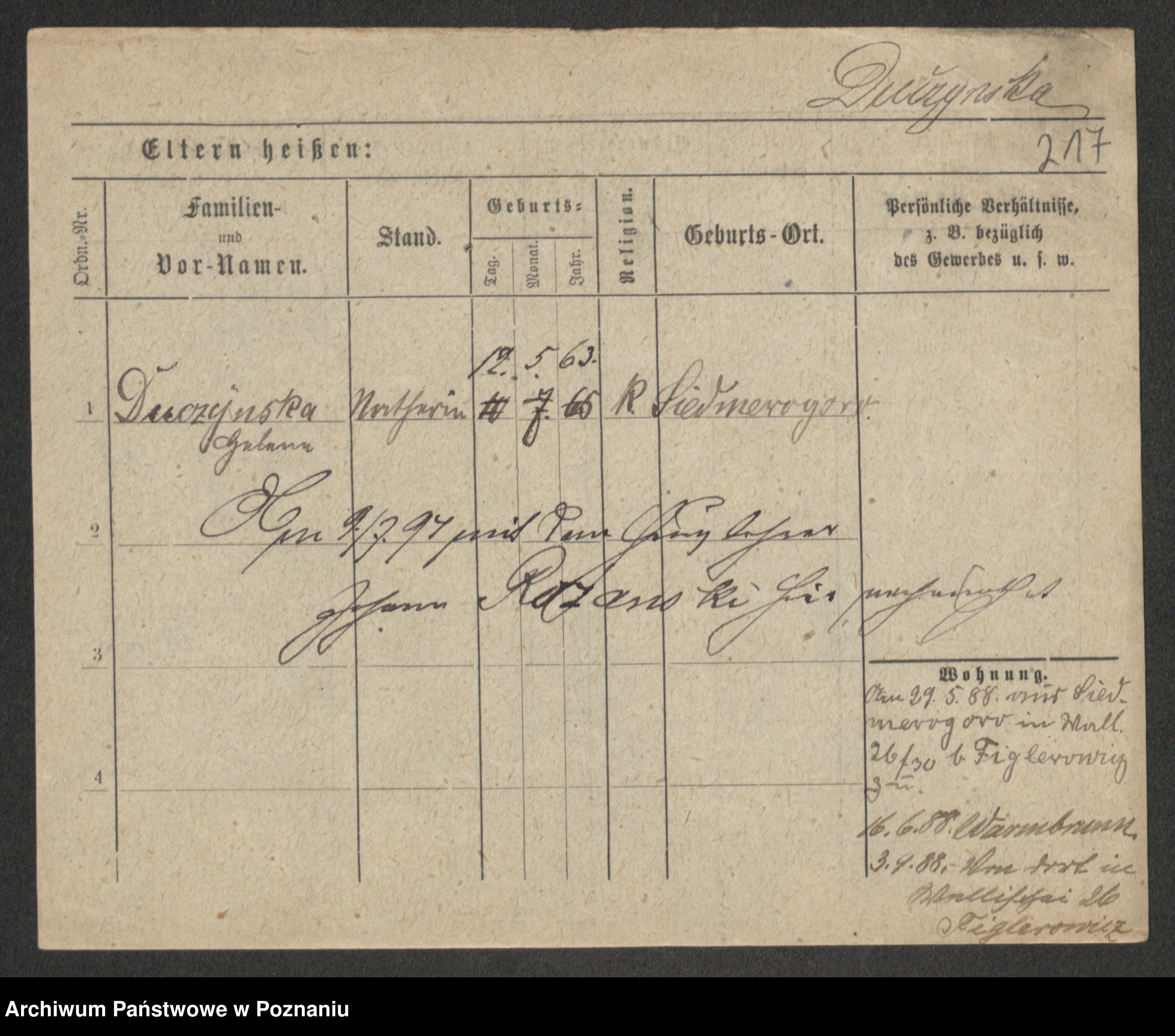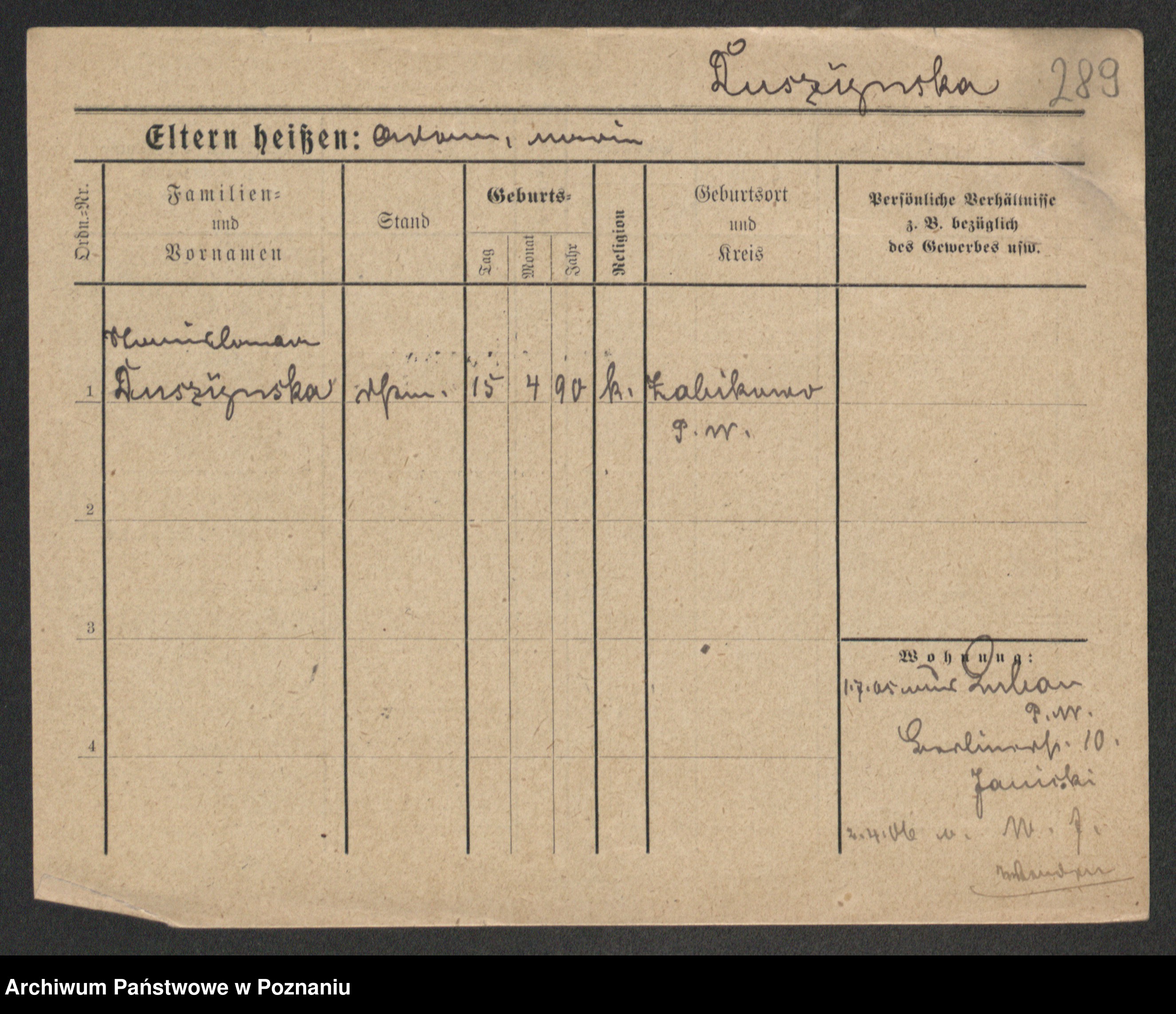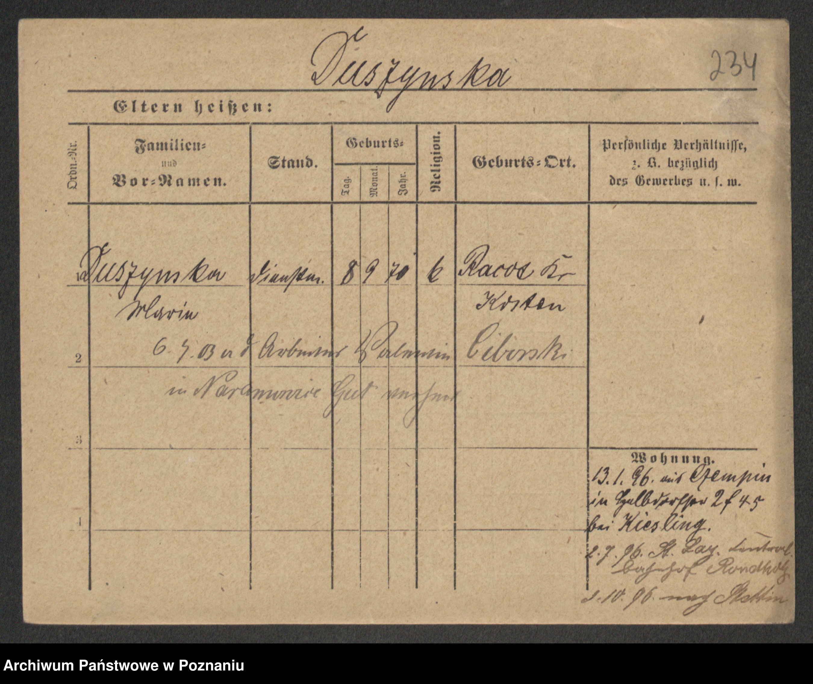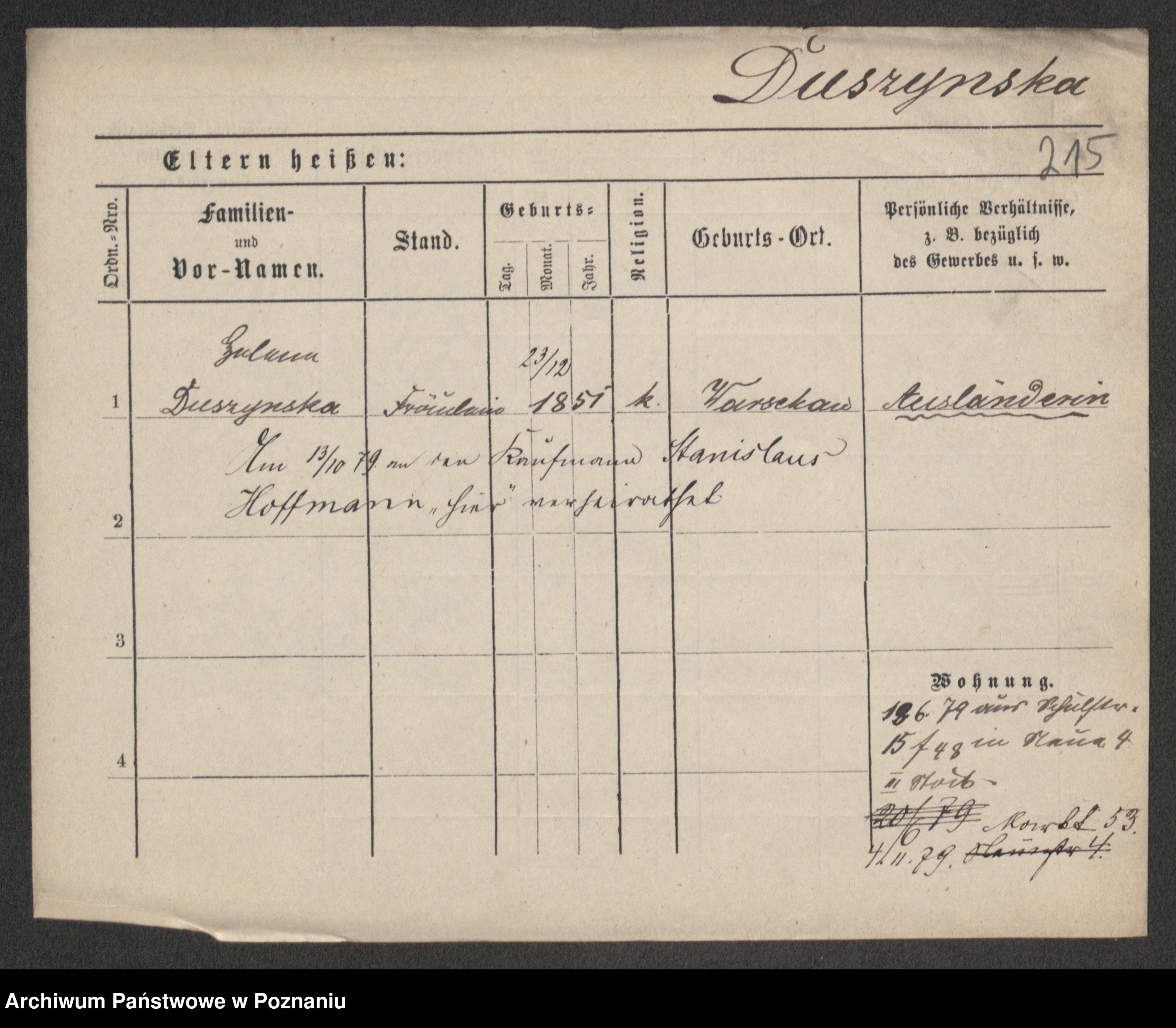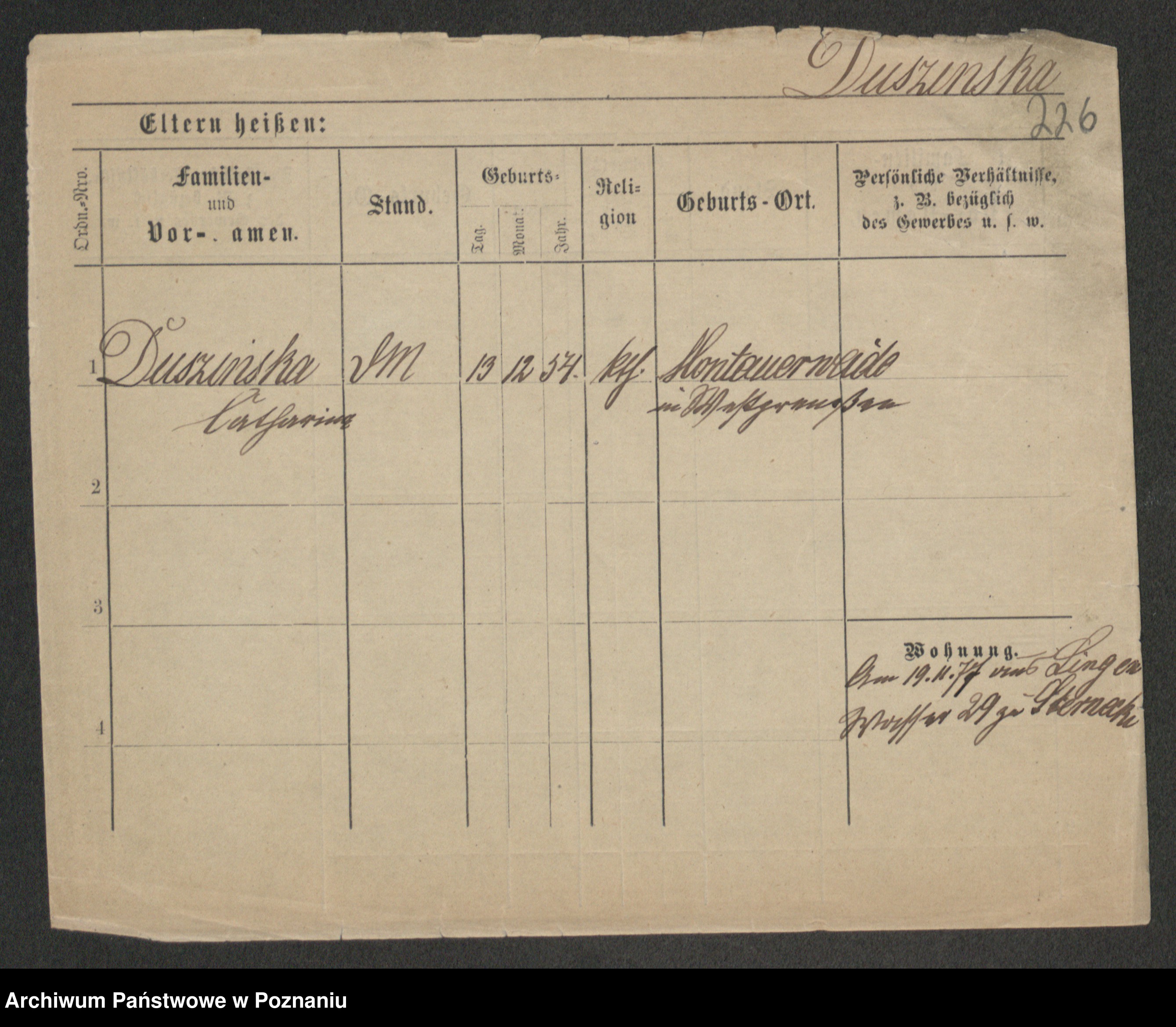 Duszyński zd. Mentzel, Wilhelmine
