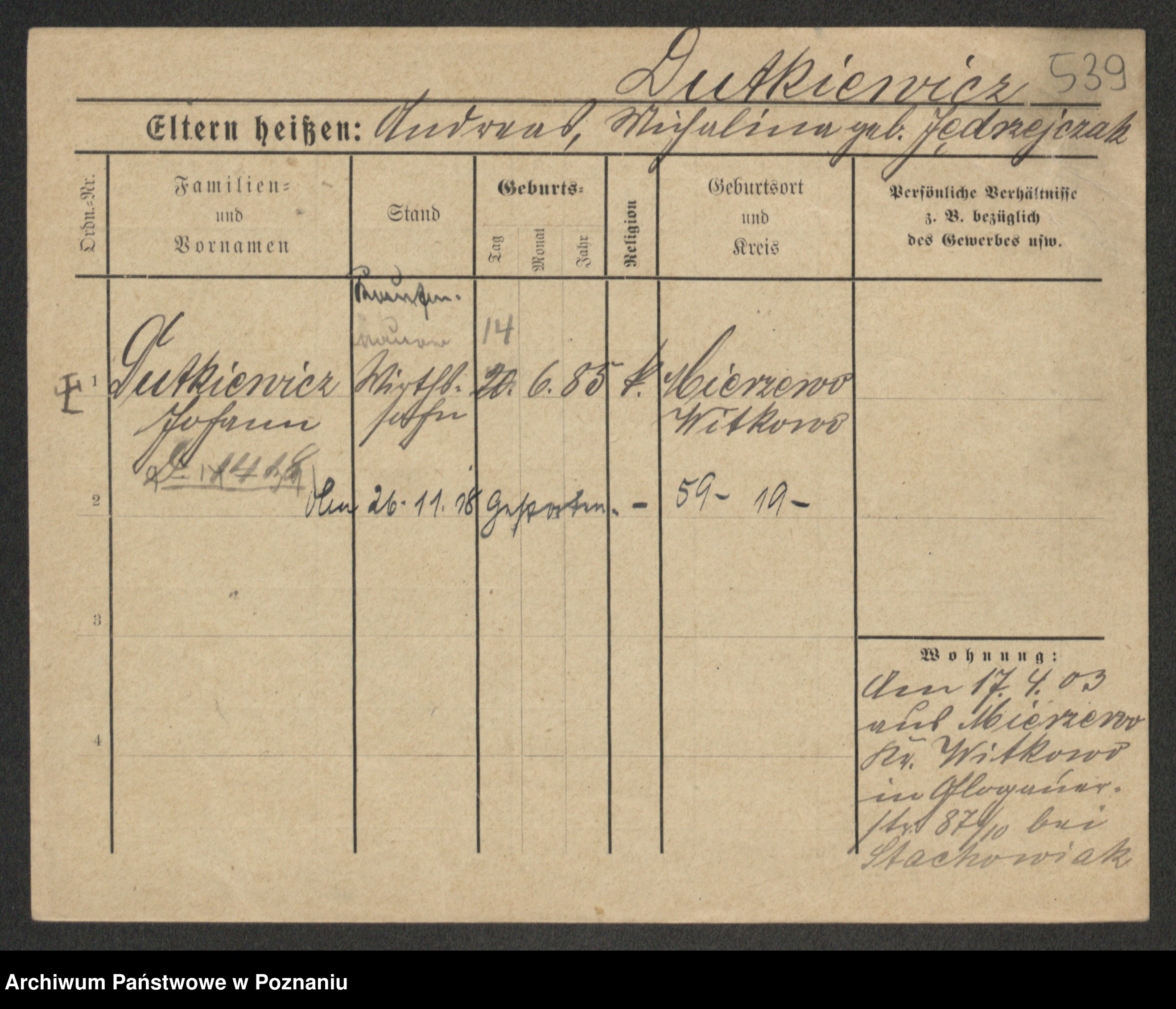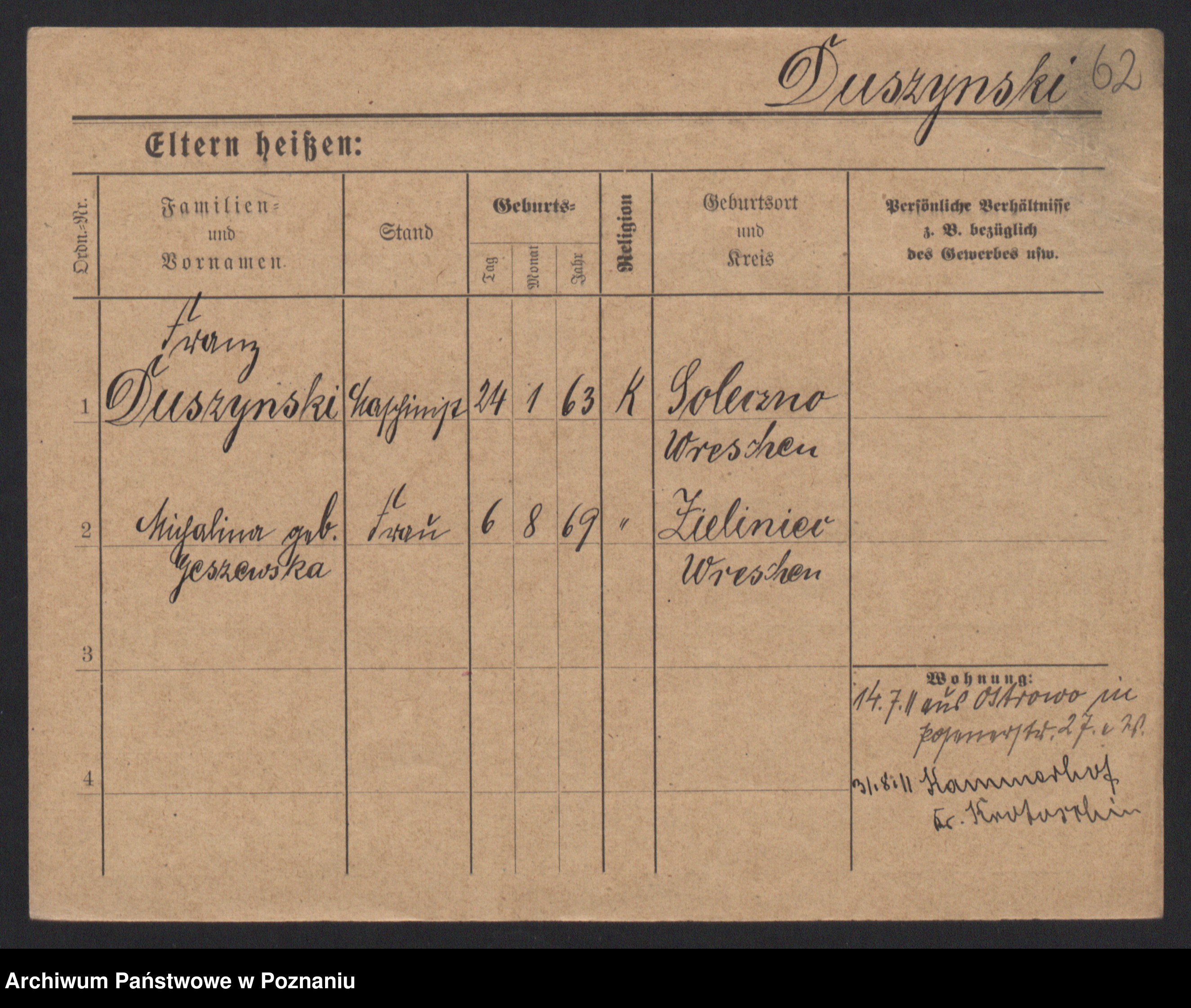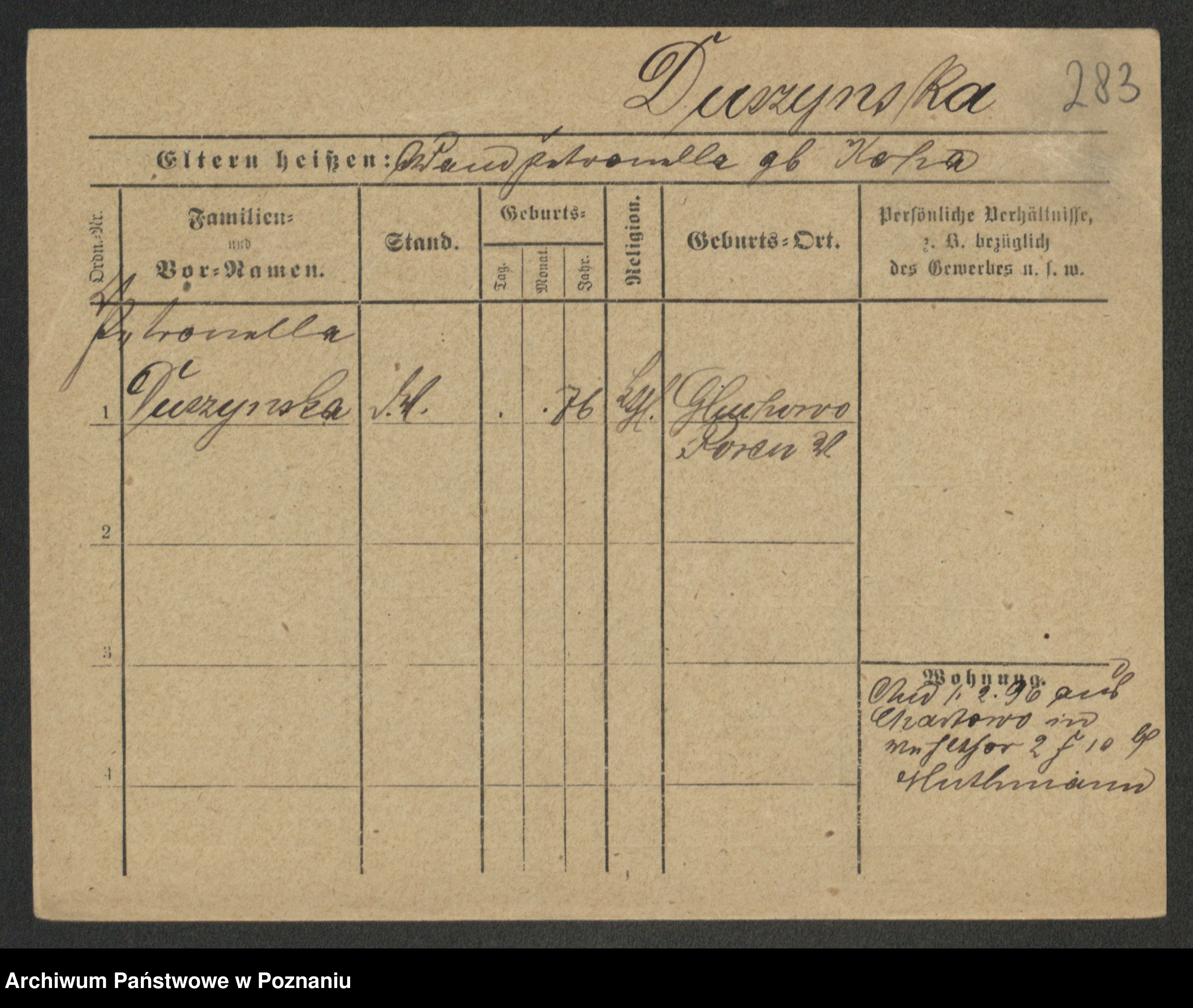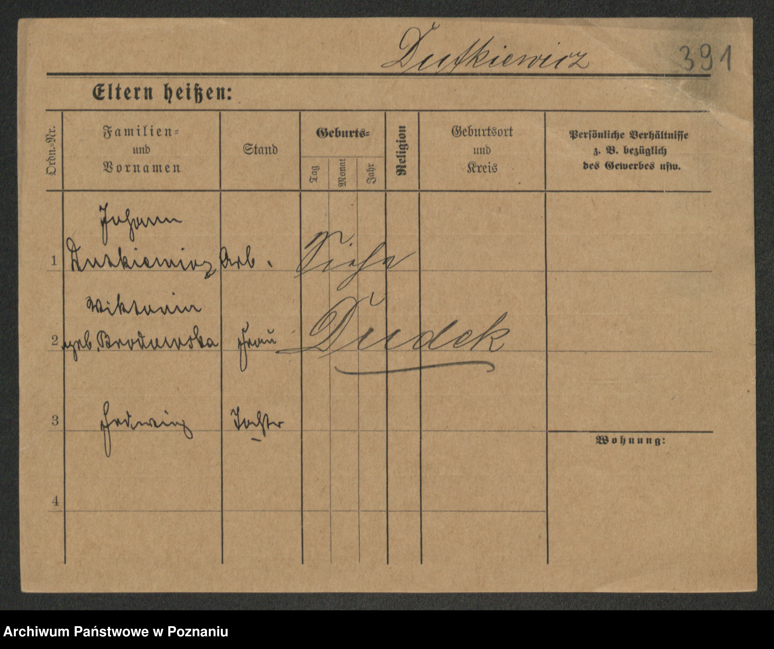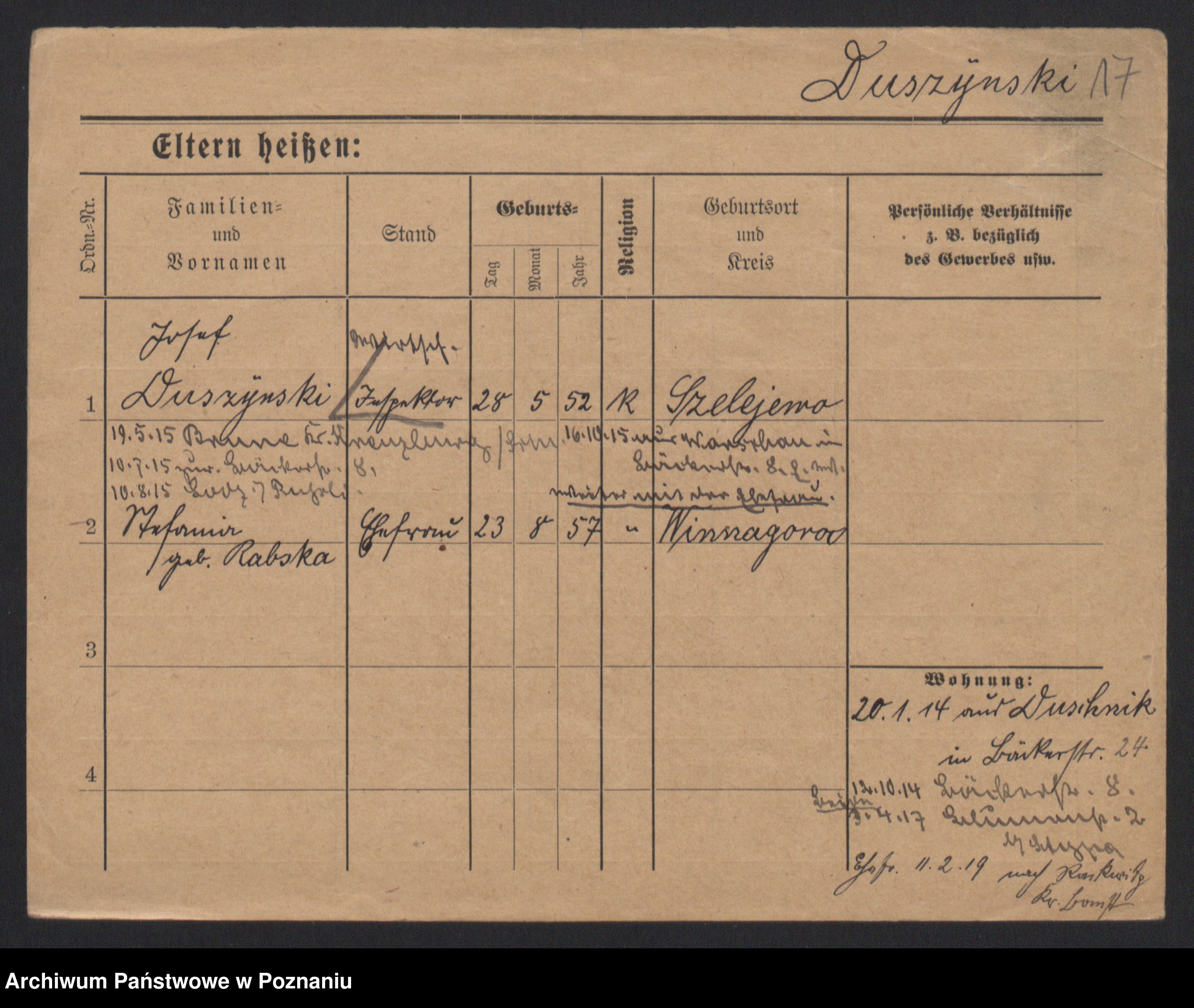 Duszyński zd. Mentzel, Wilhelmine