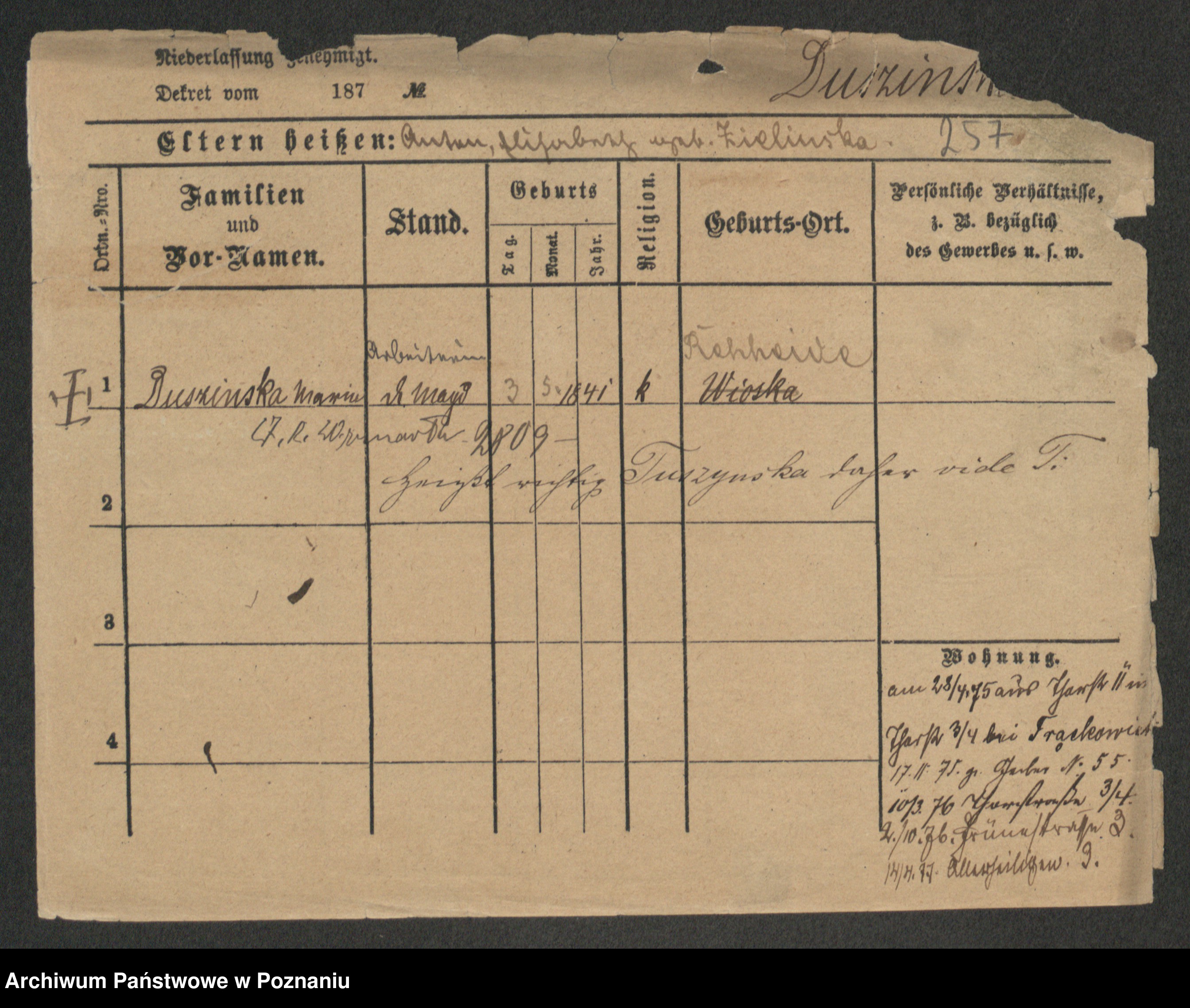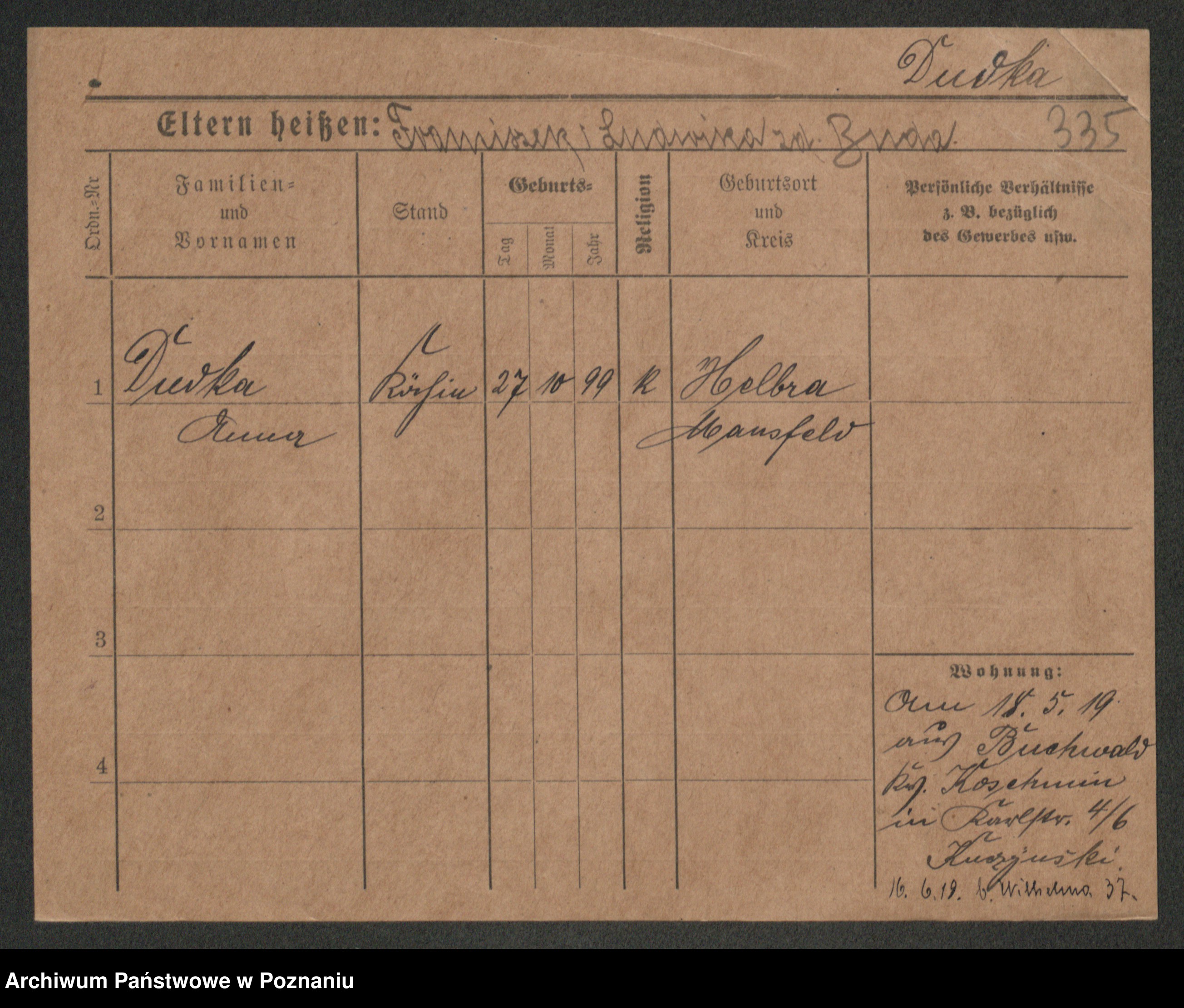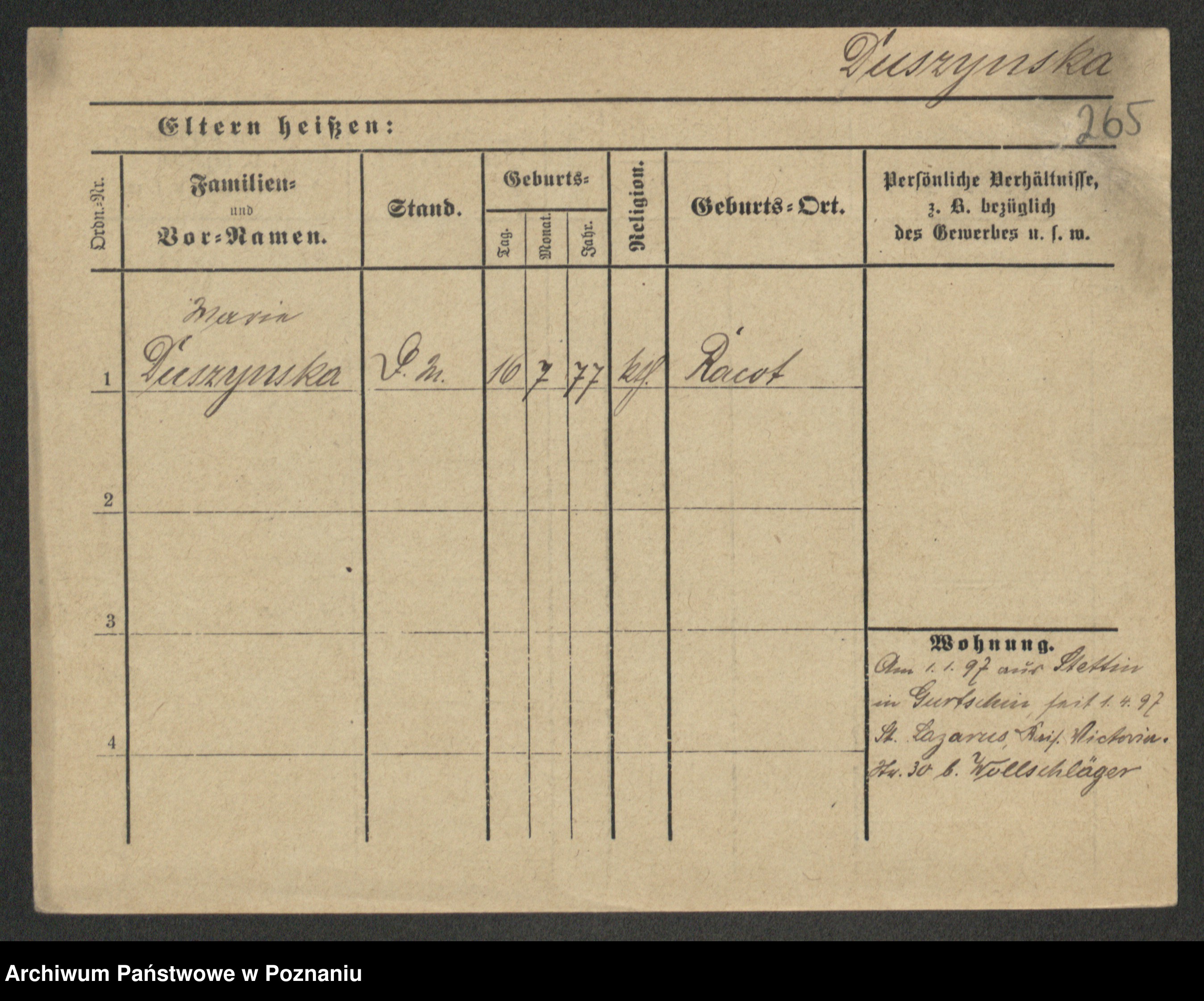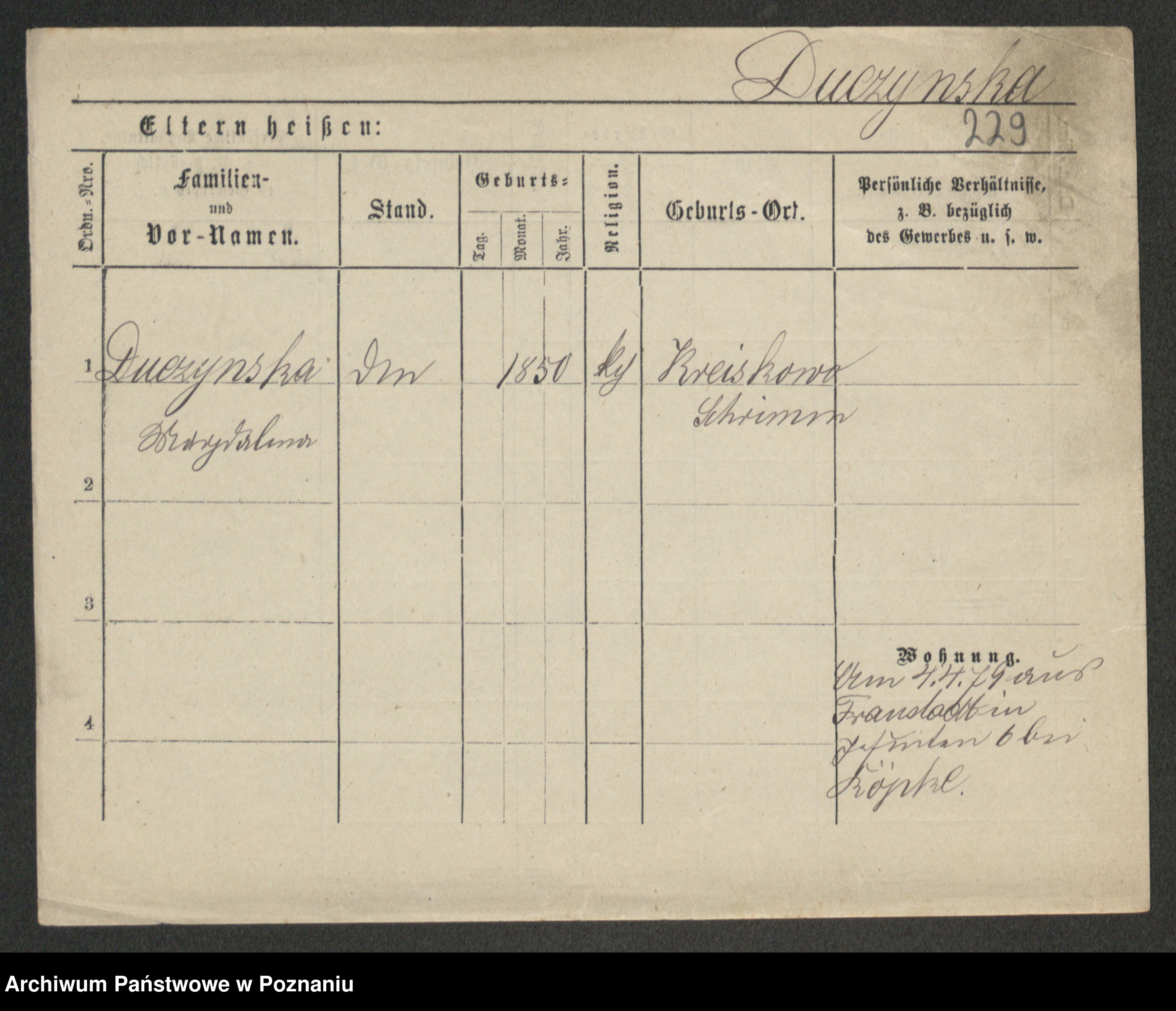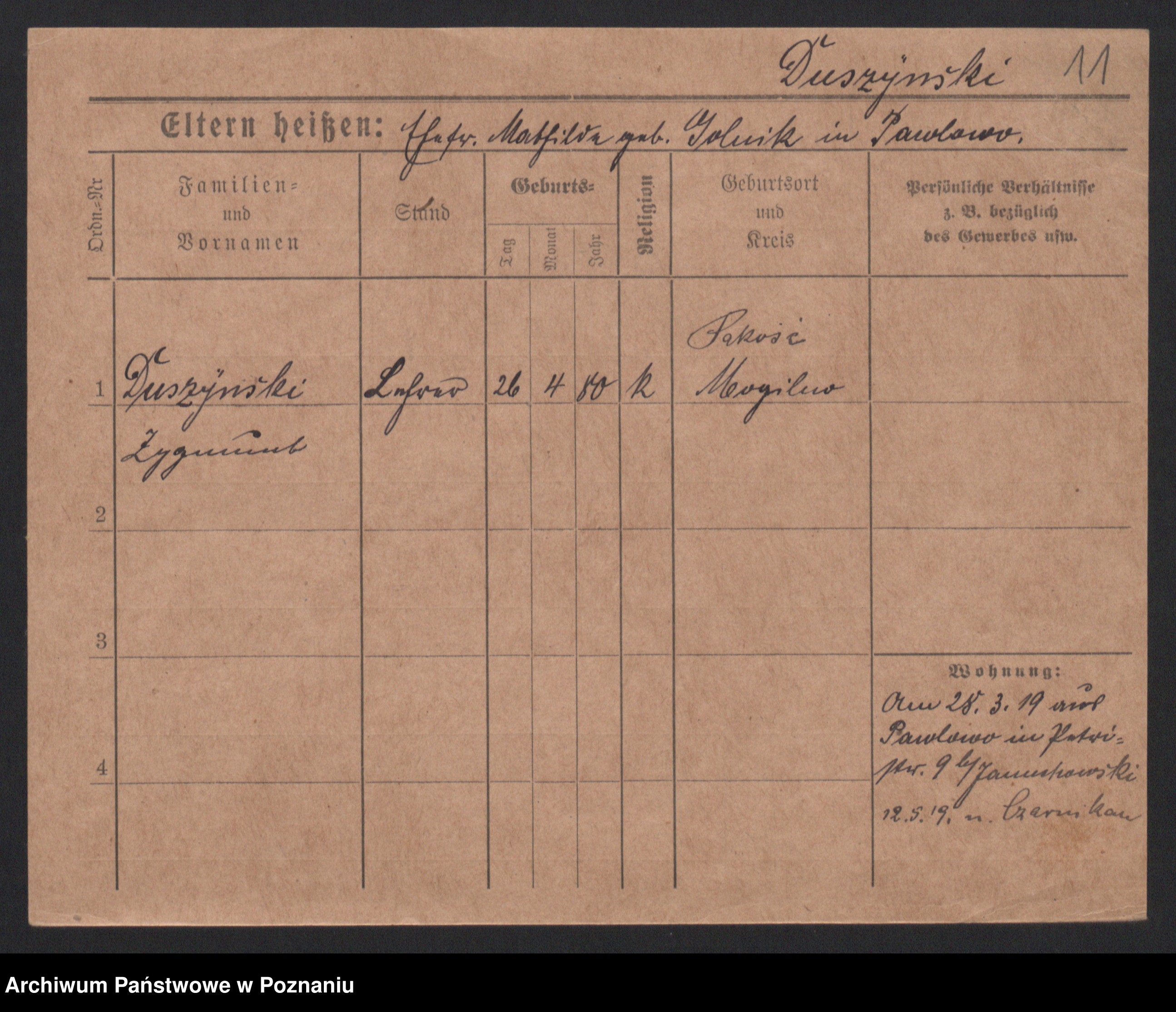Duszyński zd. Mentzel, Wilhelmine