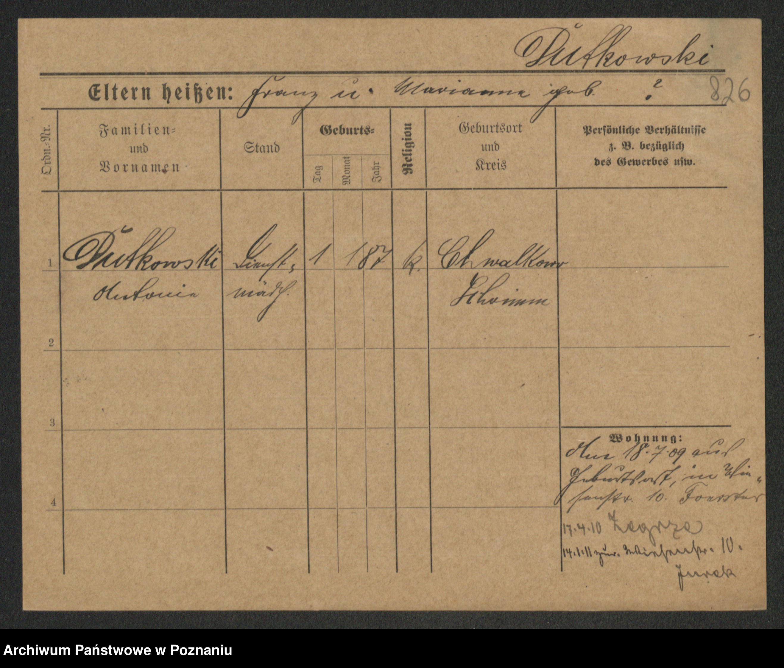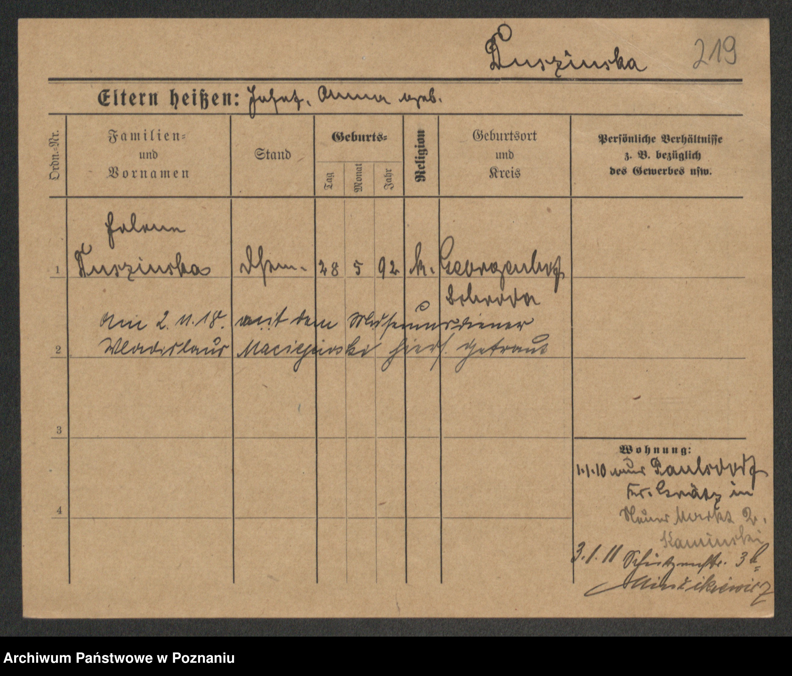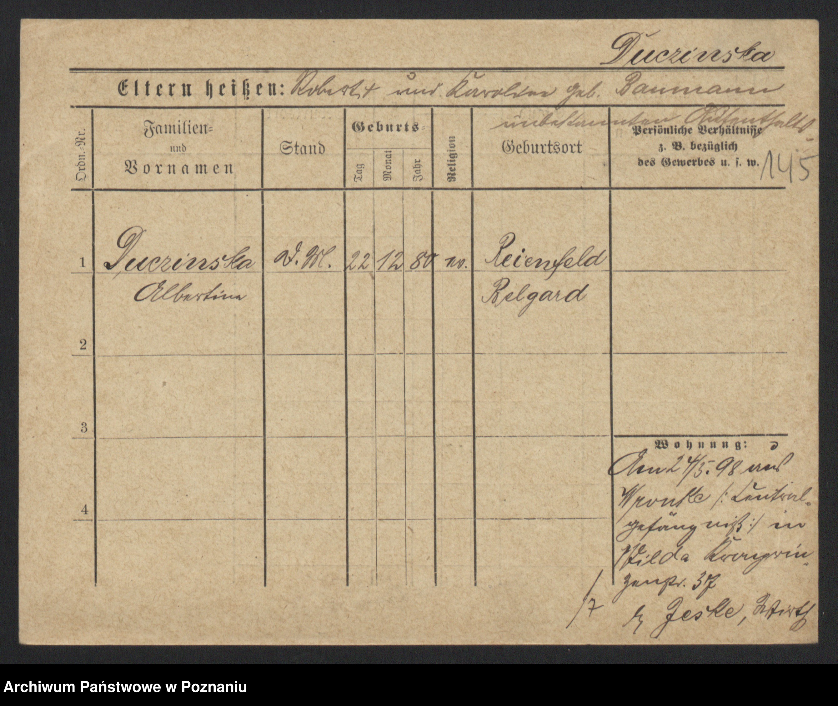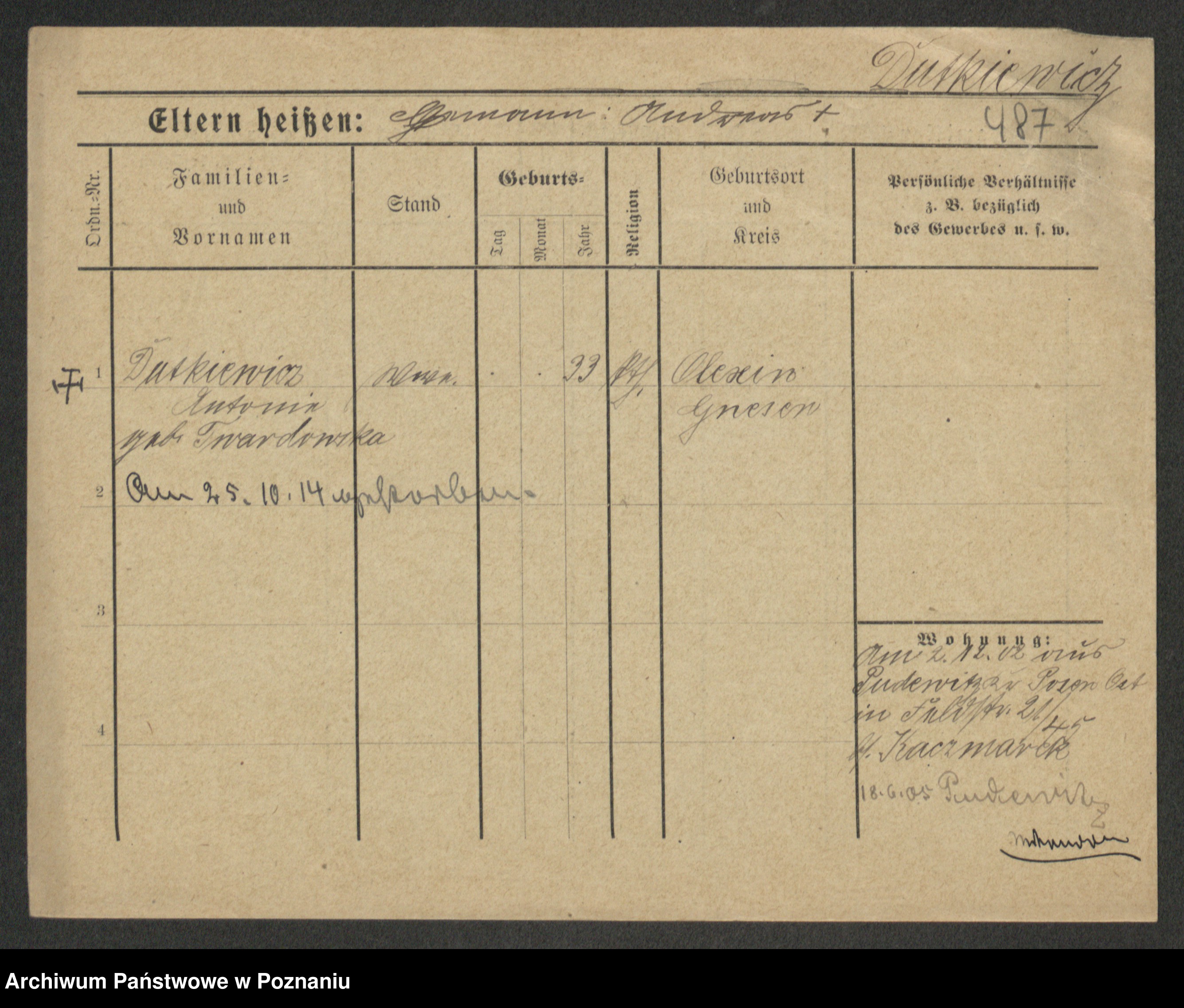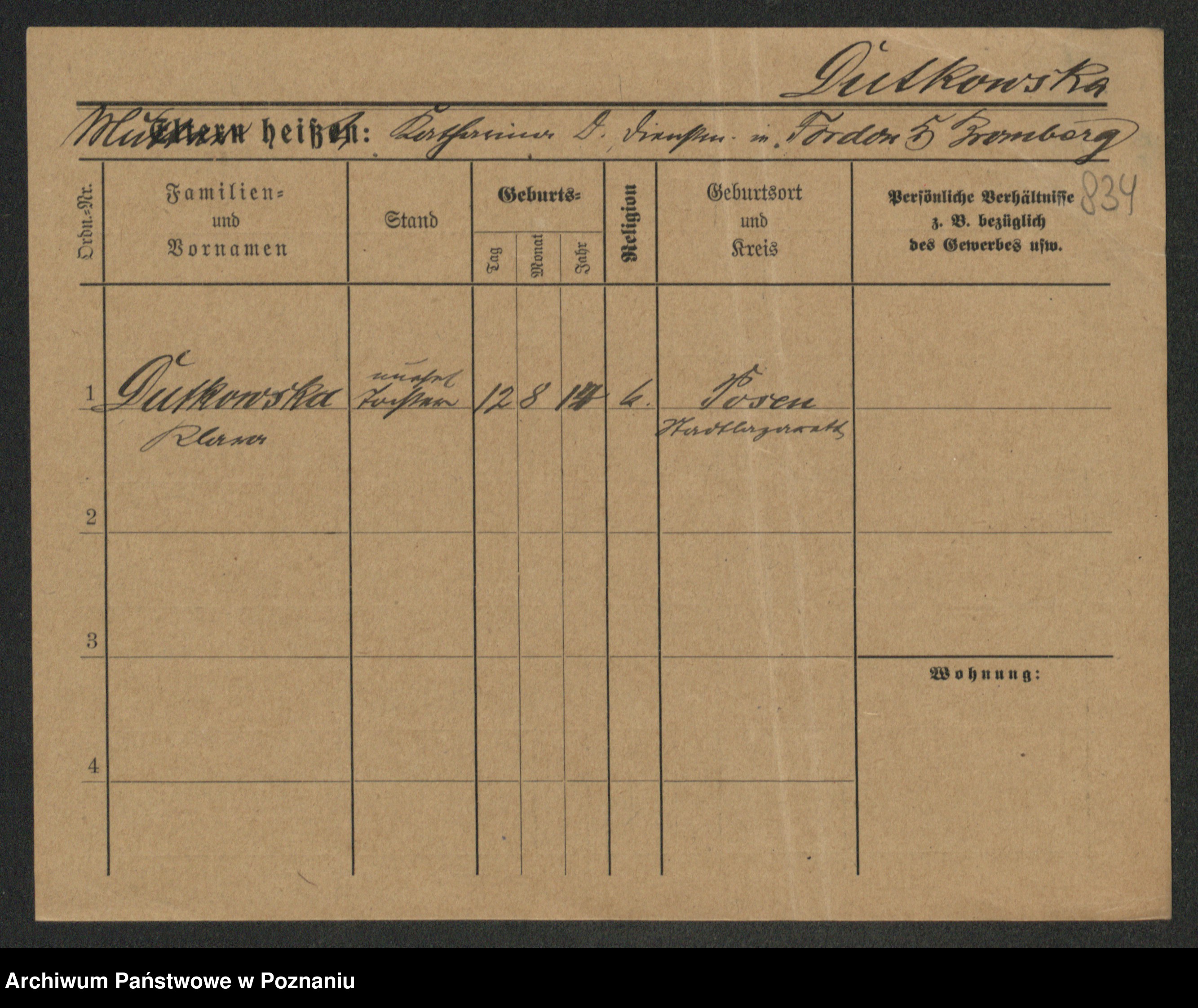 Duszyński zd. Mentzel, Wilhelmine