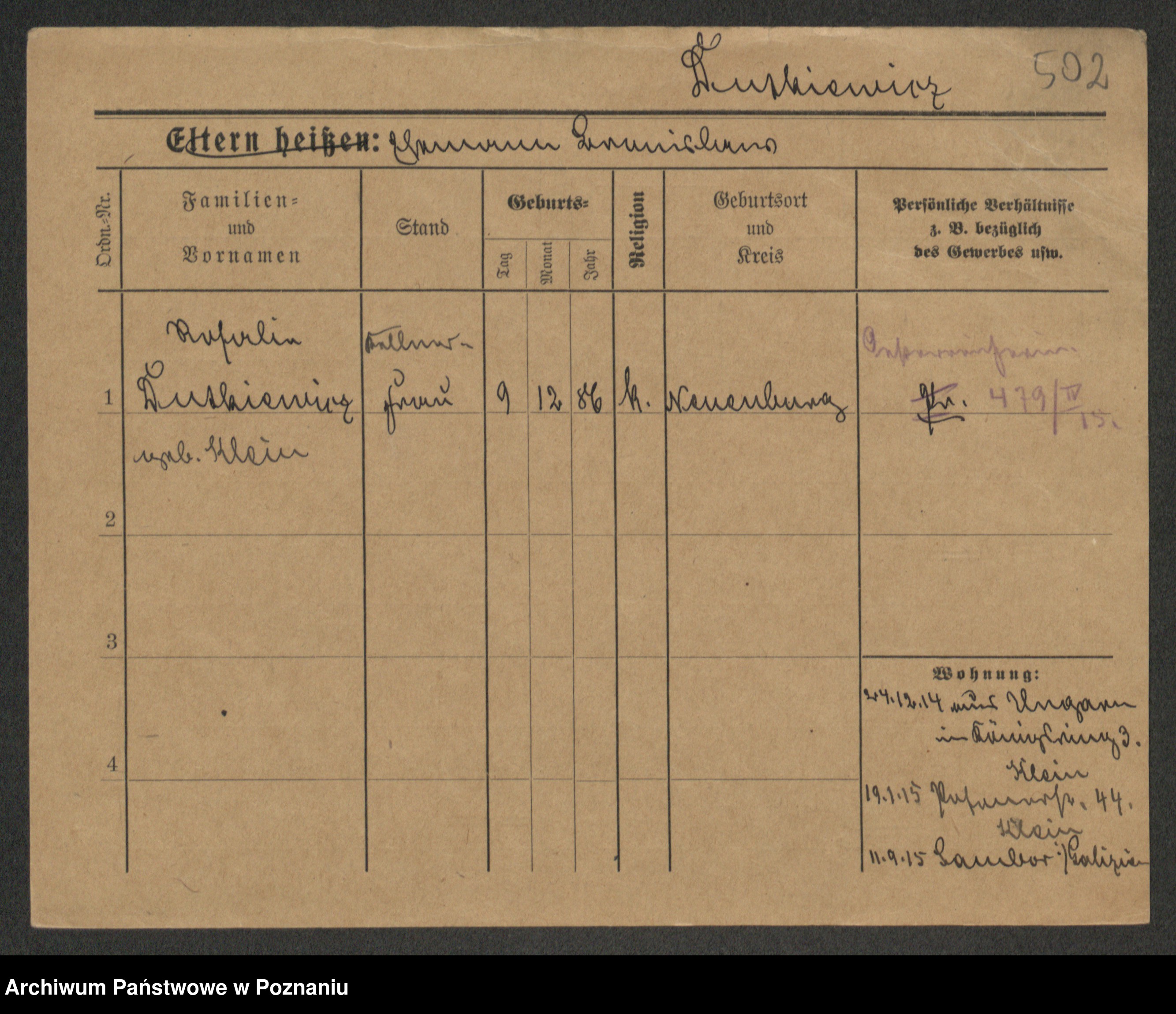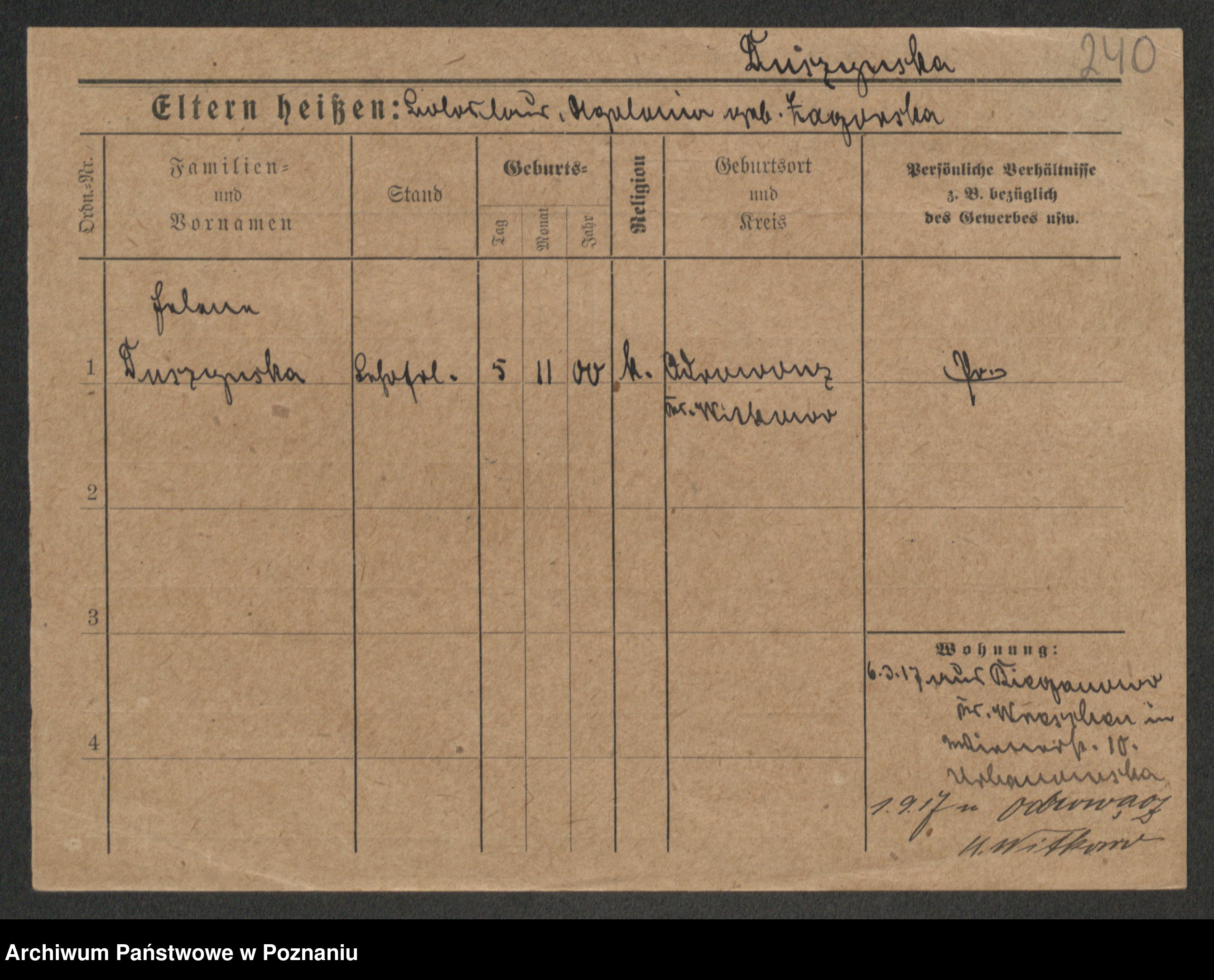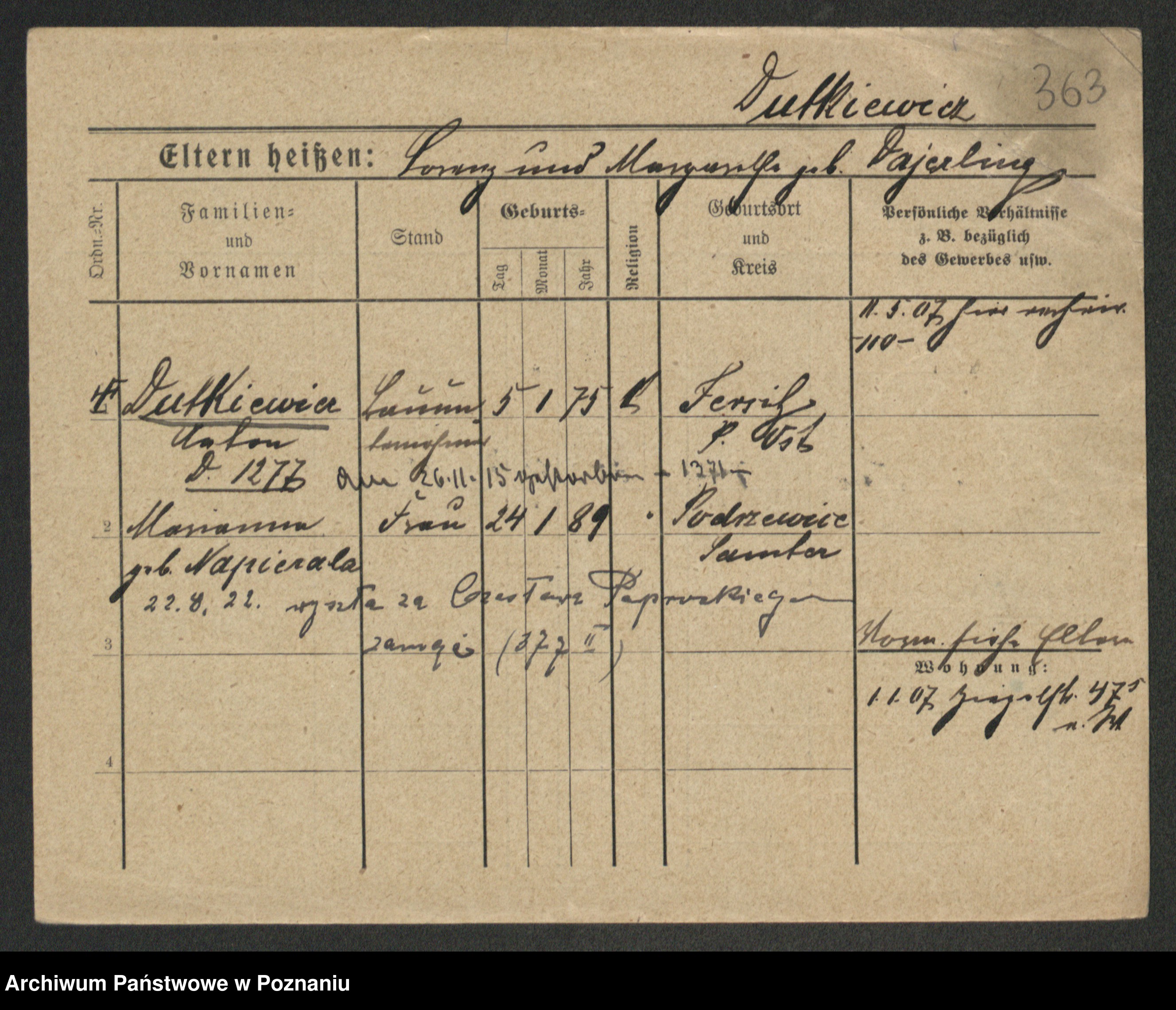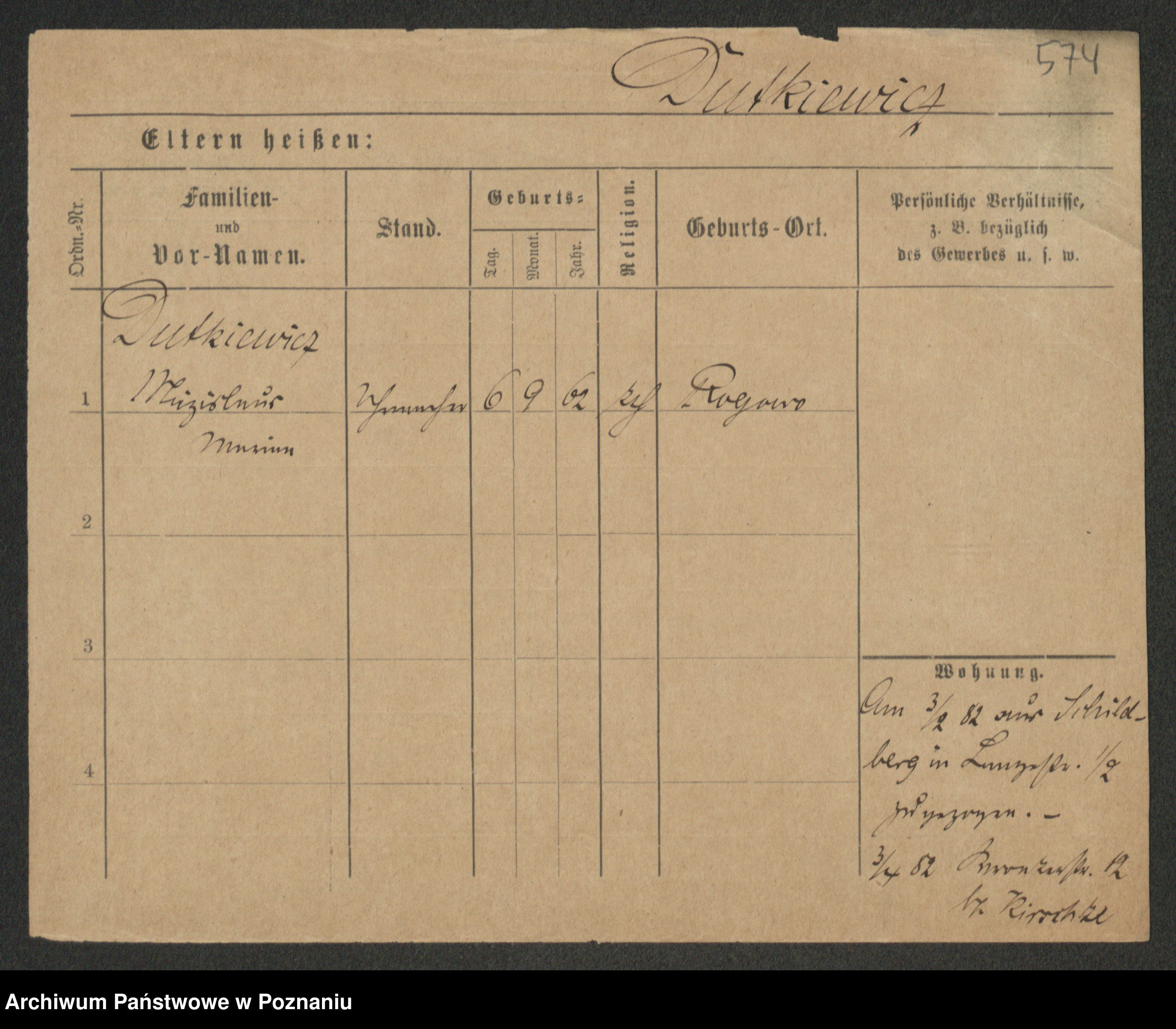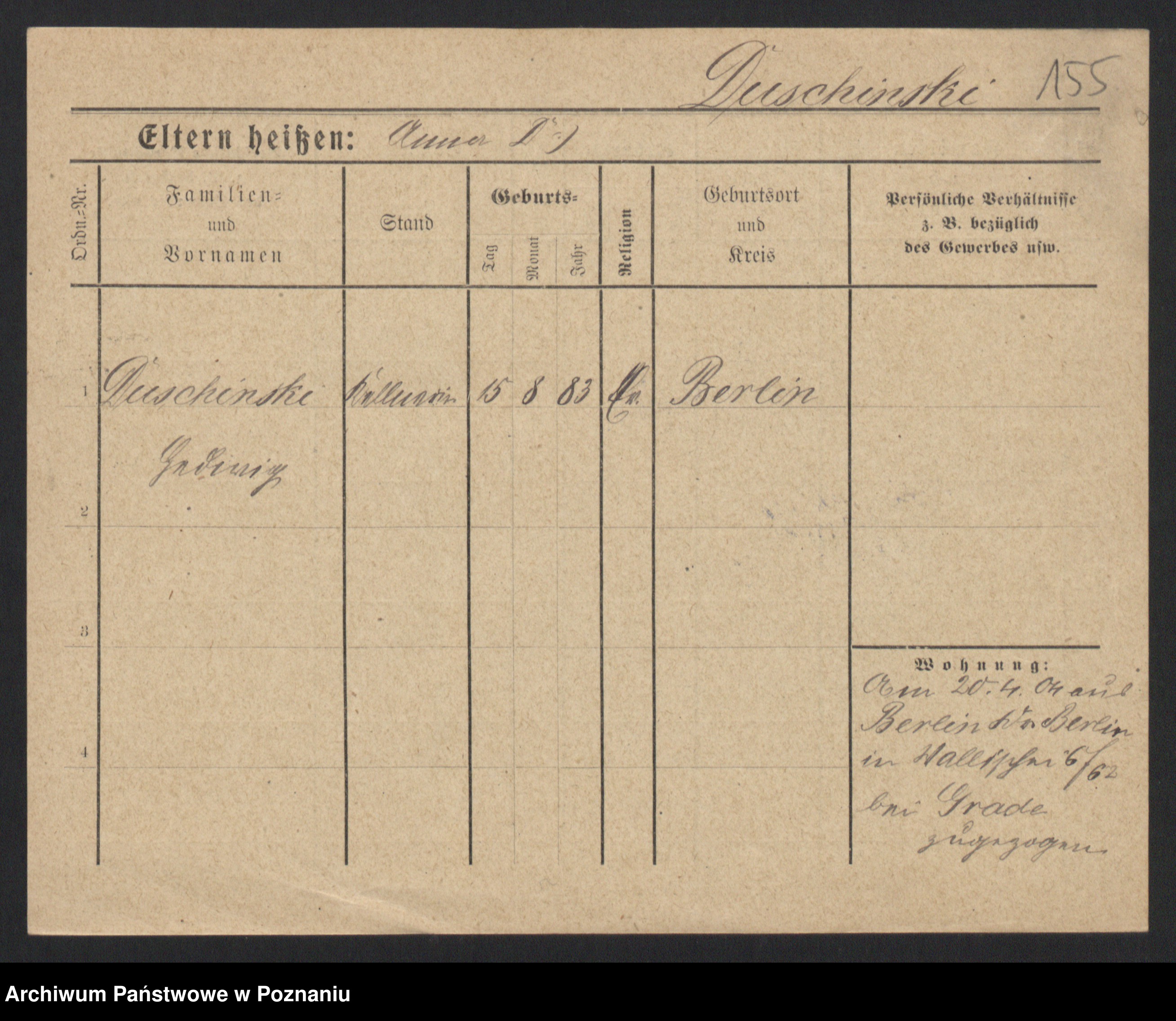 Duszyński zd. Mentzel, Wilhelmine