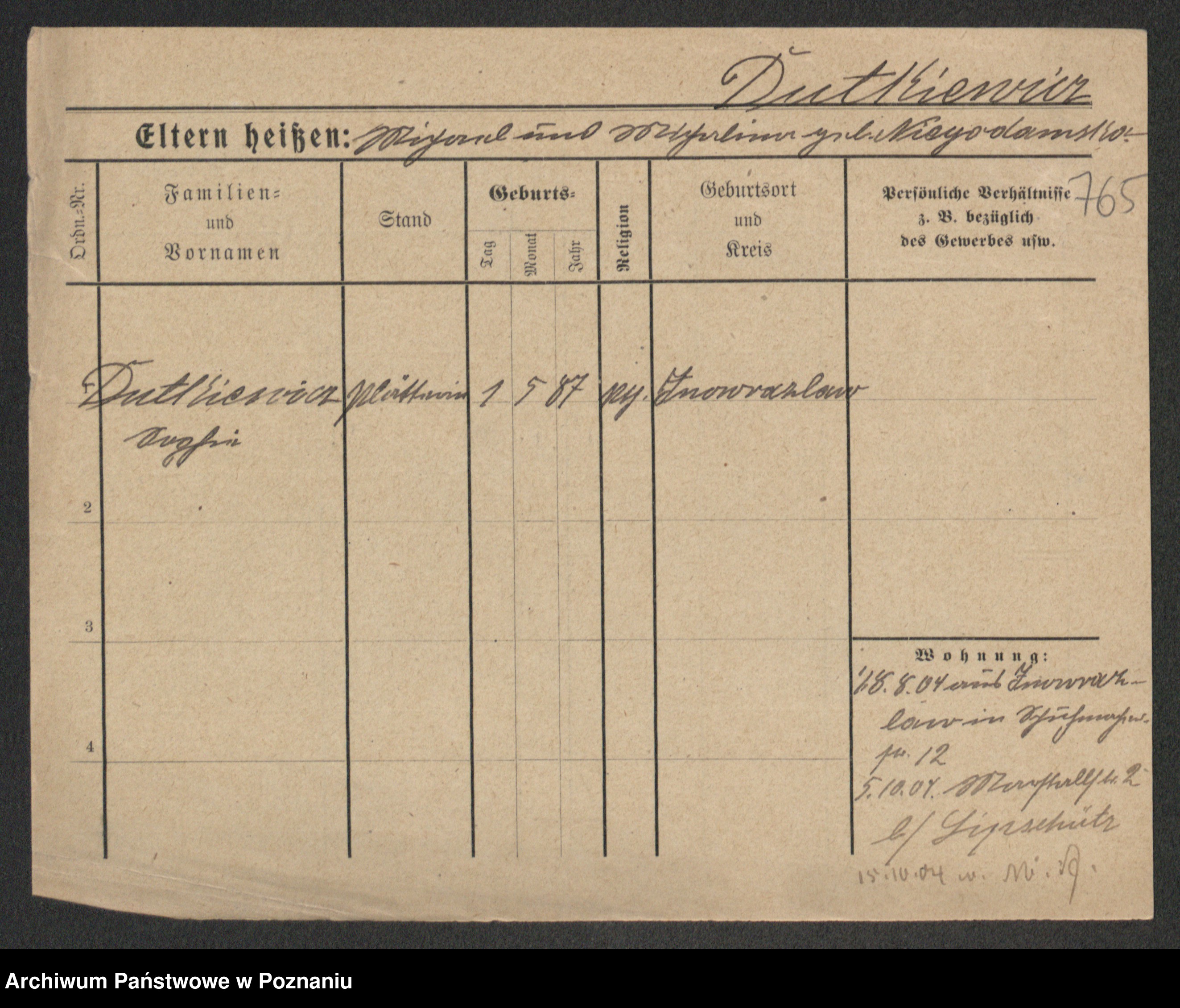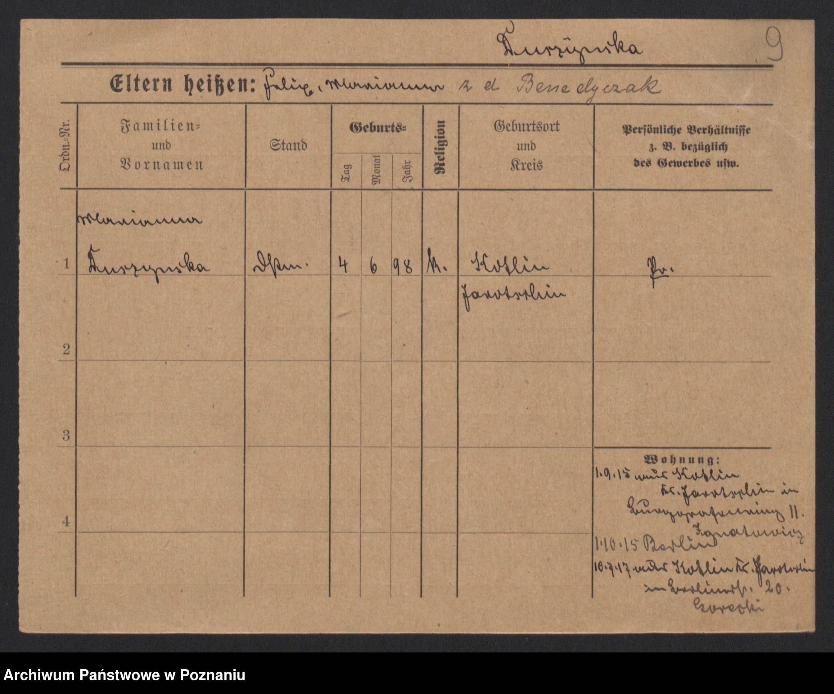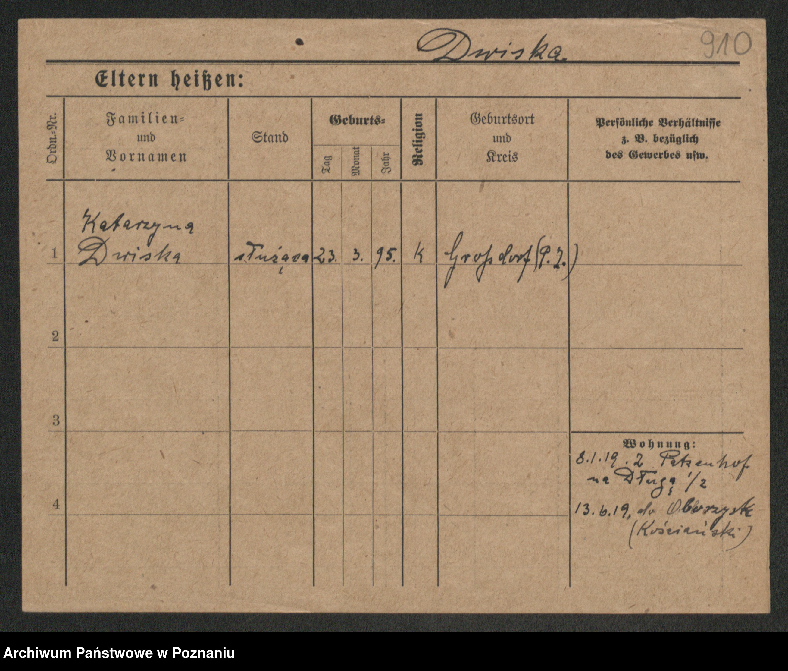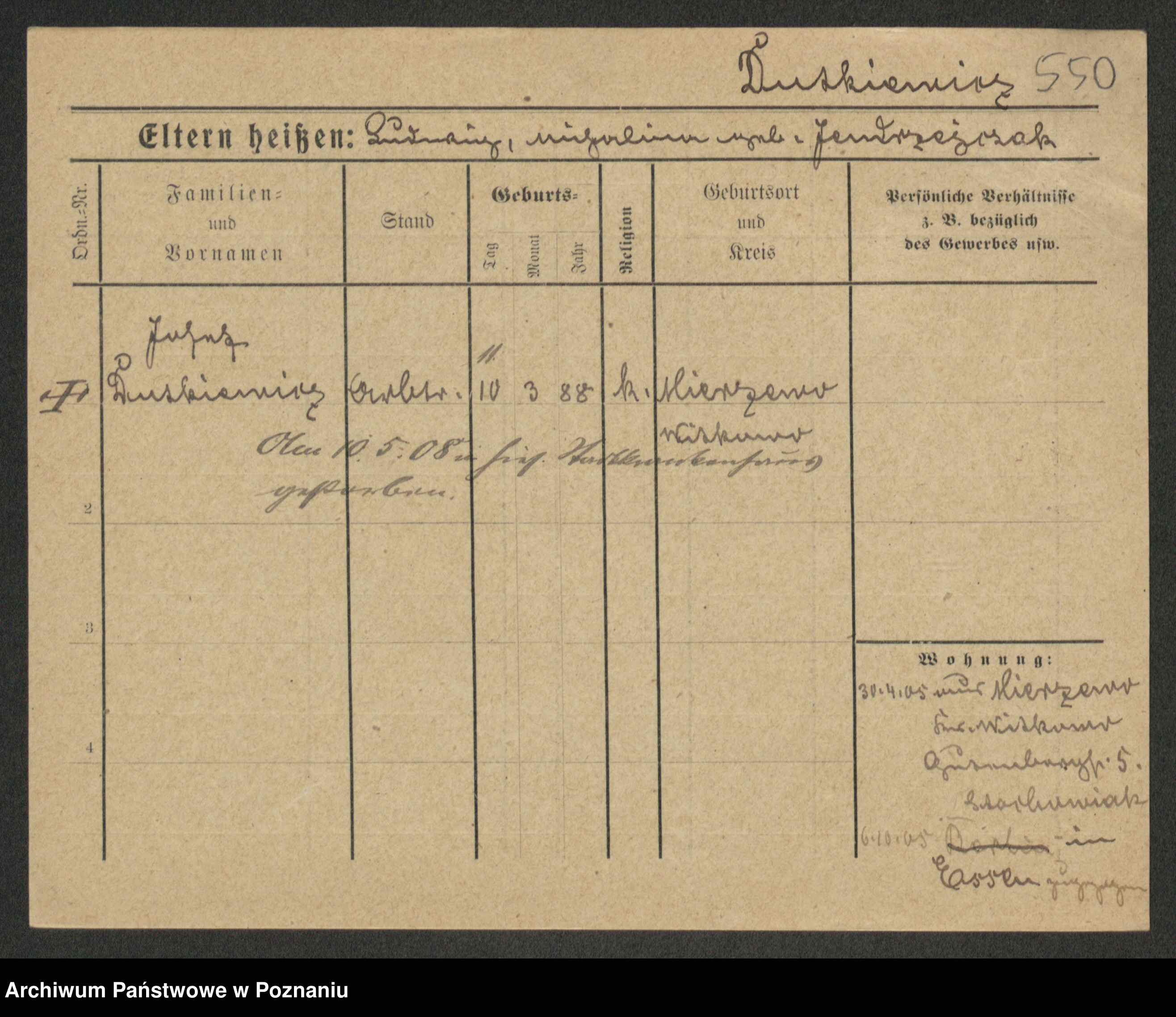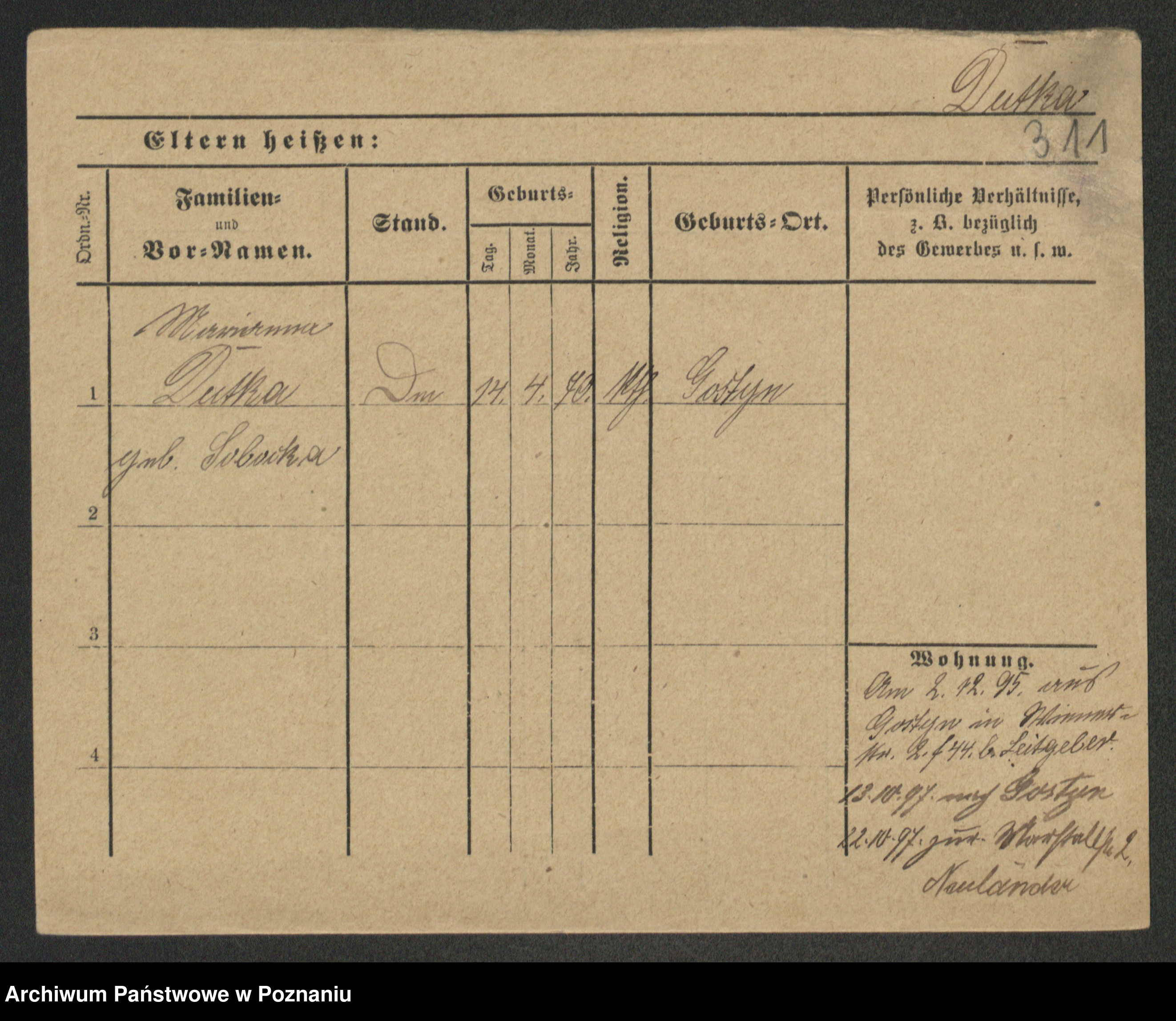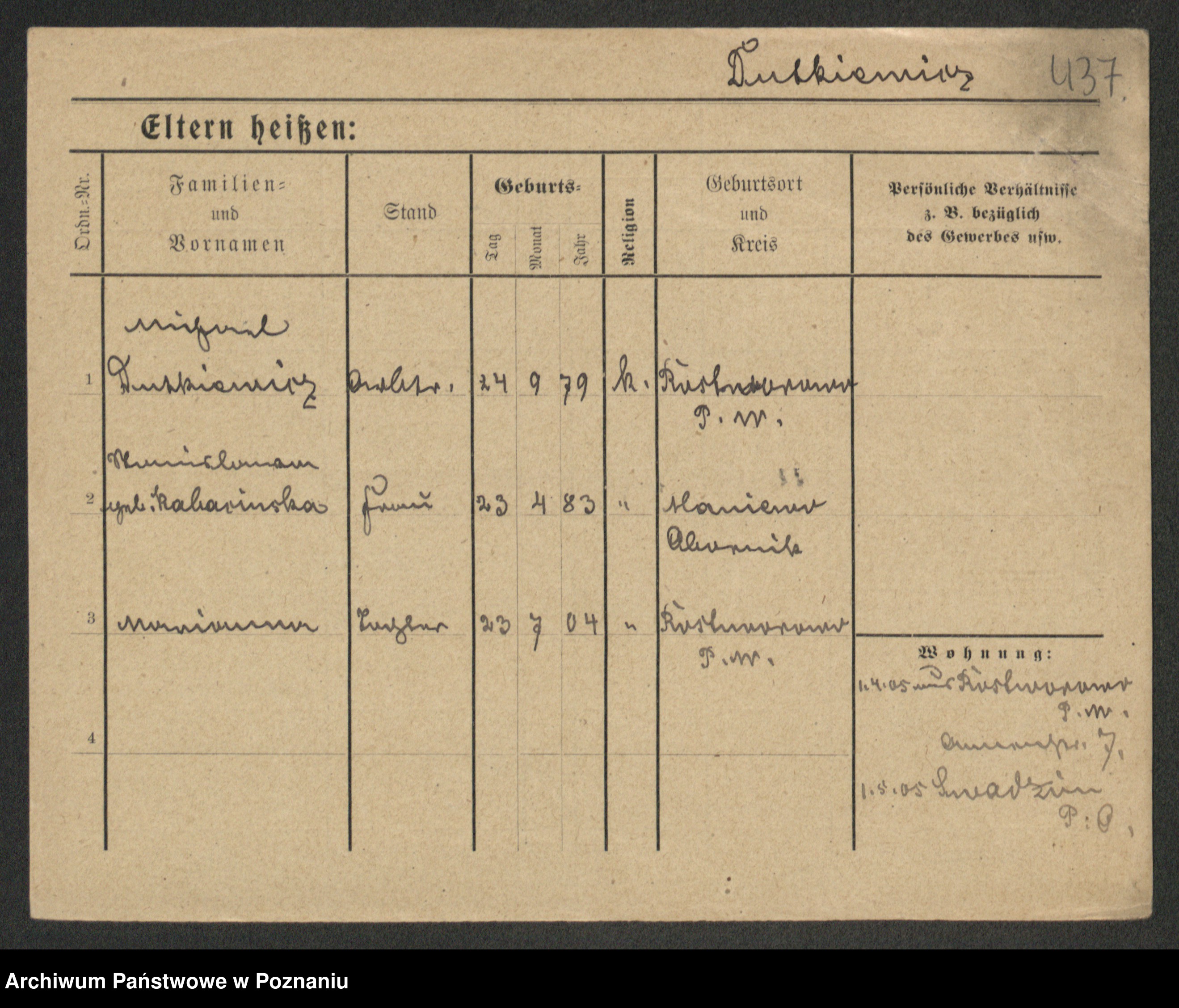 Duszyński zd. Mentzel, Wilhelmine