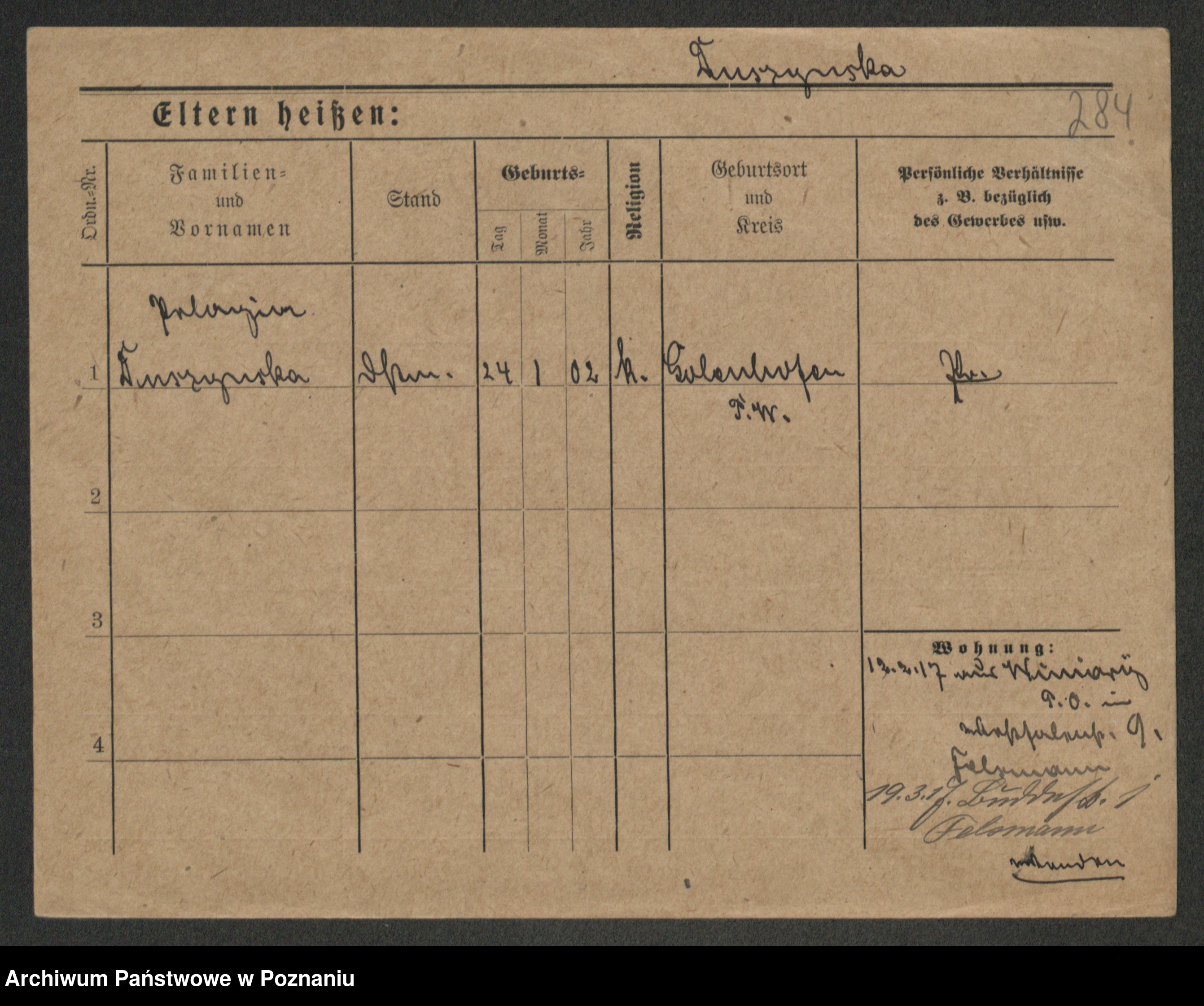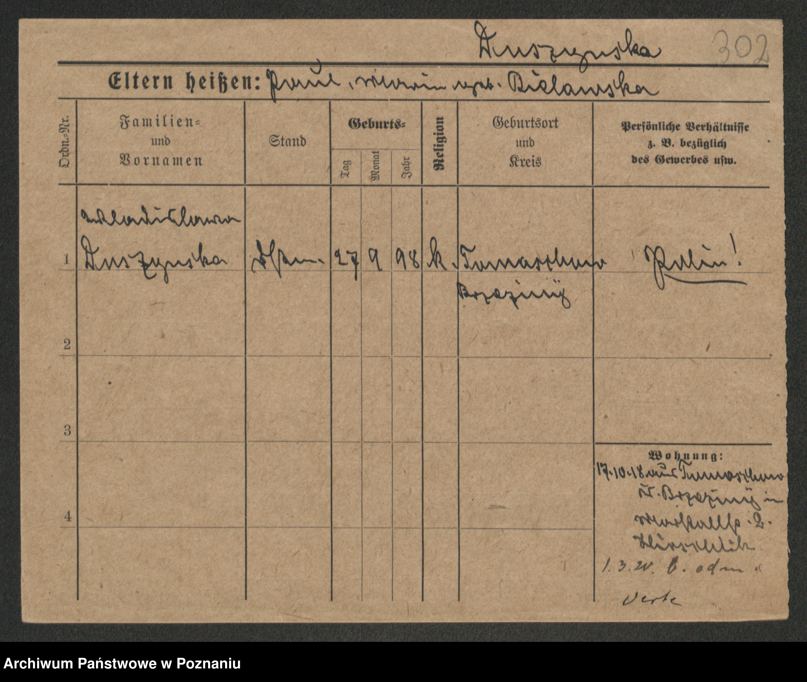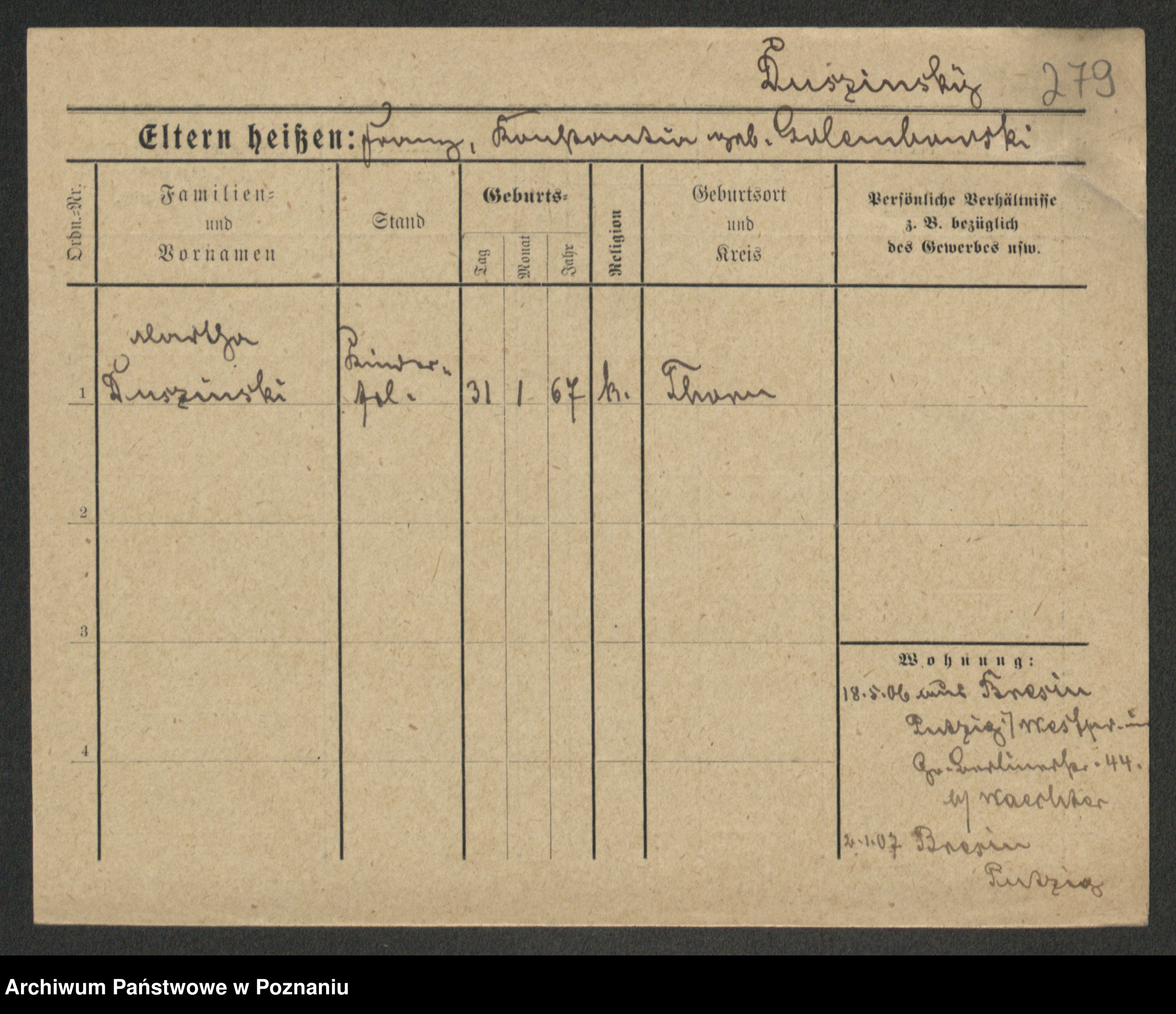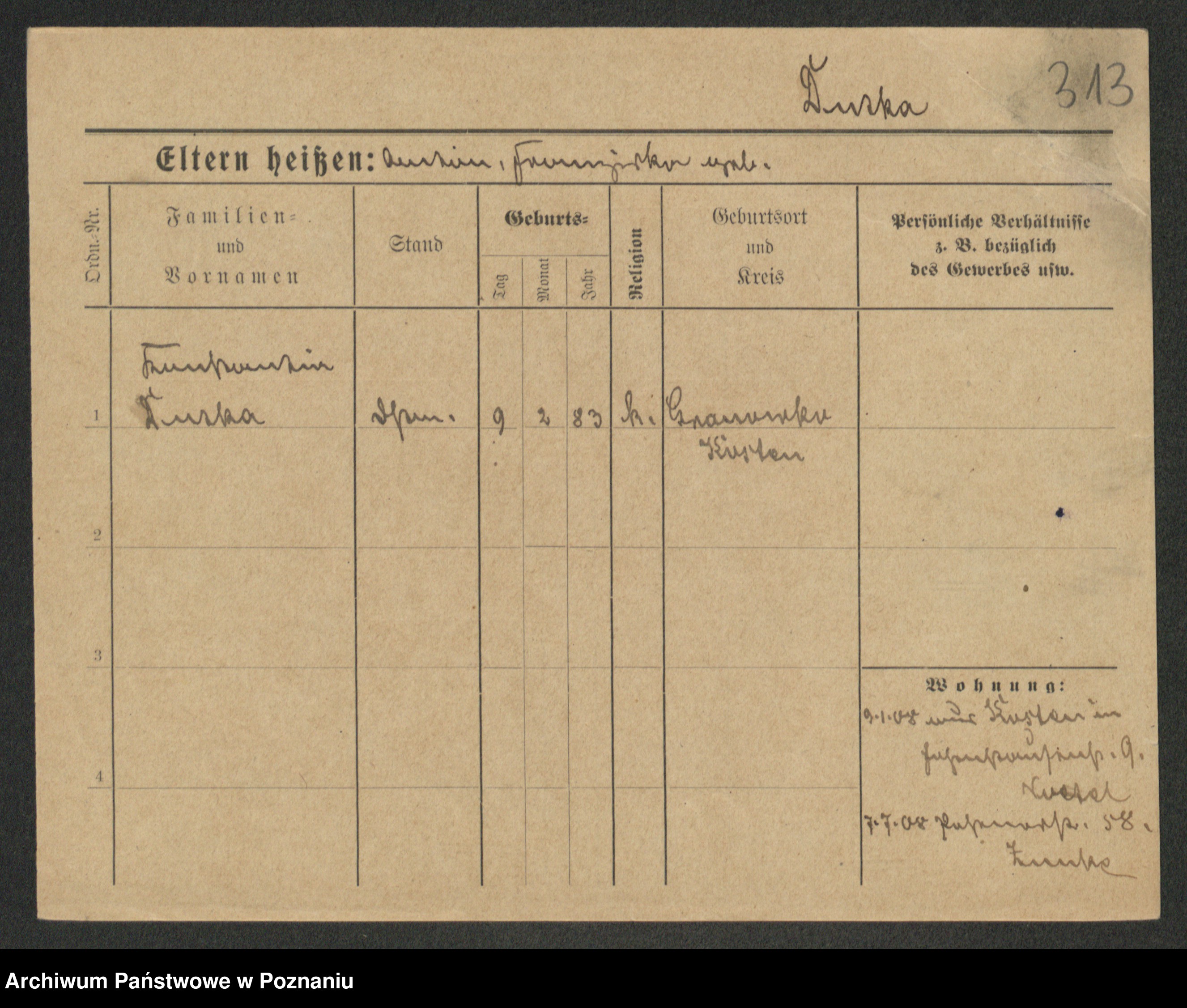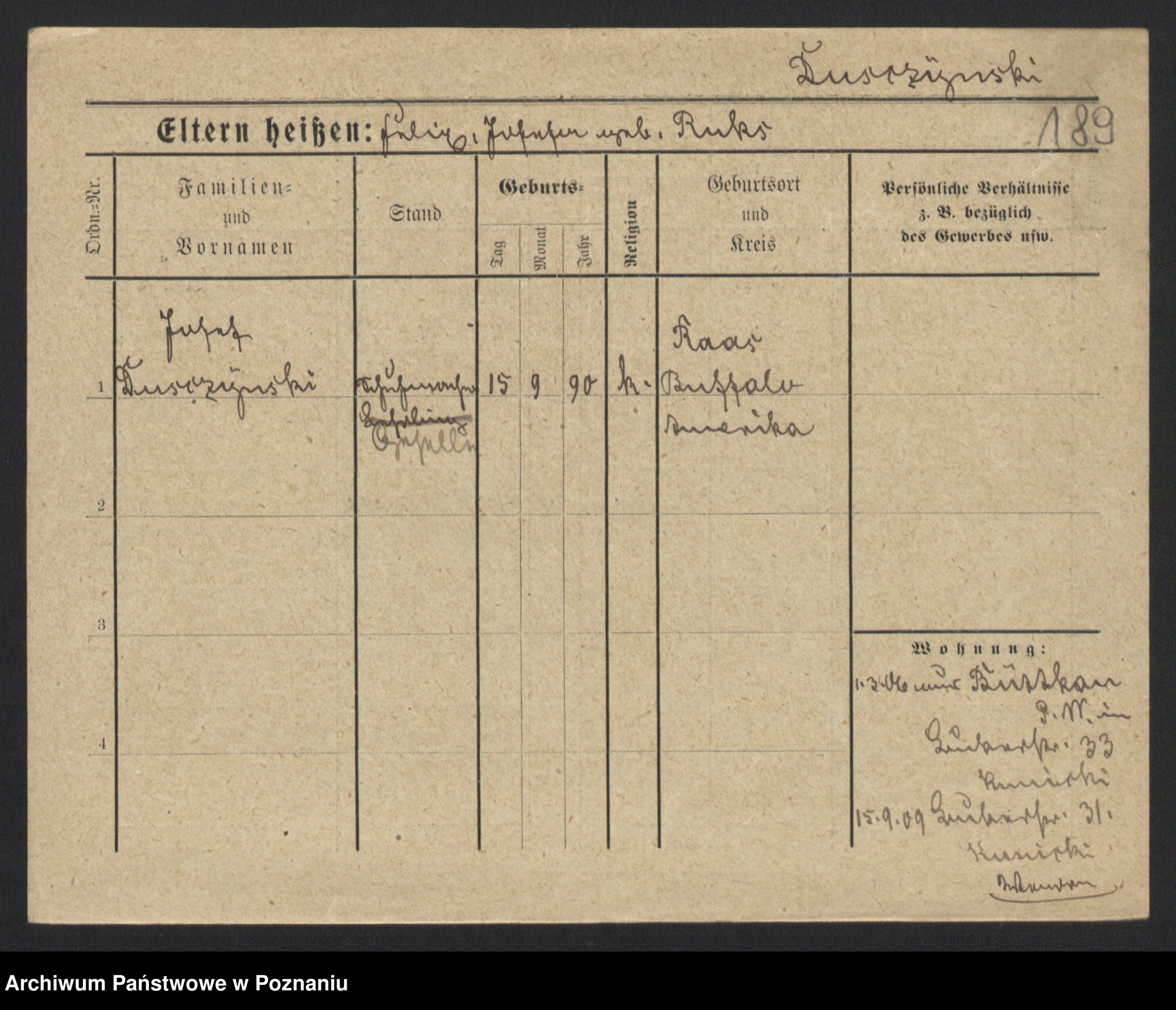 Duszyński zd. Mentzel, Wilhelmine