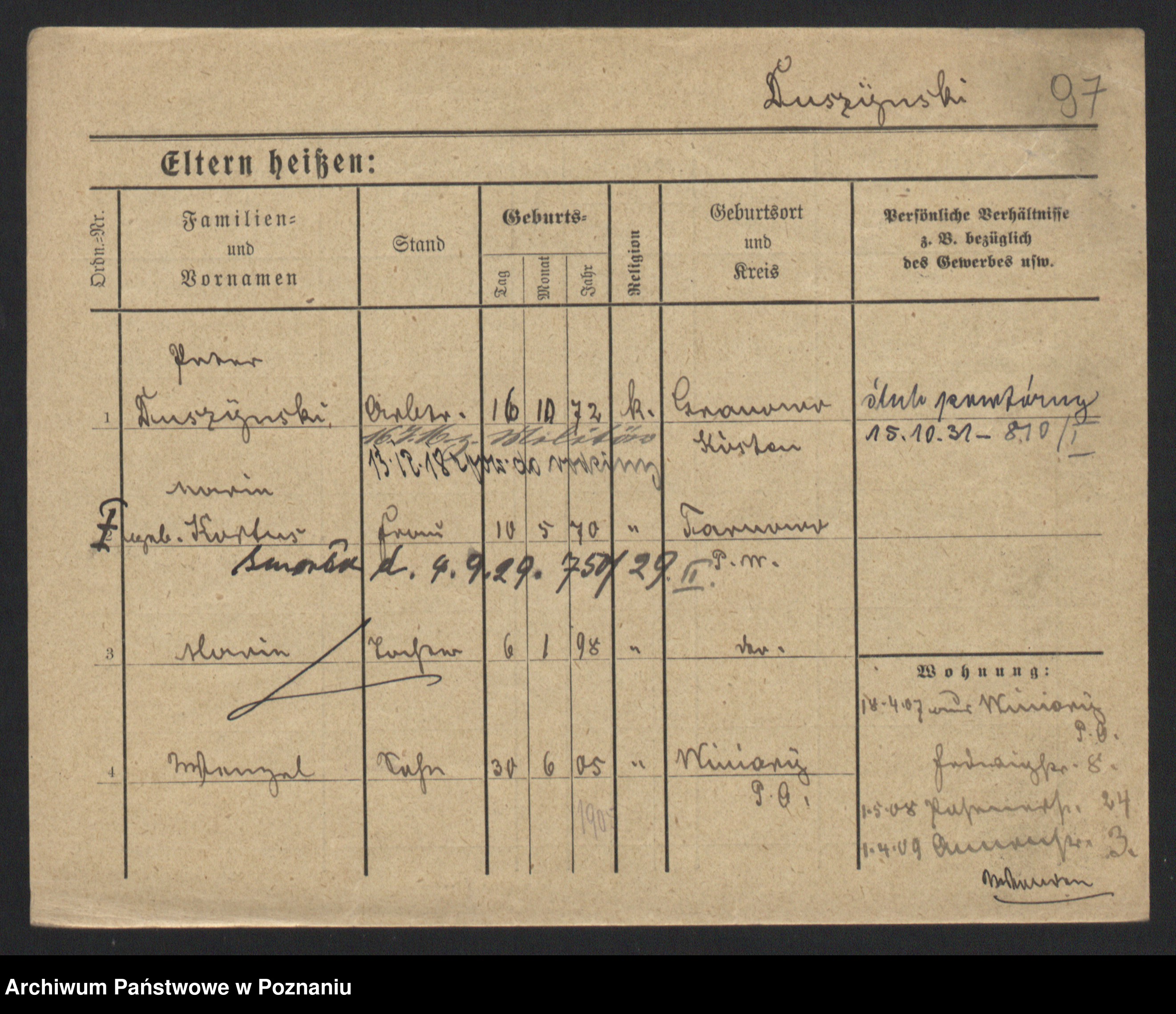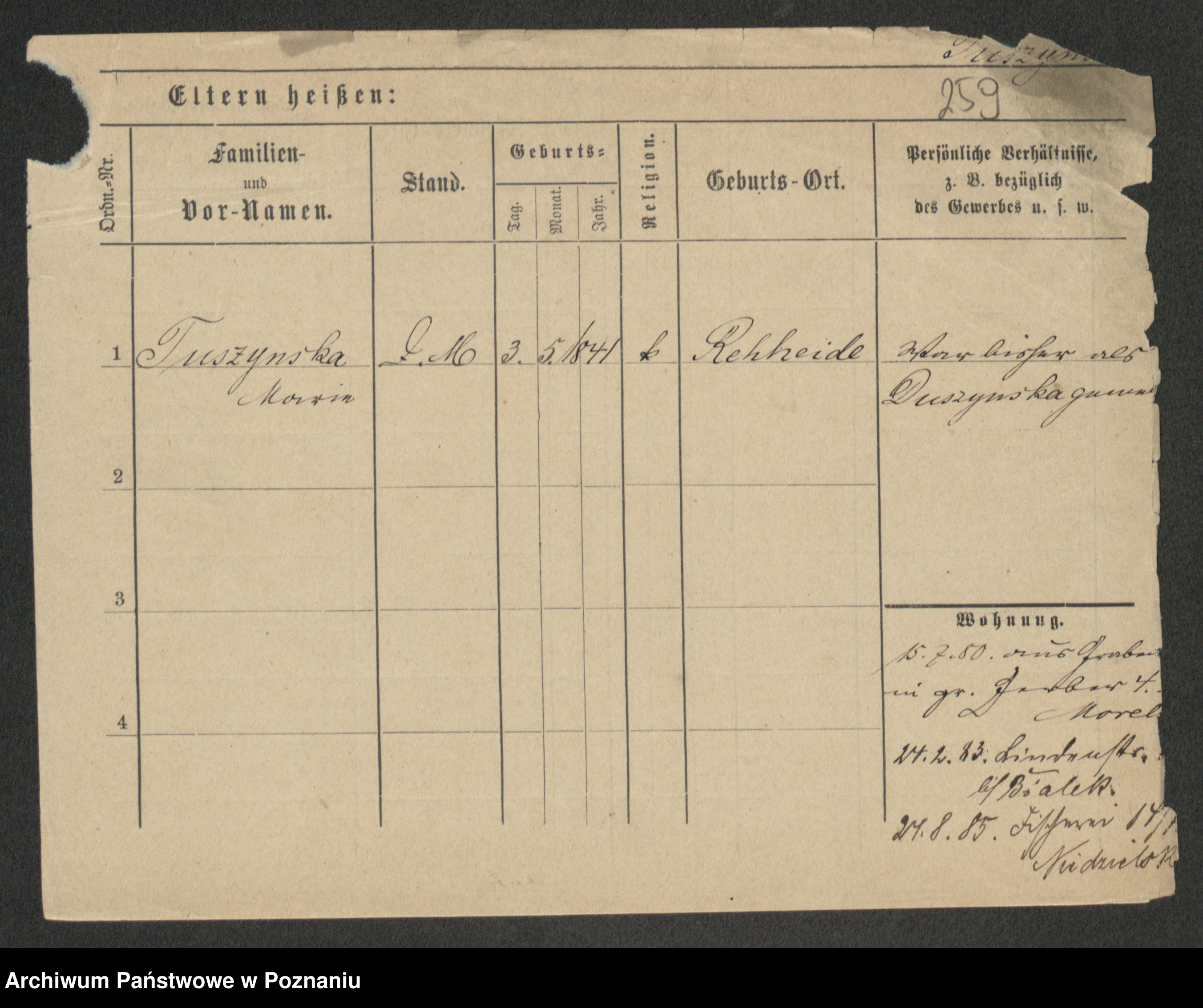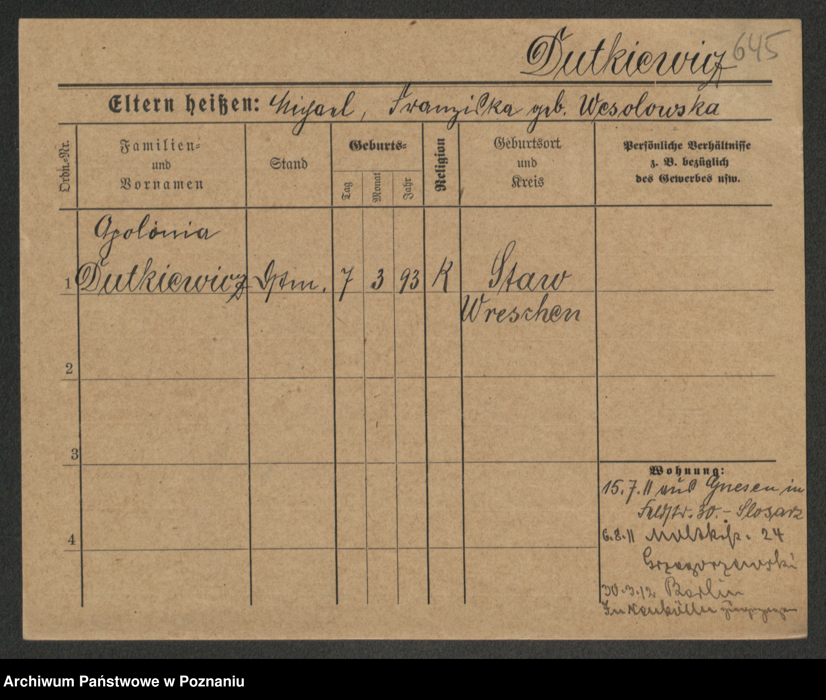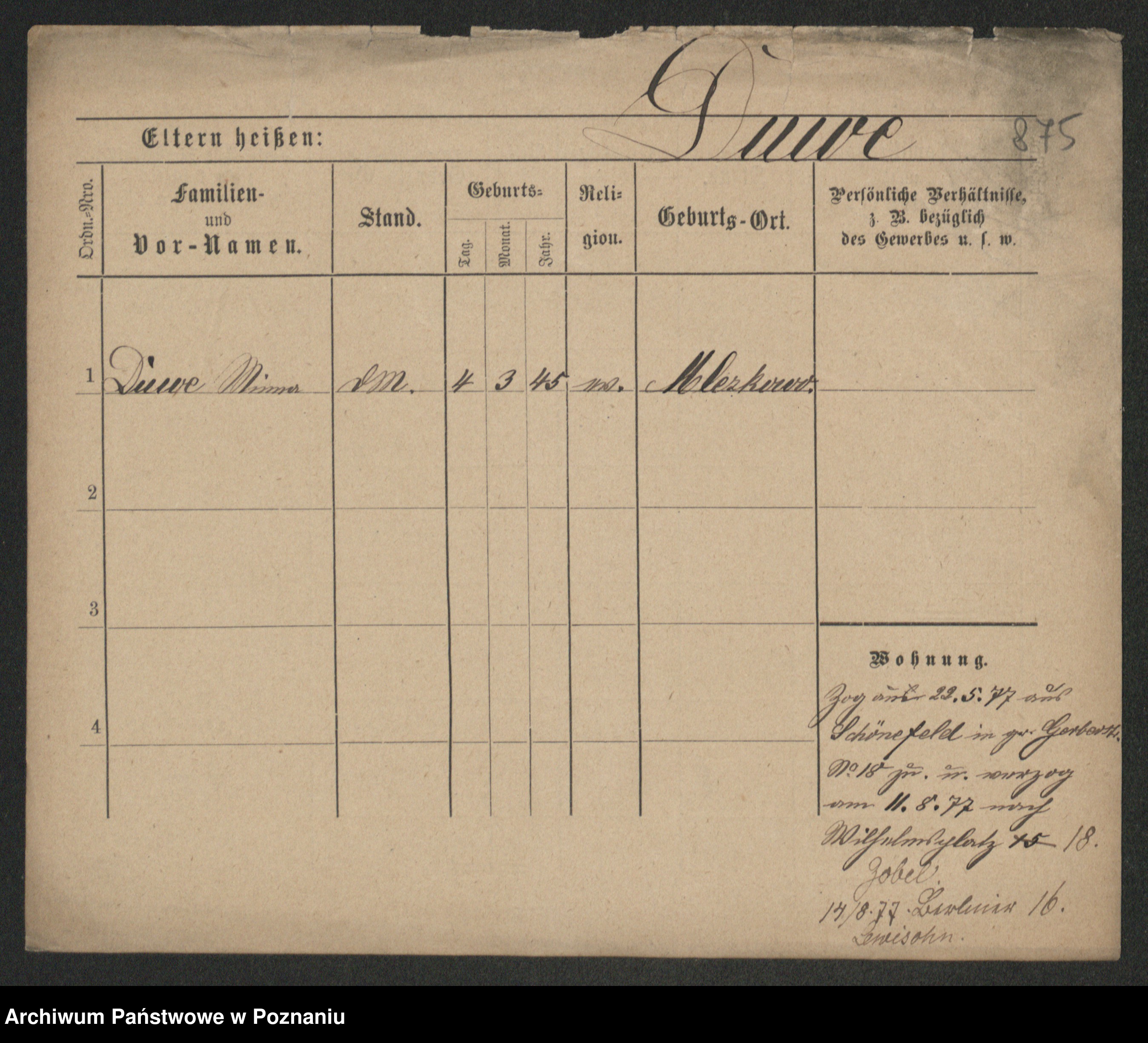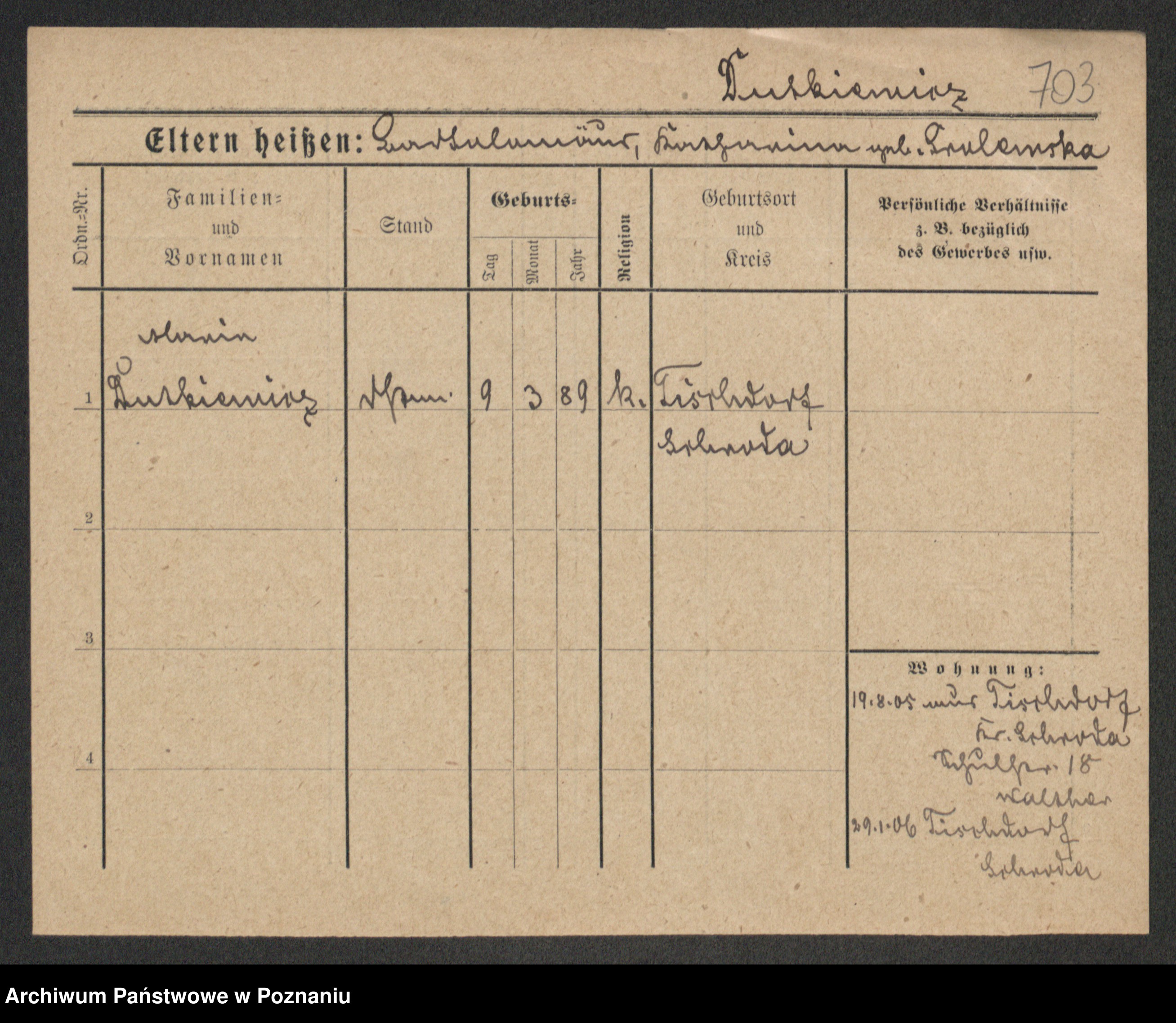 Duszyński zd. Mentzel, Wilhelmine