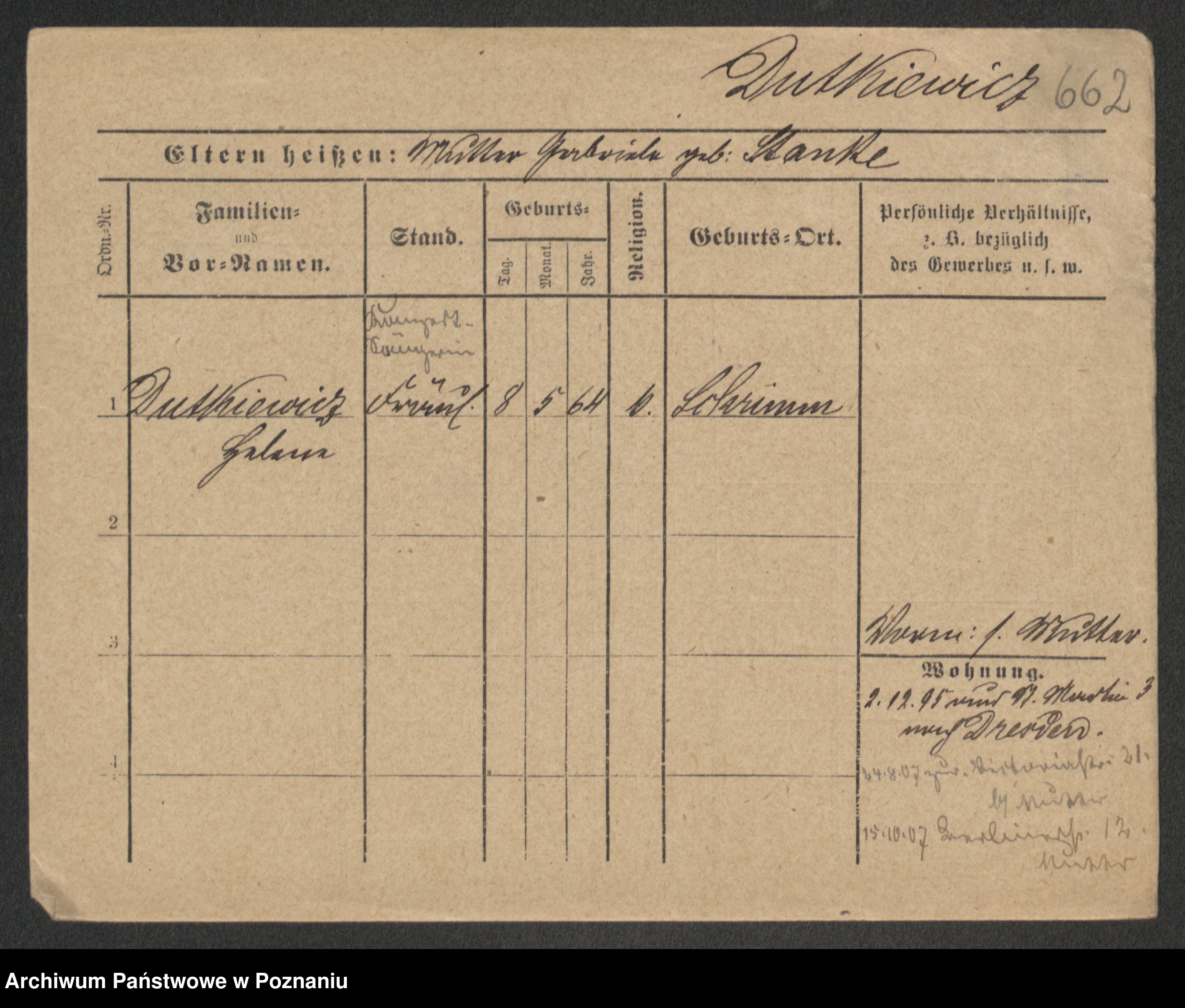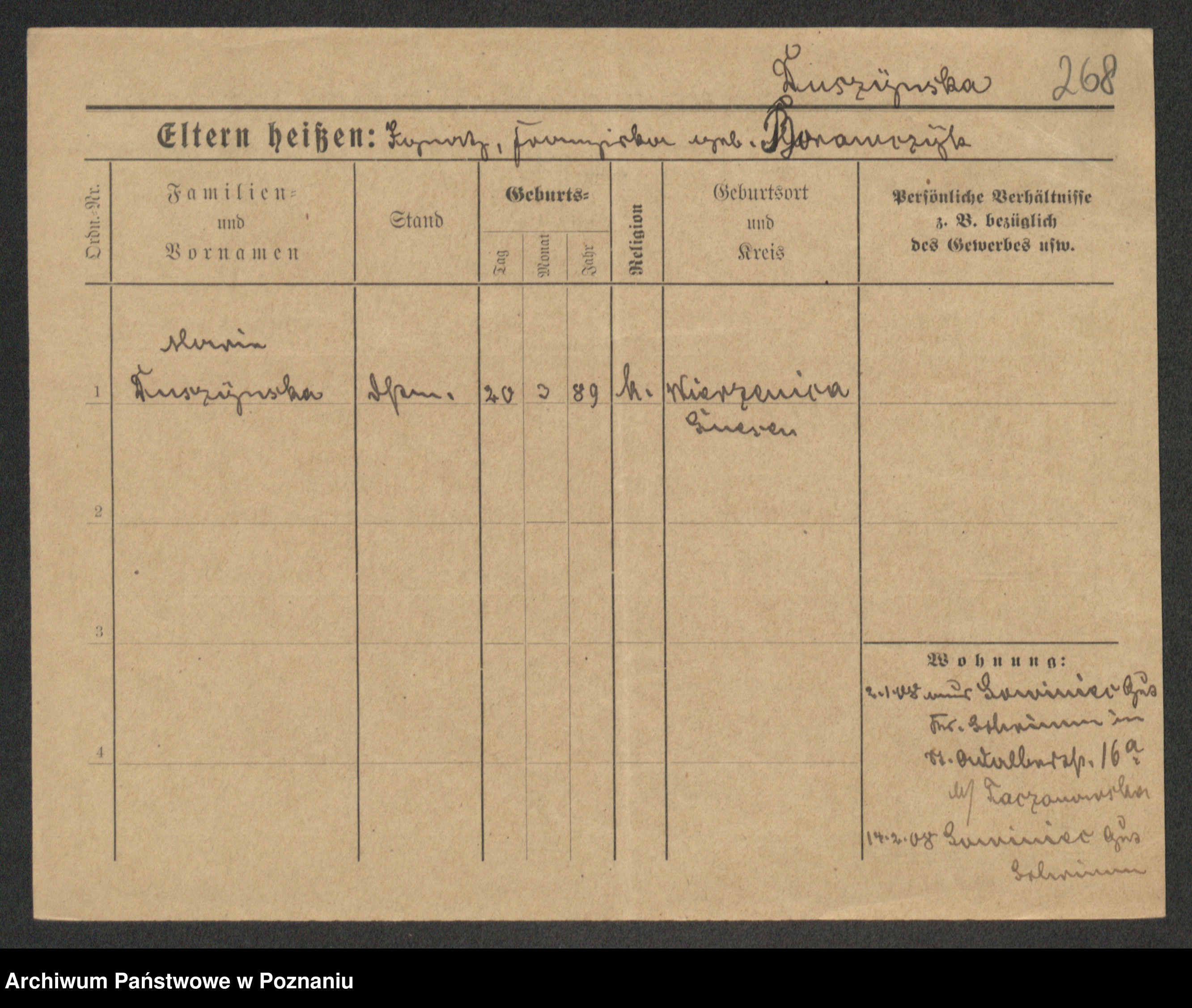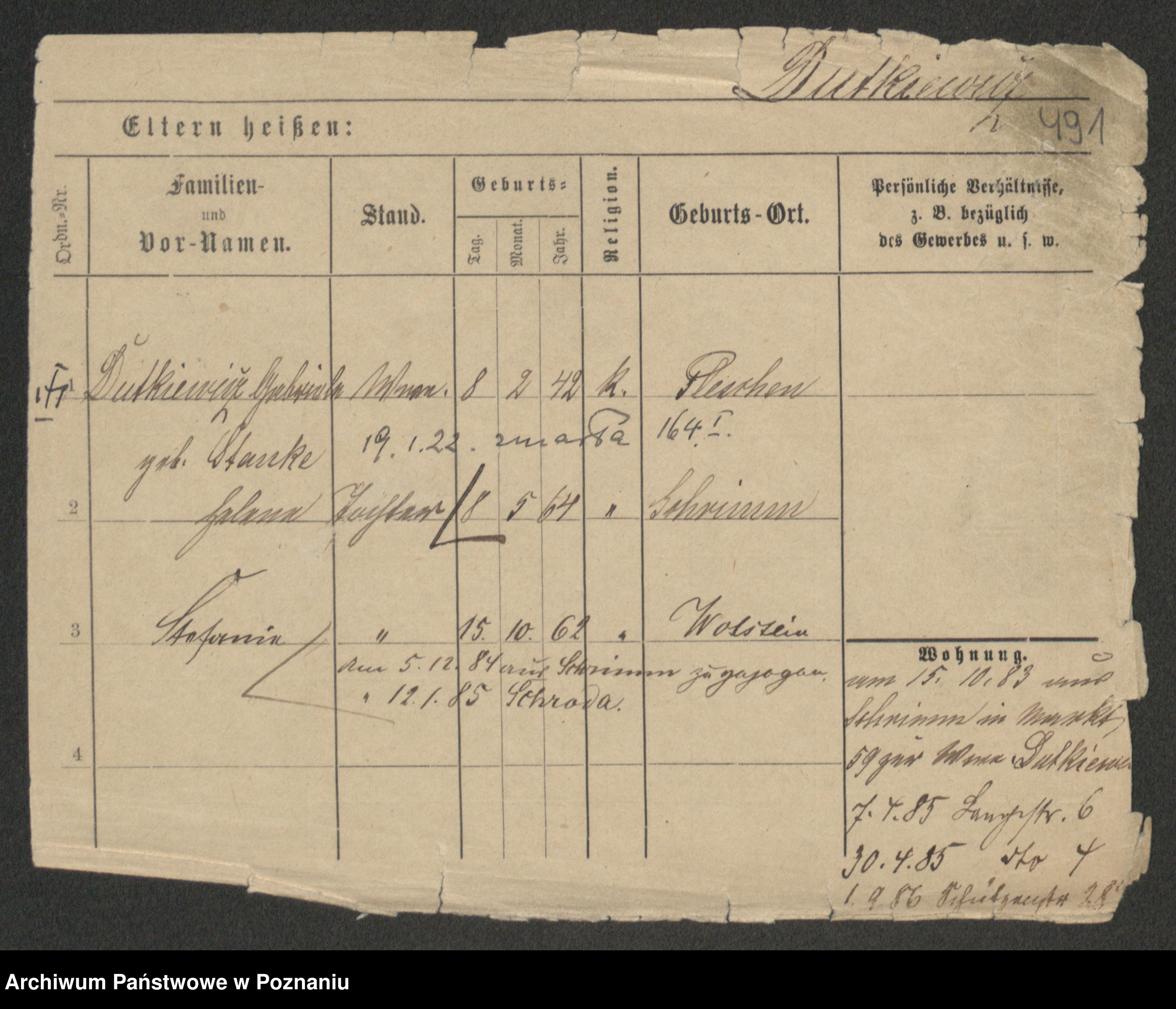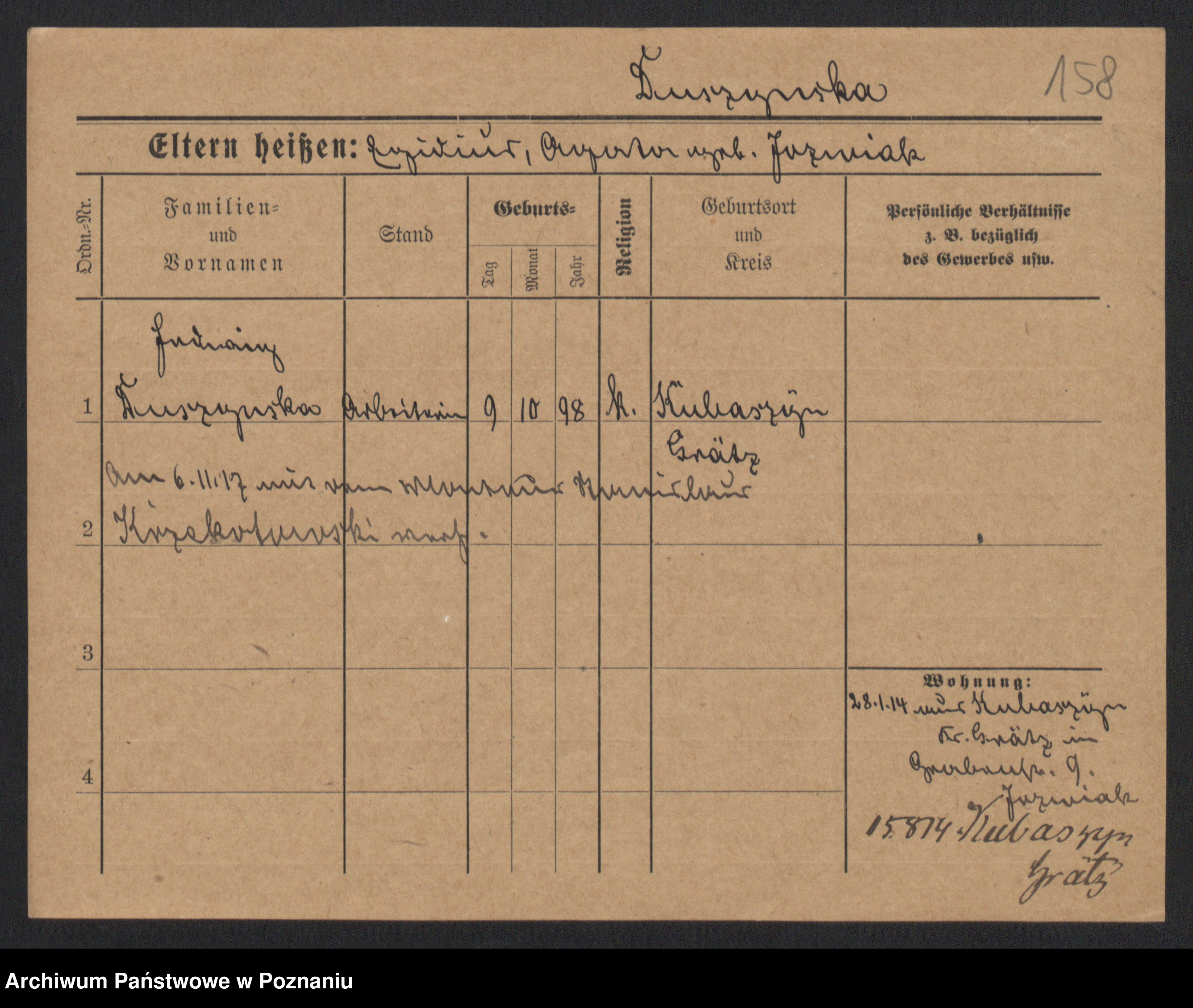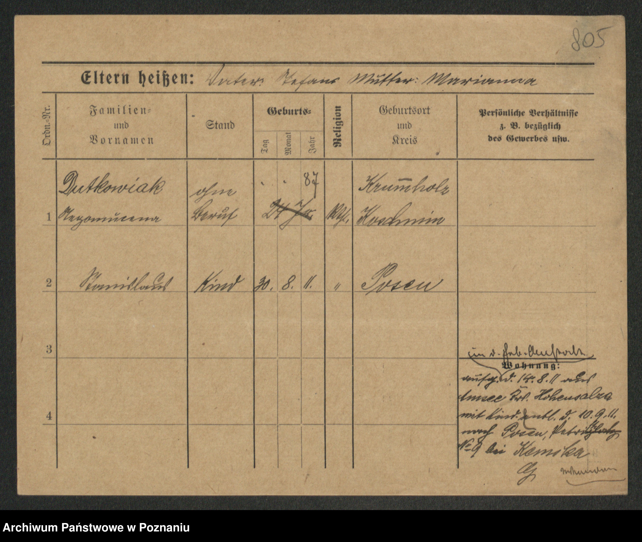 Duszyński zd. Mentzel, Wilhelmine