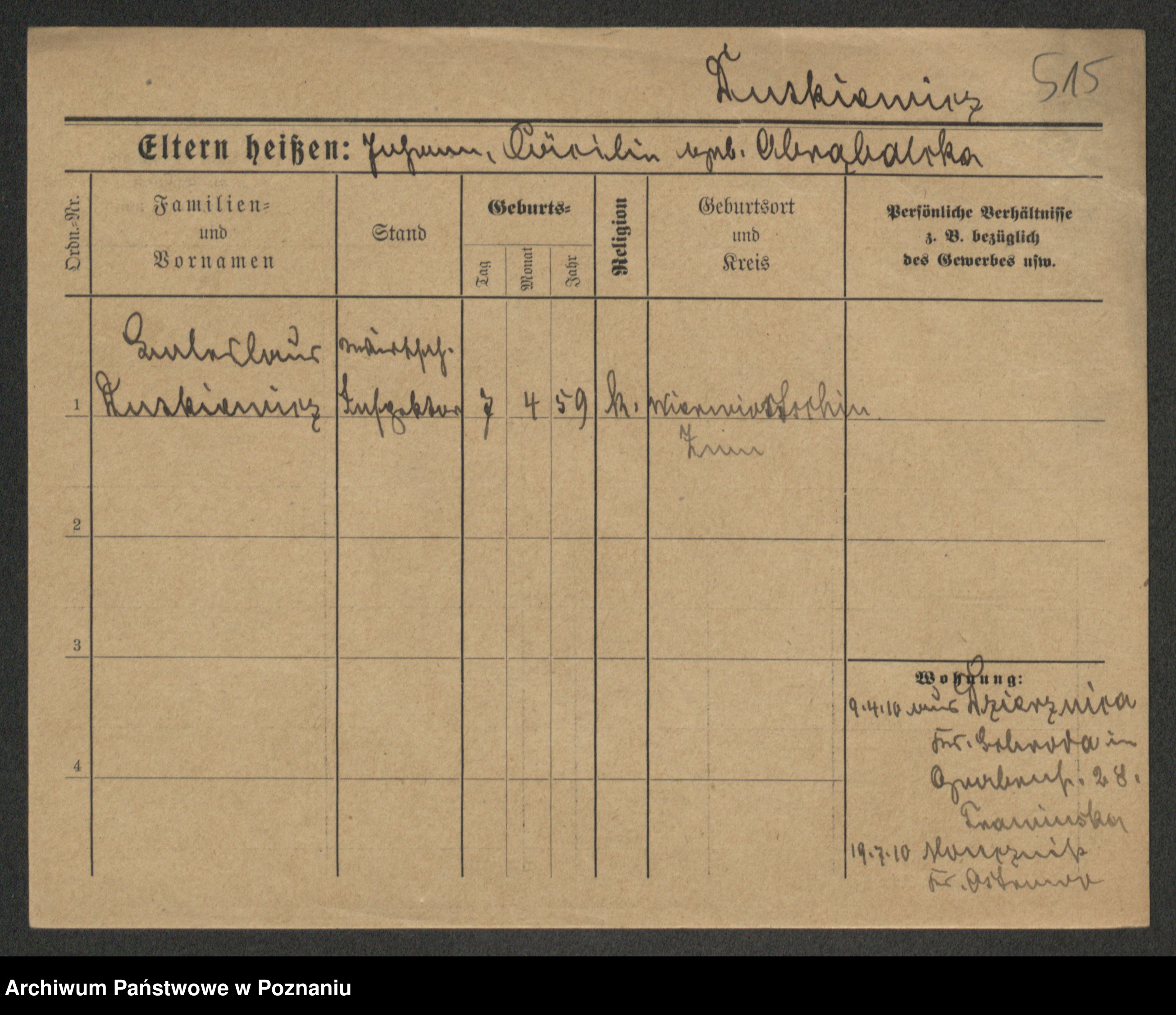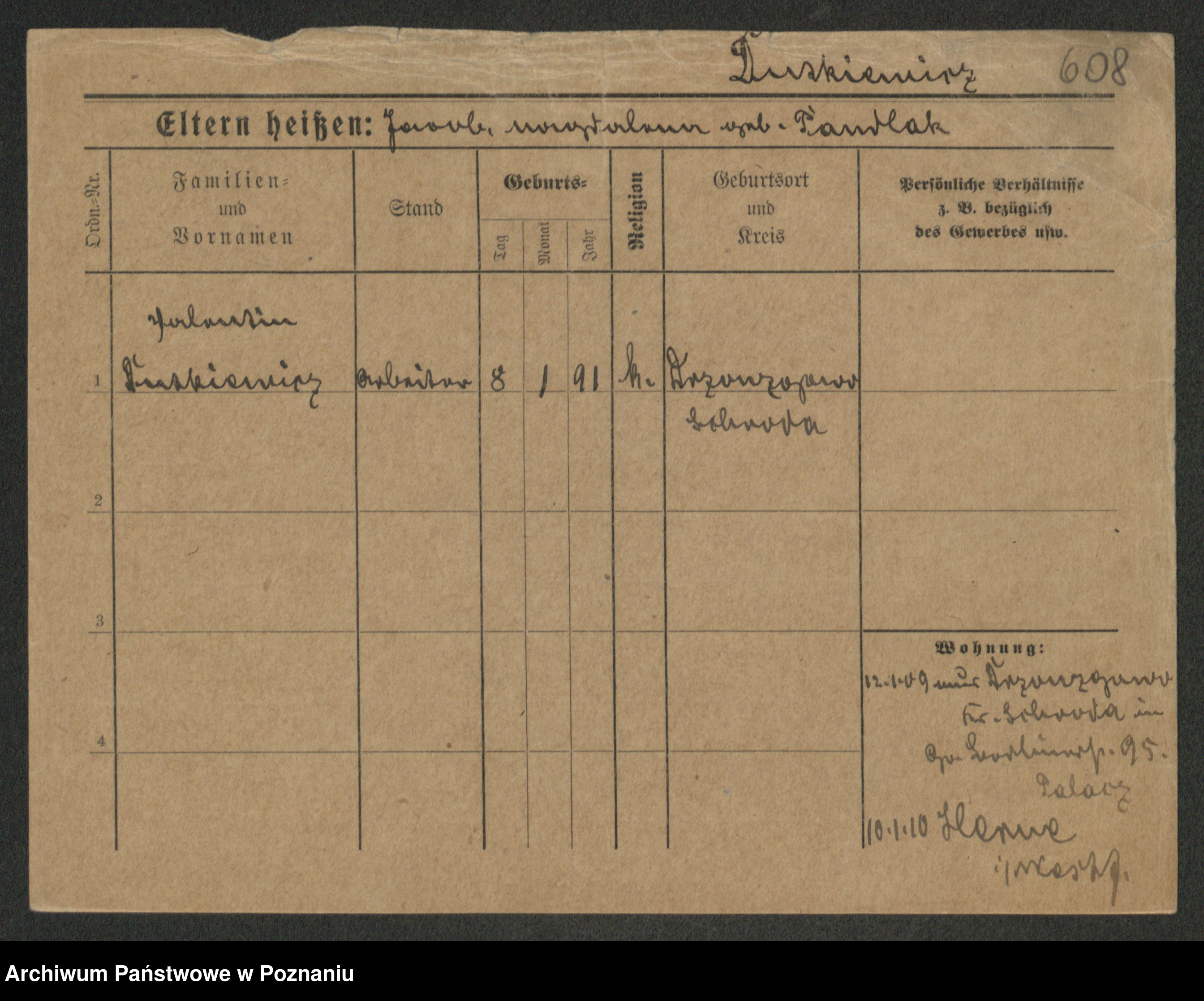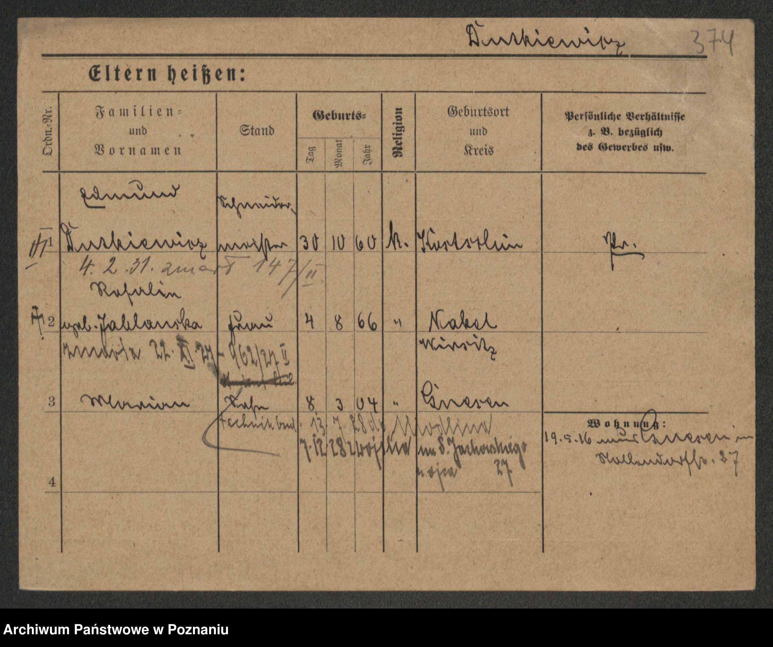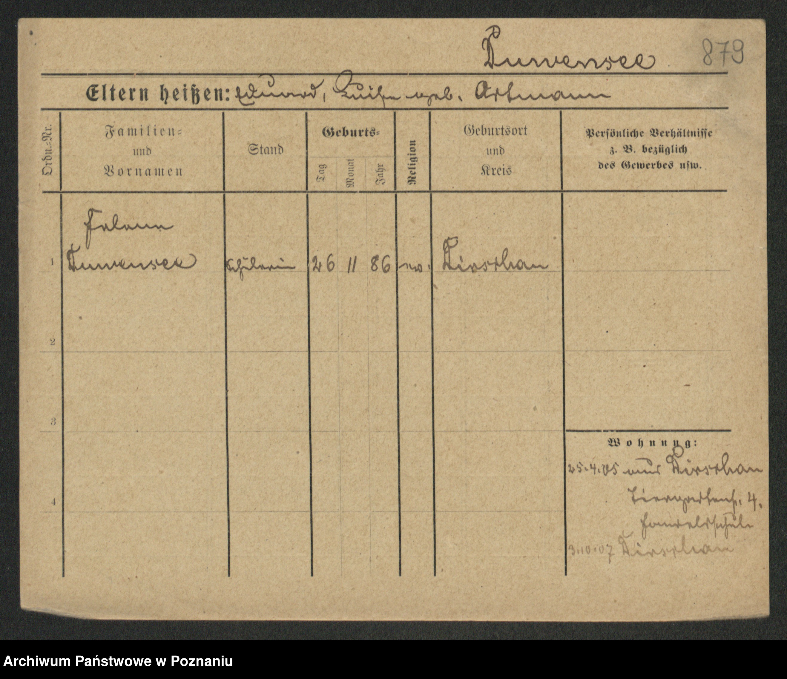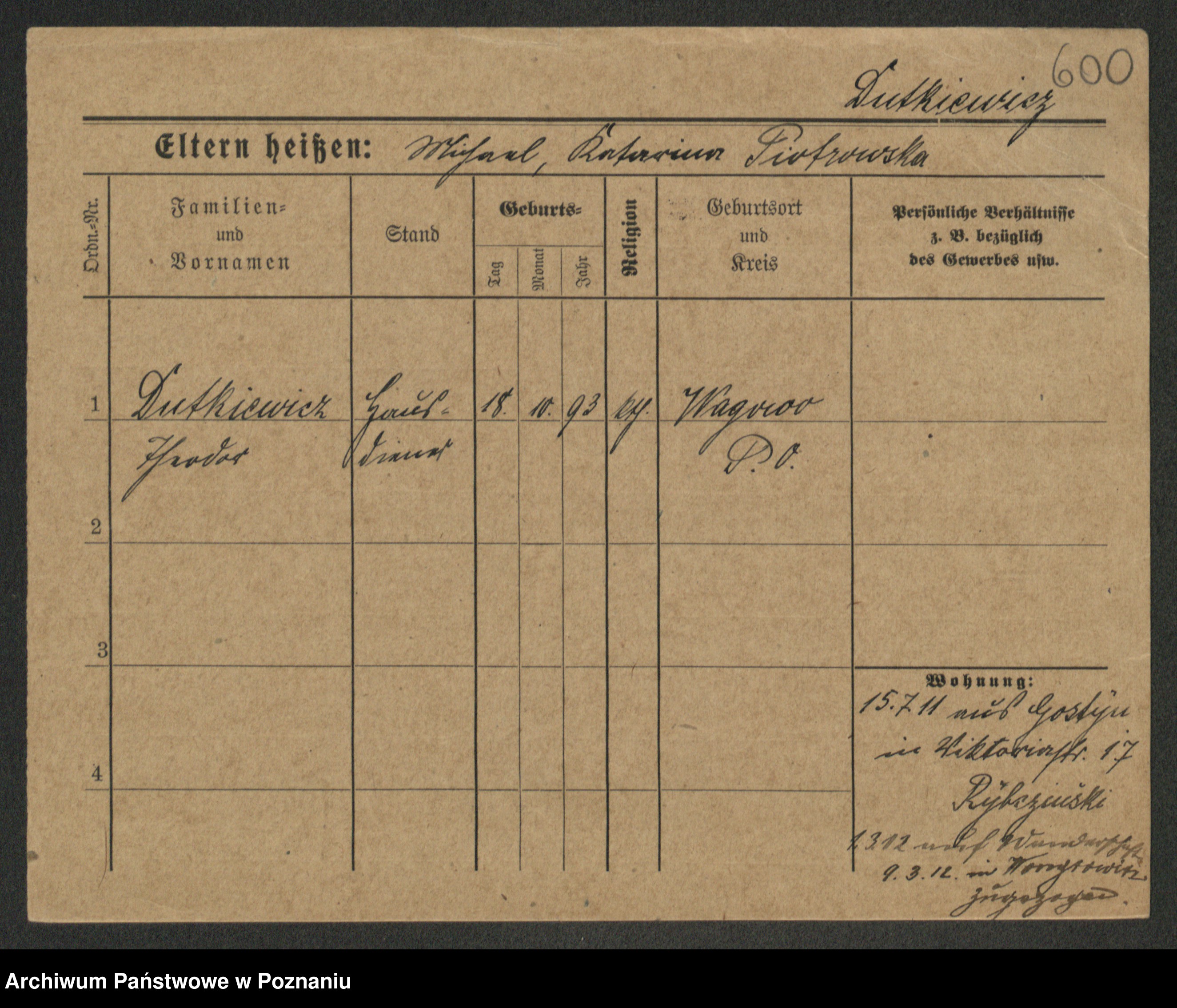 Duszyński zd. Mentzel, Wilhelmine