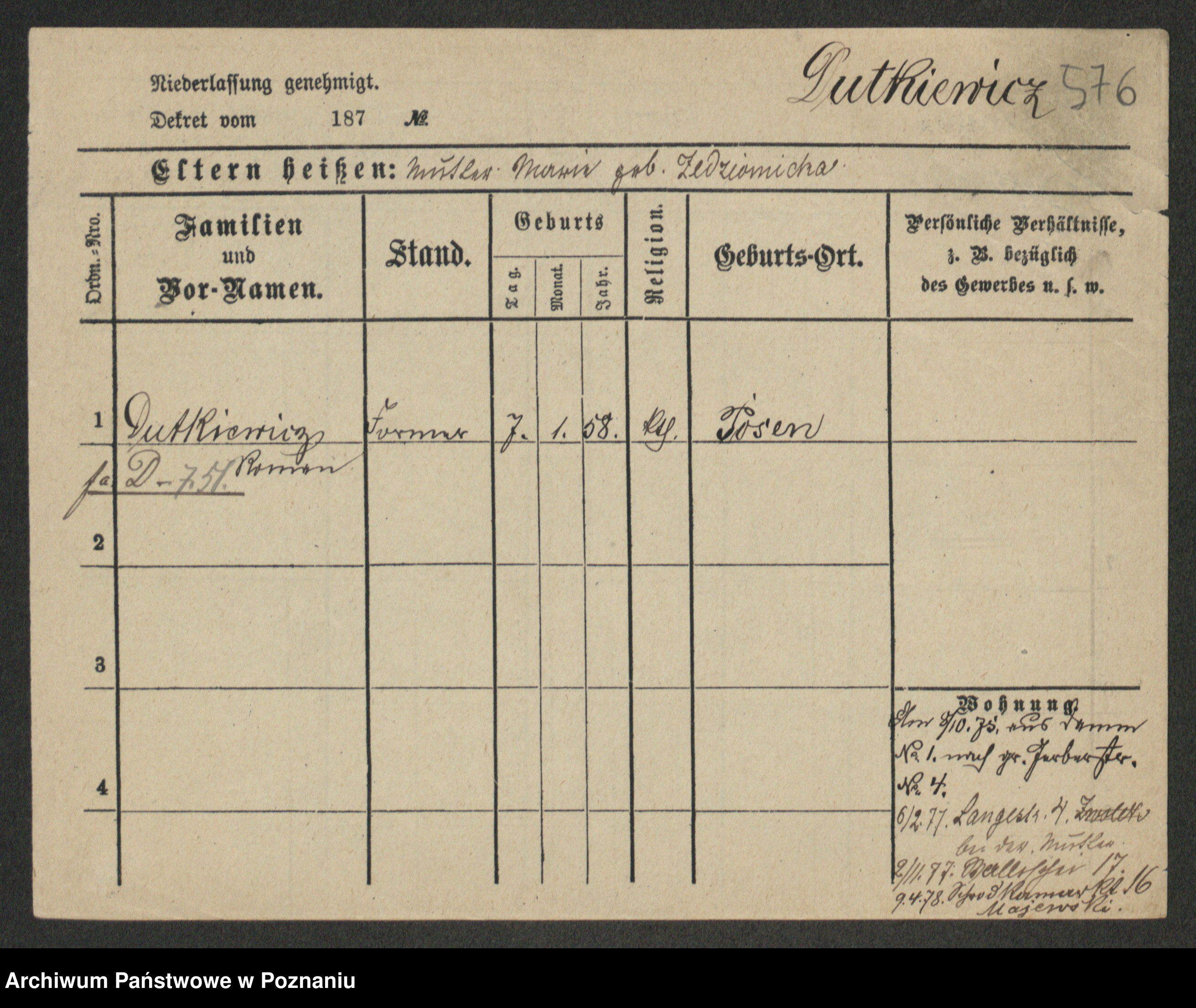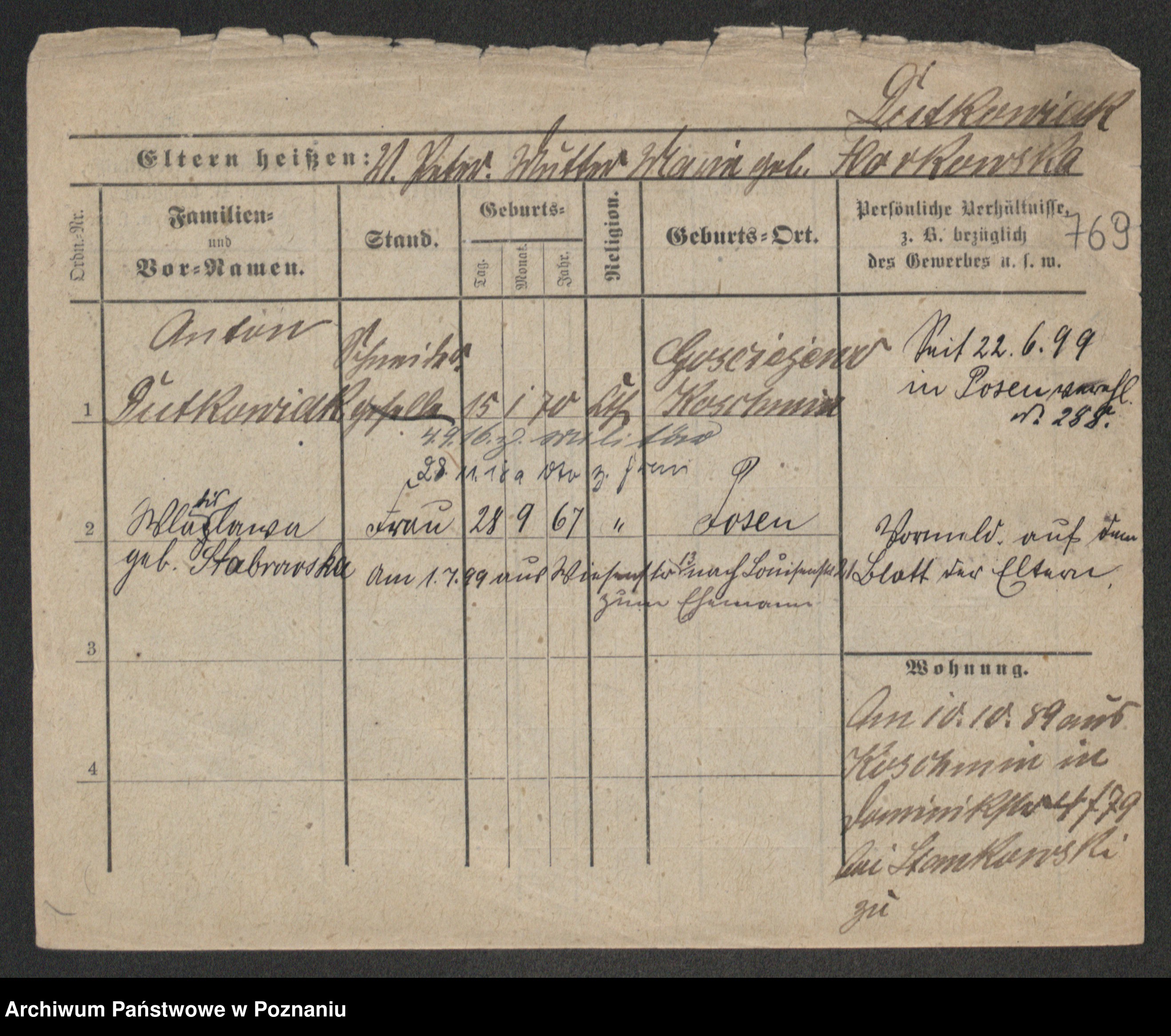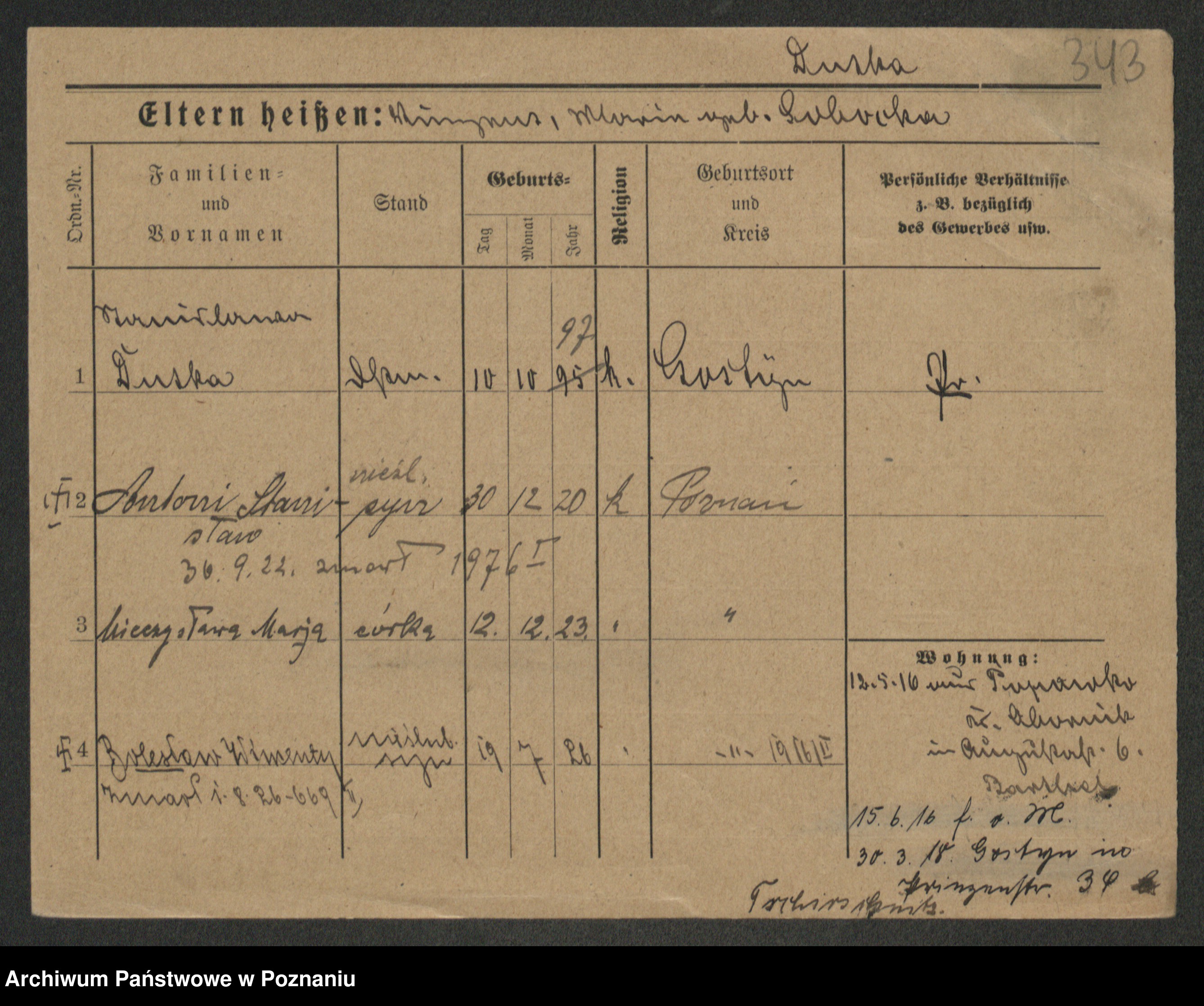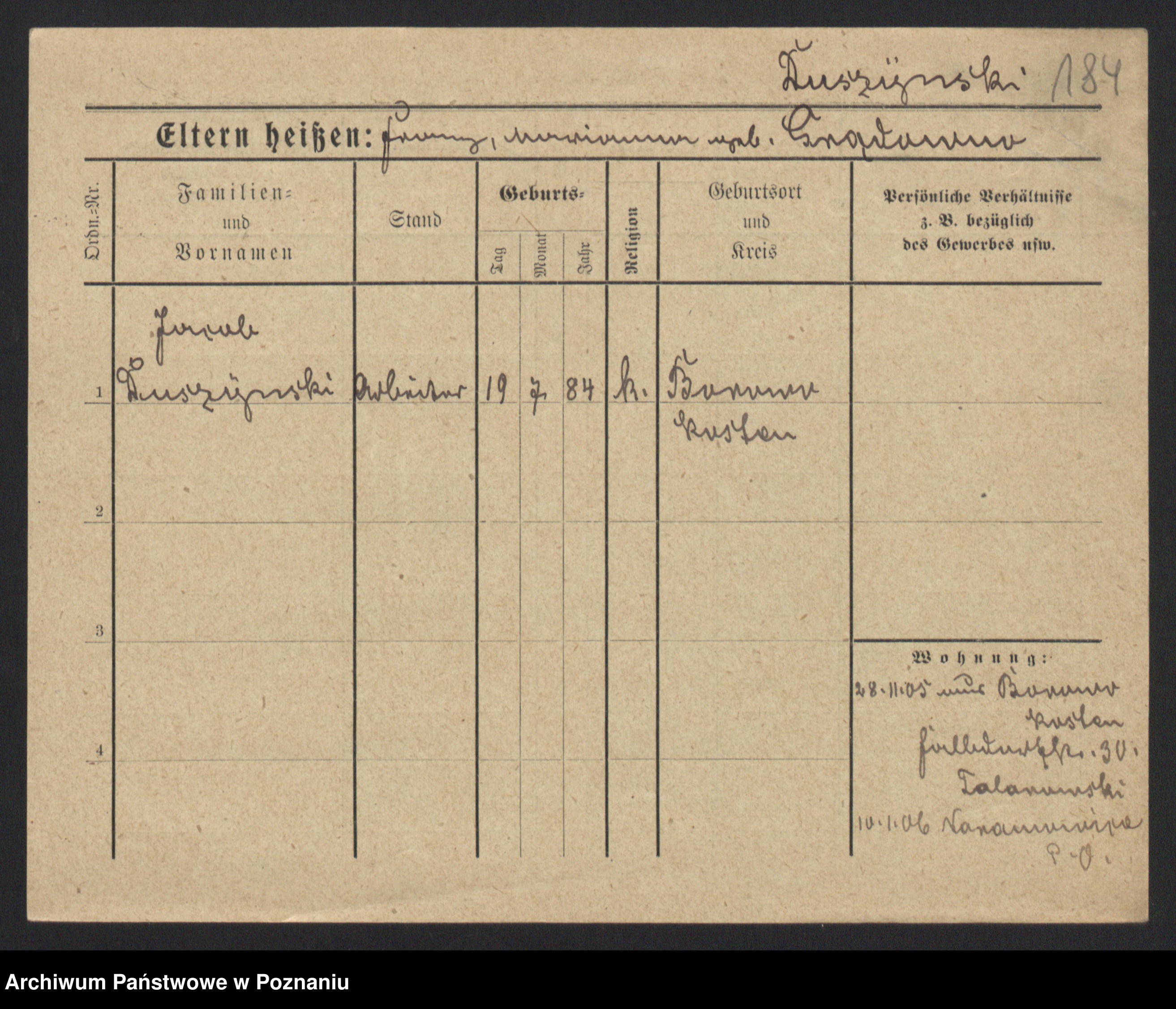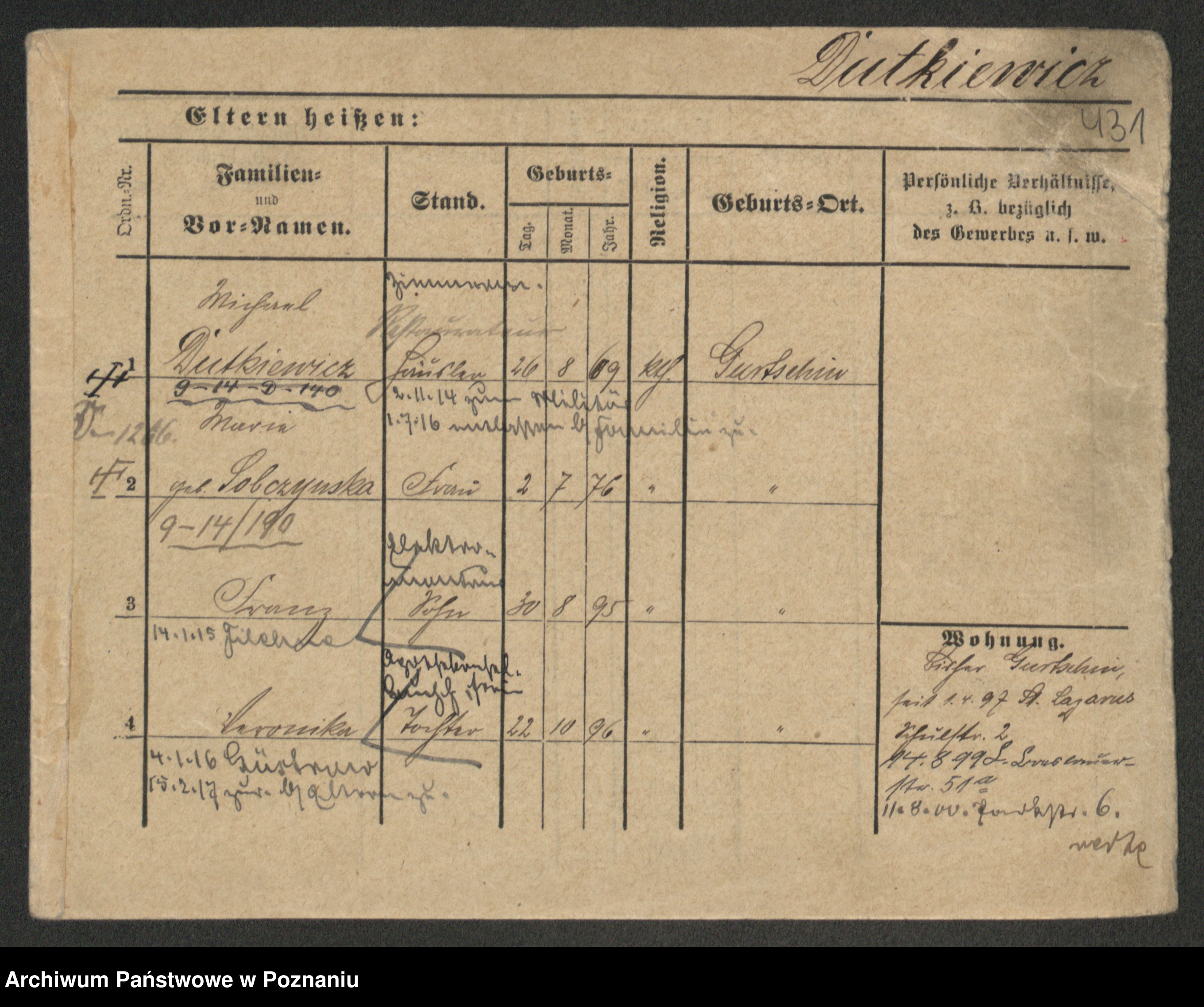 Duszyński zd. Mentzel, Wilhelmine