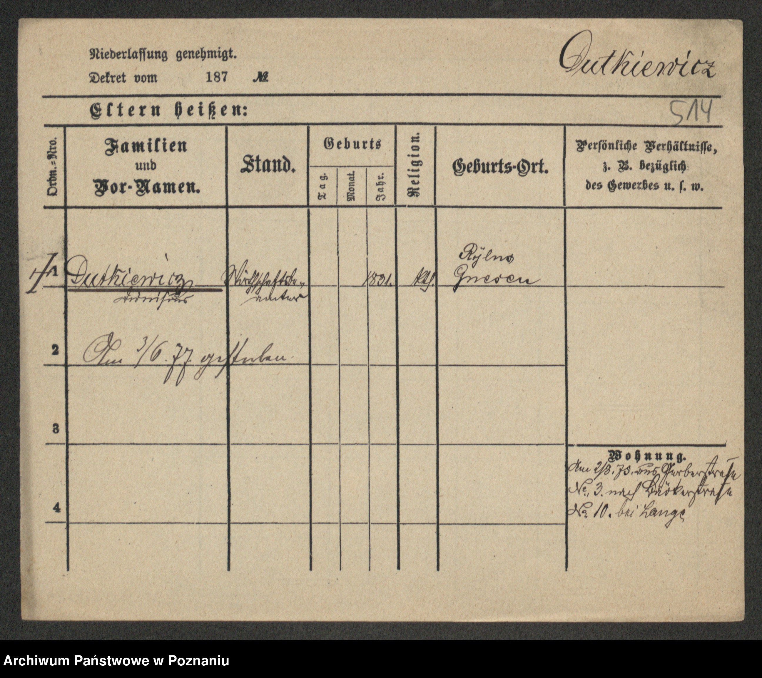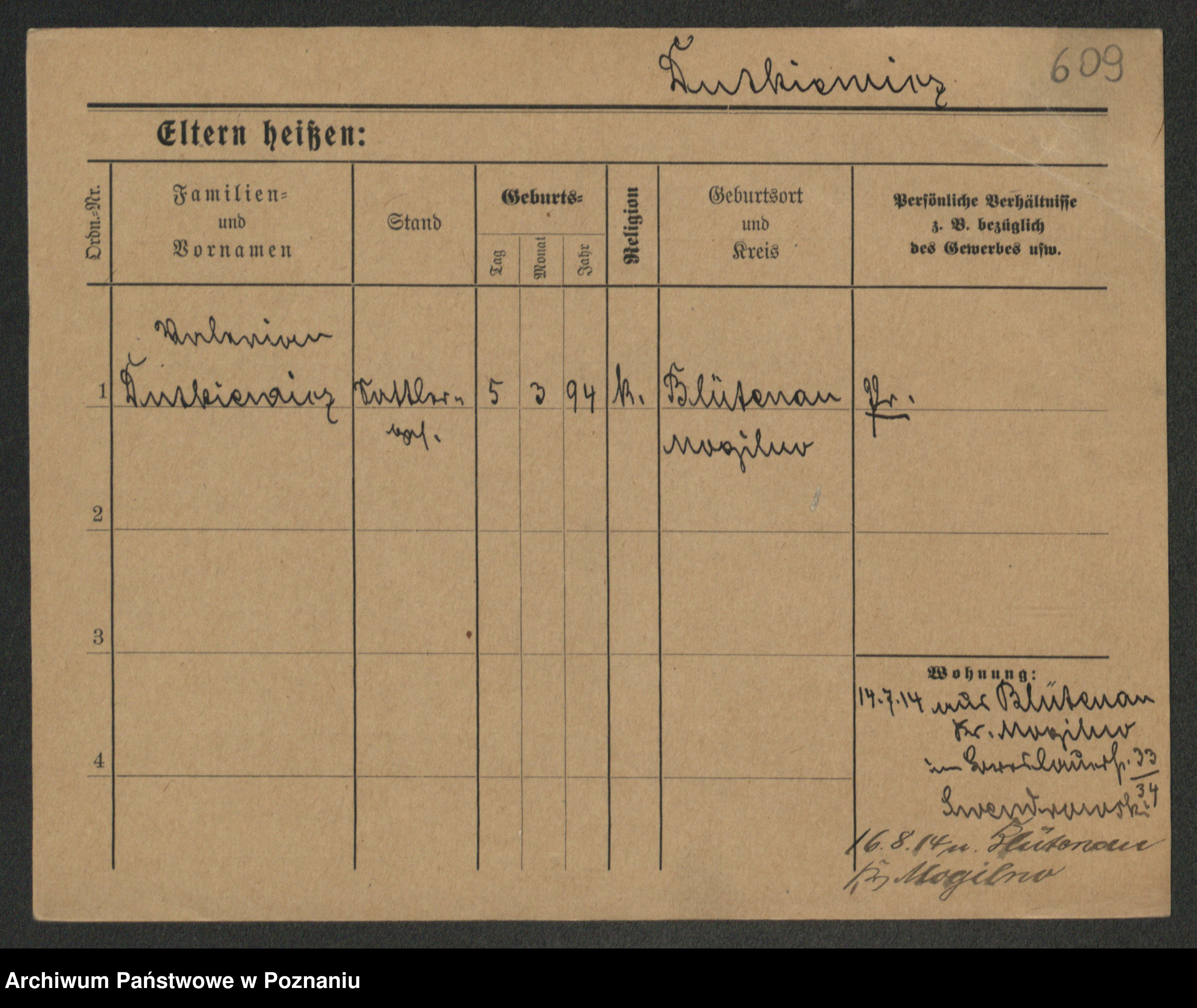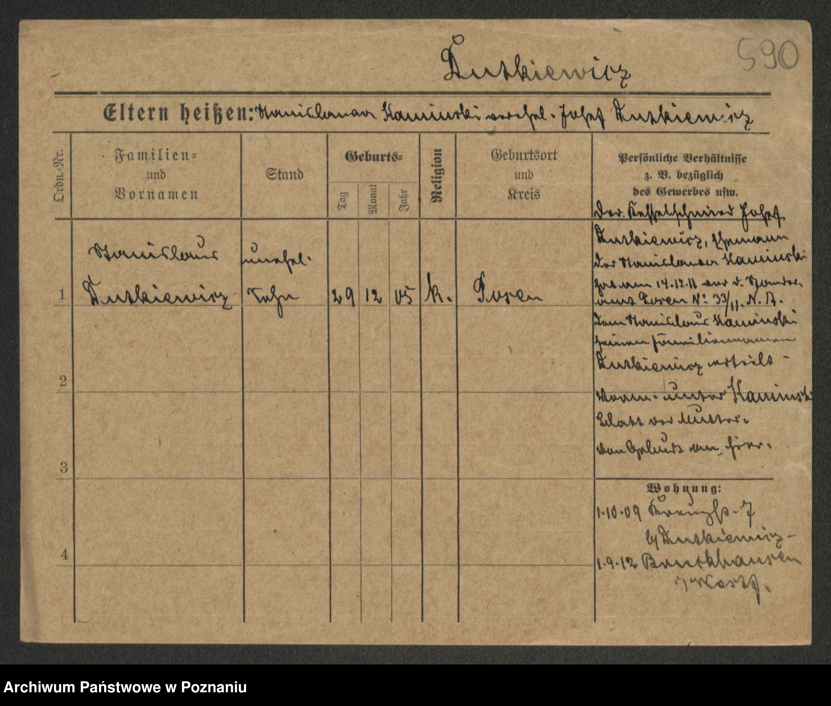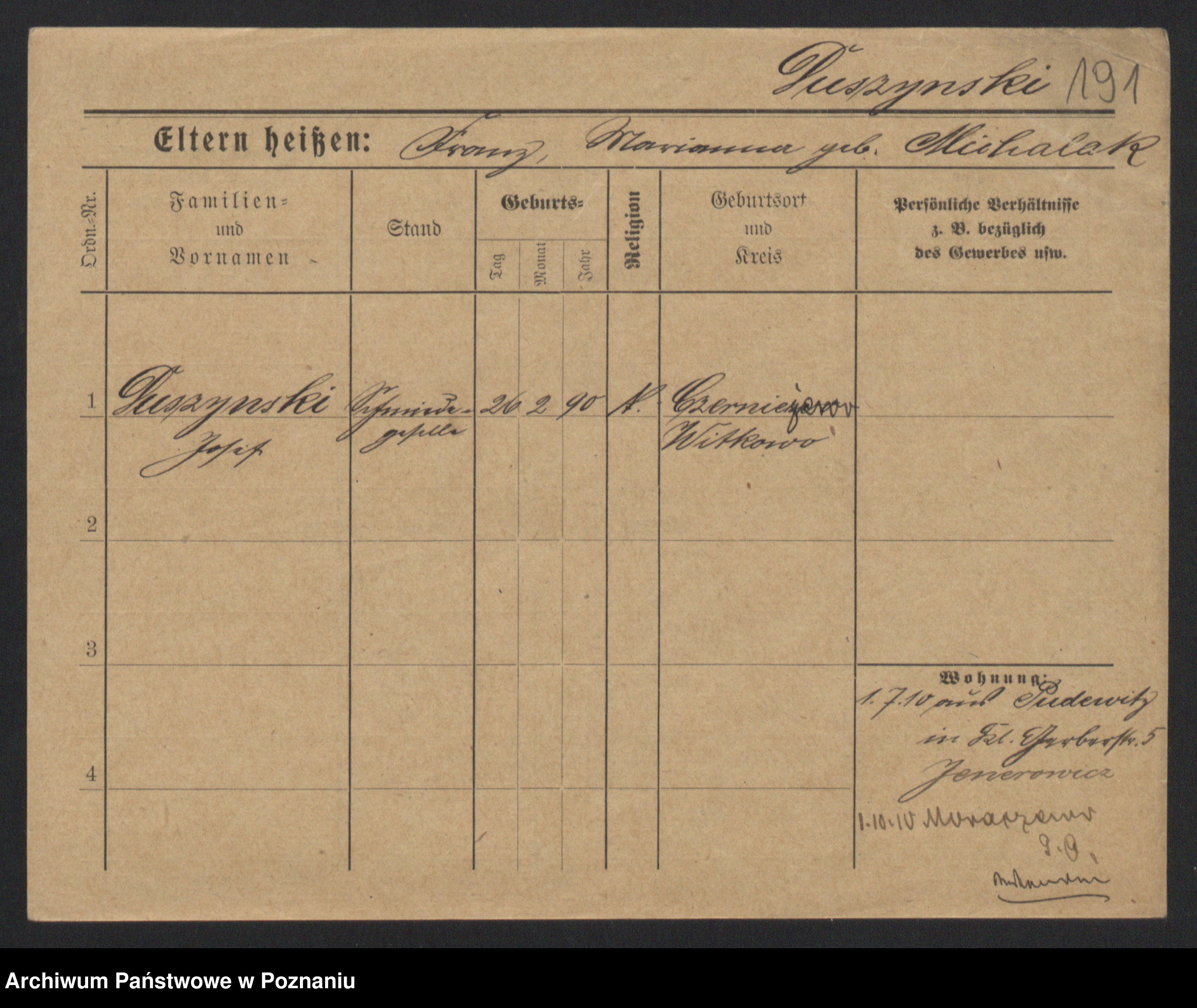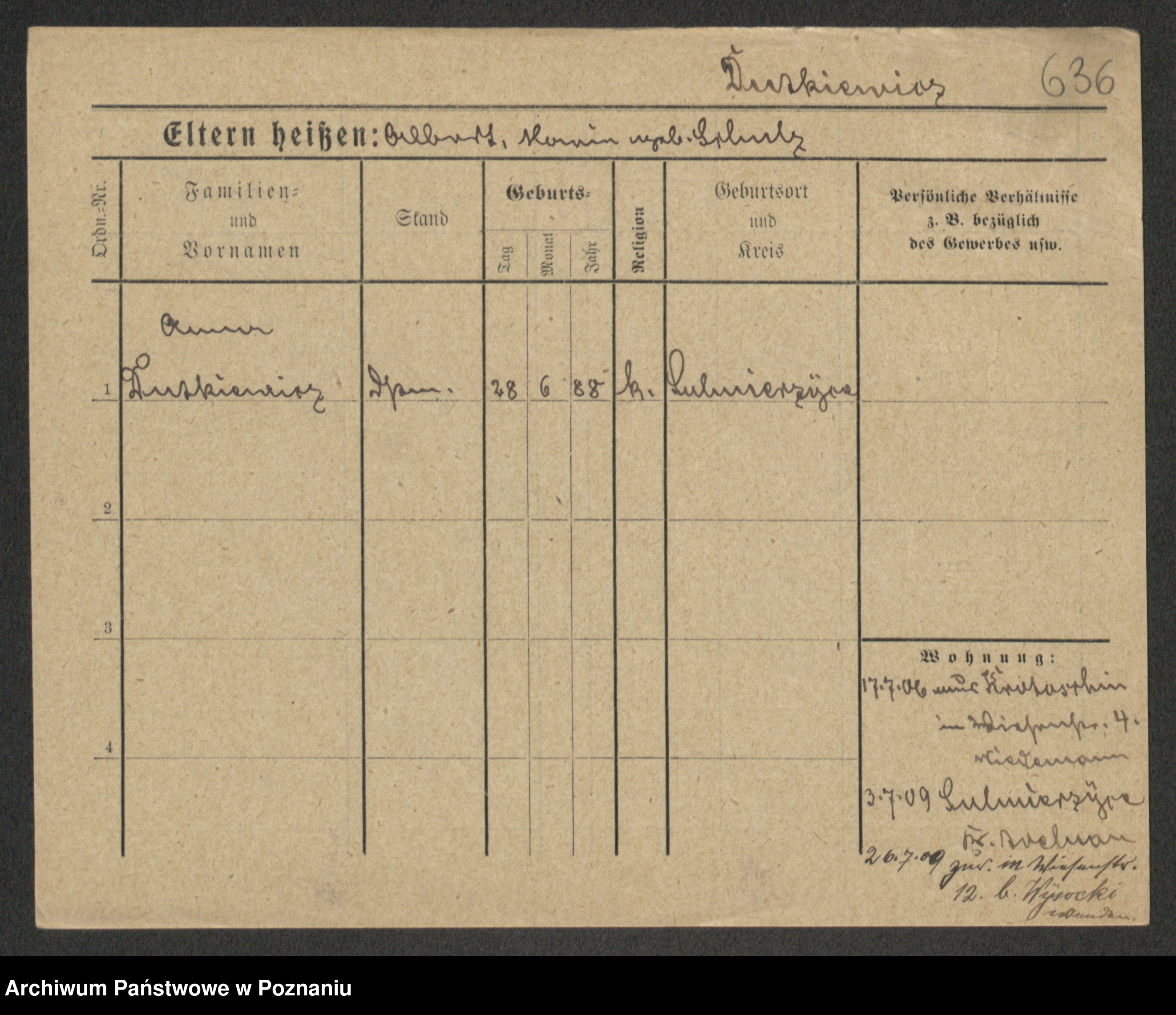 Duszyński zd. Mentzel, Wilhelmine