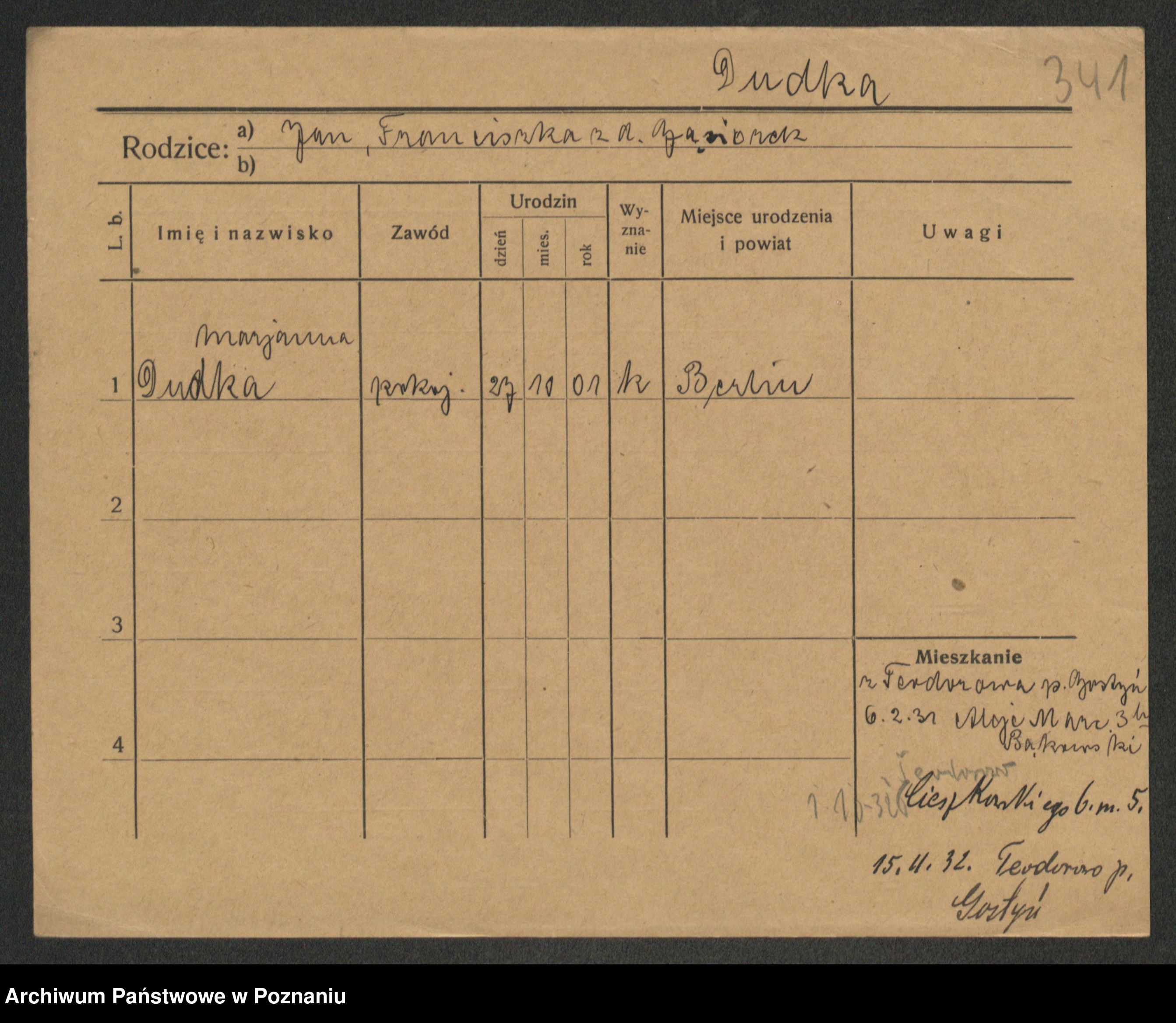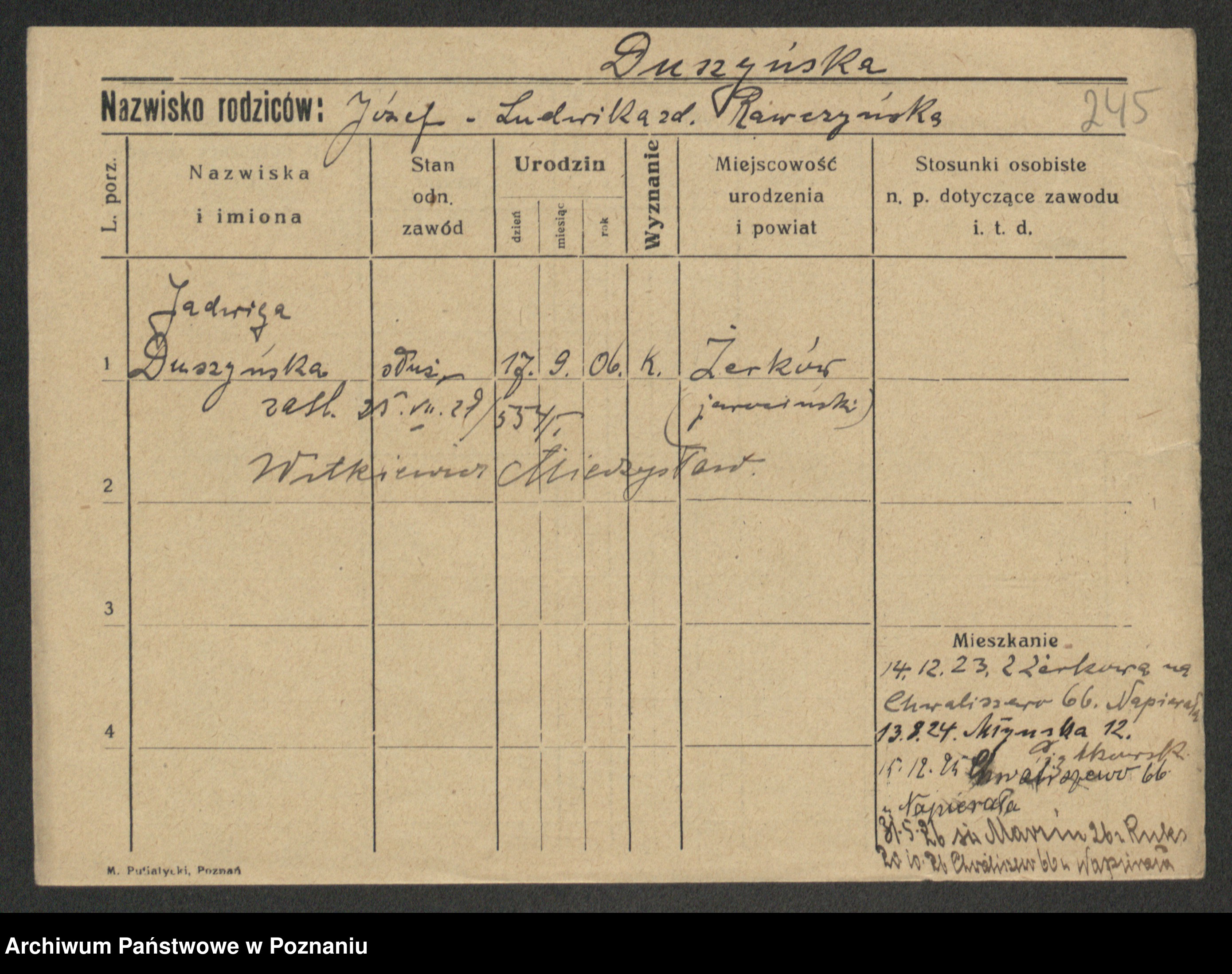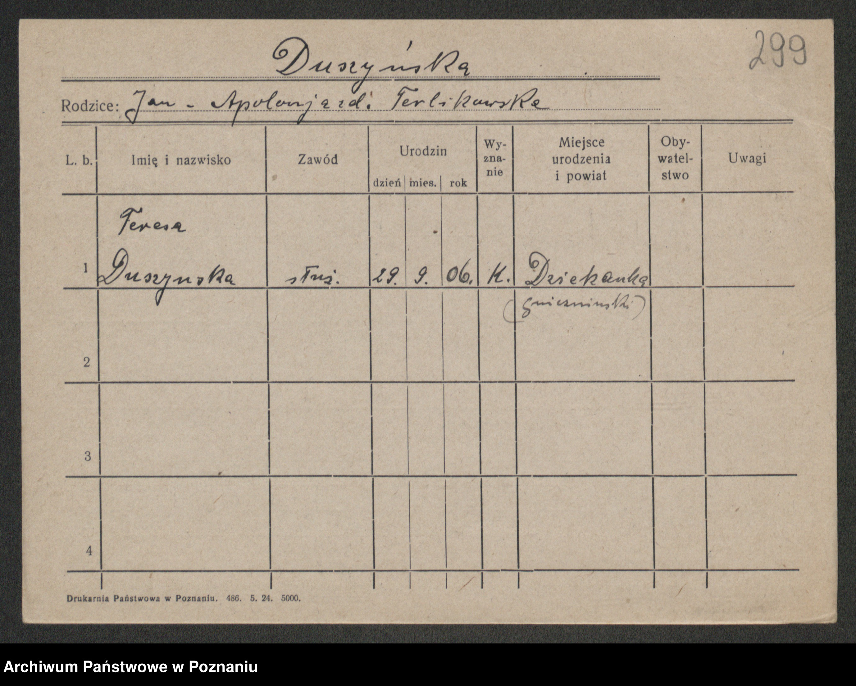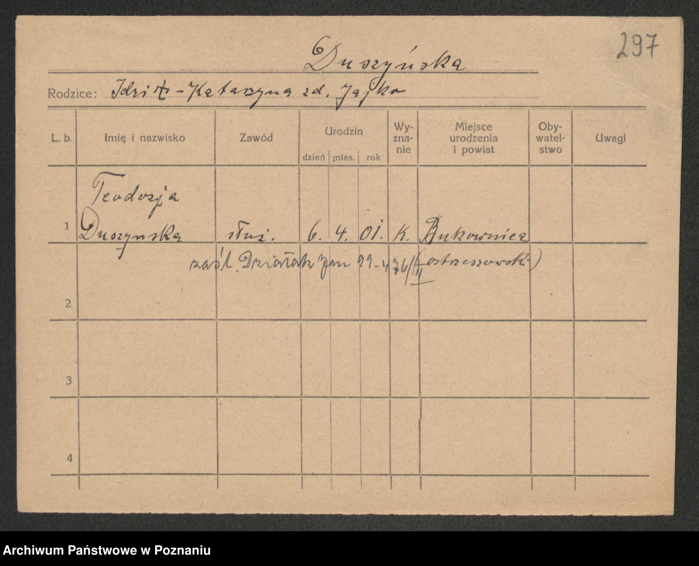 Duszynski zd. Jarzembowski, Theodora