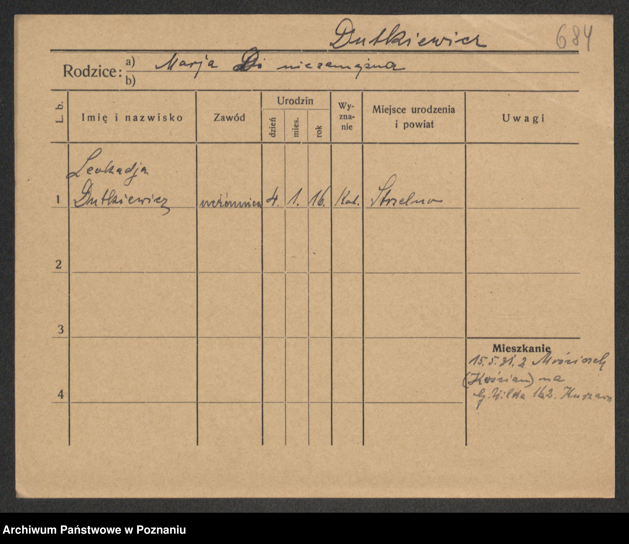 Dwojak zd. Kusztelska, Maria Leokadia