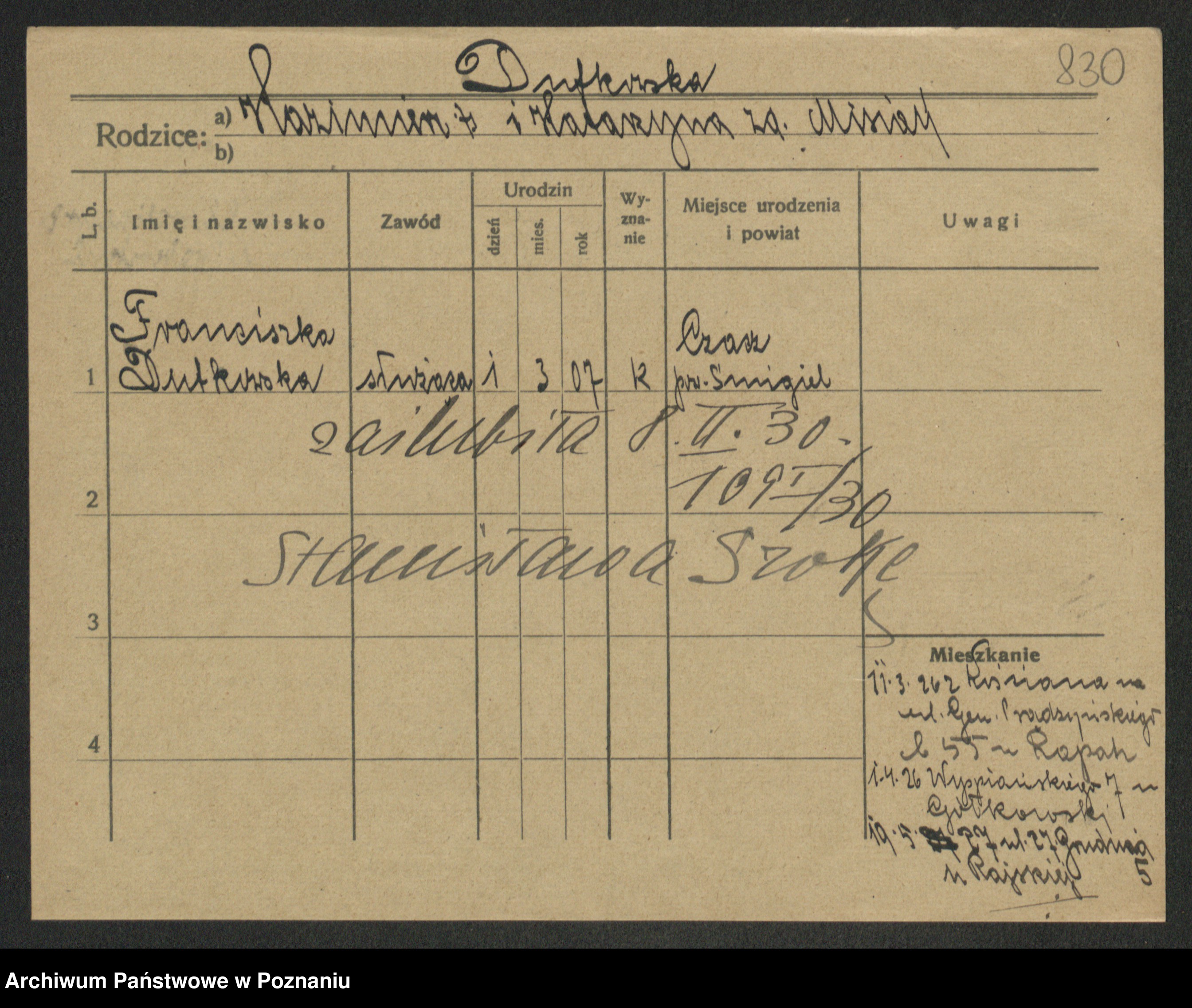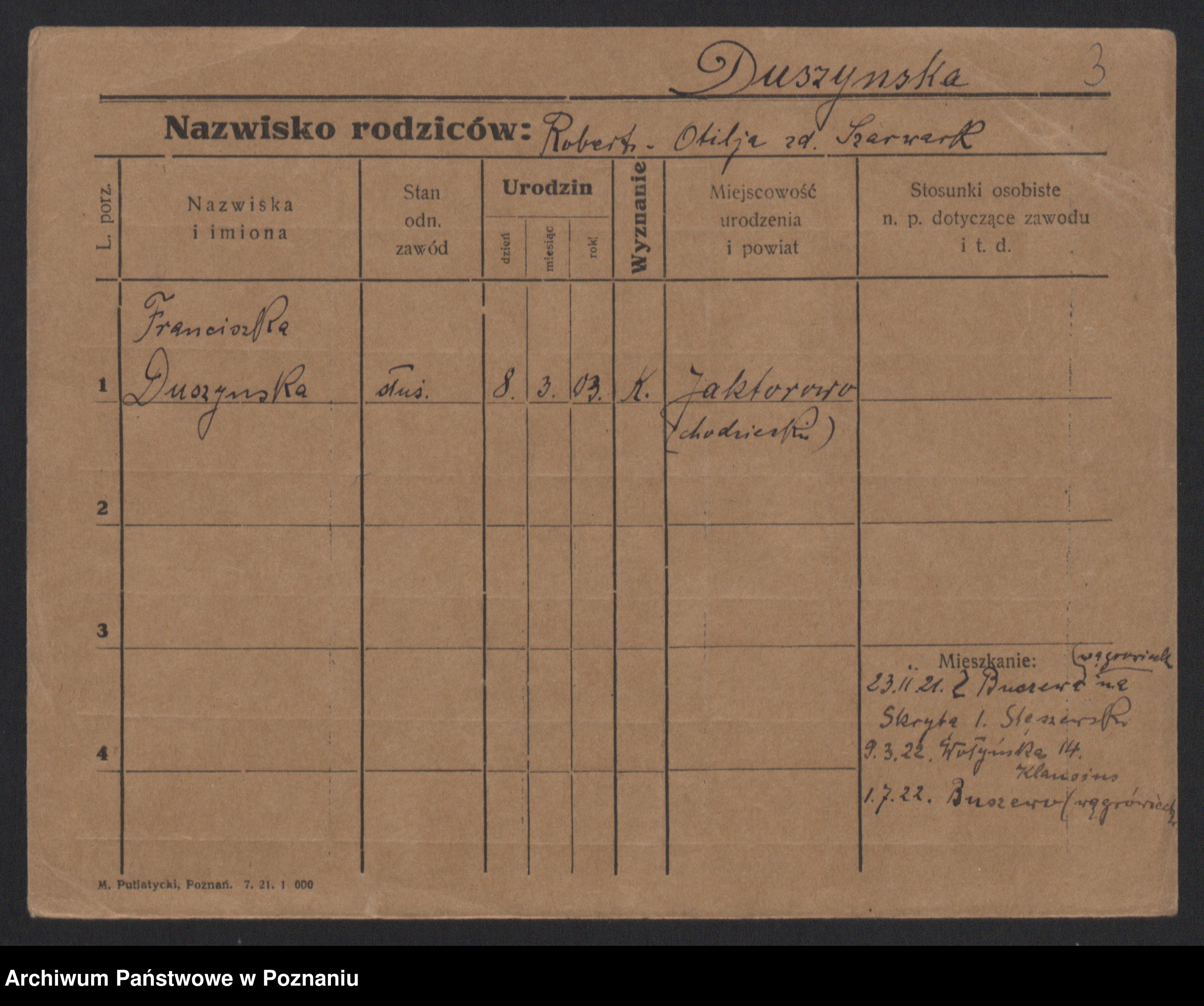 Duszynska, Franciszka