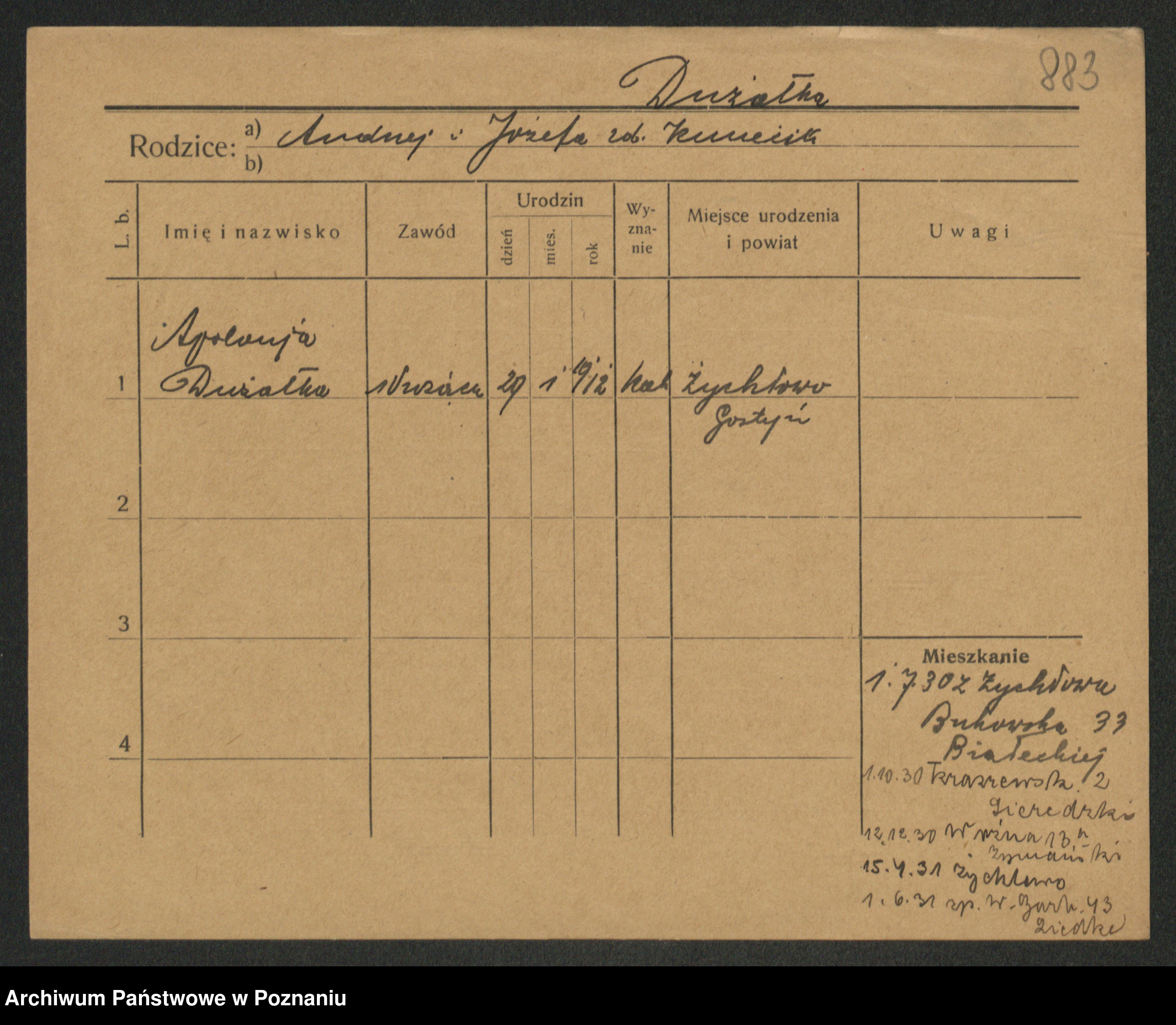 Duszyński, Zofja