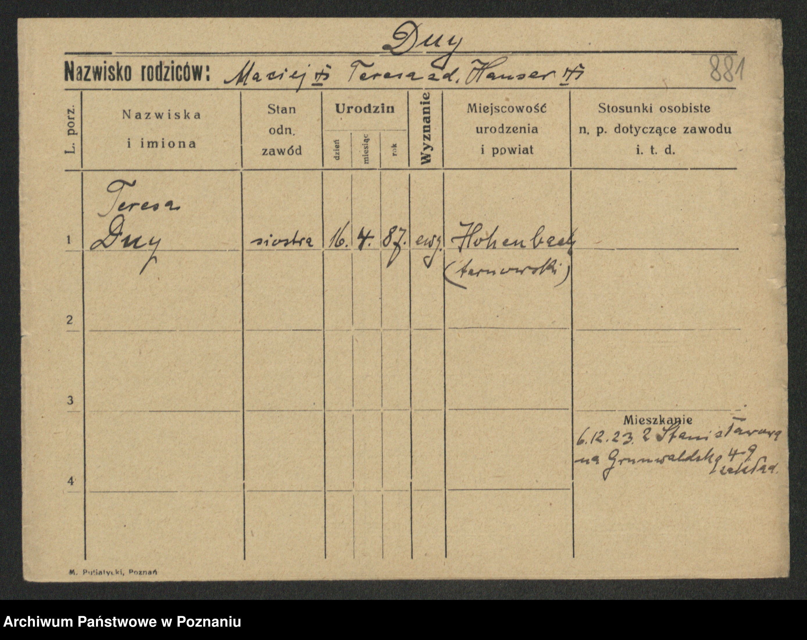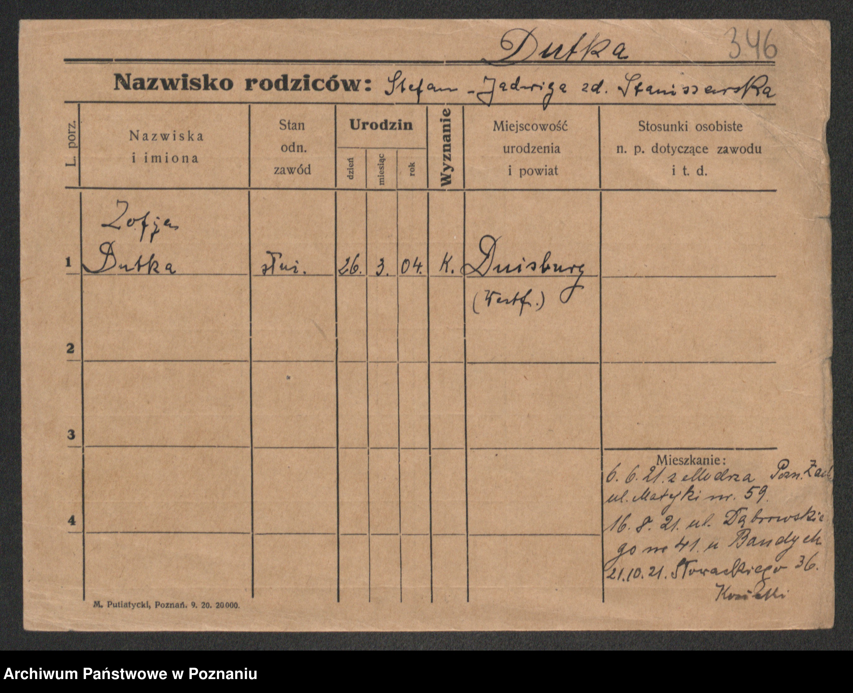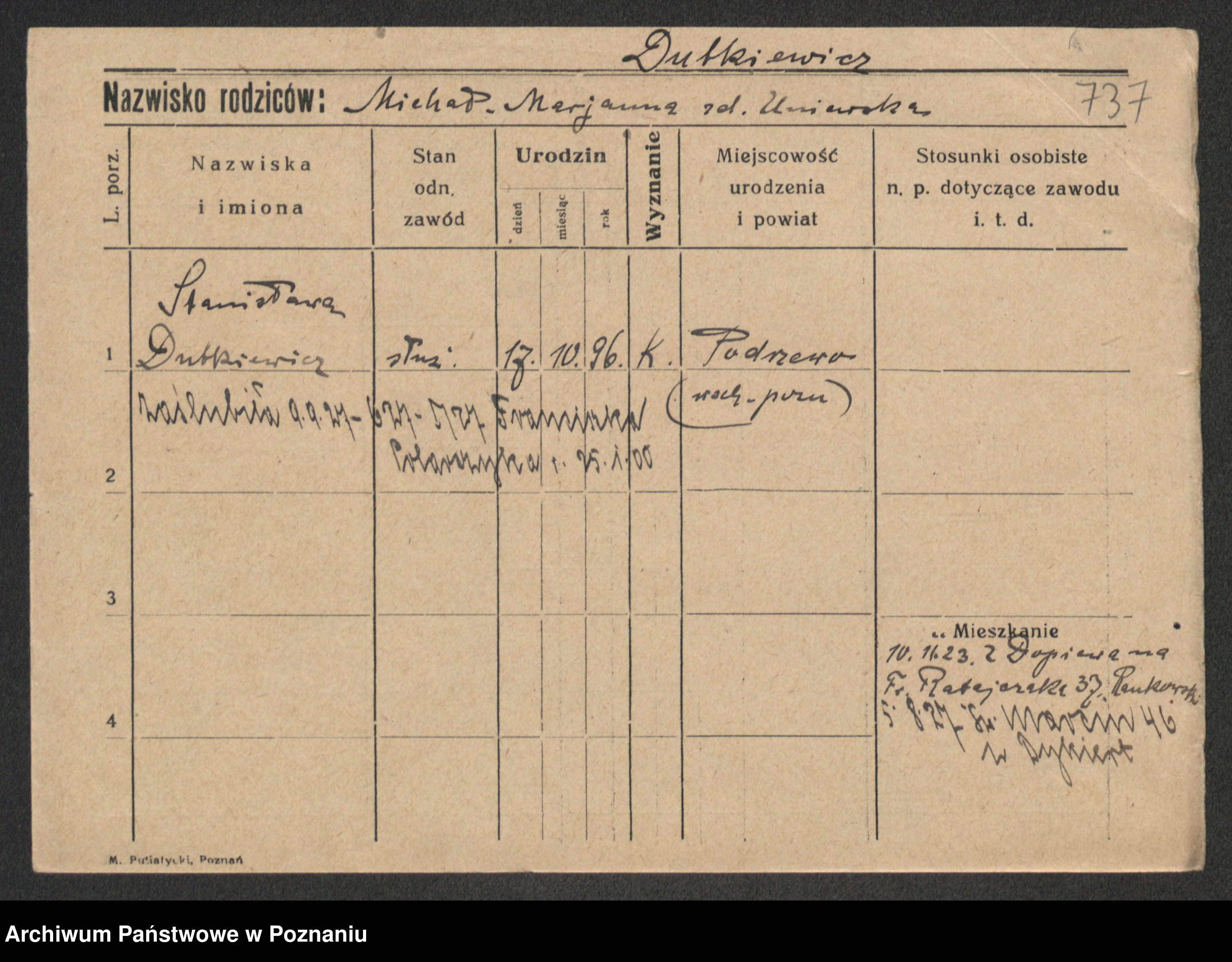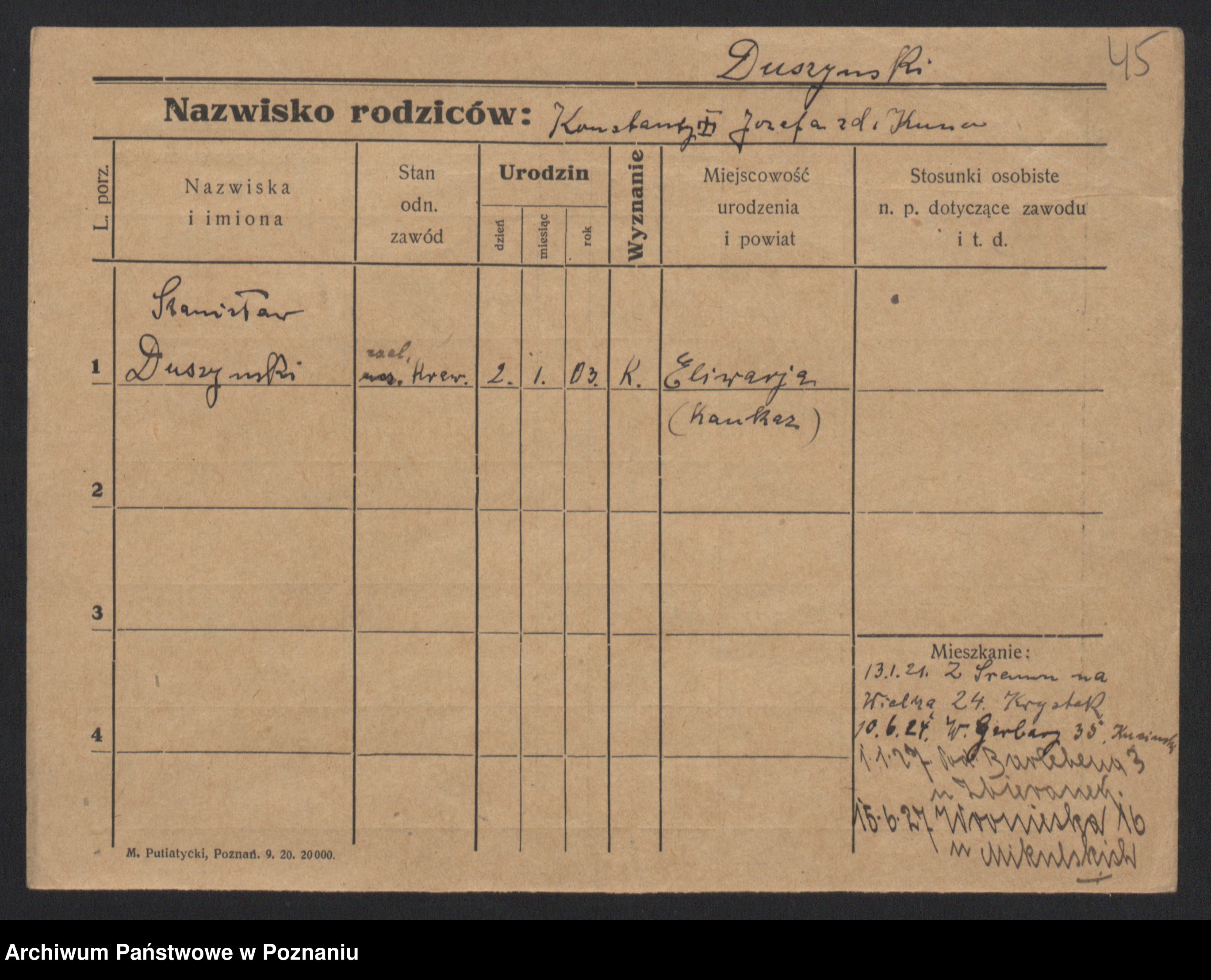 Duszynski, Stanislawa Konstantia