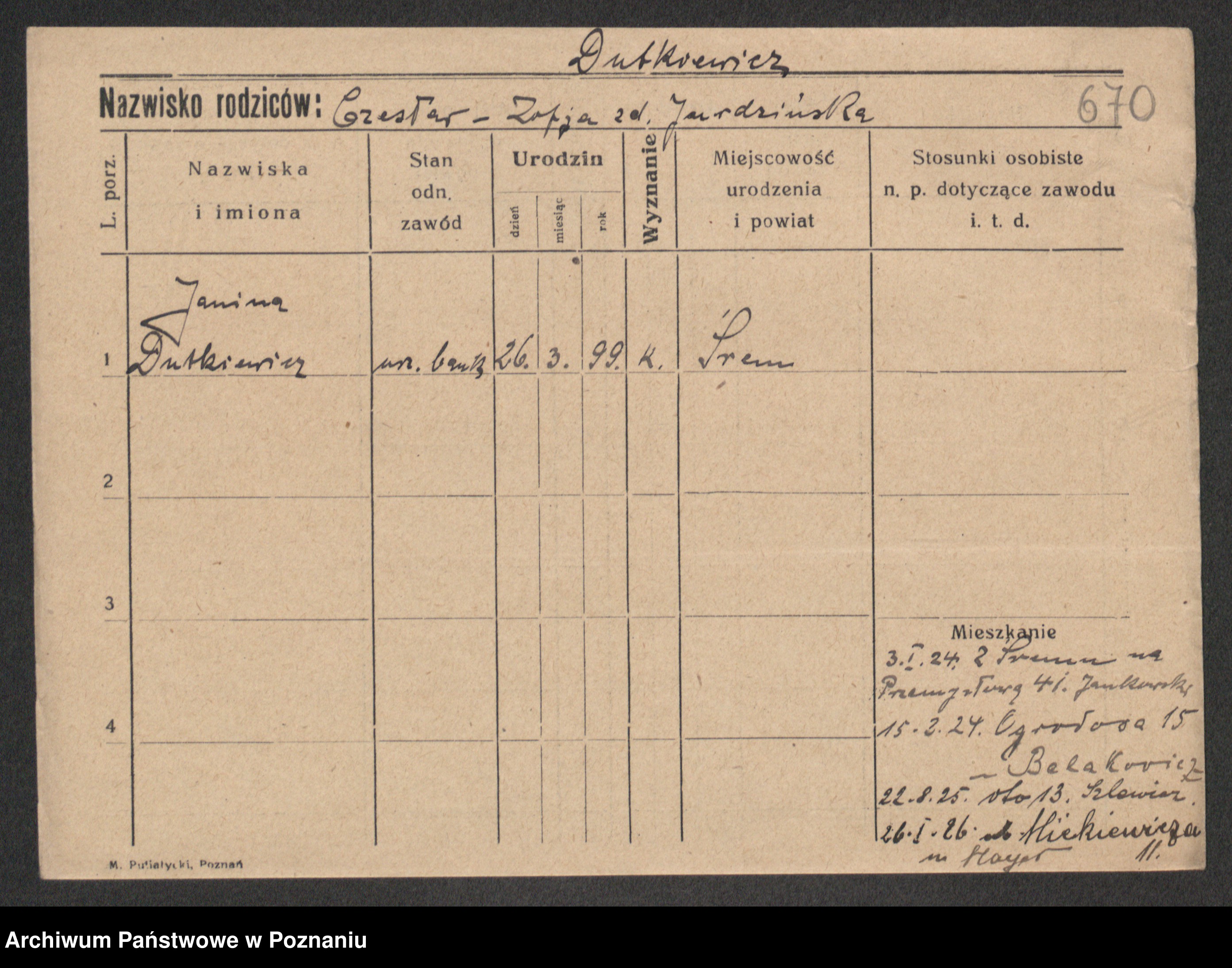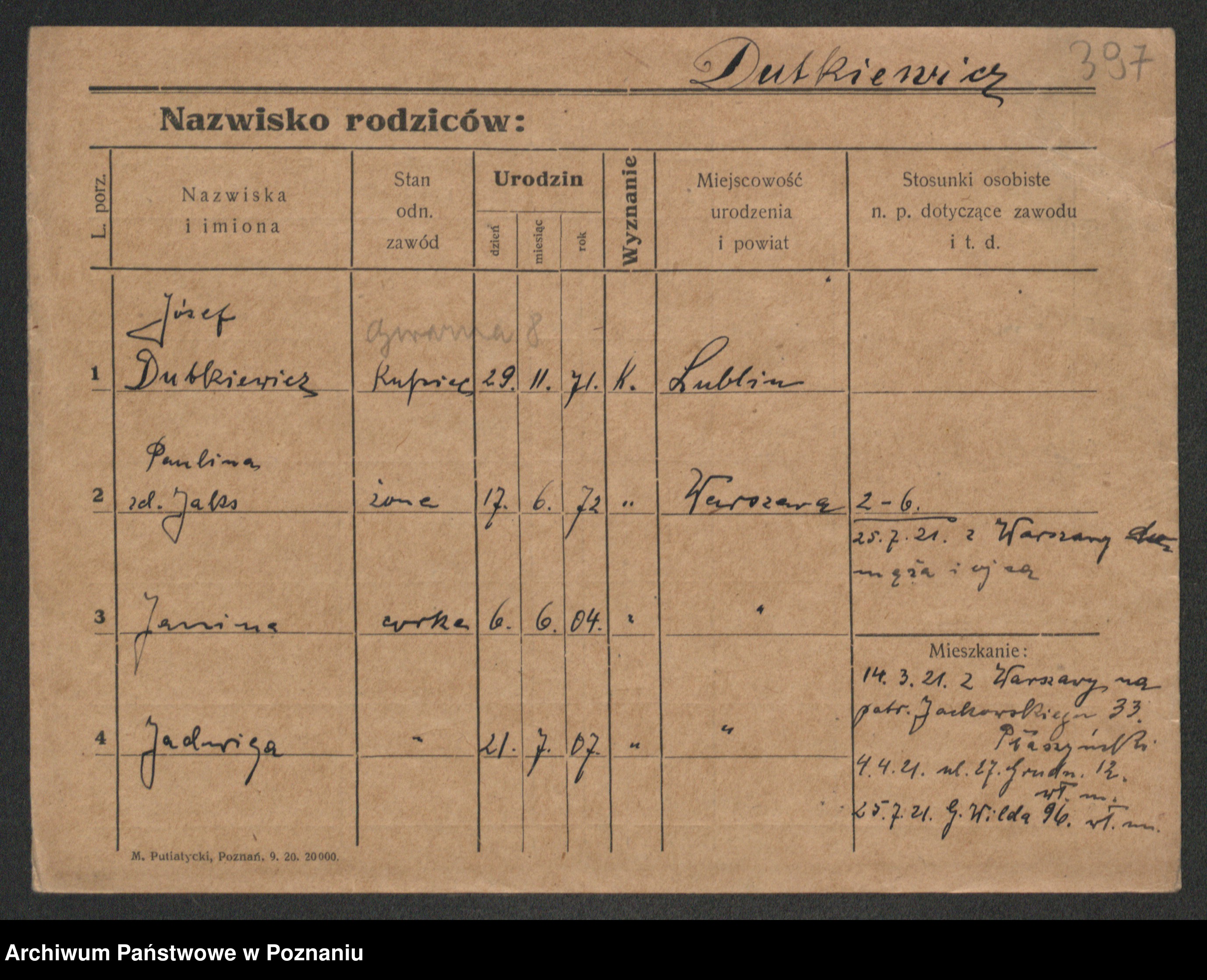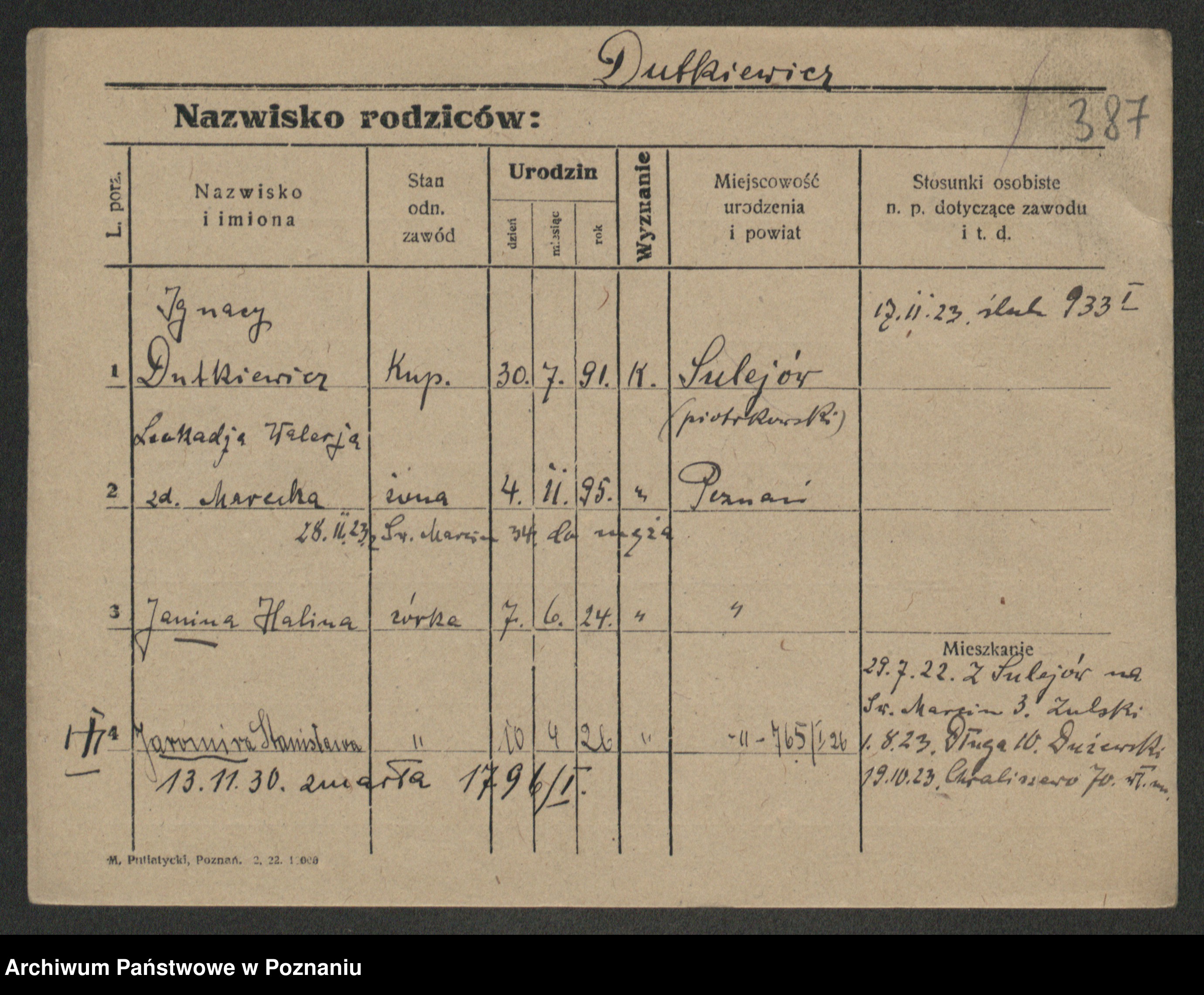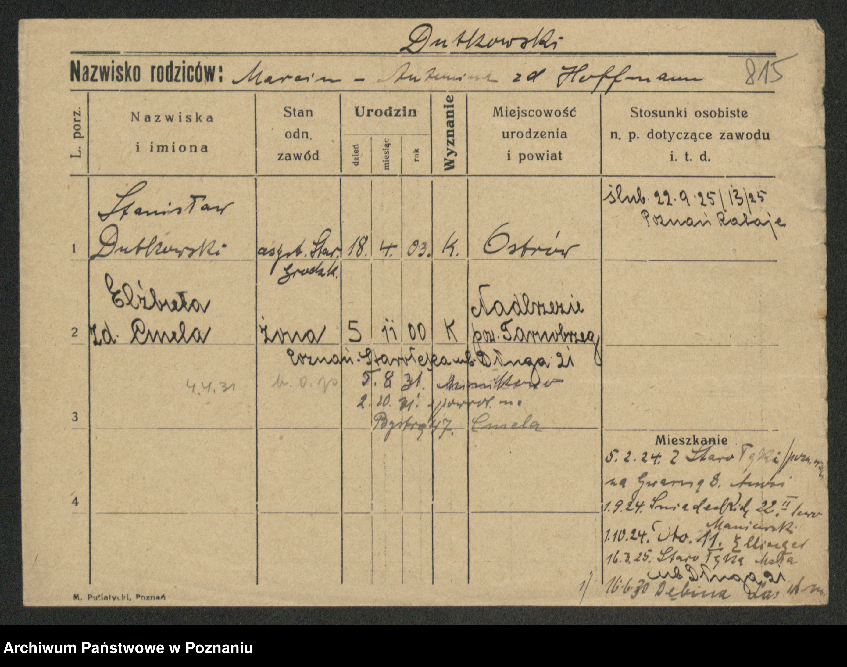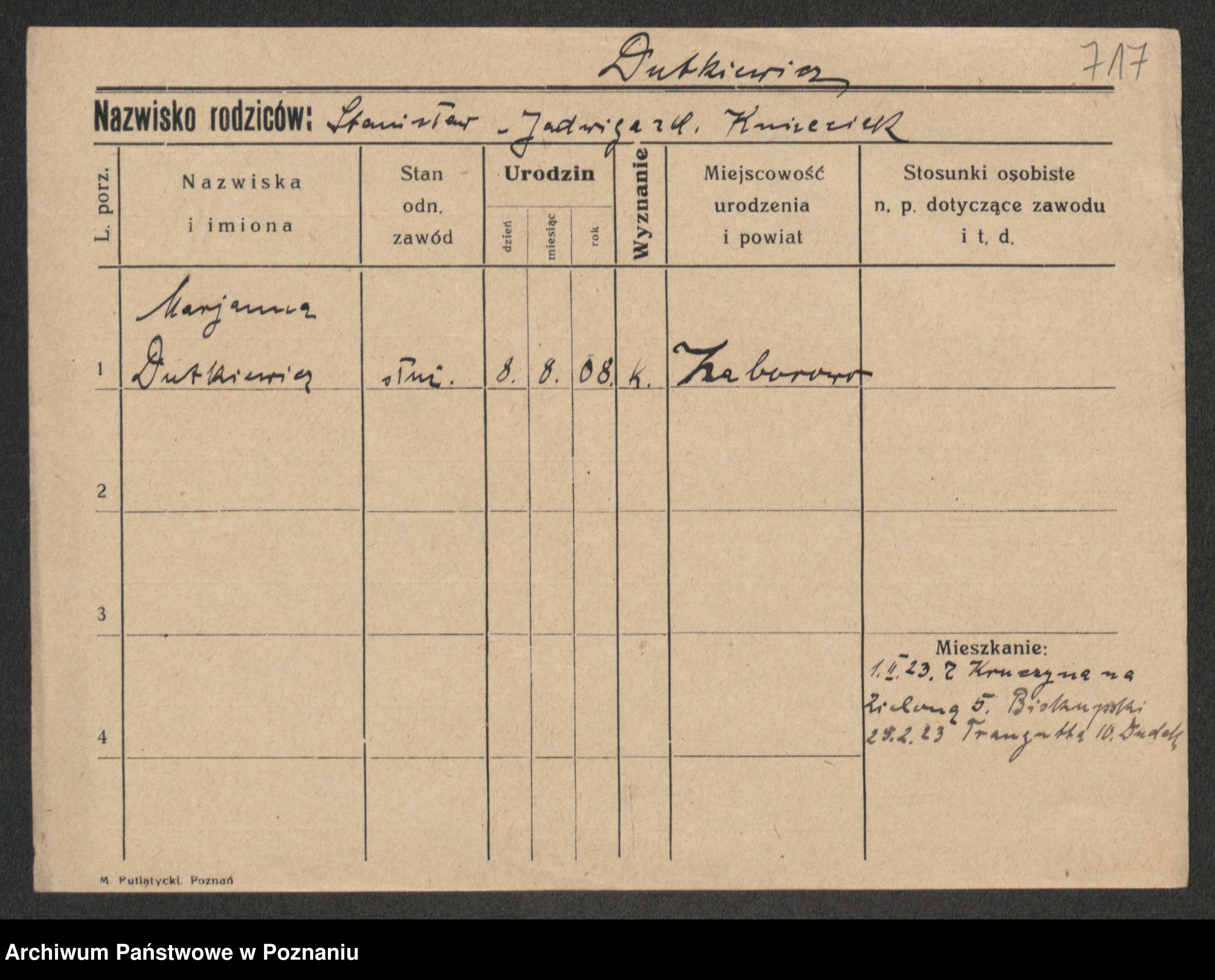 Duszynski, Stanislawa Konstantia