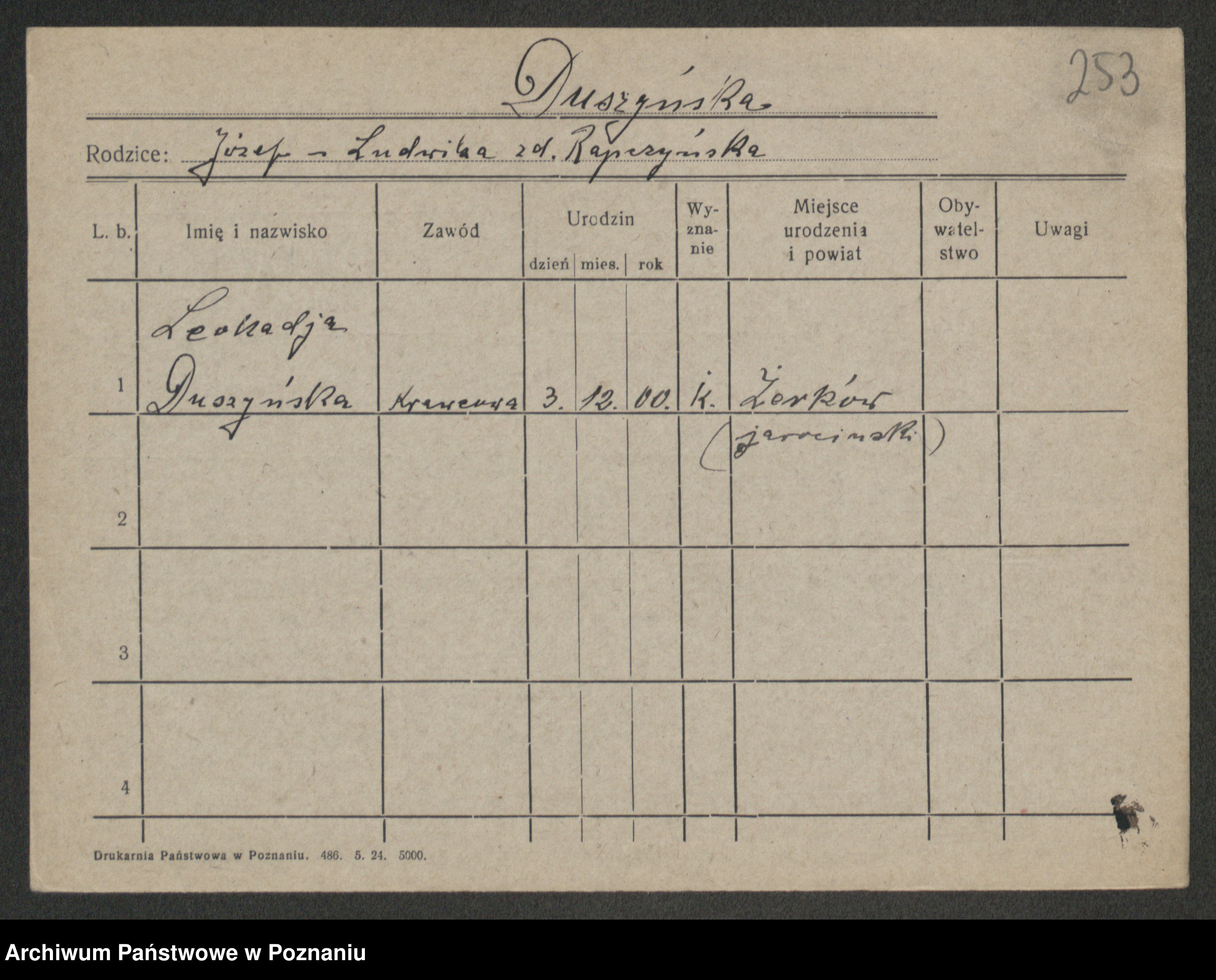 Duszynski zd. Przybylski, Ludwika