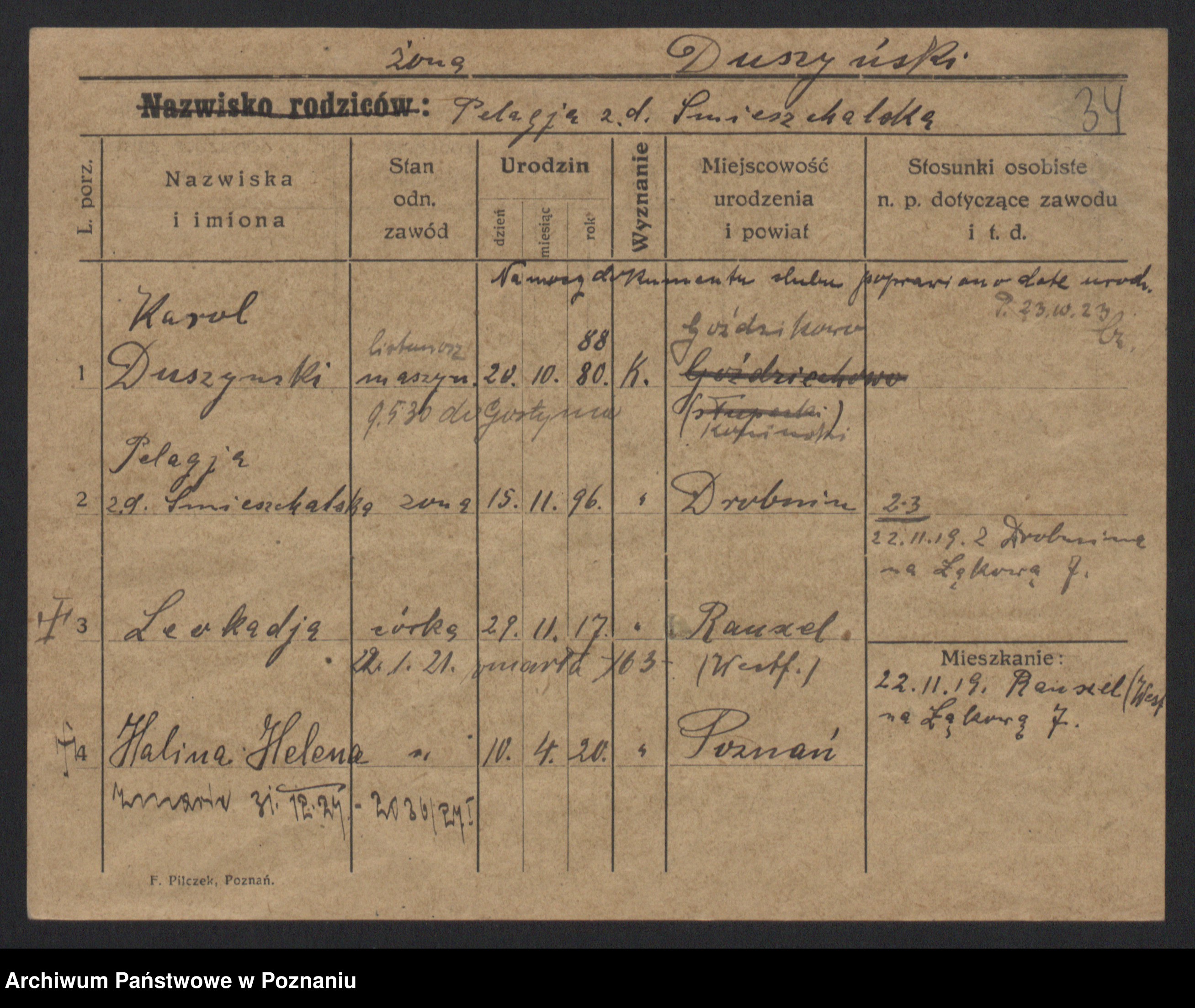 Duszynski zd. Smieszchalska, Pelagja