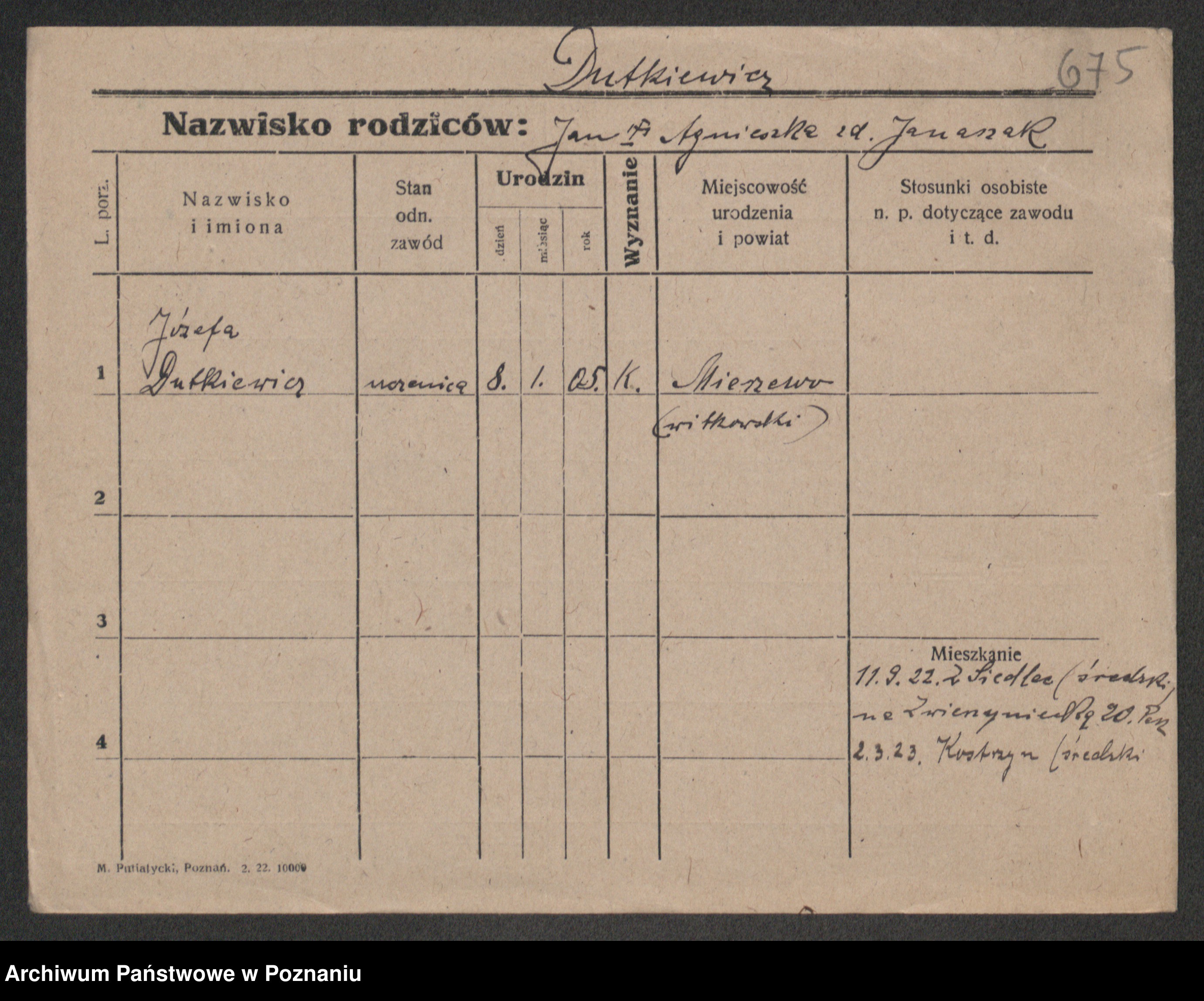 Duszyński zd. Śmierszalska, Józefa